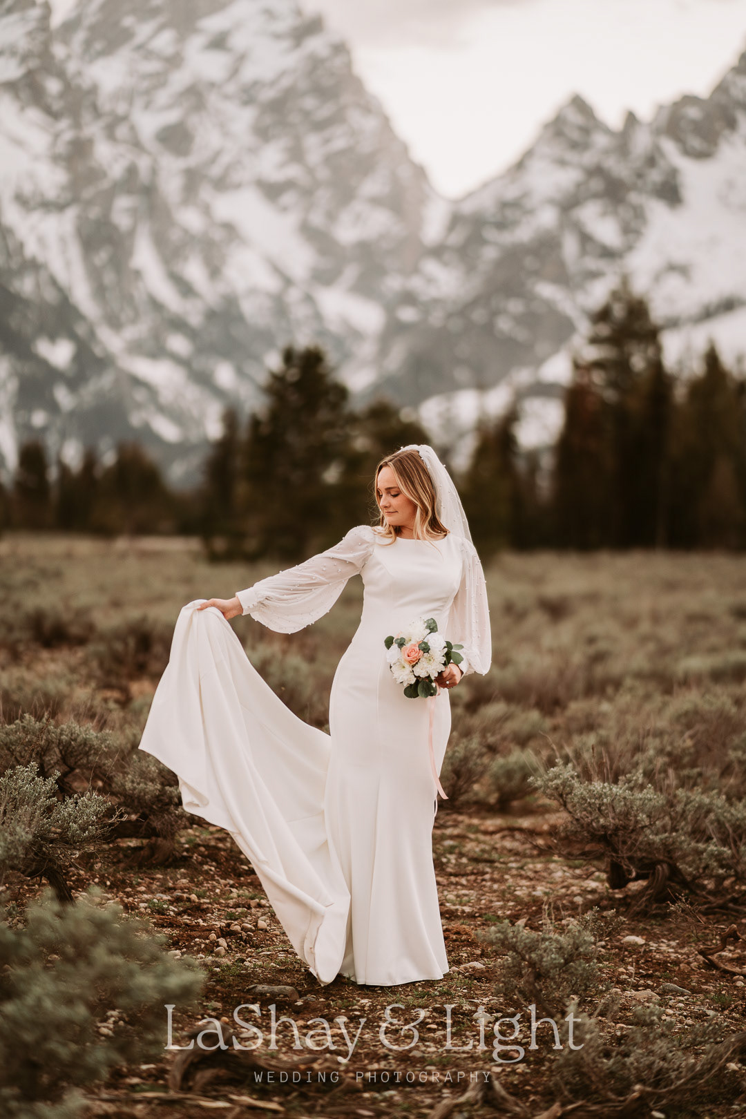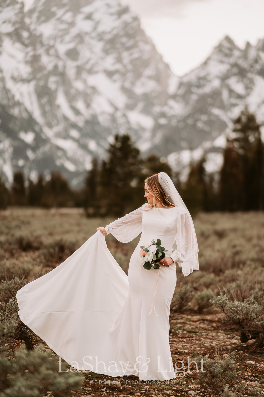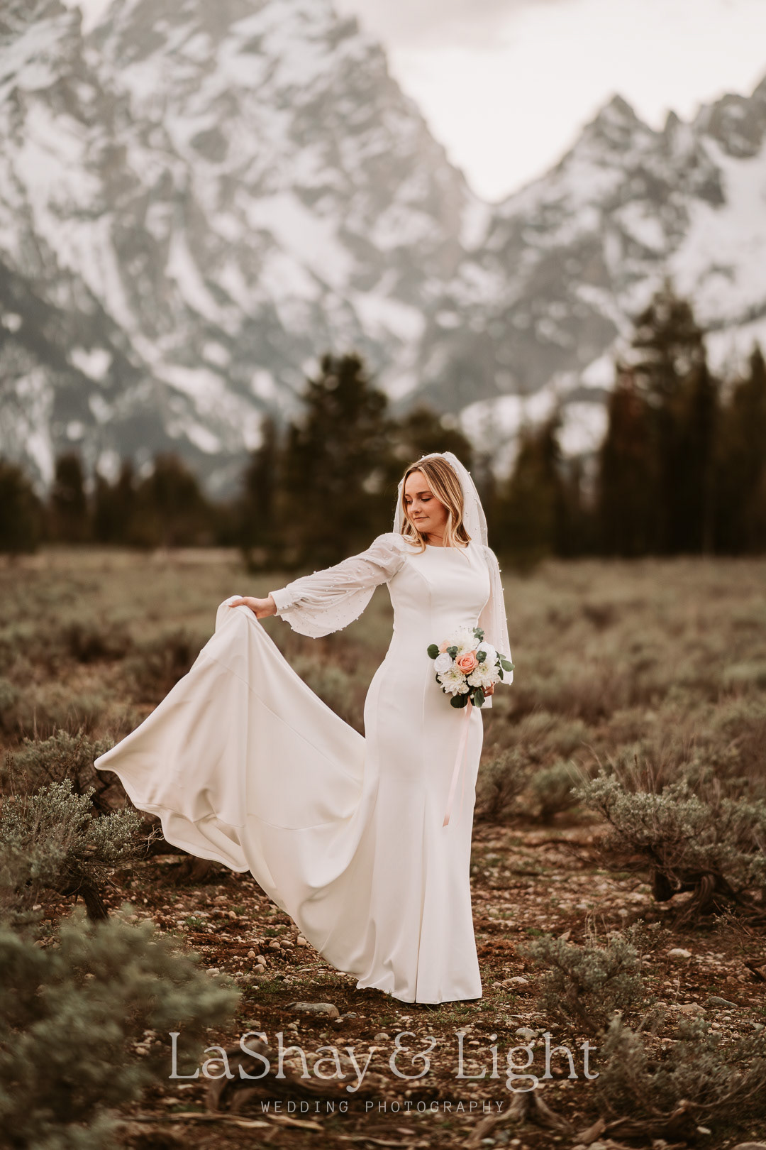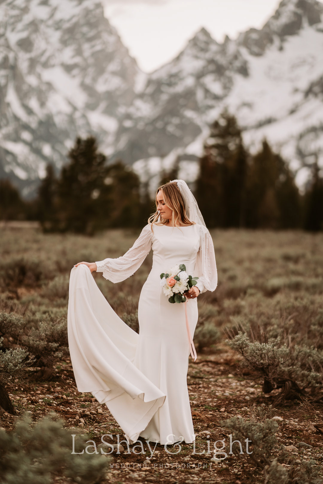 This was one of those bridal sessions that just blew me away. The Grand Teton National Park is one of my favorite locations and always adds a flair of drama to any photo. This wasn't Rachelle and Tanyon's first photoshoot in the Tetons with me. We also did their engagements there! Make sure you check those out too.
