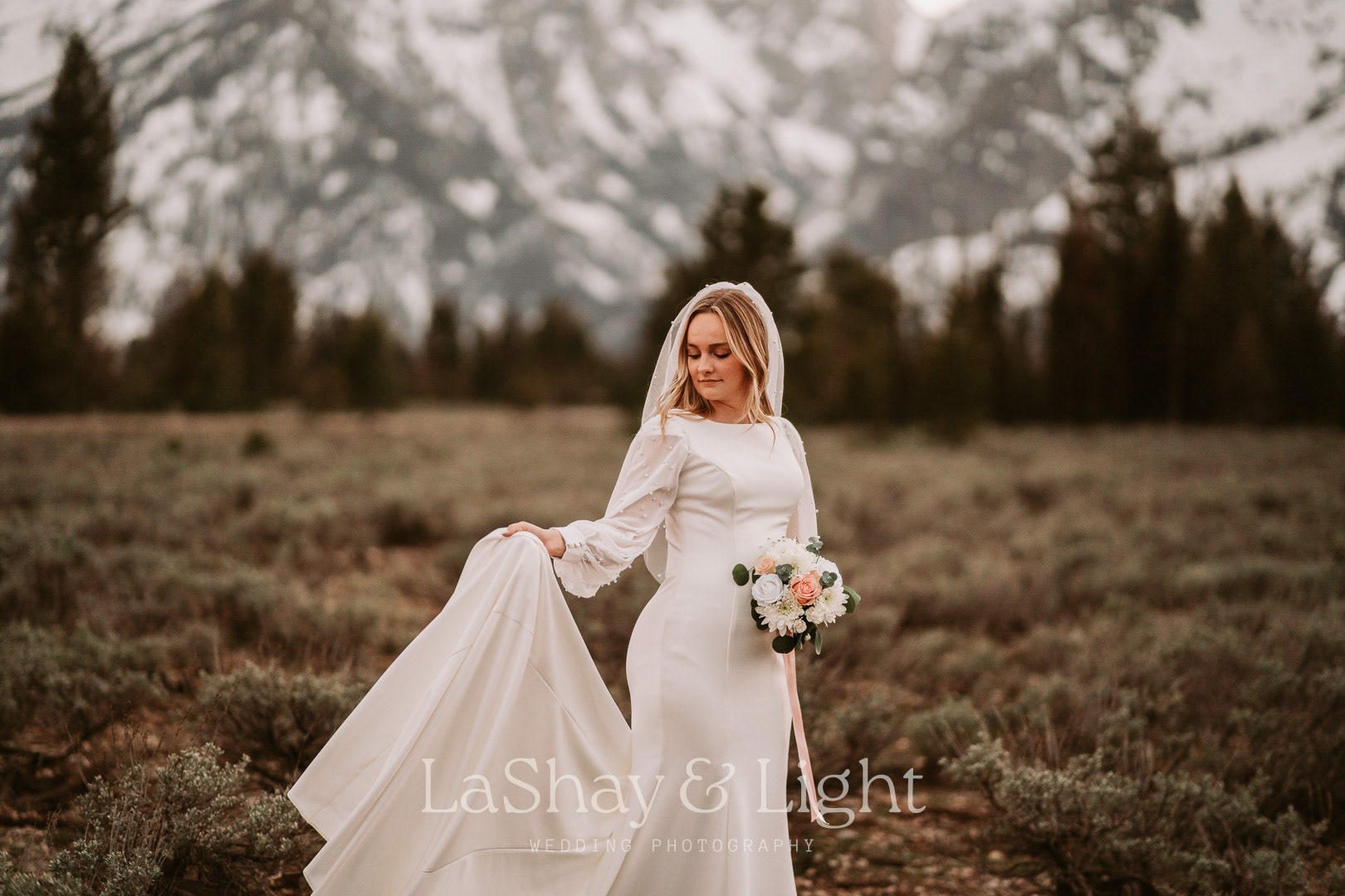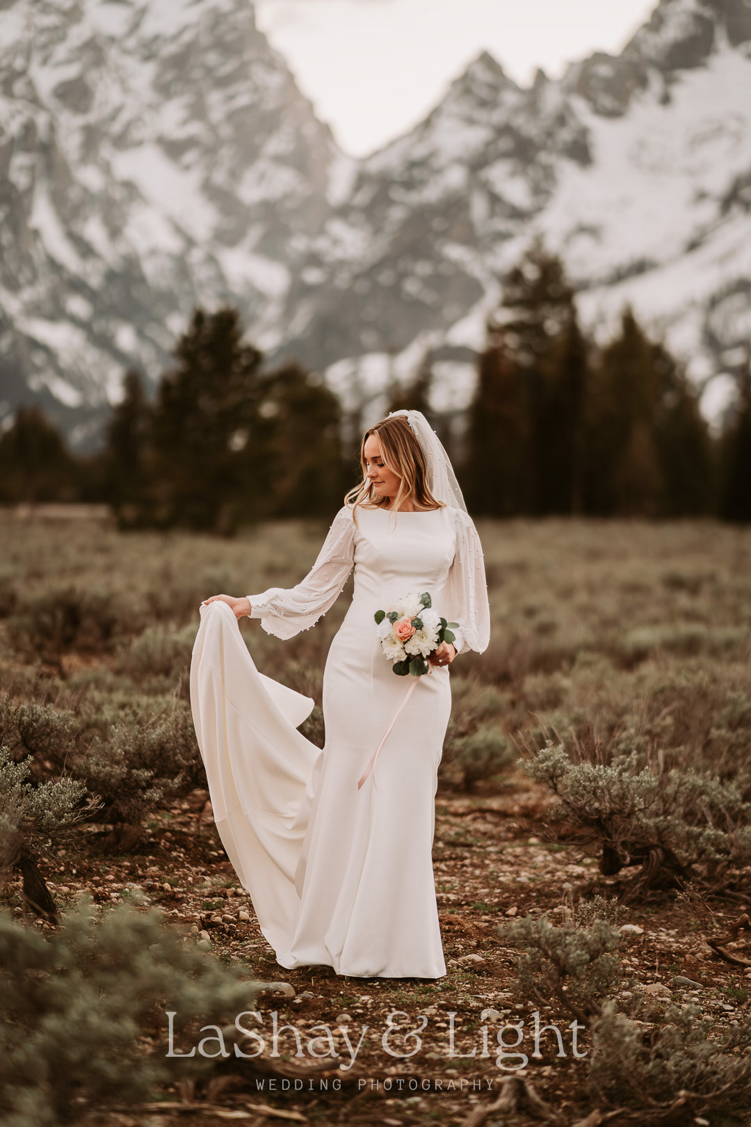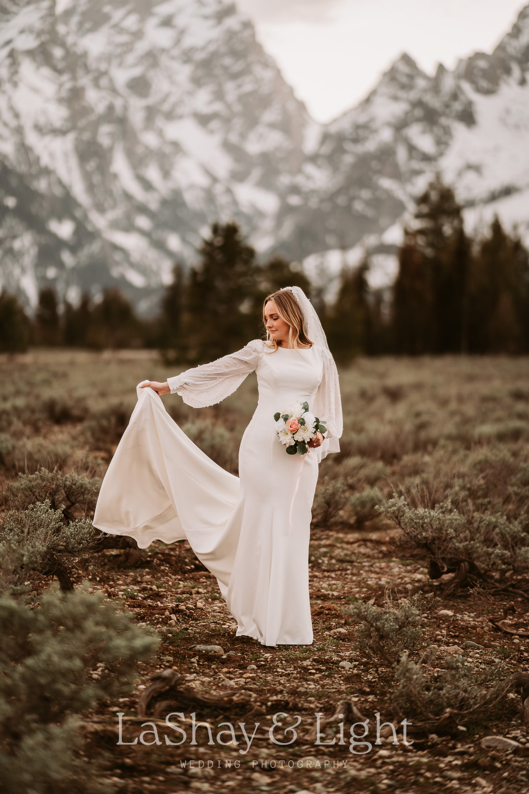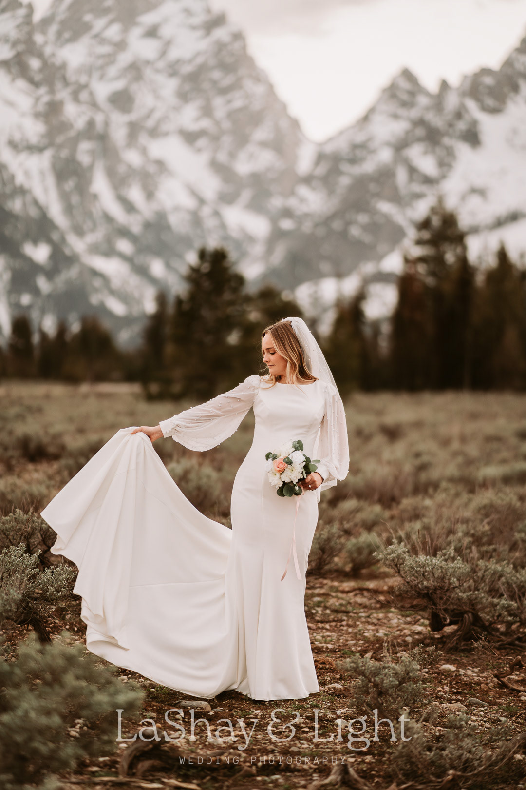 This was one of those bridal sessions that just blew me away. The Grand Teton National Park is one of my favorite locations and always adds a flair of drama to any photo. This wasn't Rachelle and Tanyon's first photoshoot in the Tetons with me. We also did their engagements there! Make sure you check those out too.