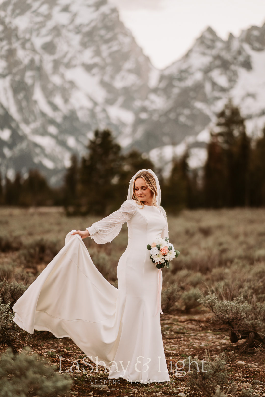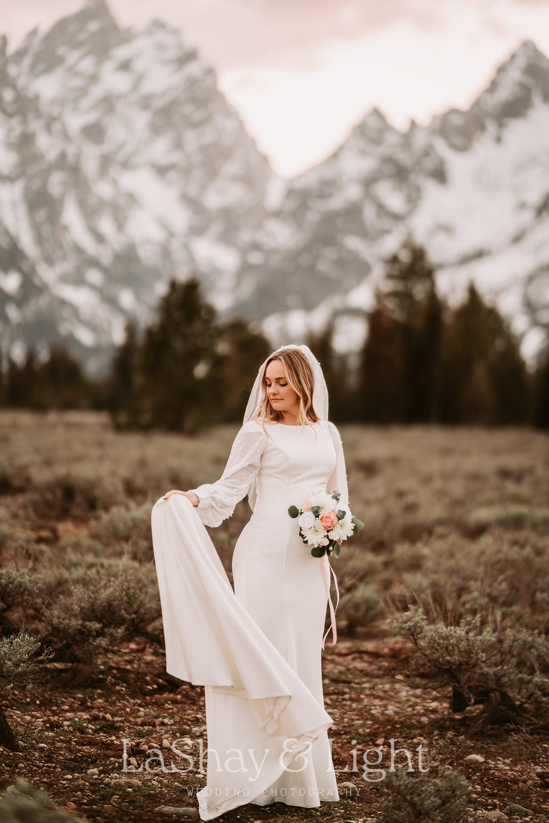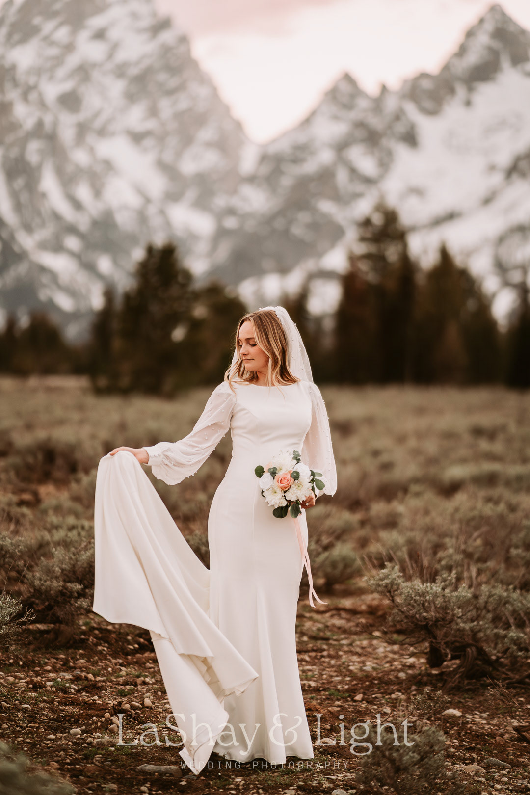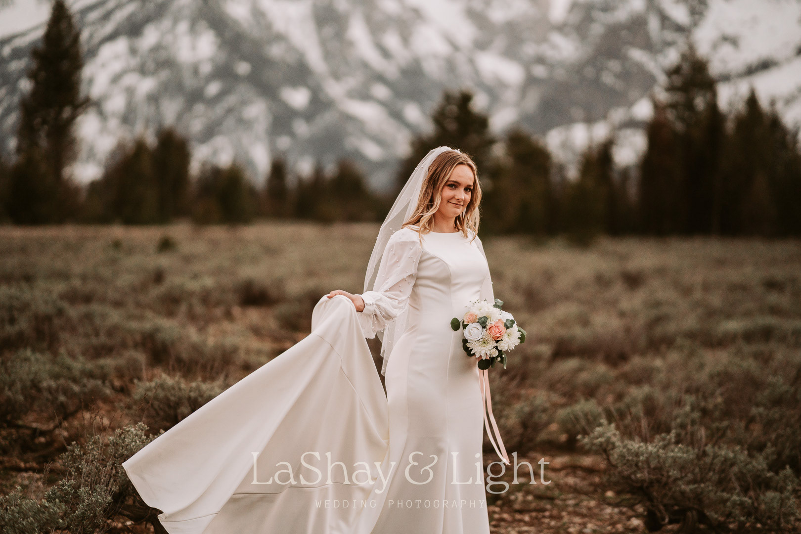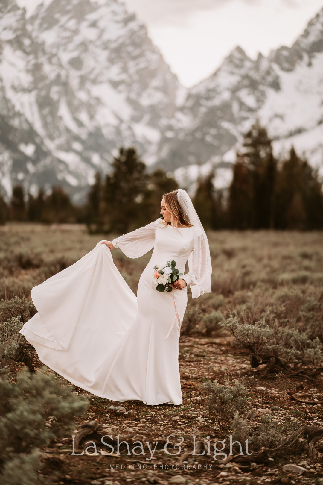 This was one of those bridal sessions that just blew me away. The Grand Teton National Park is one of my favorite locations and always adds a flair of drama to any photo. This wasn't Rachelle and Tanyon's first photoshoot in the Tetons with me. We also did their engagements there! Make sure you check those out too.