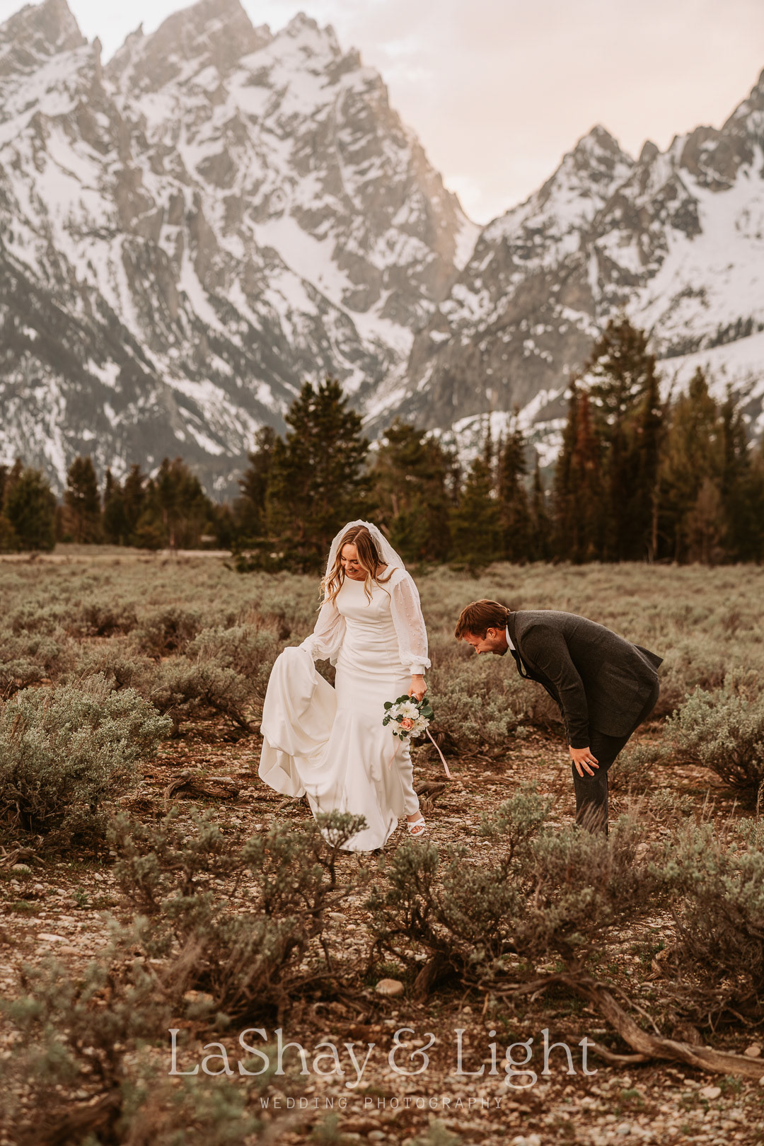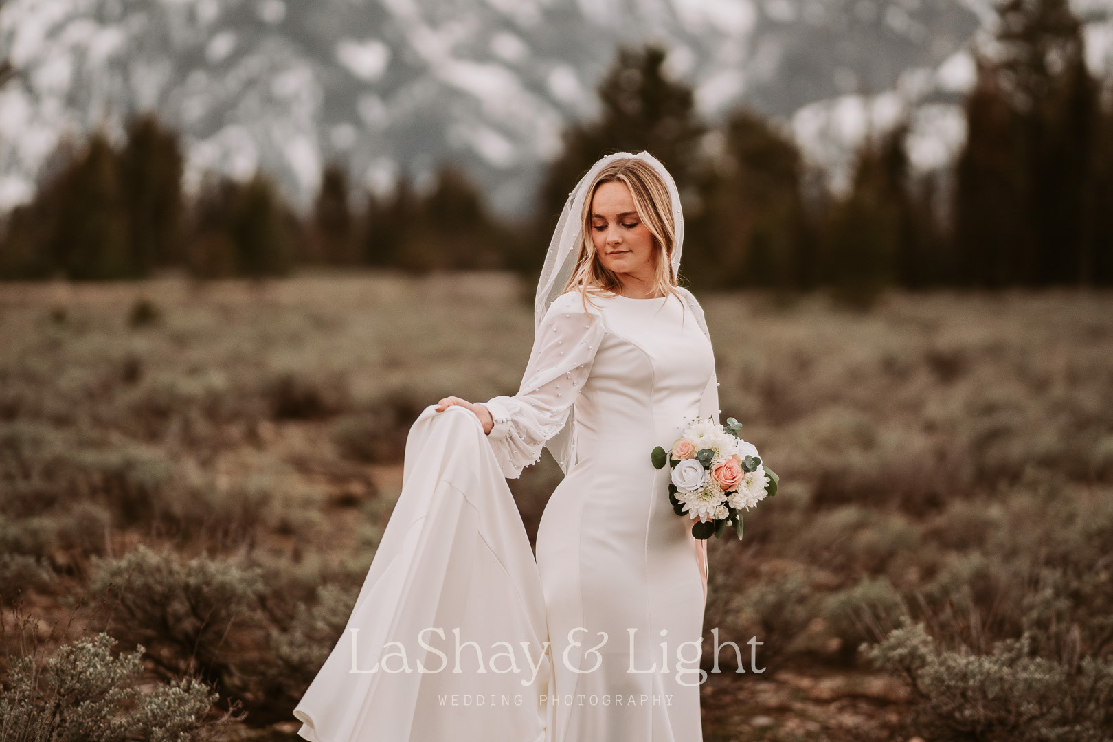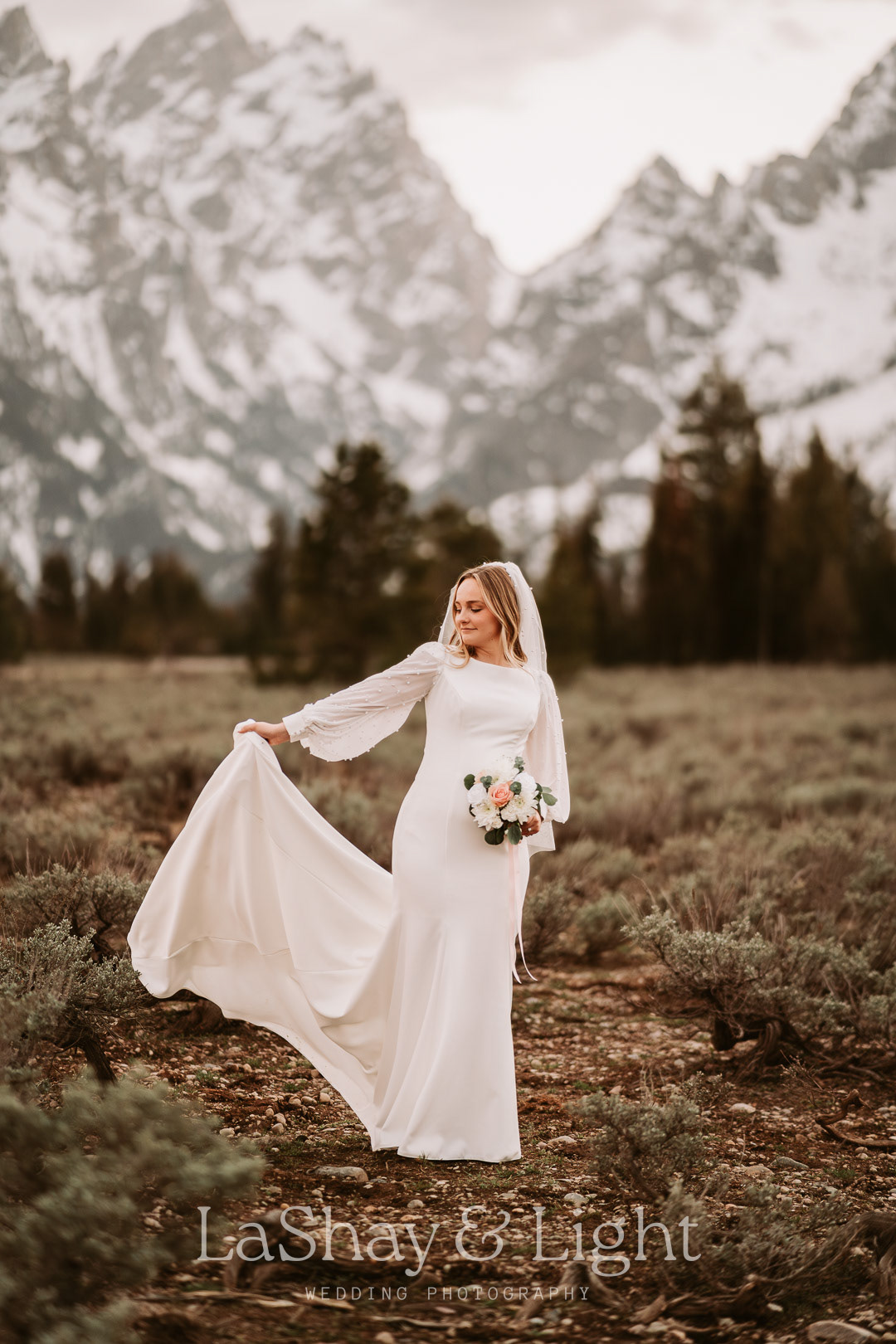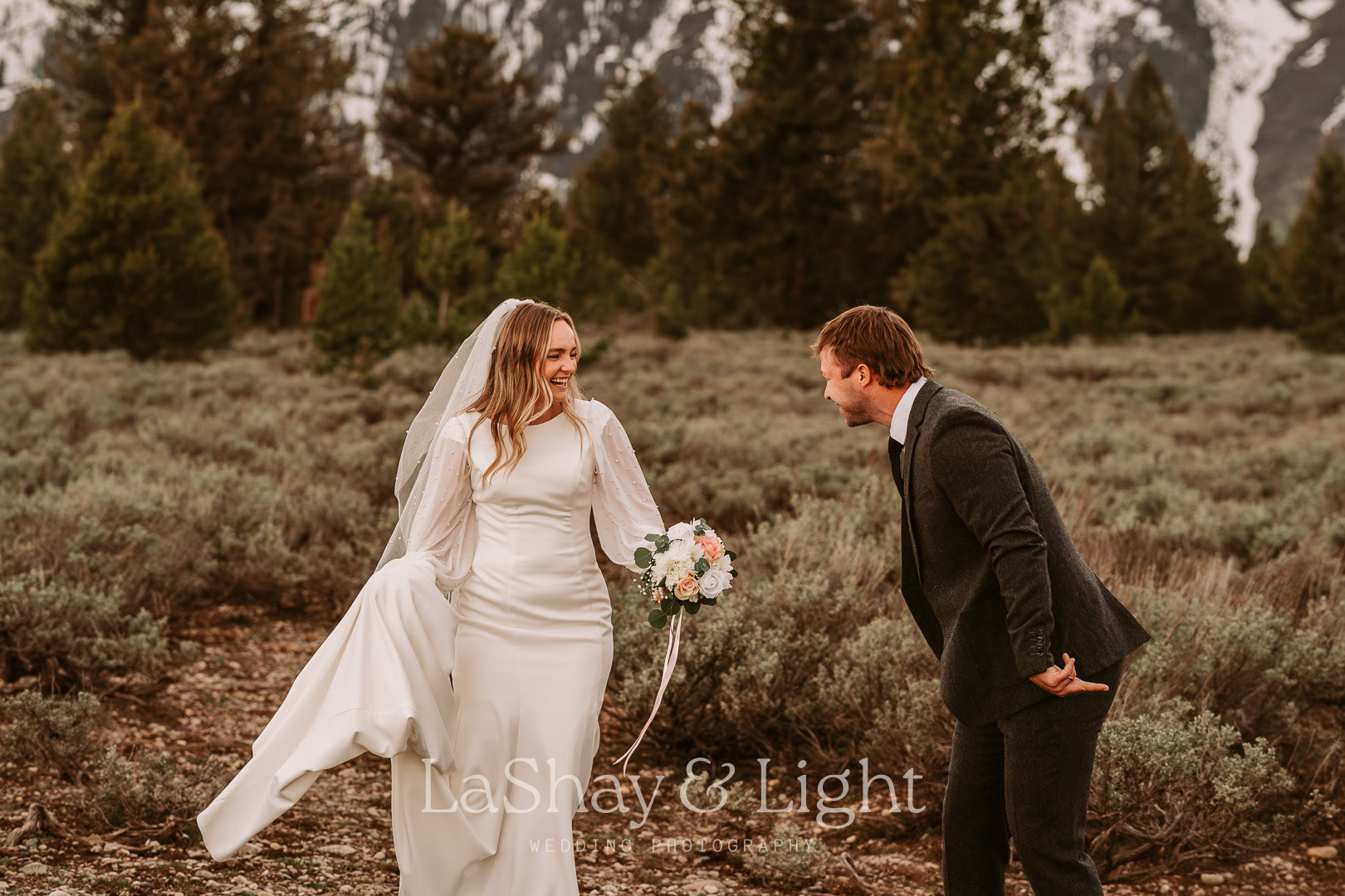 This was one of those bridal sessions that just blew me away. The Grand Teton National Park is one of my favorite locations and always adds a flair of drama to any photo. This wasn't Rachelle and Tanyon's first photoshoot in the Tetons with me. We also did their engagements there! Make sure you check those out too.