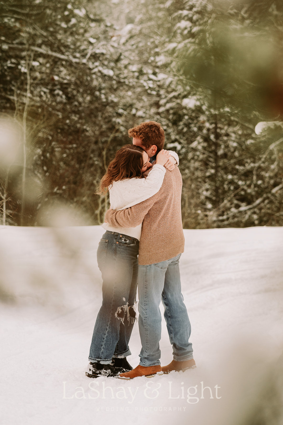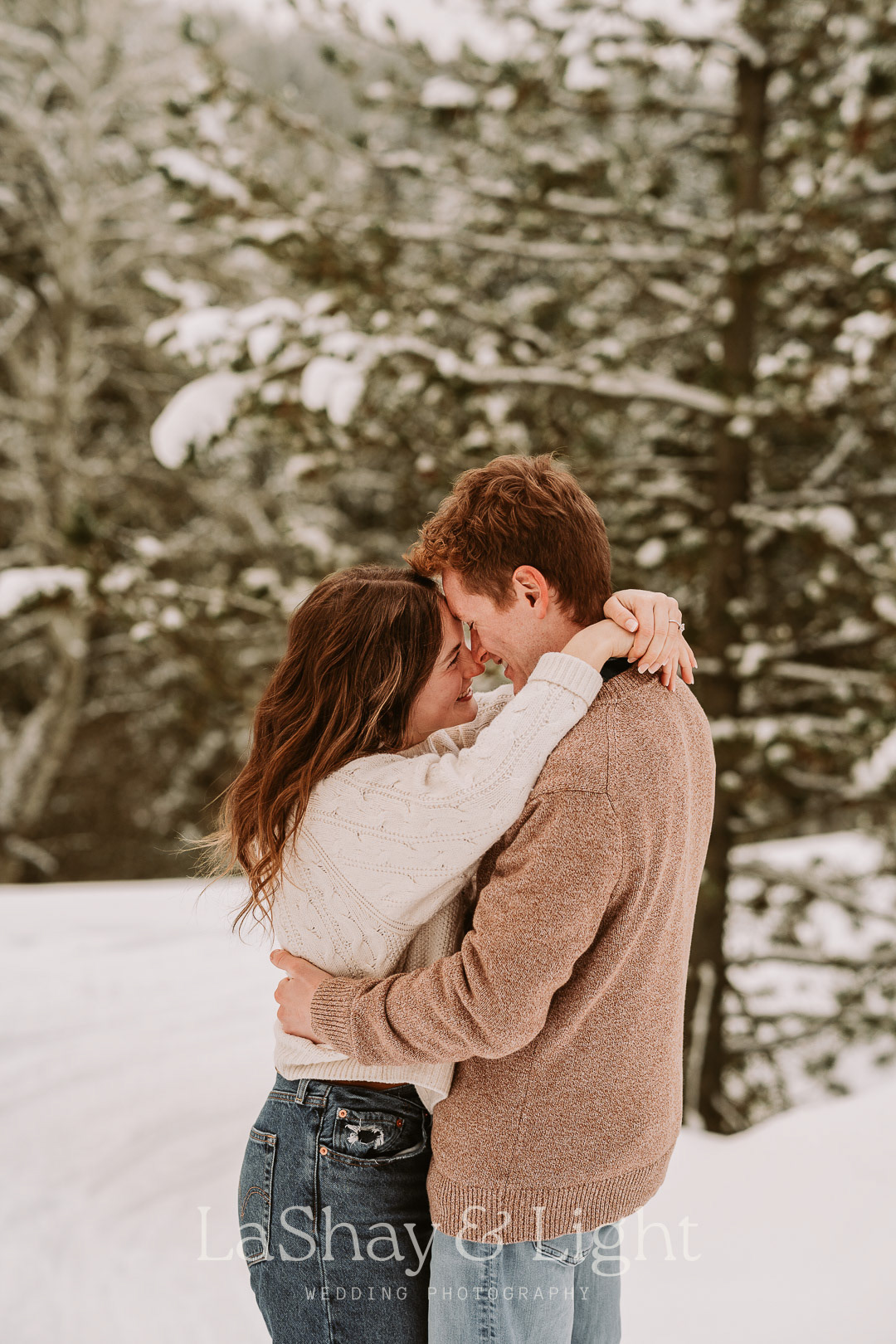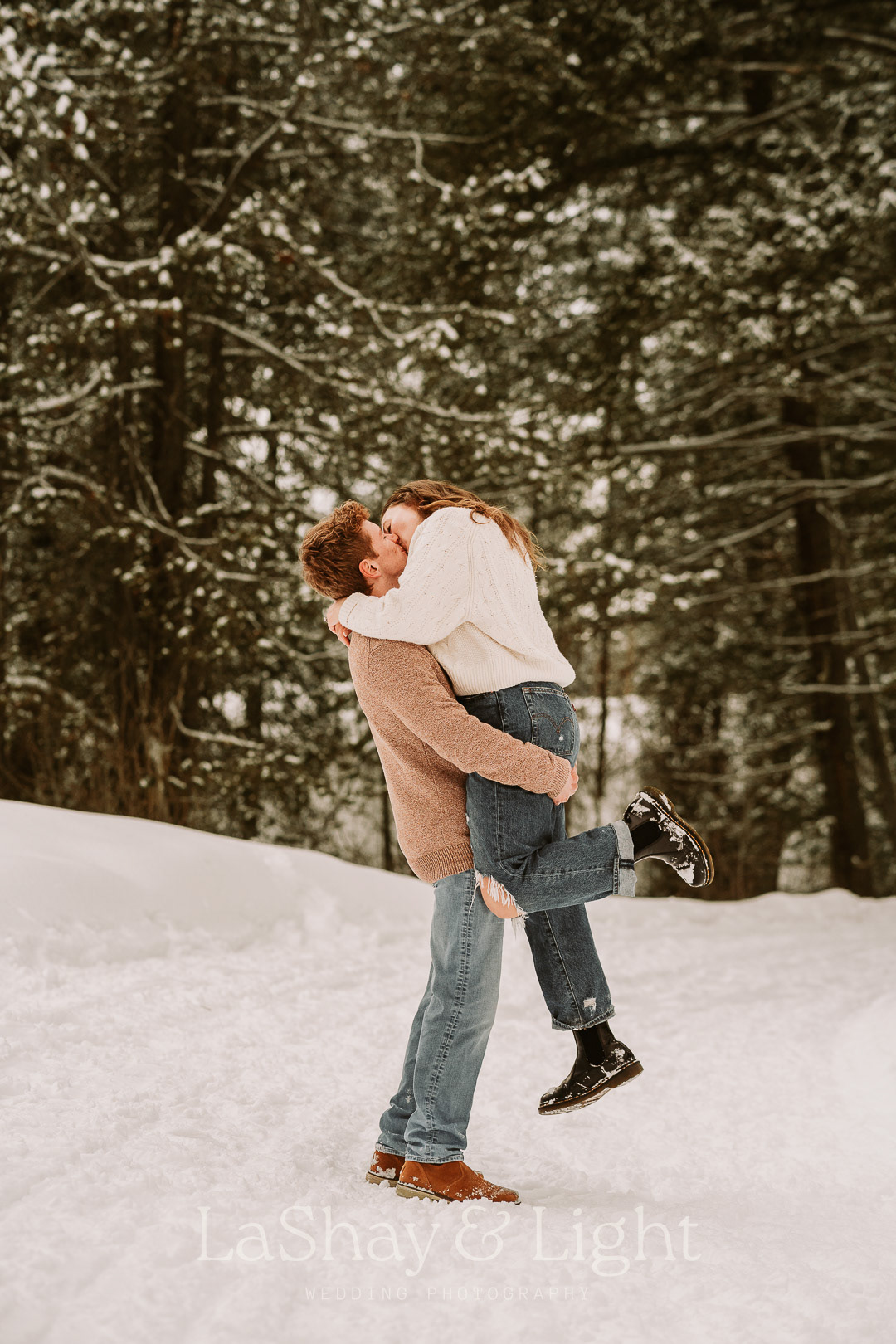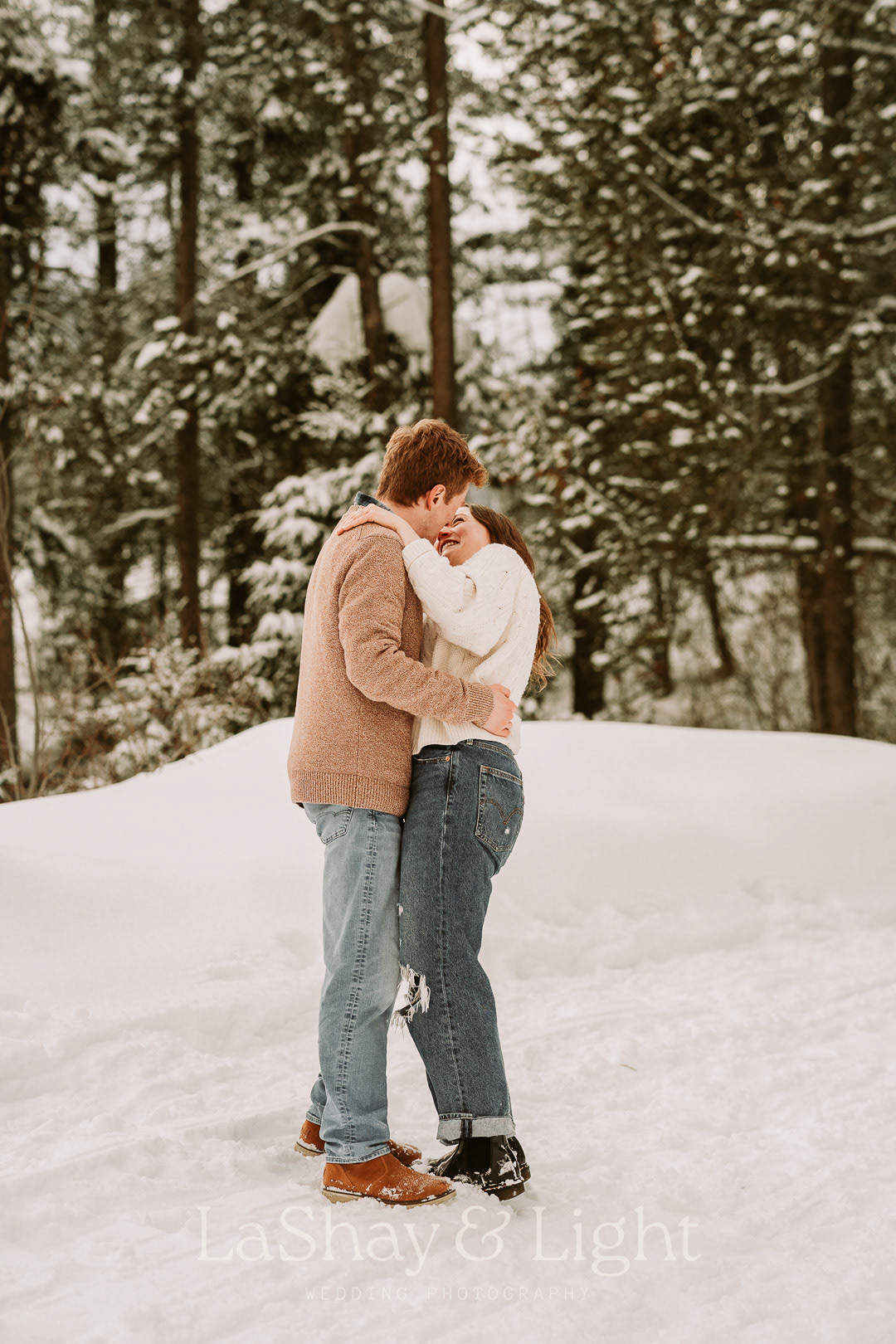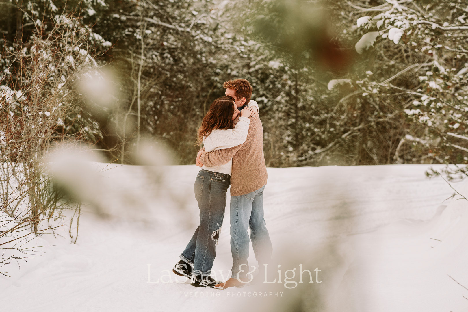 We took these photos right after a big snow storm! The result: dreamy engagement photos with lots of snow!