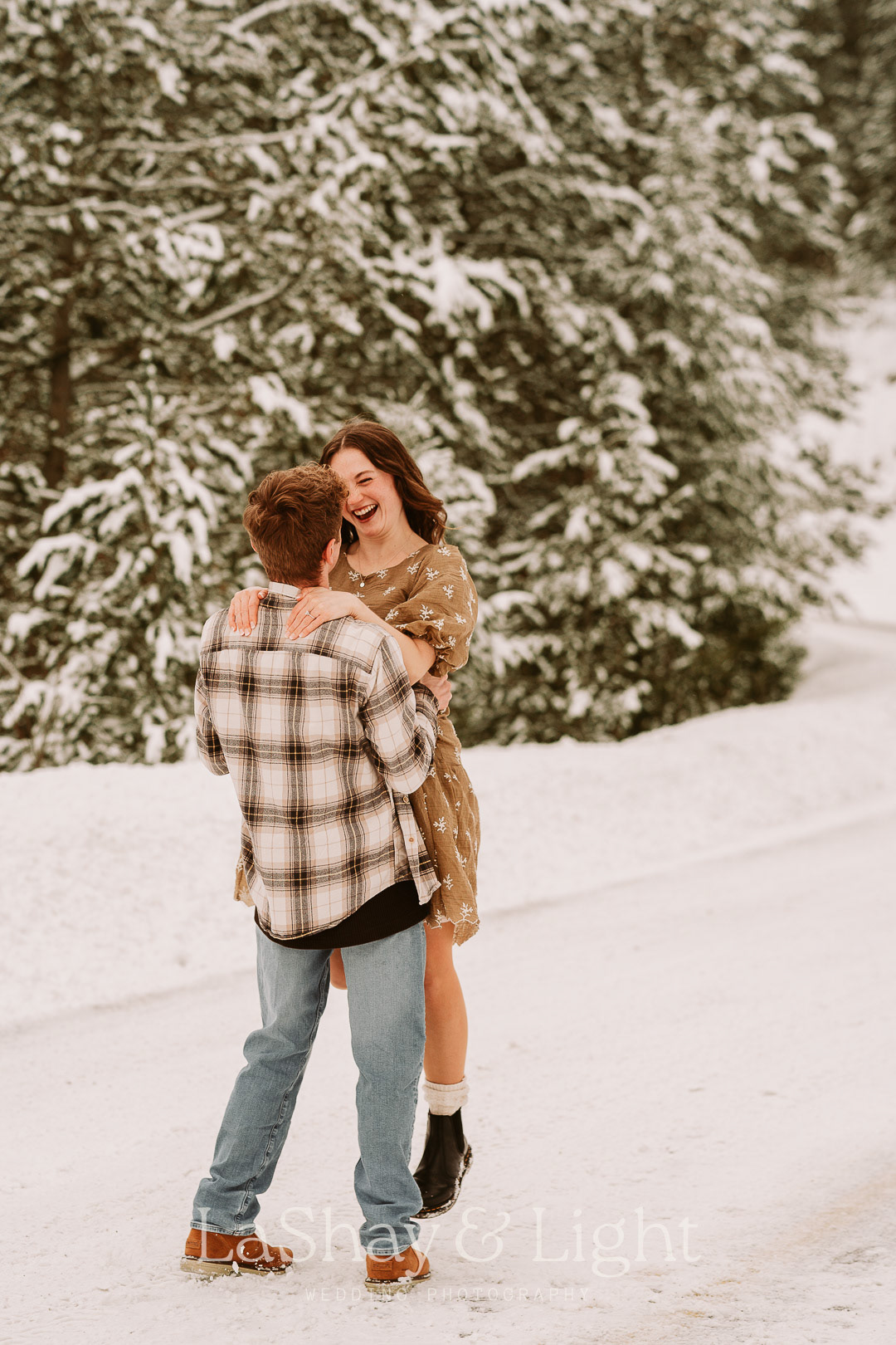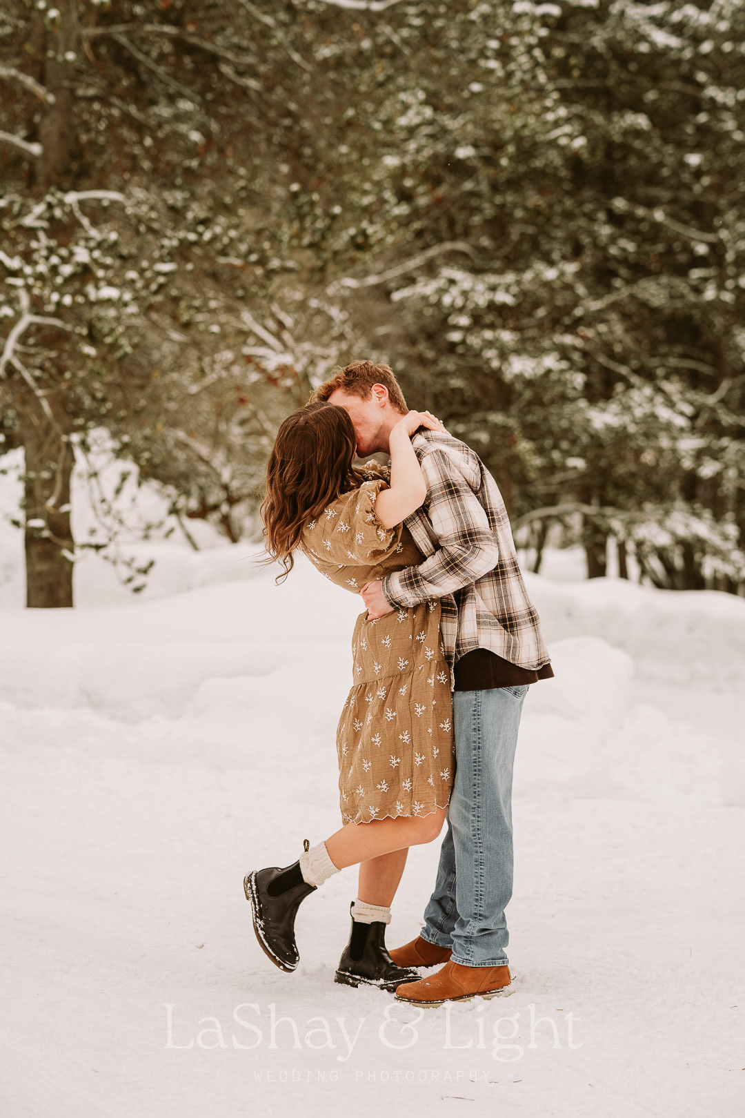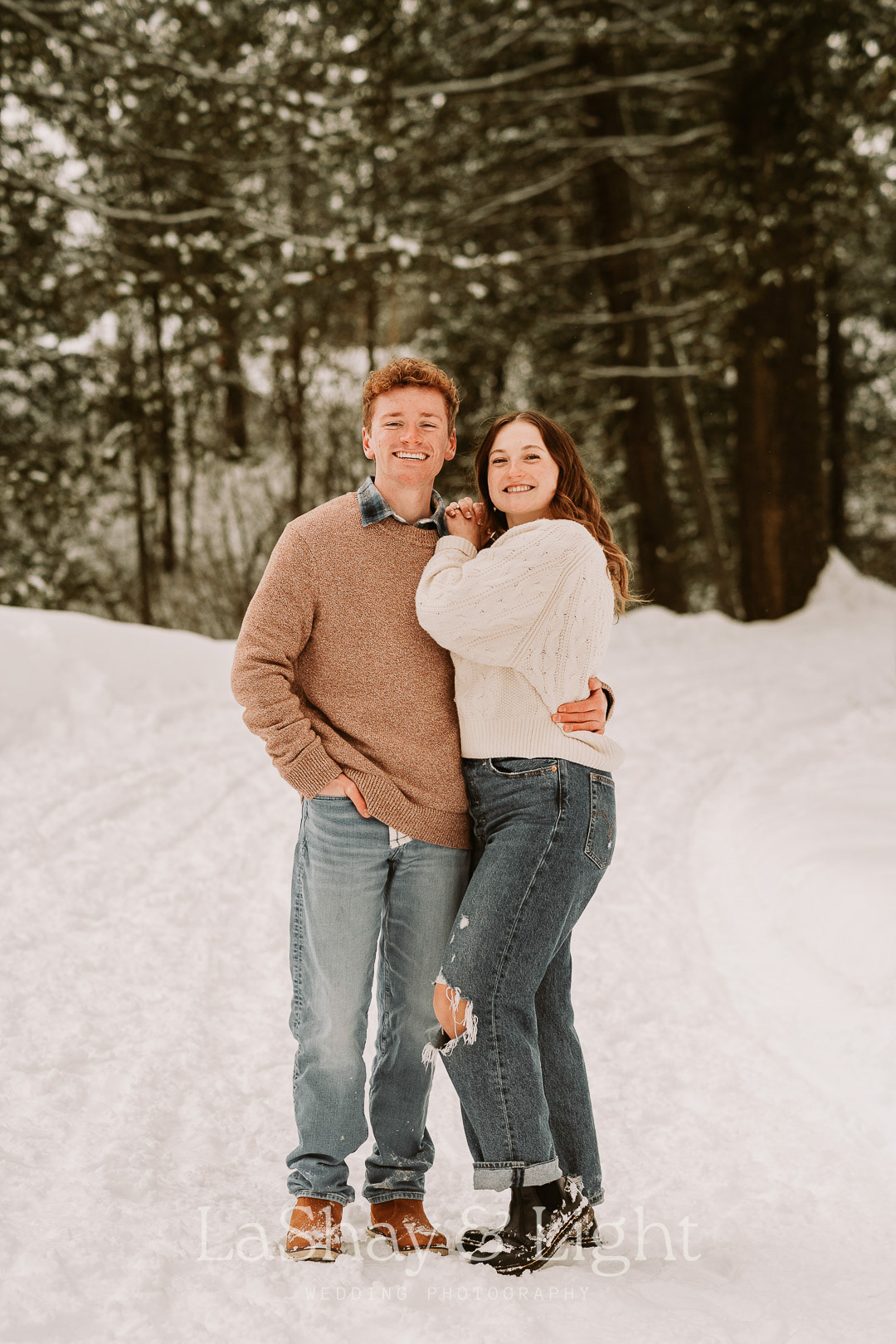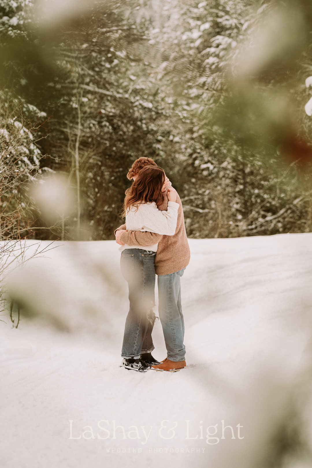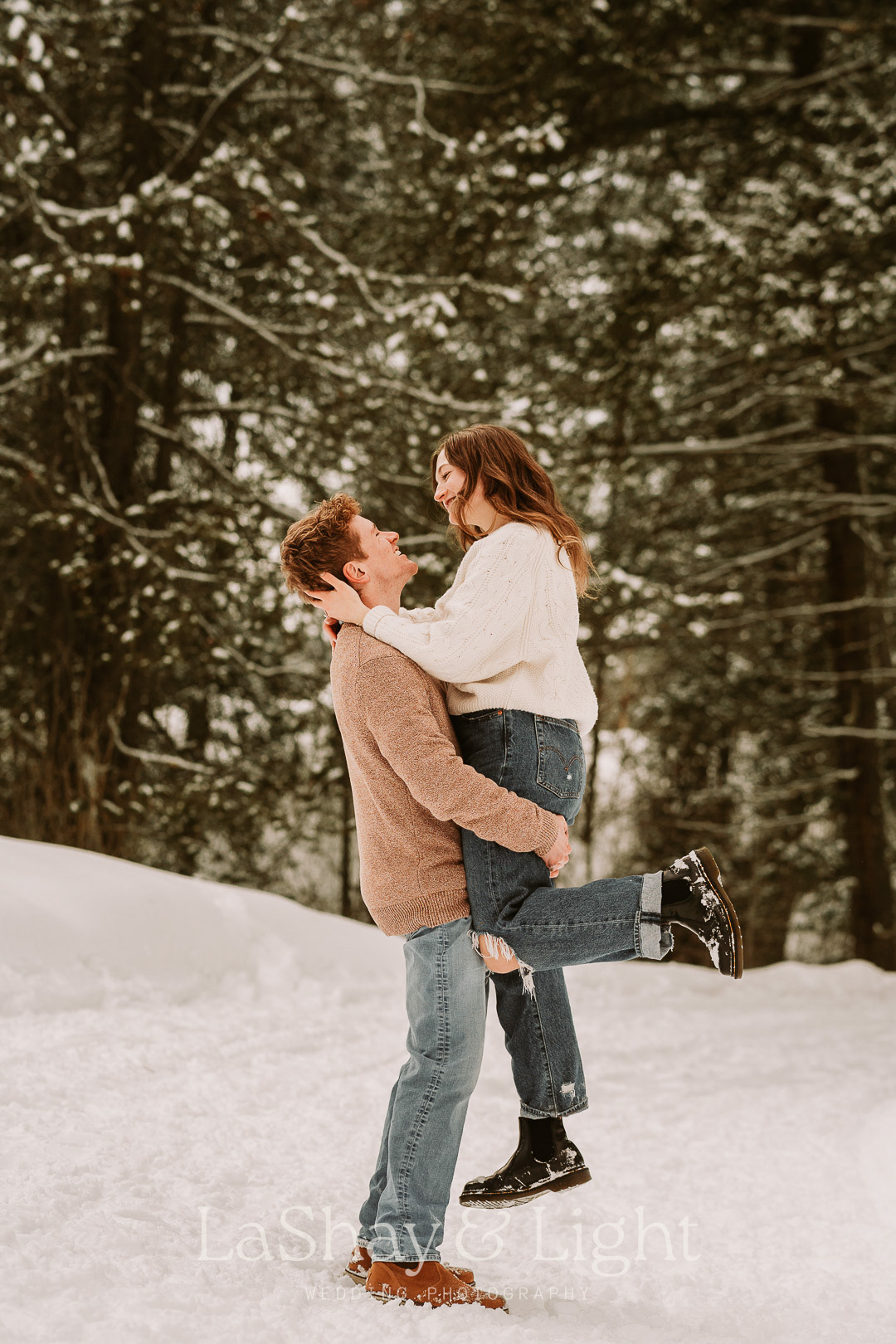 We took these photos right after a big snow storm! The result: dreamy engagement photos with lots of snow!
