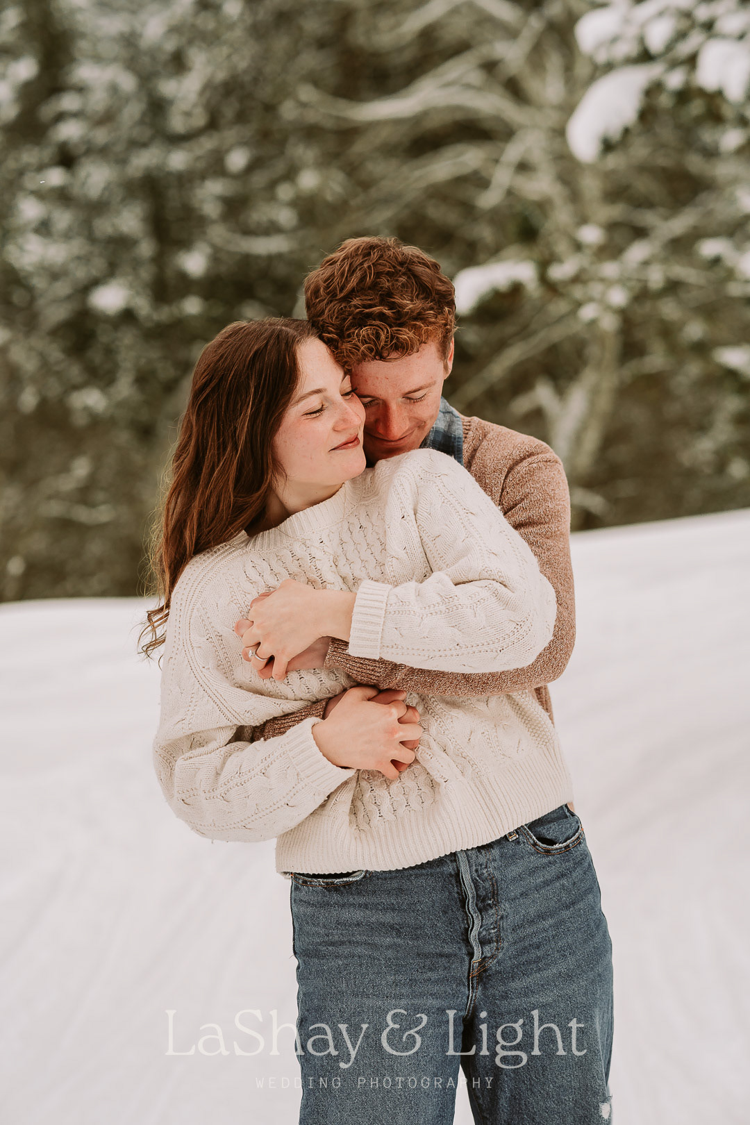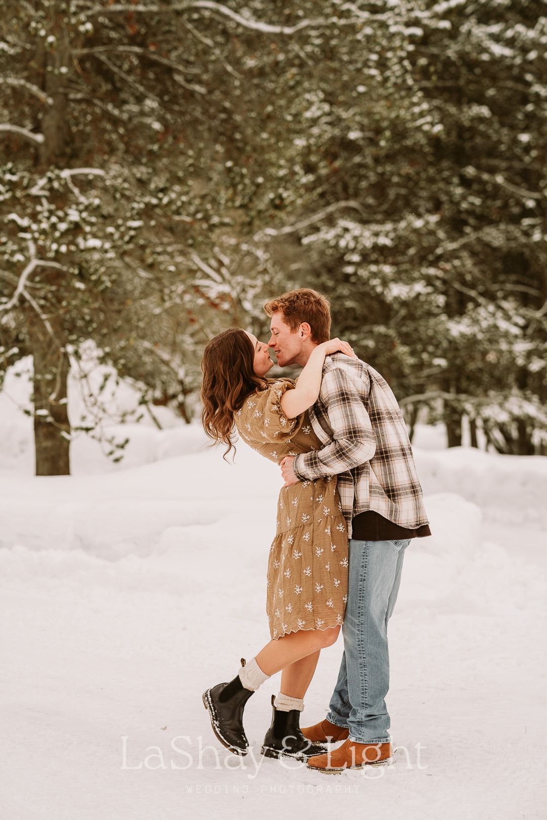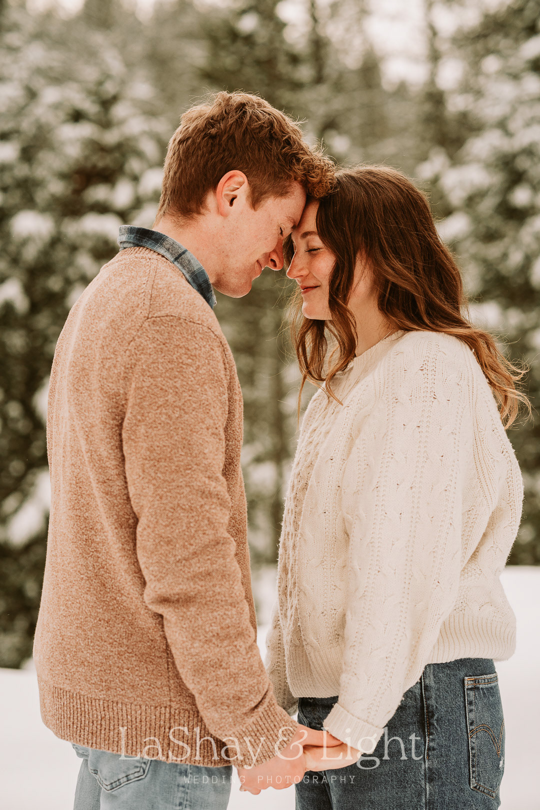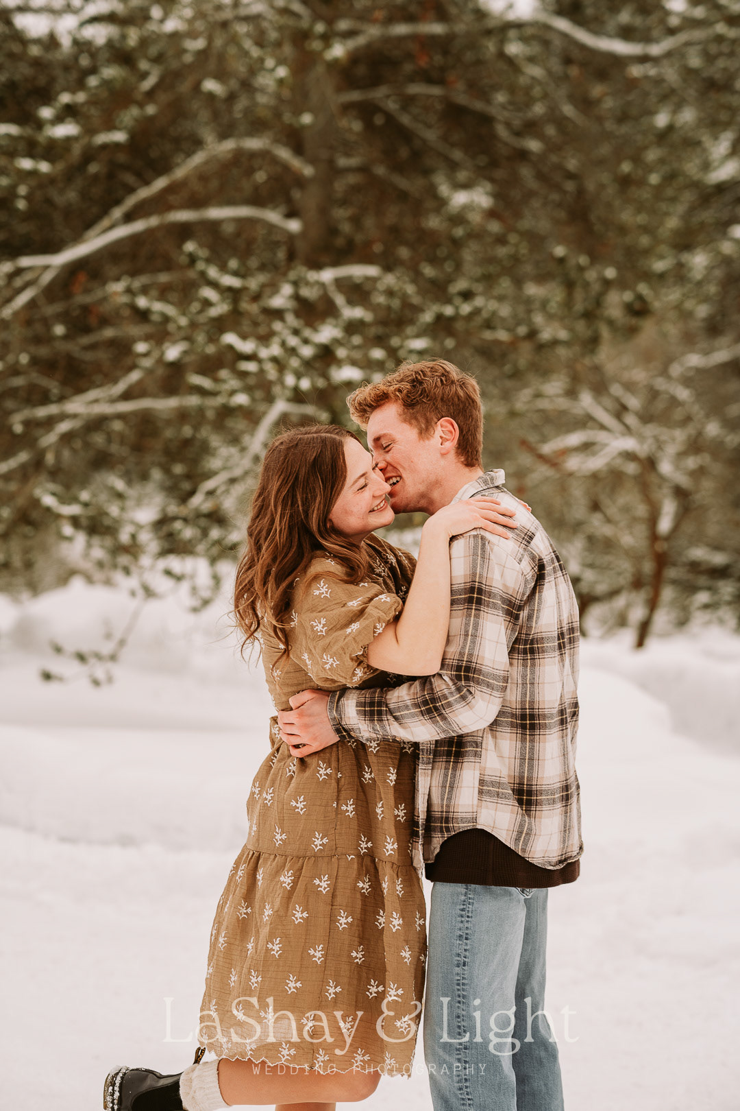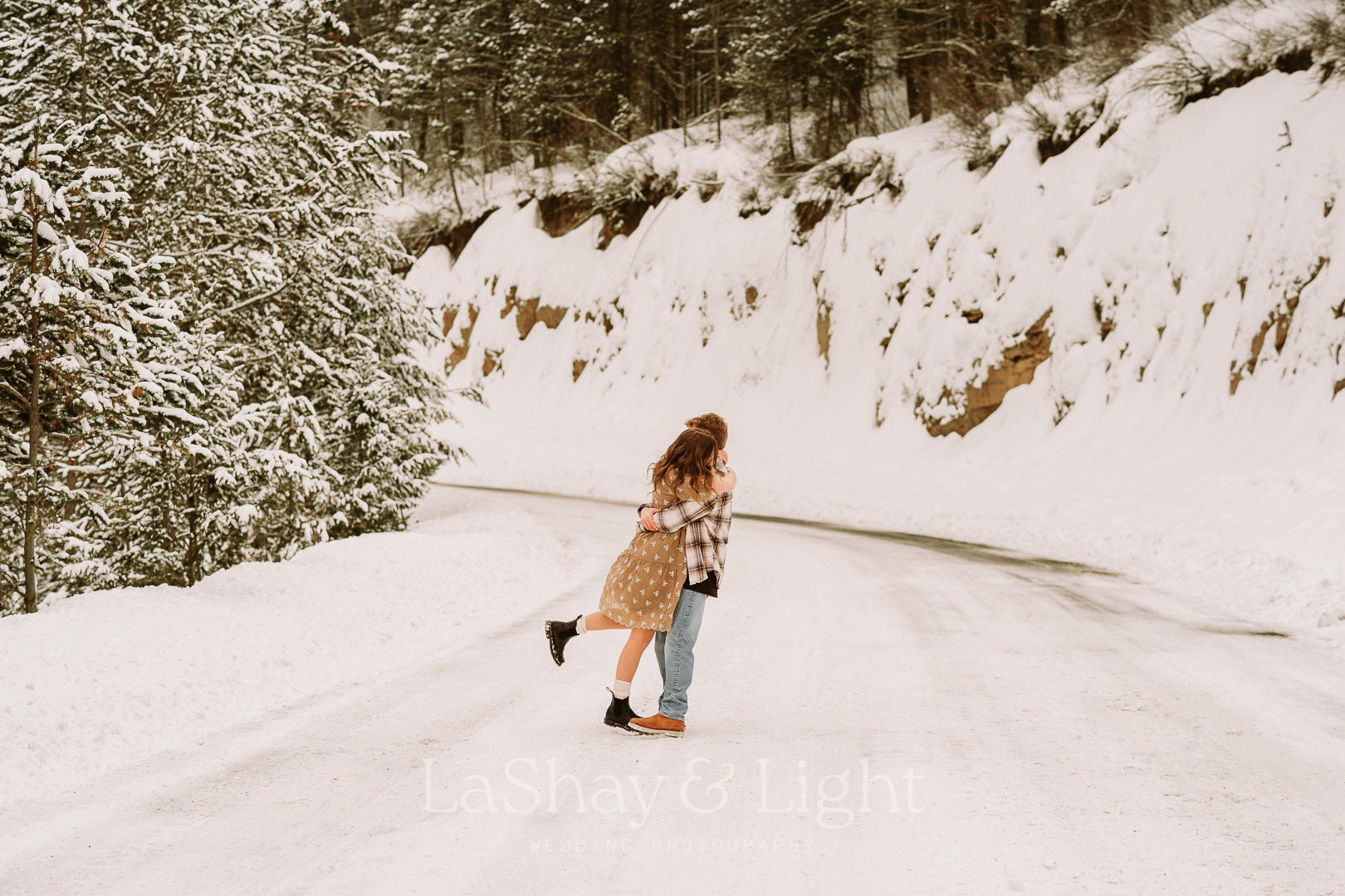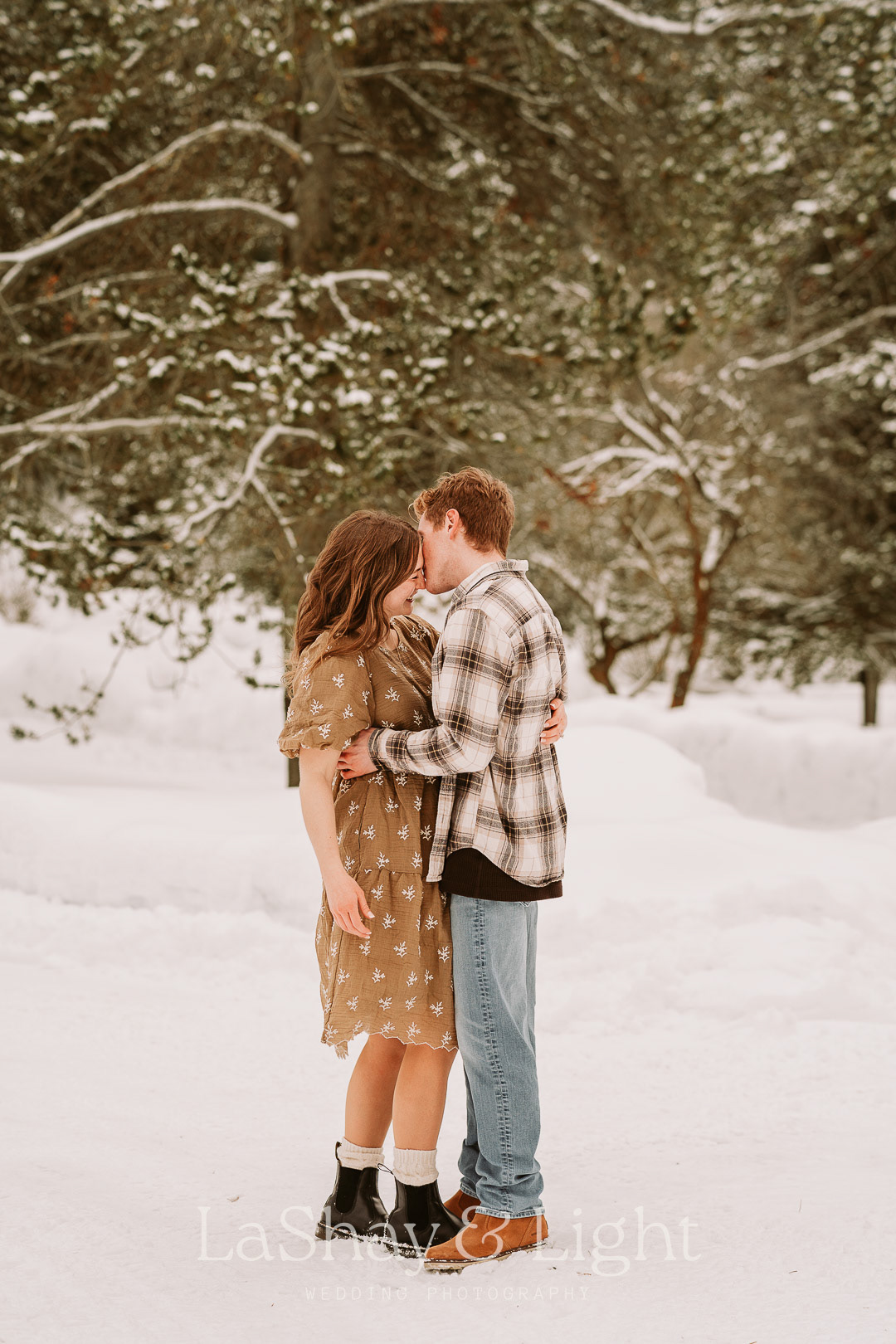 We took these photos right after a big snow storm! The result: dreamy engagement photos with lots of snow!
