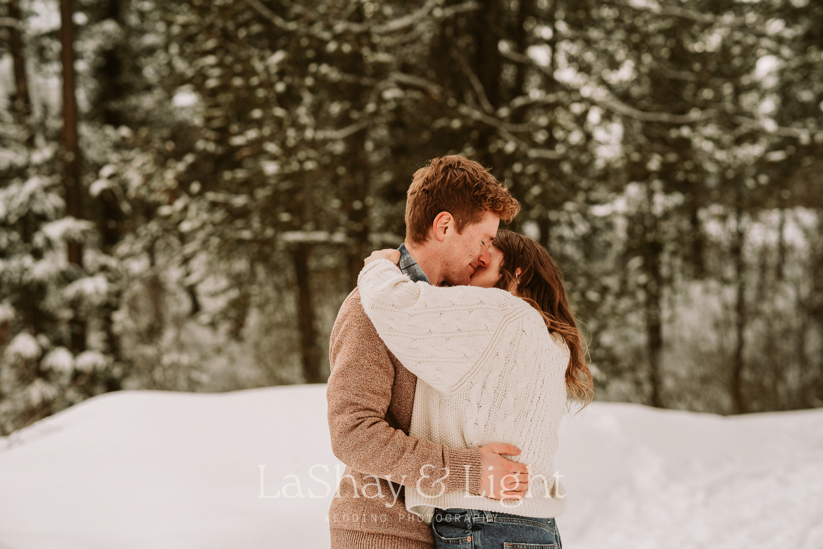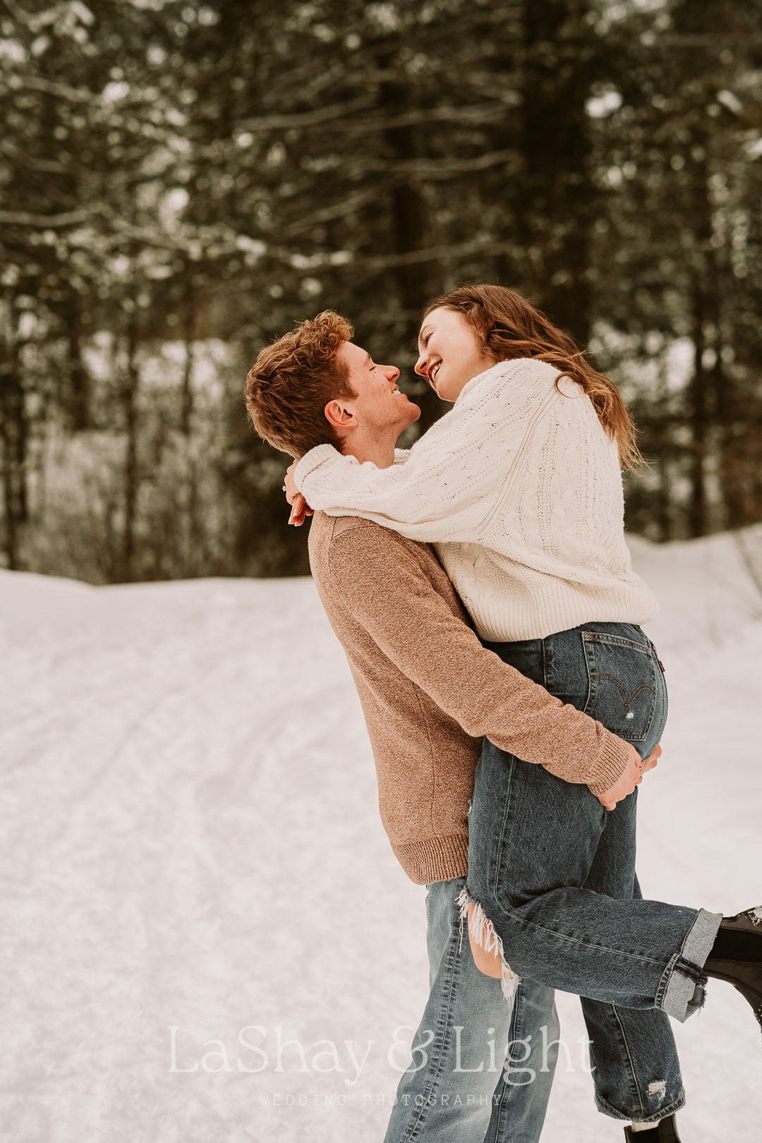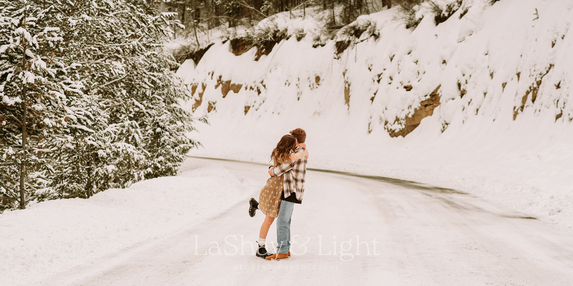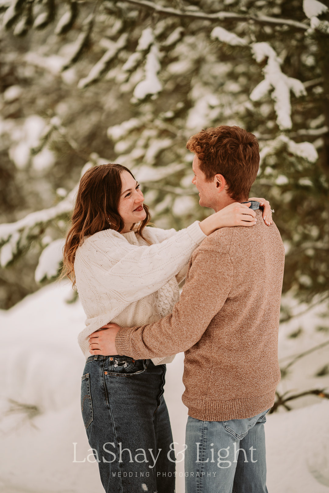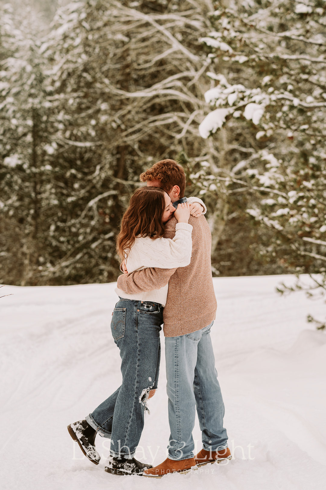 We took these photos right after a big snow storm! The result: dreamy engagement photos with lots of snow!