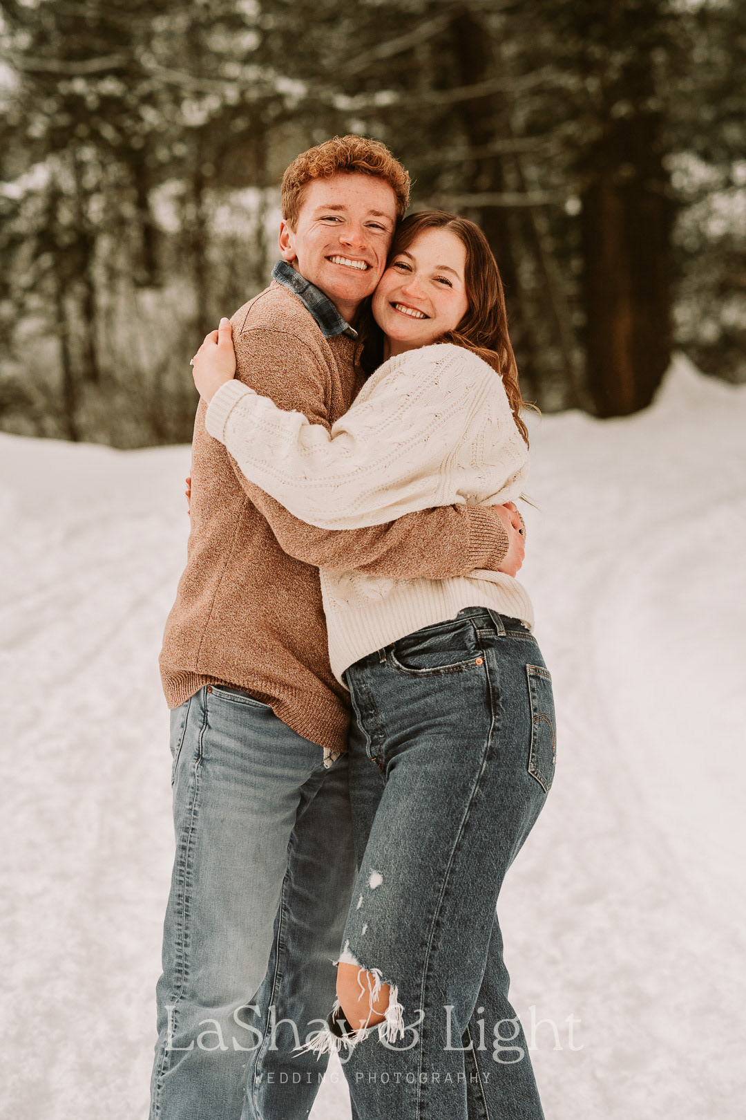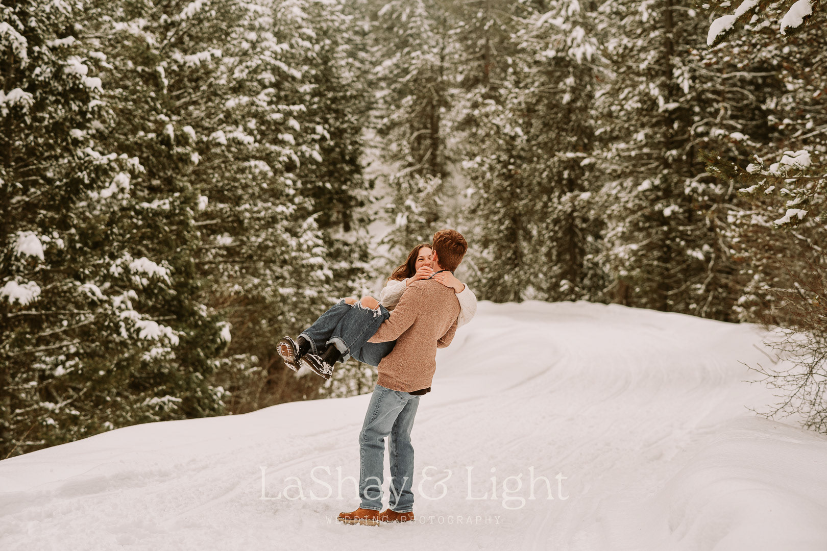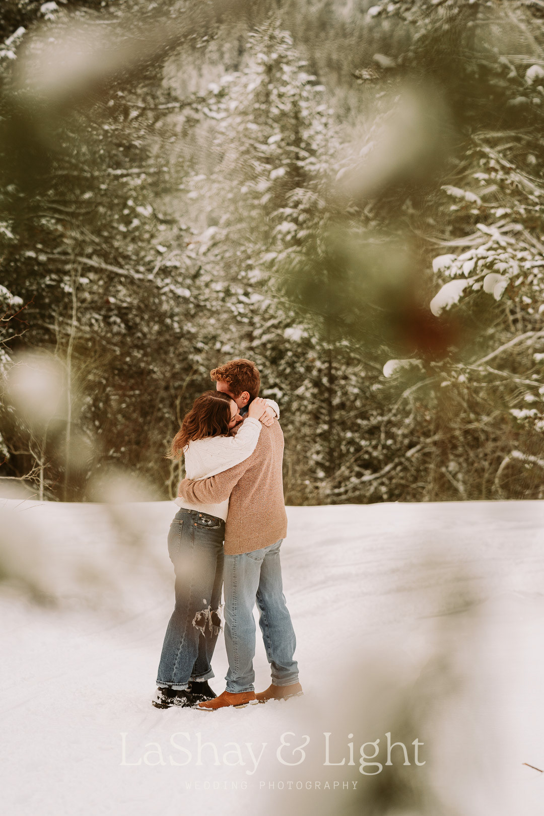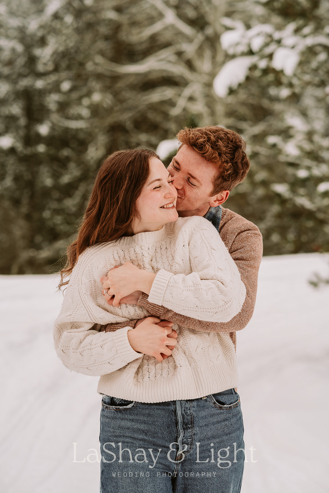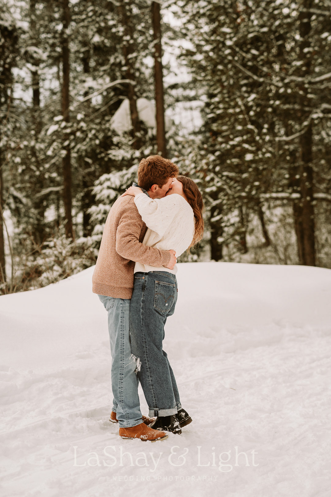 We took these photos right after a big snow storm! The result: dreamy engagement photos with lots of snow!