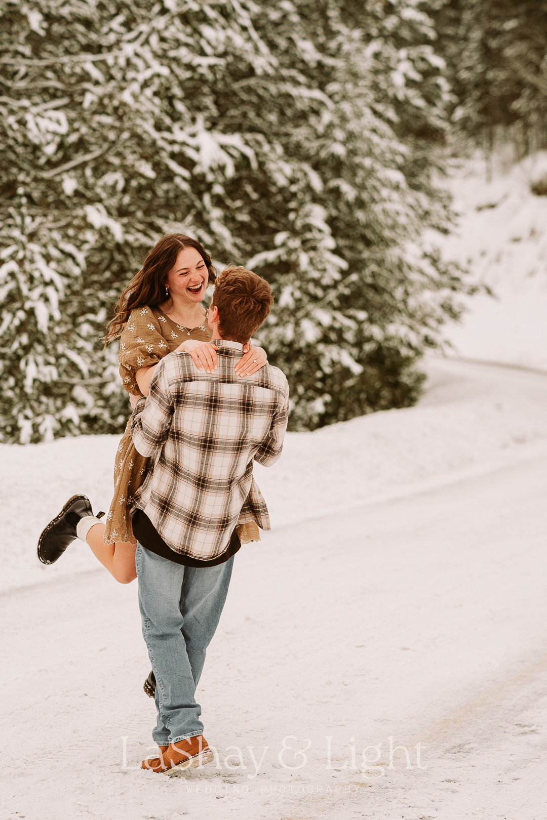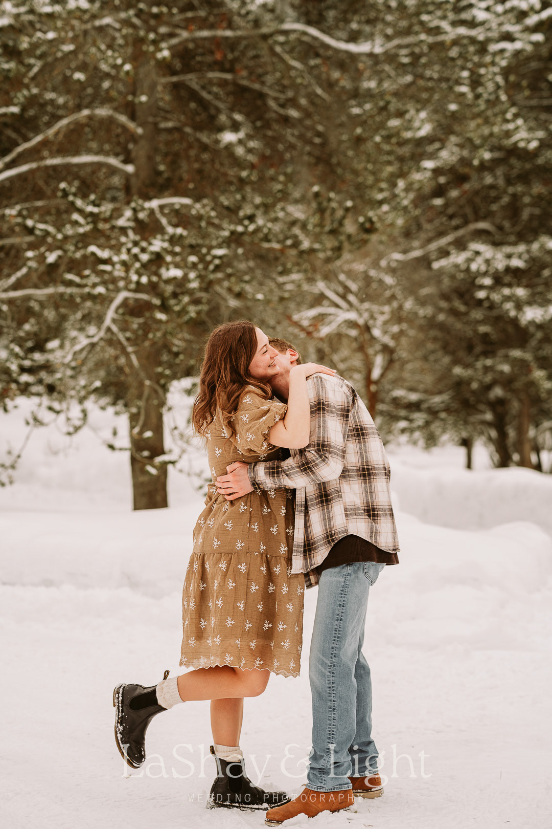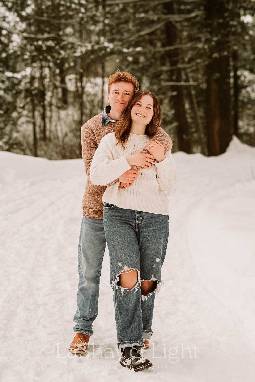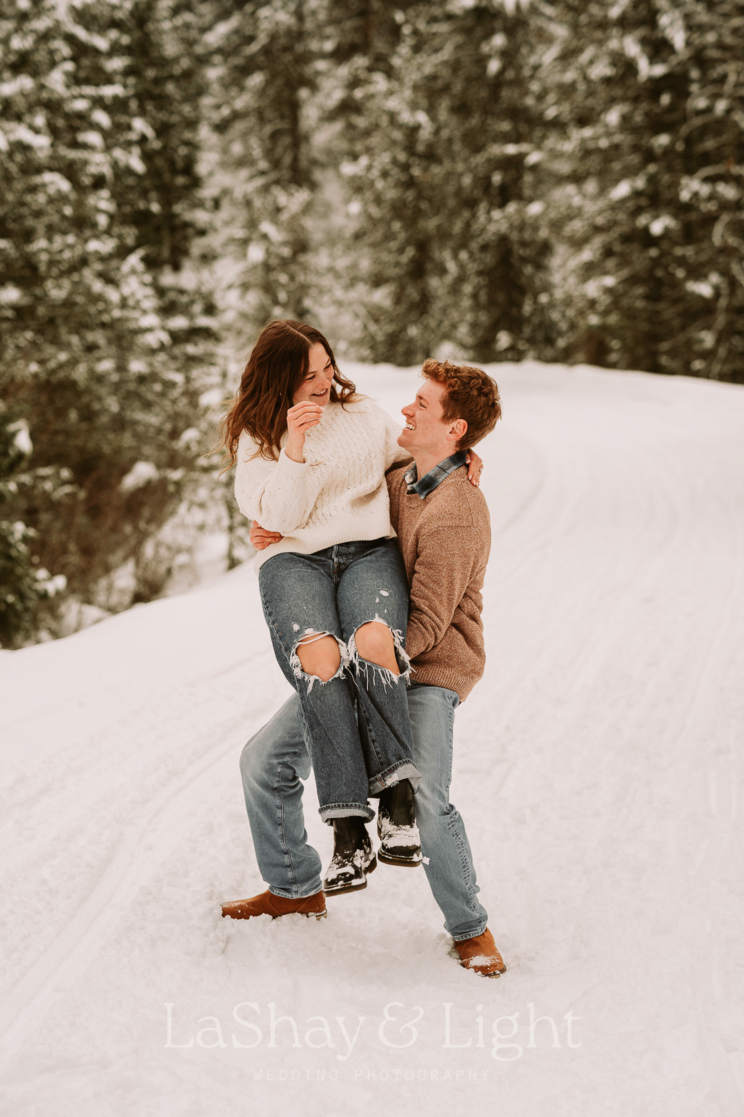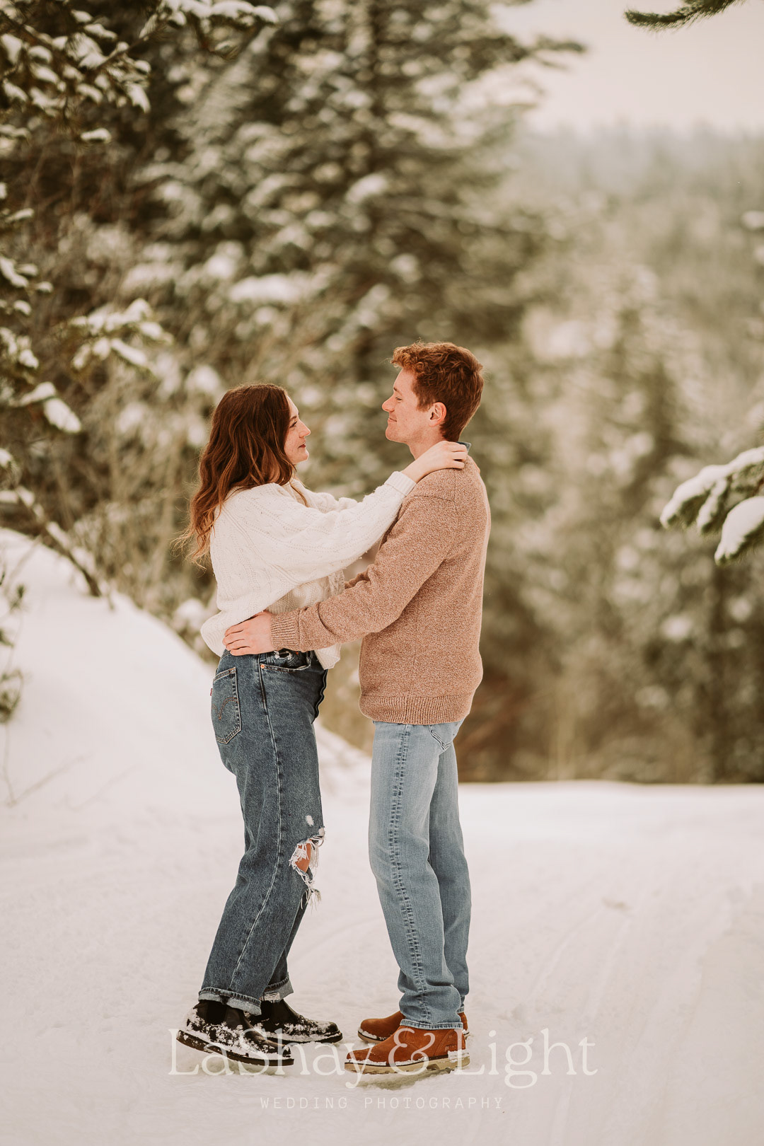 We took these photos right after a big snow storm! The result: dreamy engagement photos with lots of snow!