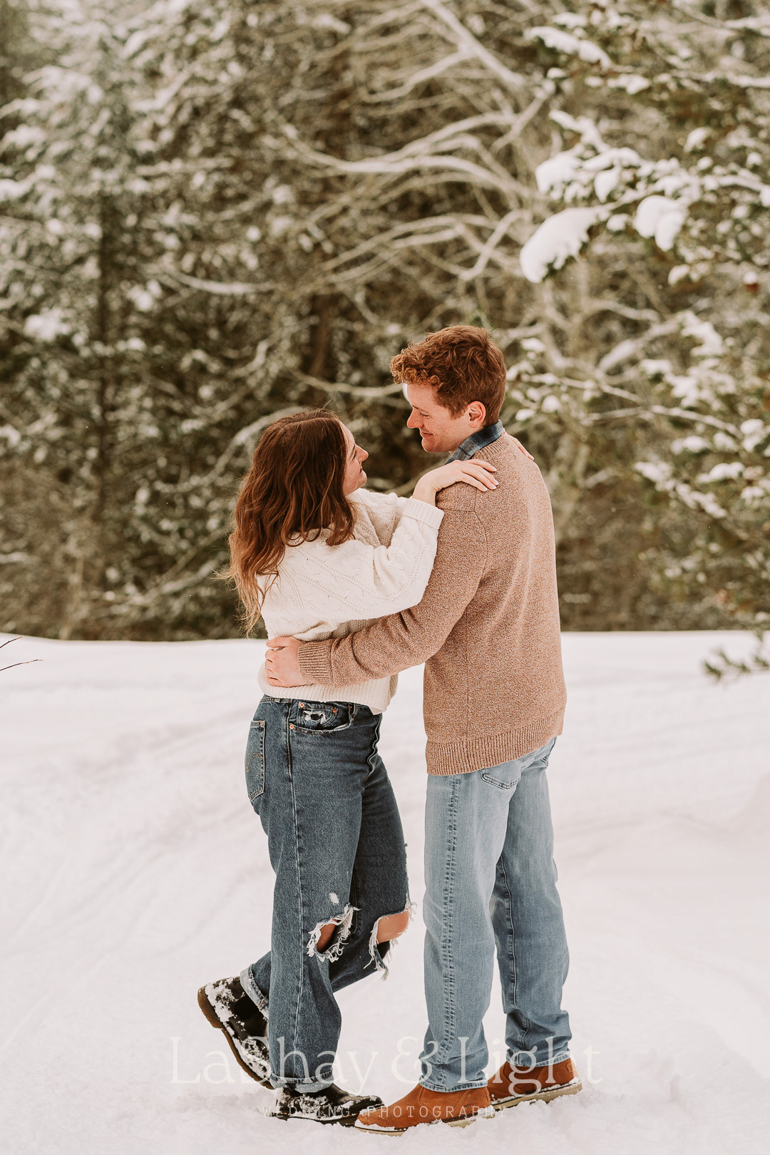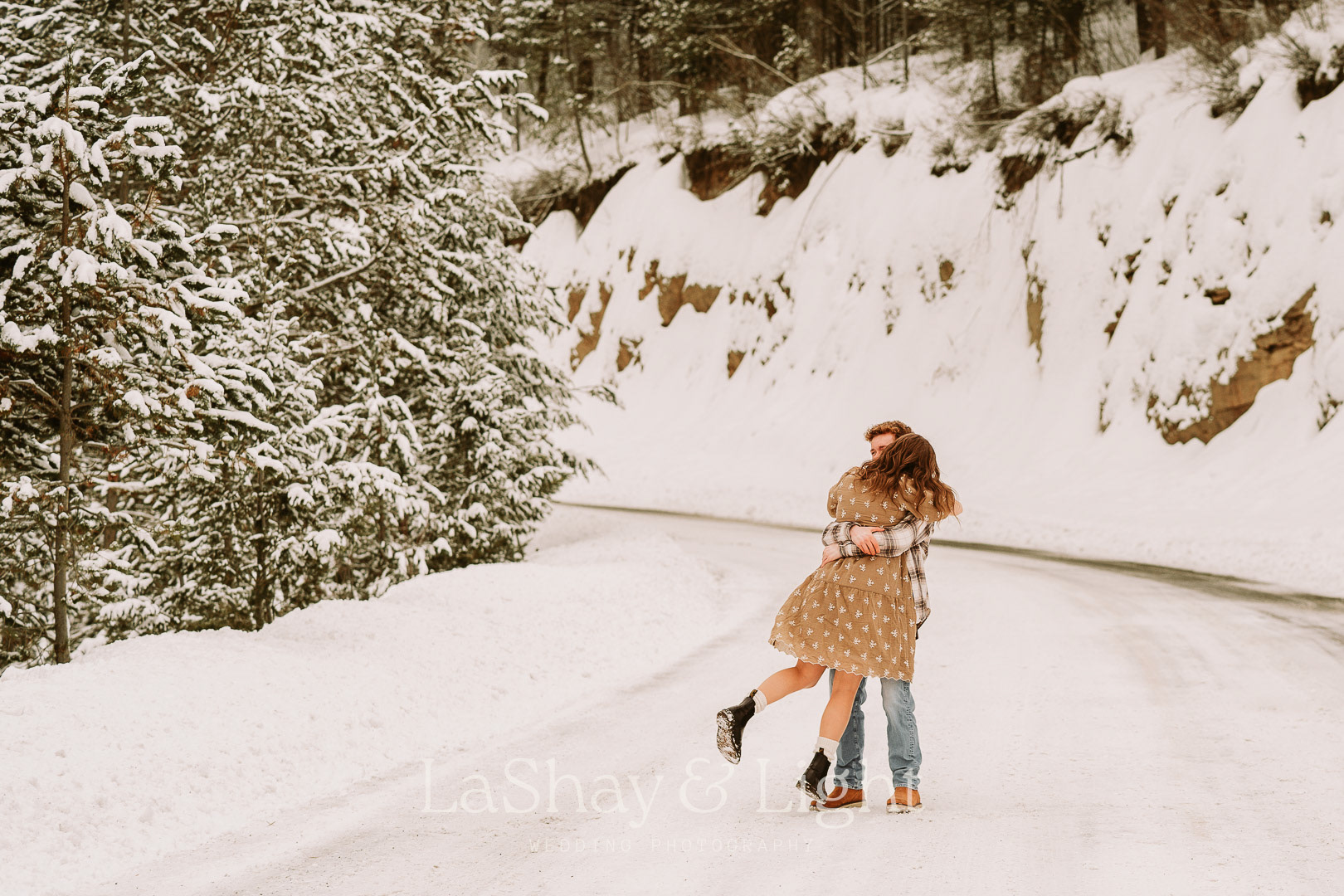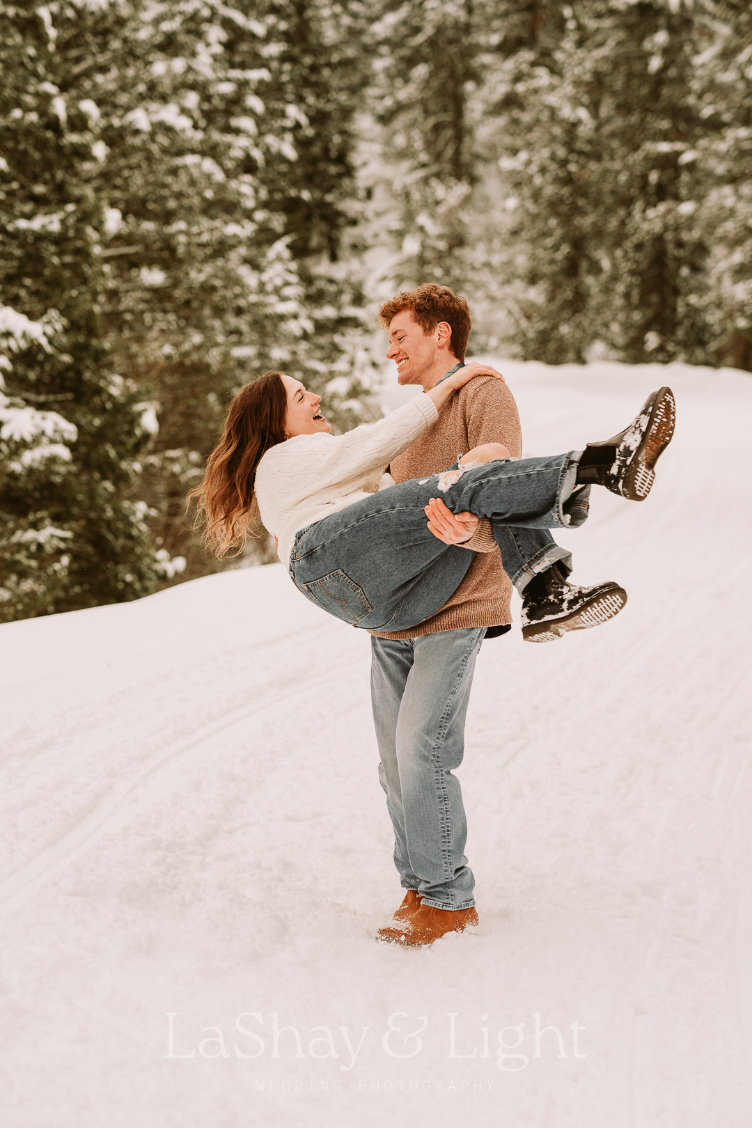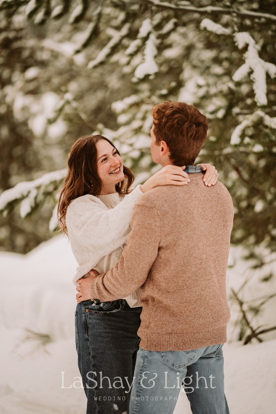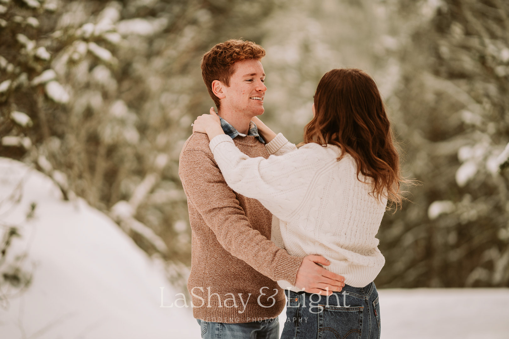 We took these photos right after a big snow storm! The result: dreamy engagement photos with lots of snow!