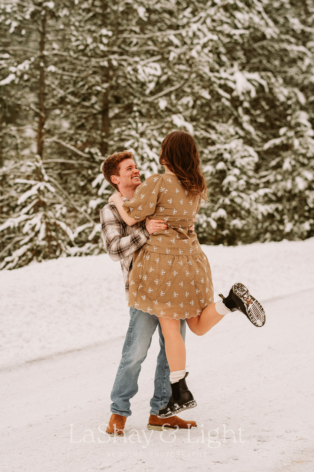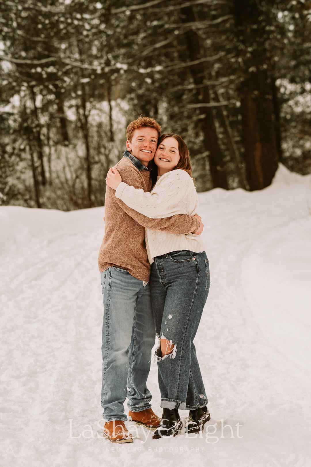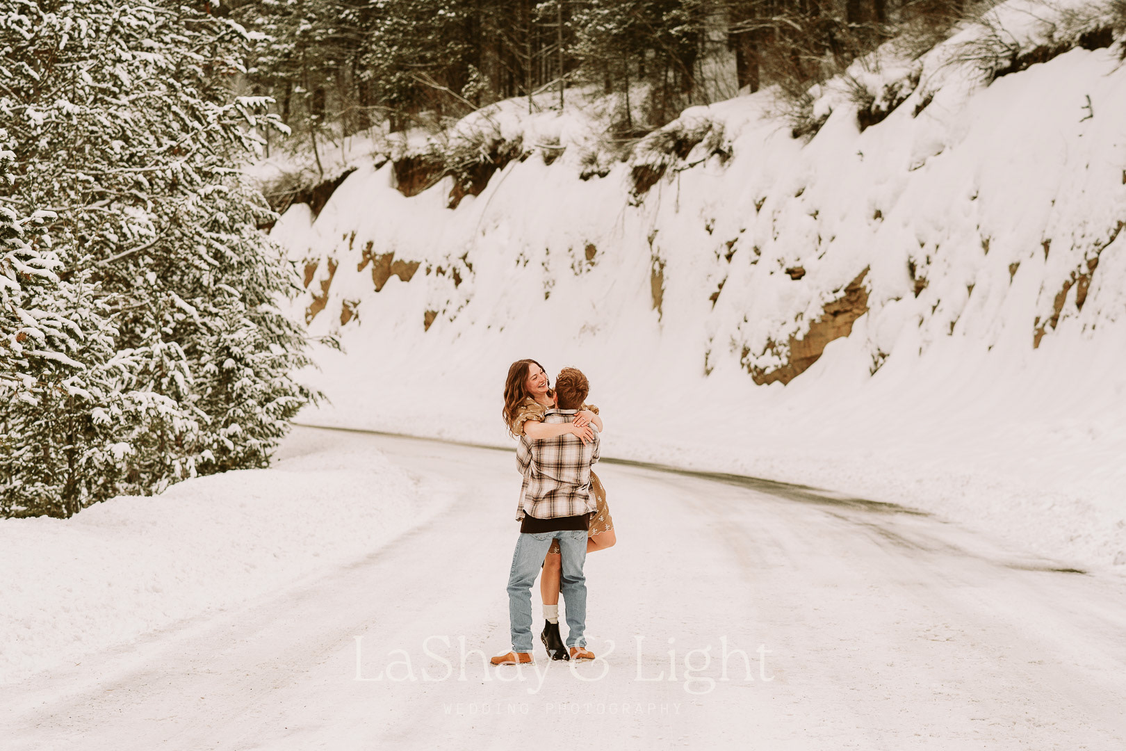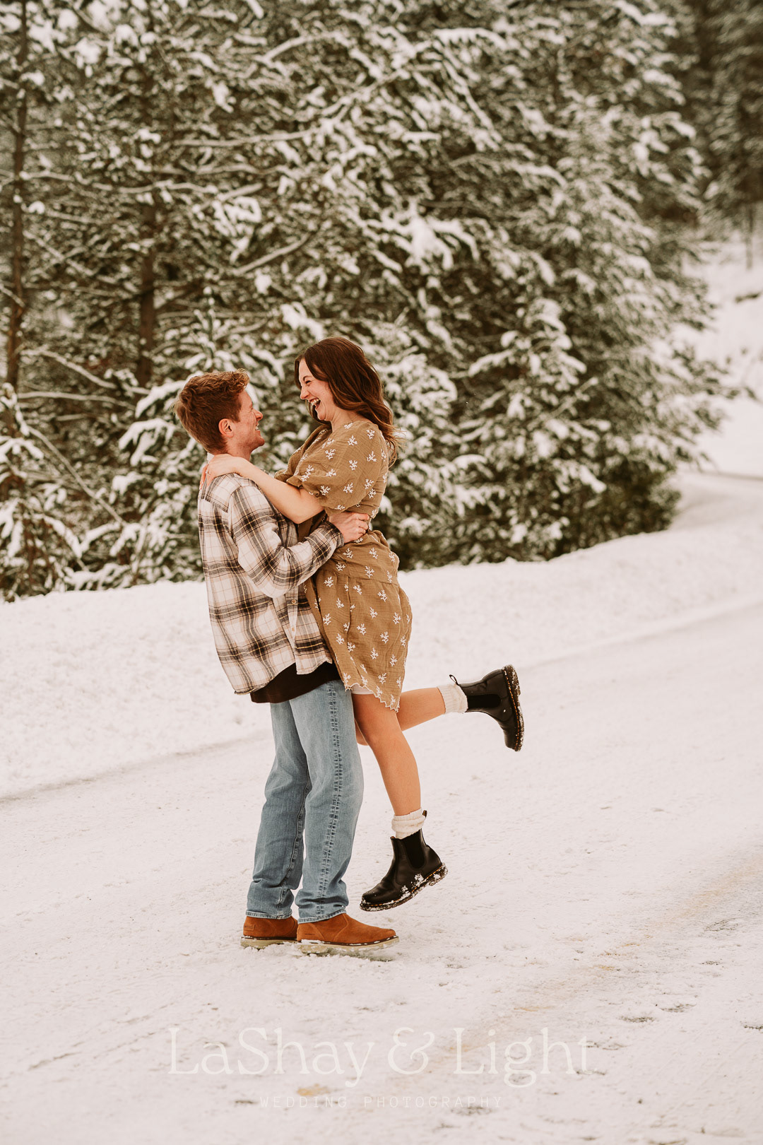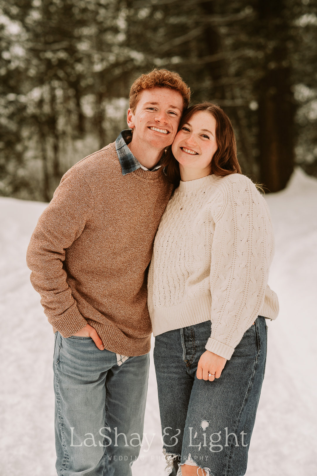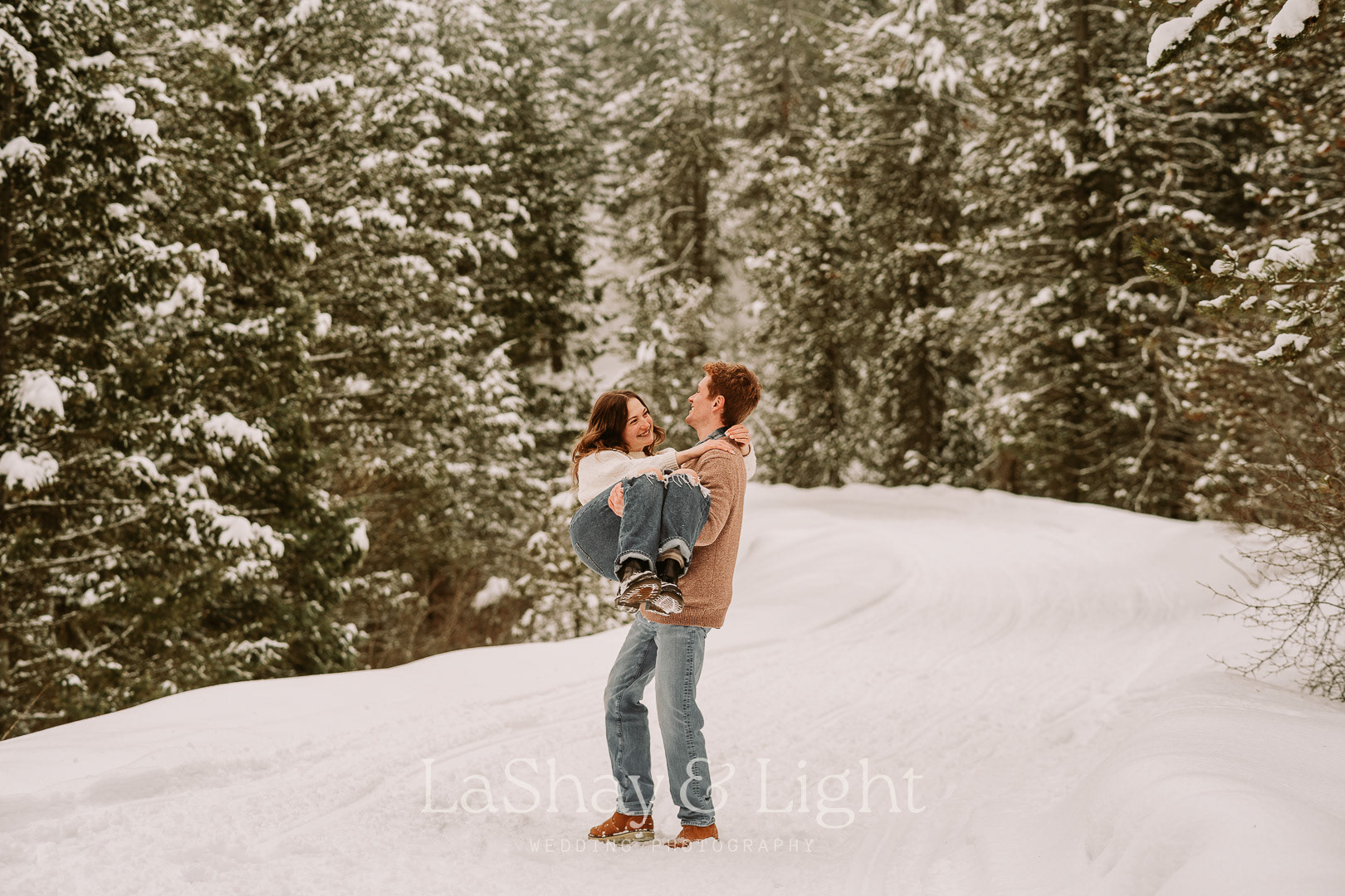 We took these photos right after a big snow storm! The result: dreamy engagement photos with lots of snow!