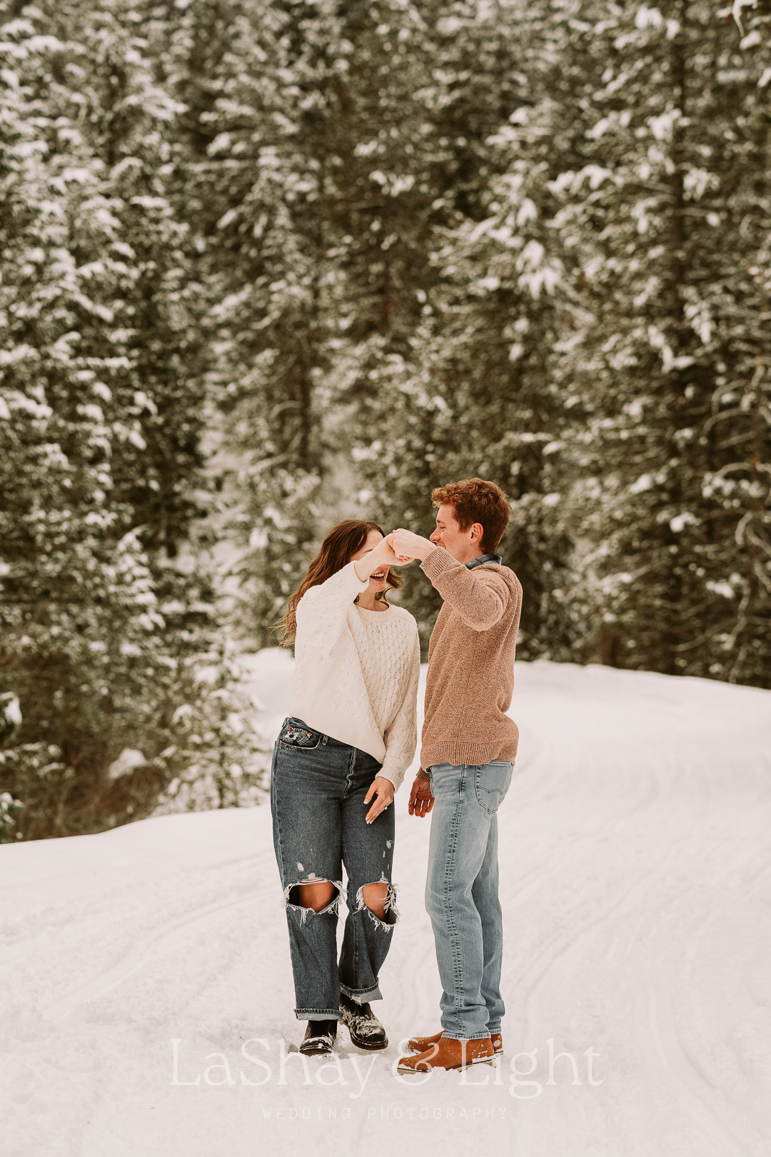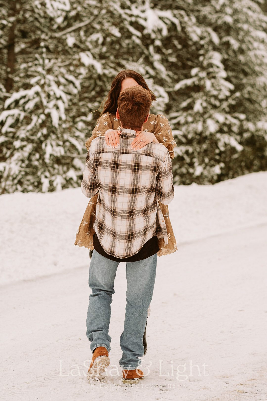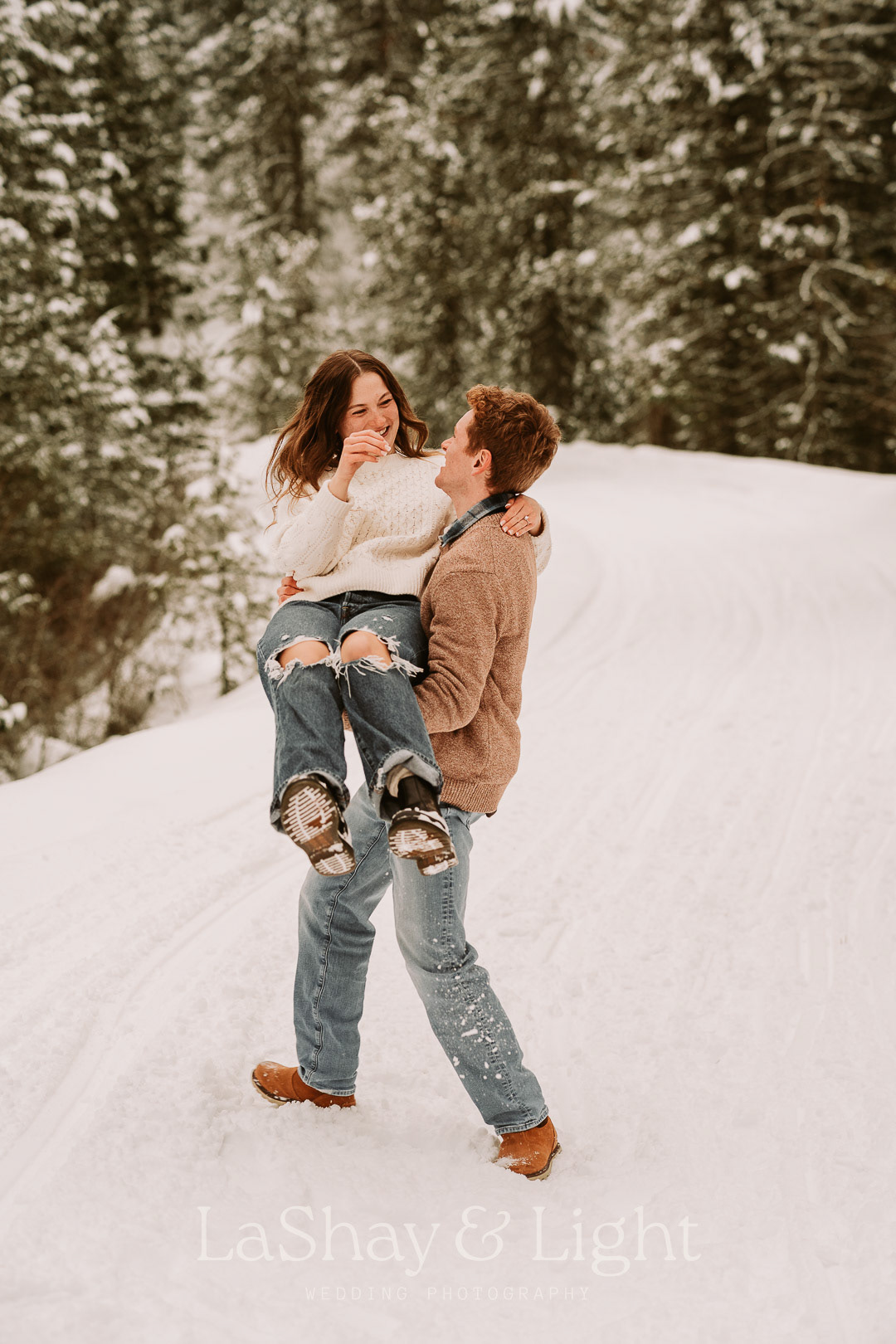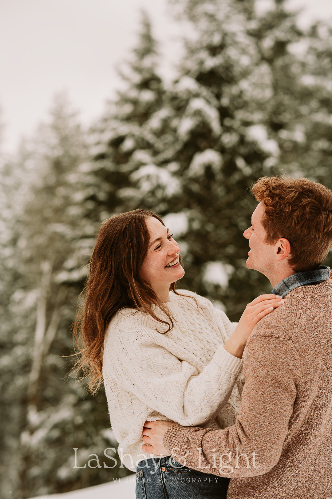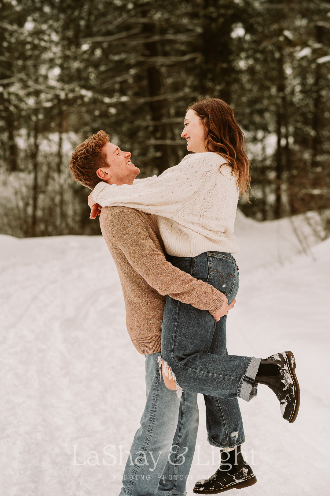 We took these photos right after a big snow storm! The result: dreamy engagement photos with lots of snow!