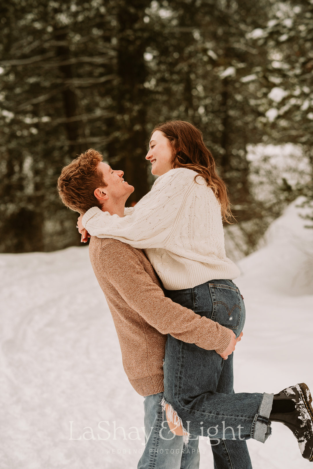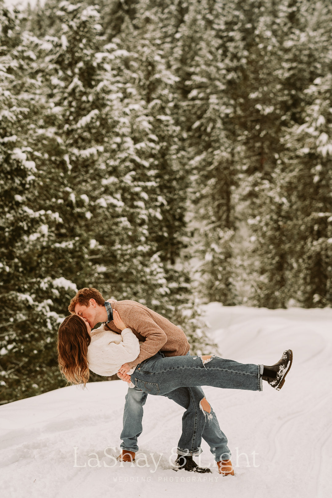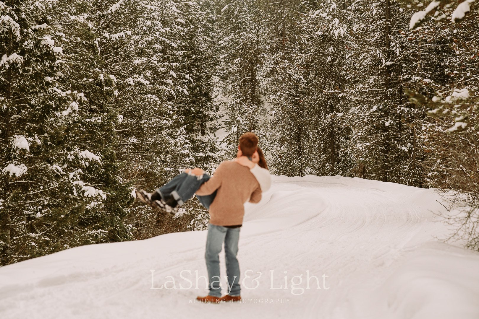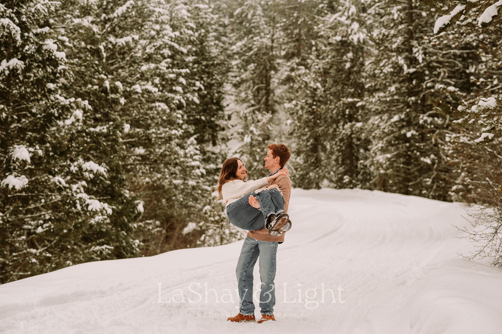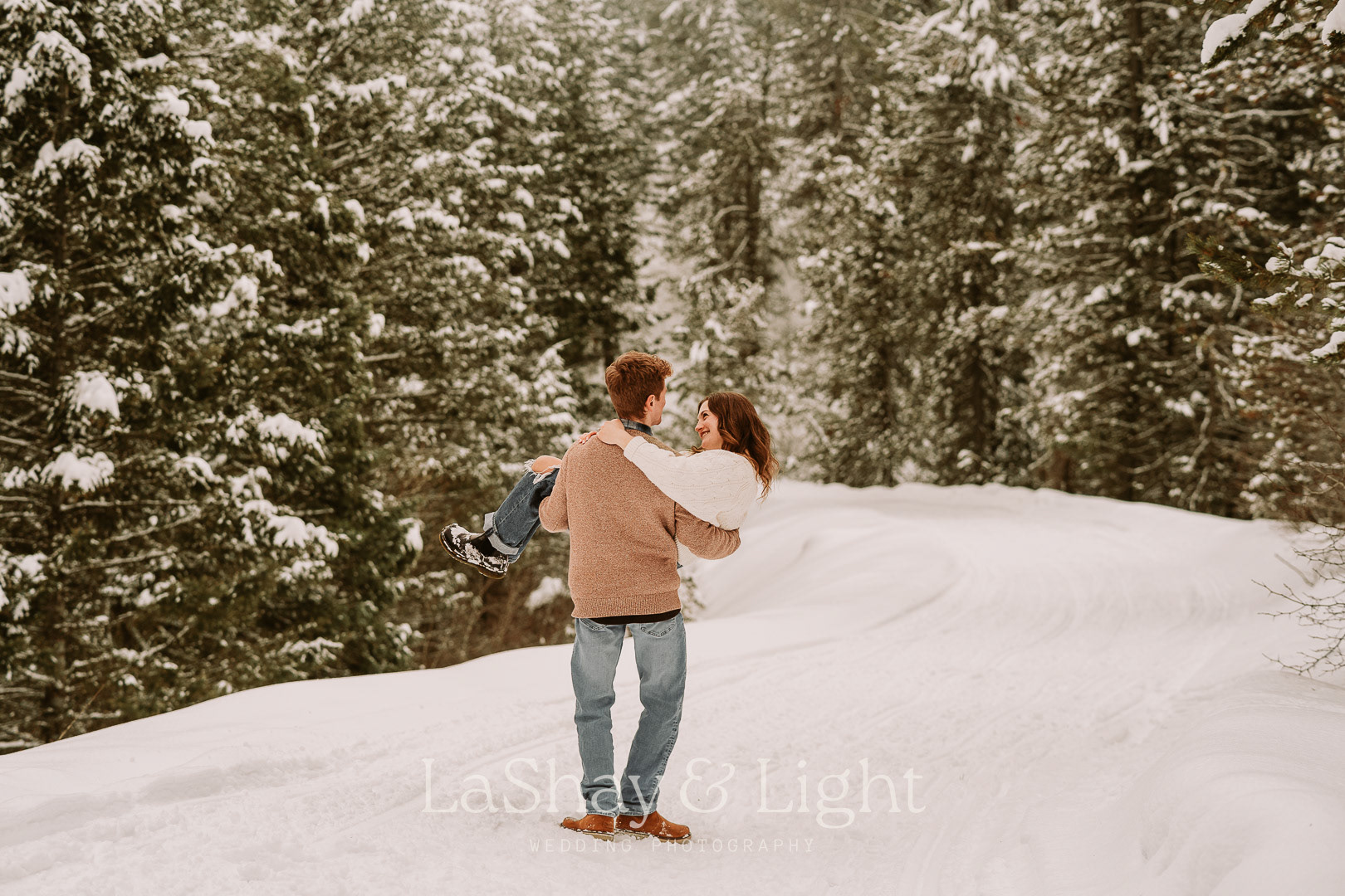 We took these photos right after a big snow storm! The result: dreamy engagement photos with lots of snow!