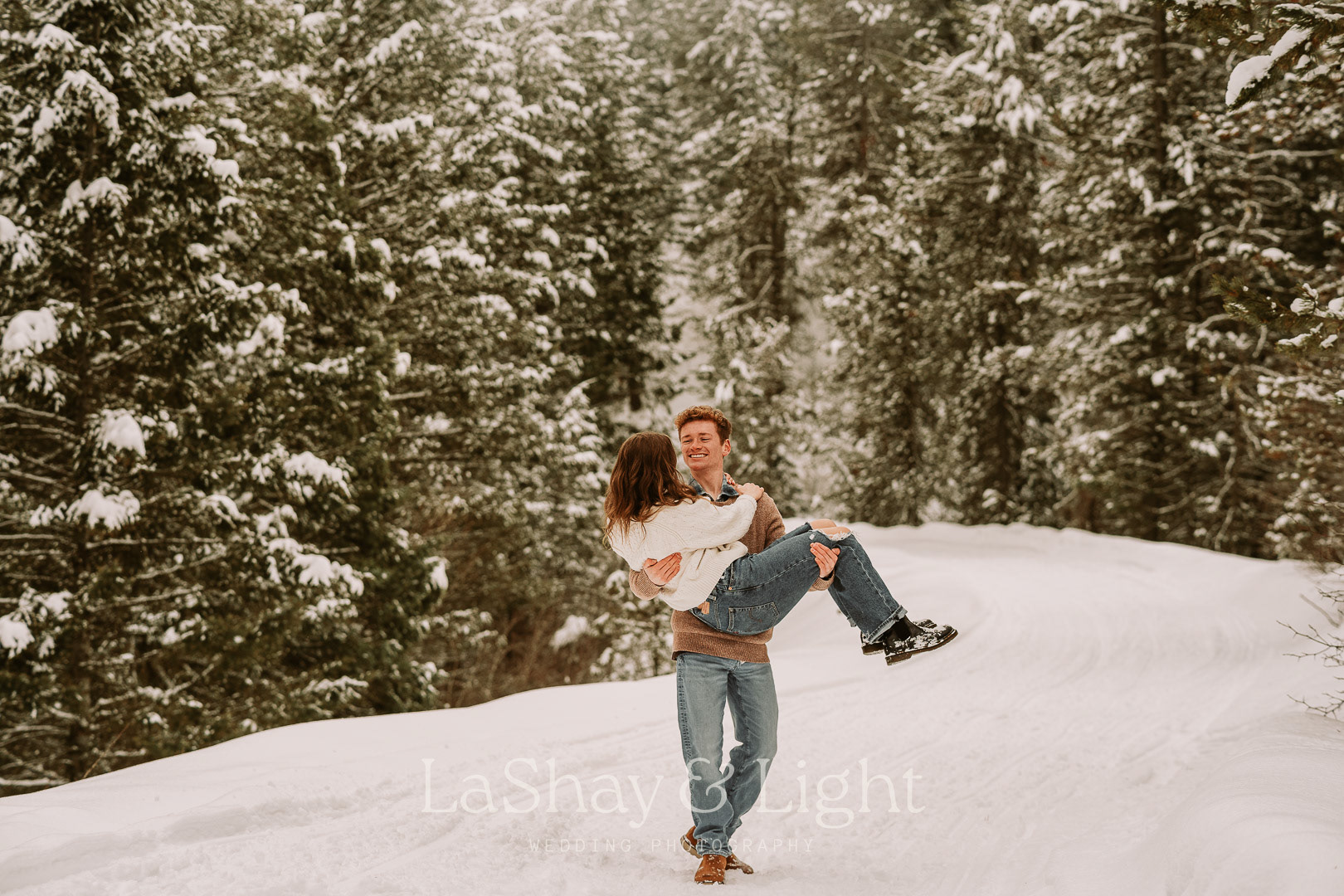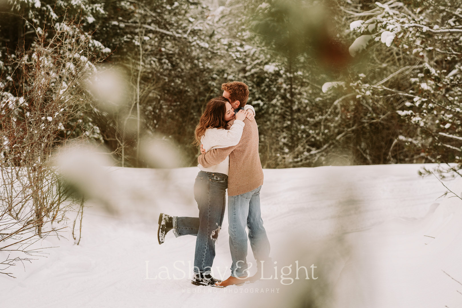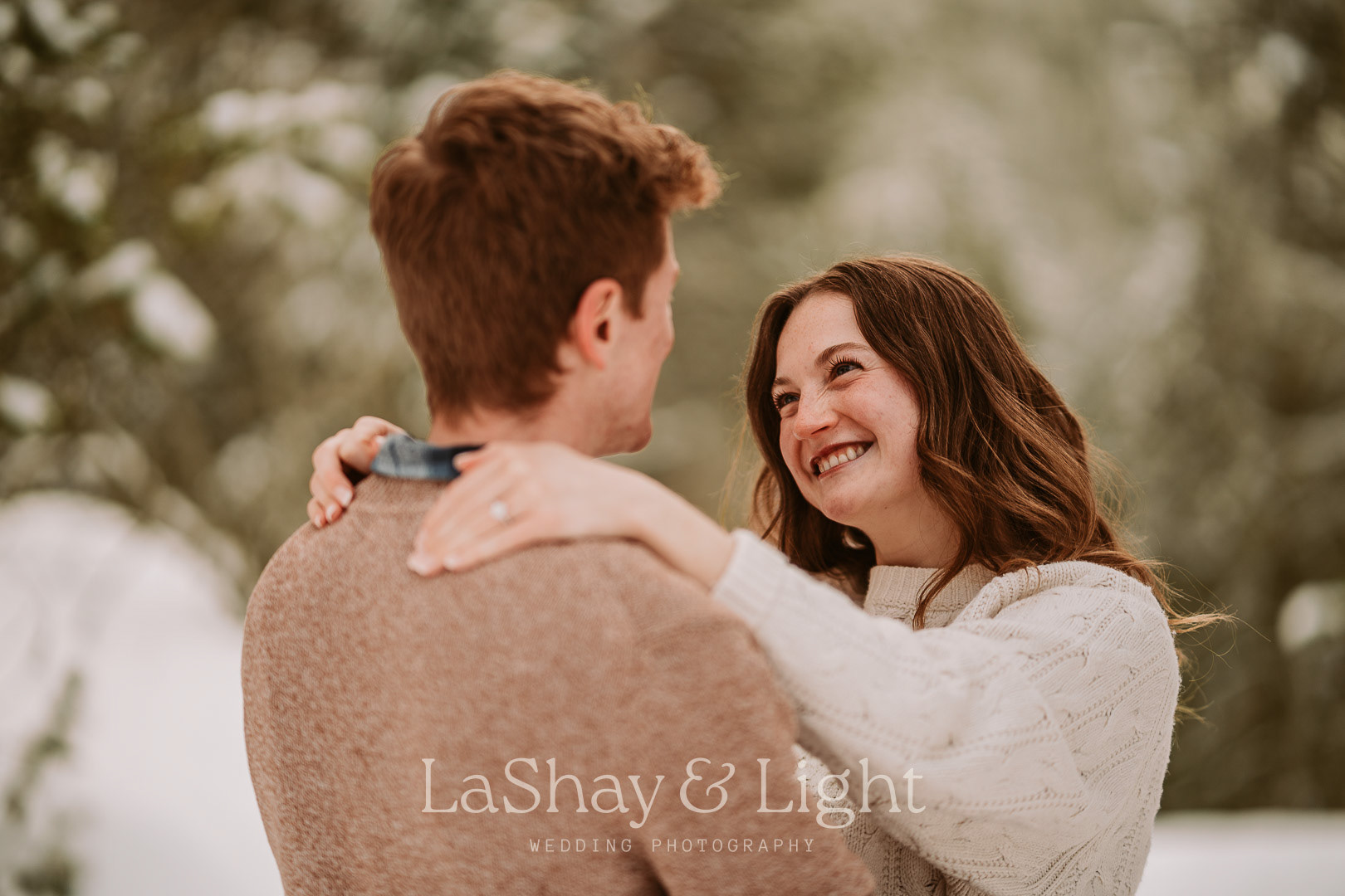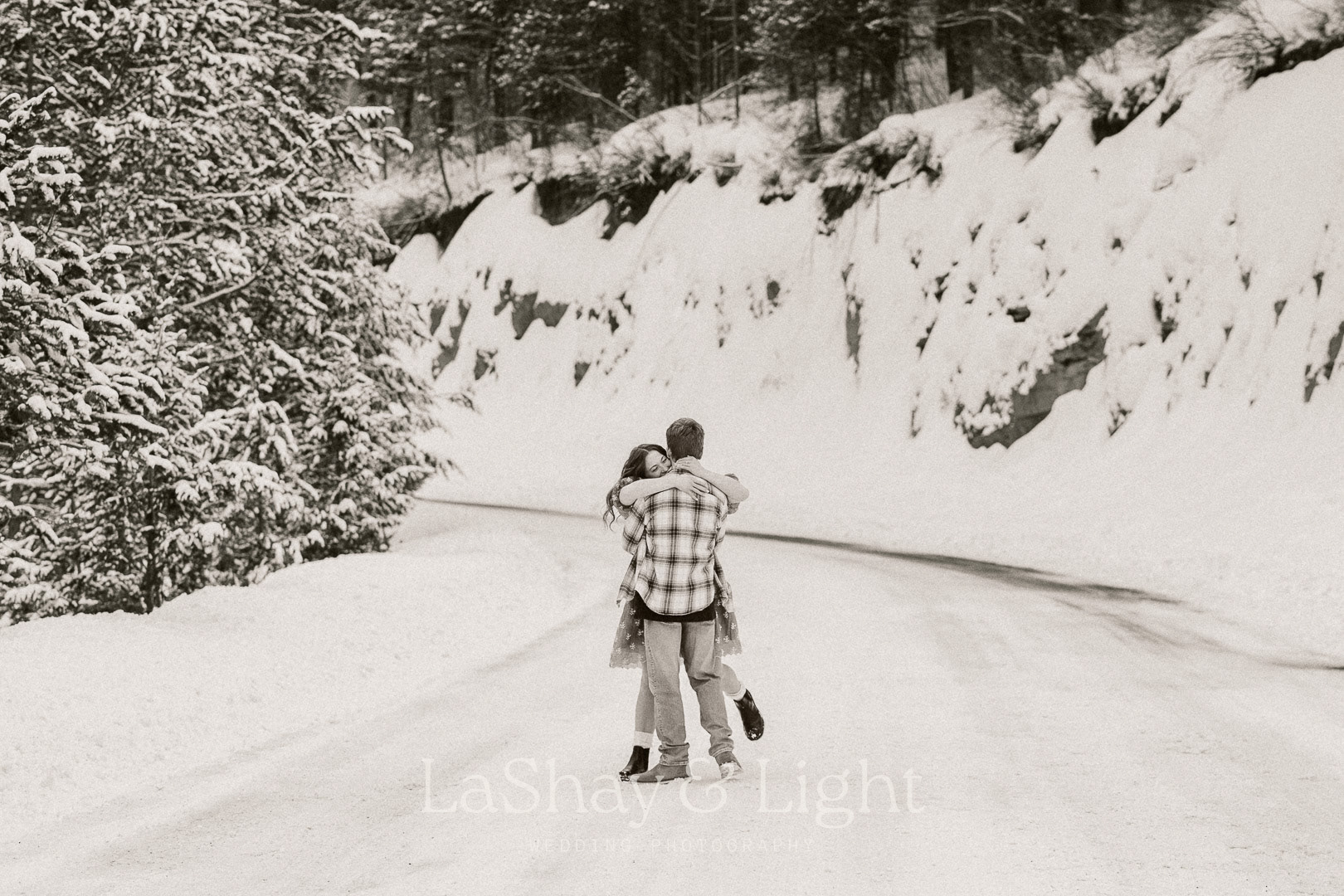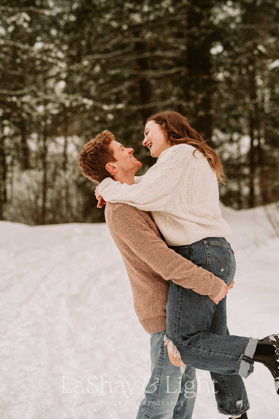 We took these photos right after a big snow storm! The result: dreamy engagement photos with lots of snow!