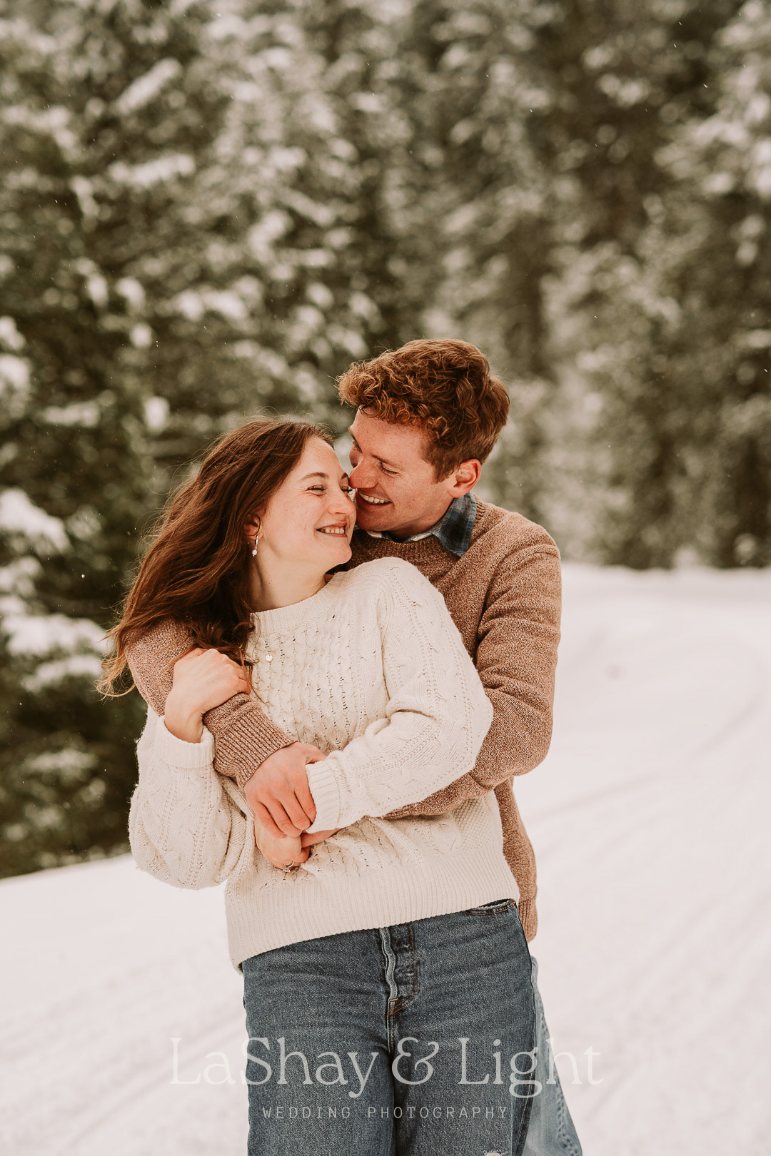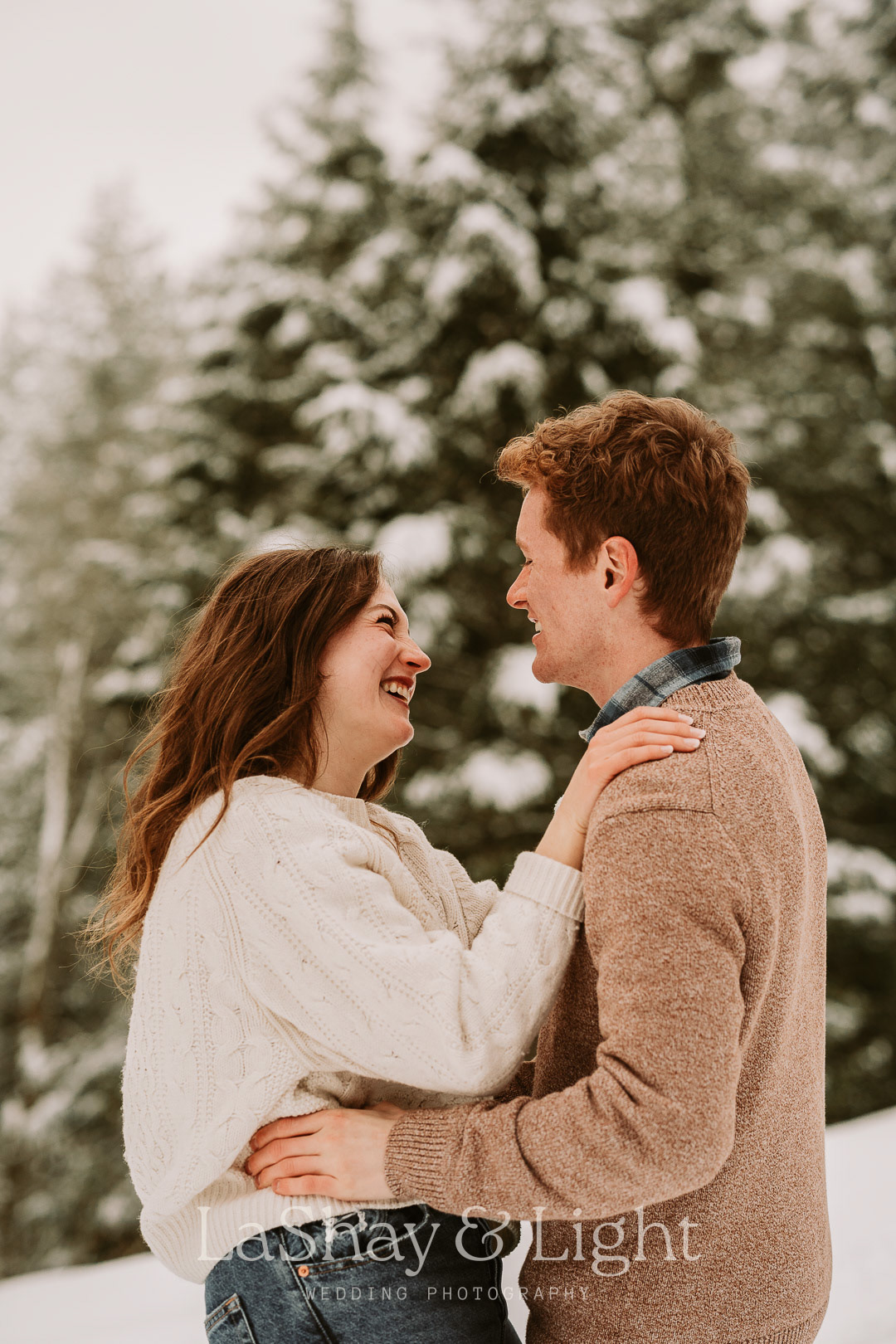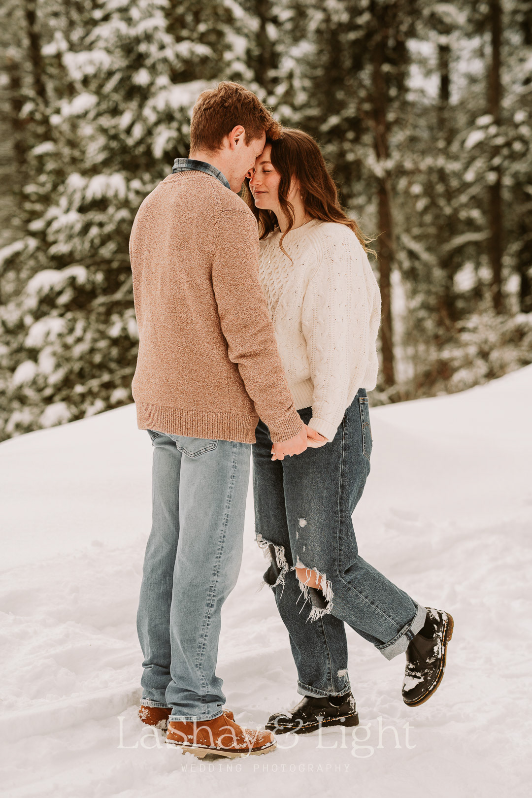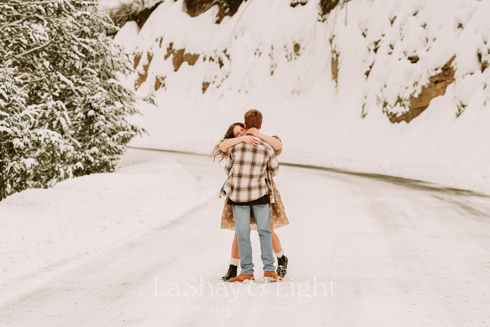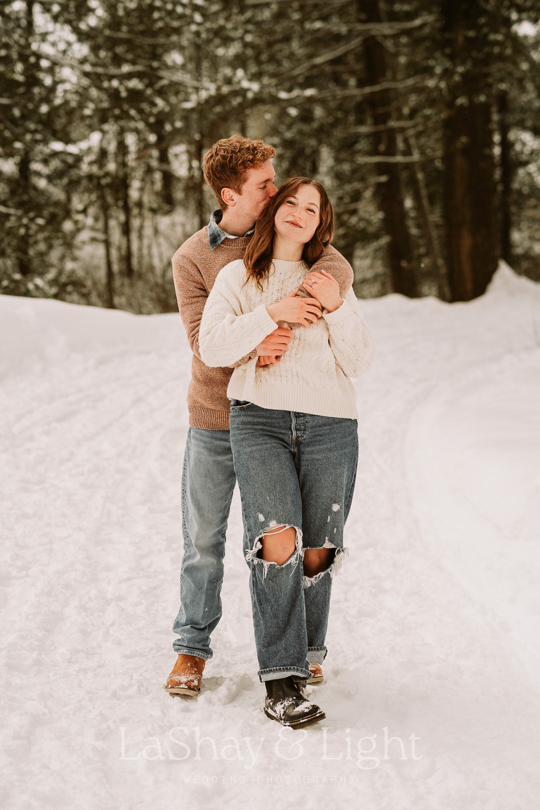 We took these photos right after a big snow storm! The result: dreamy engagement photos with lots of snow!