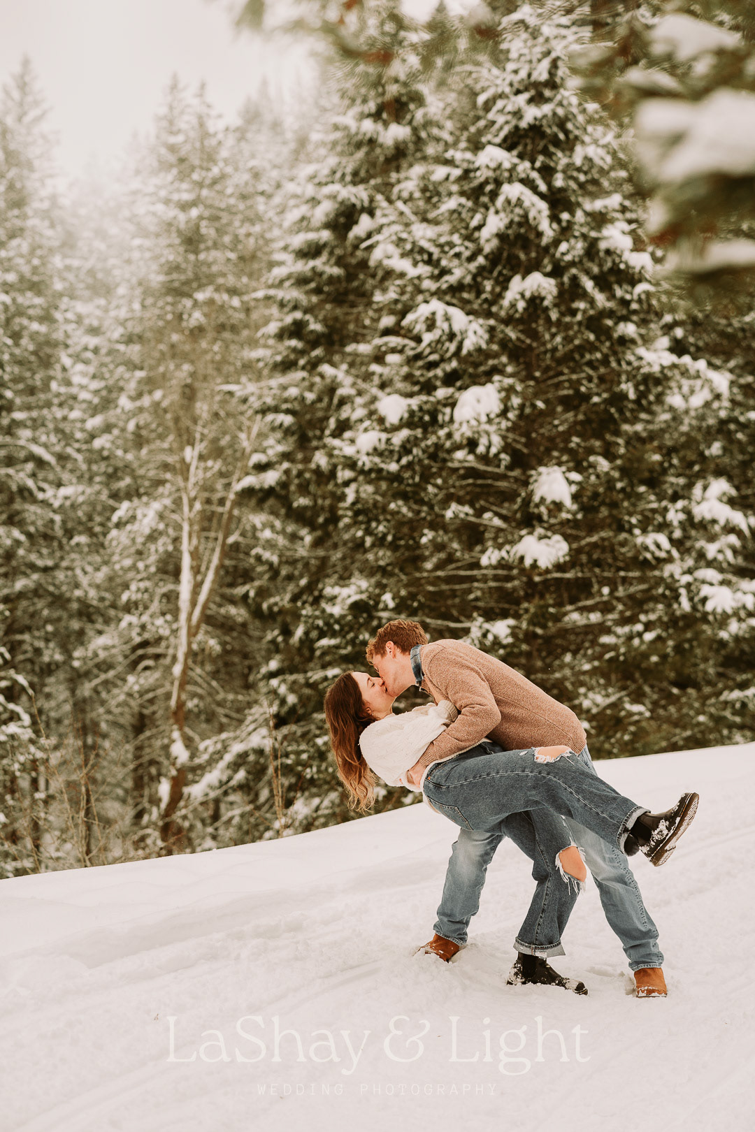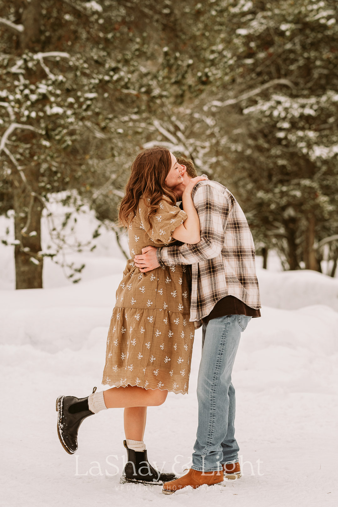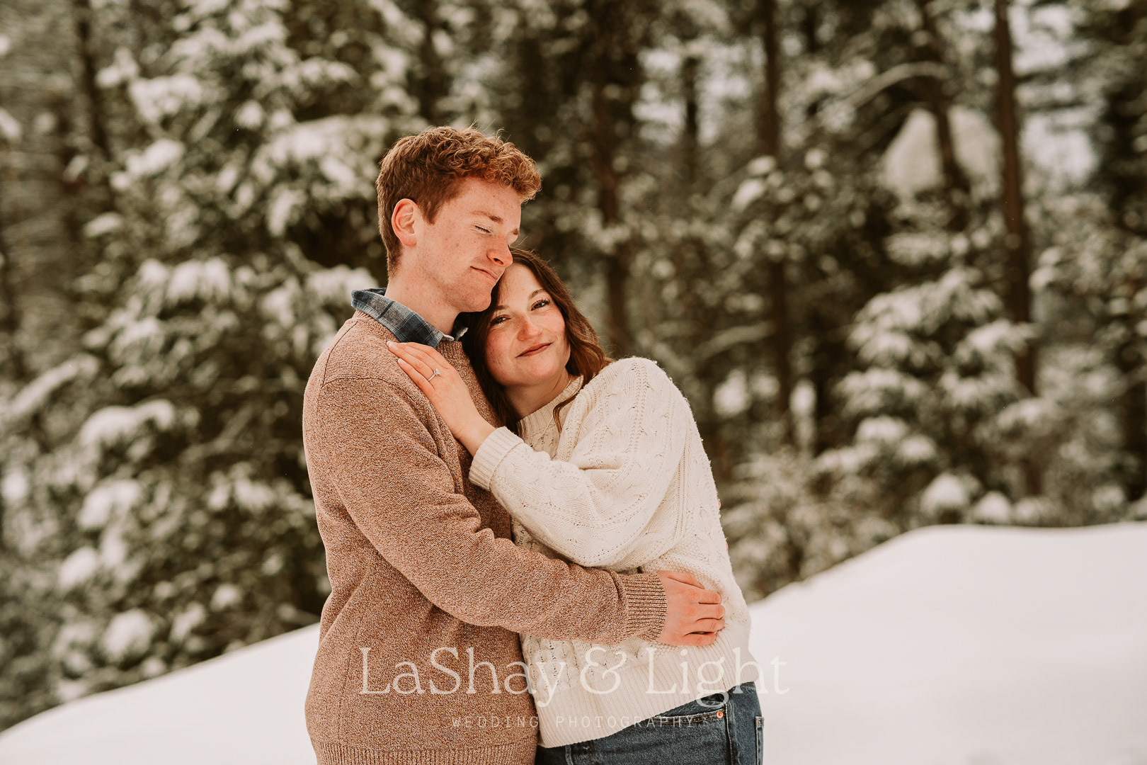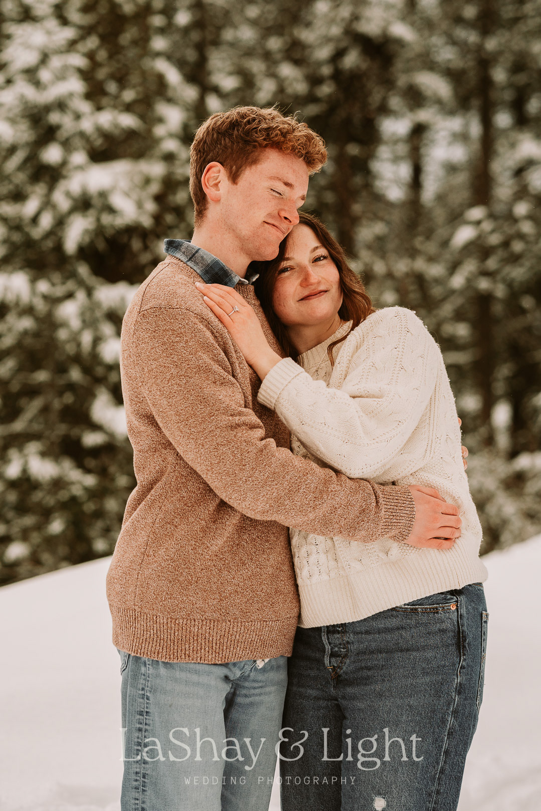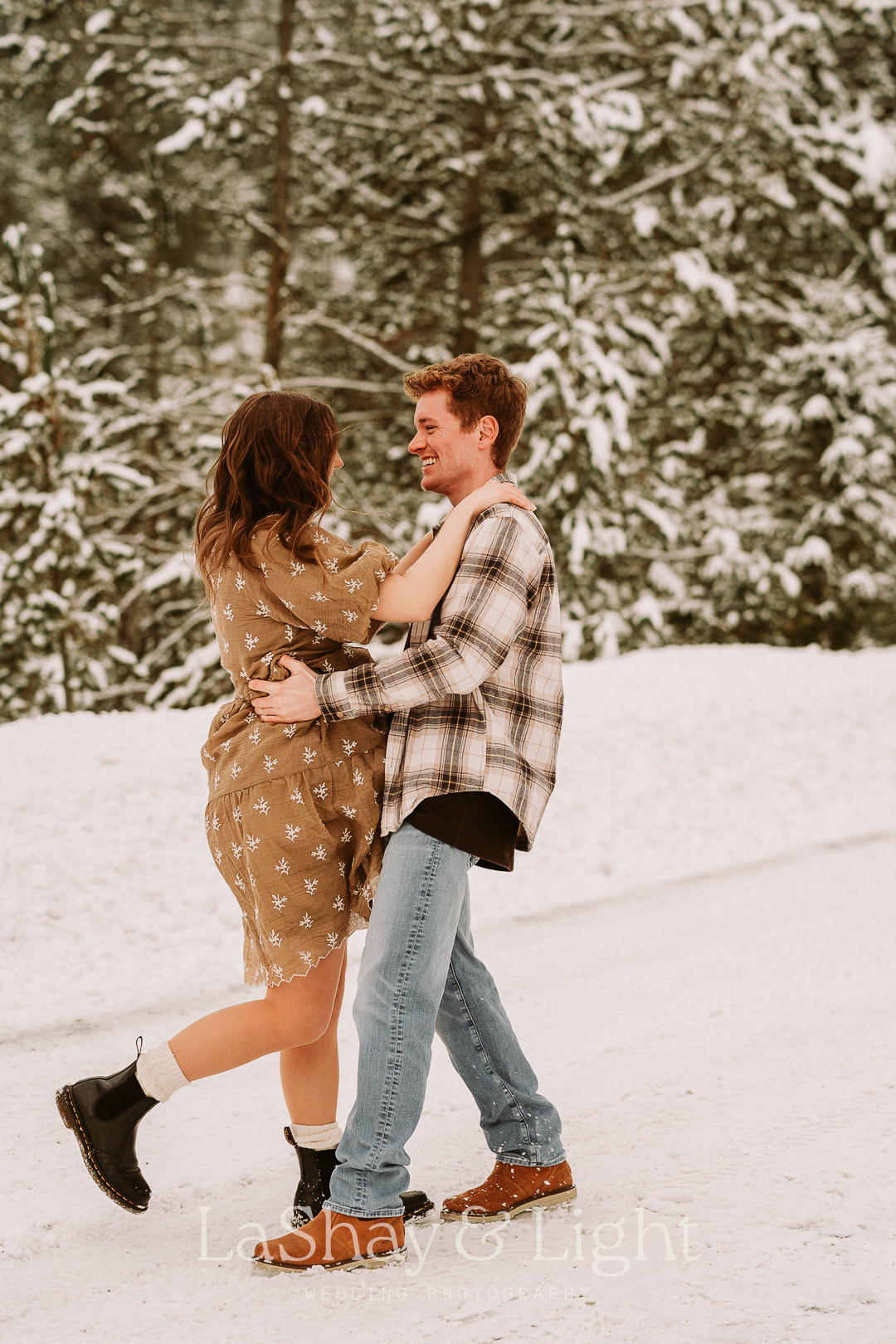 We took these photos right after a big snow storm! The result: dreamy engagement photos with lots of snow!