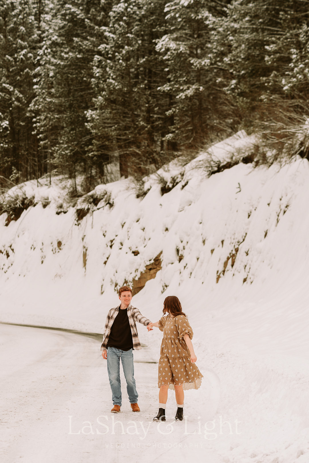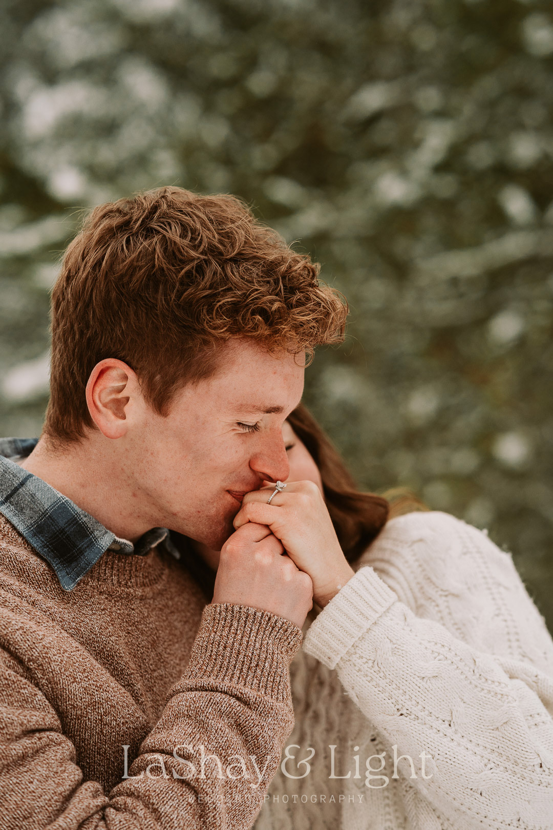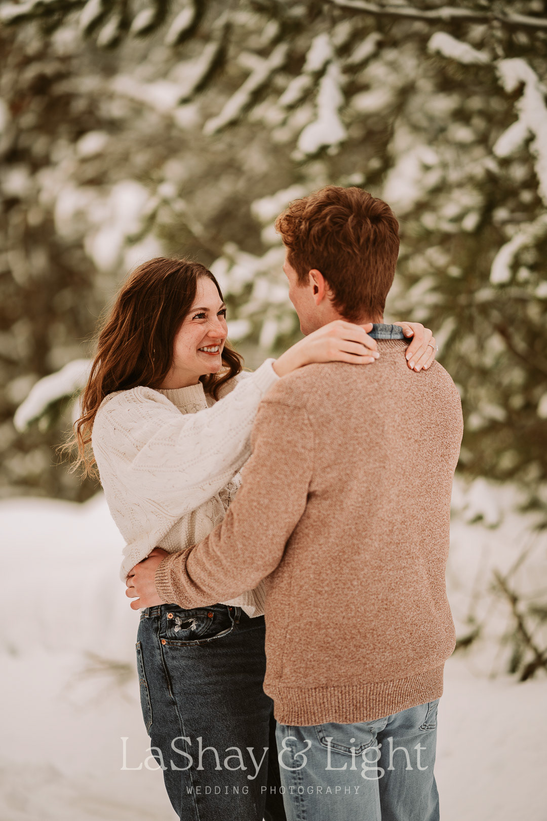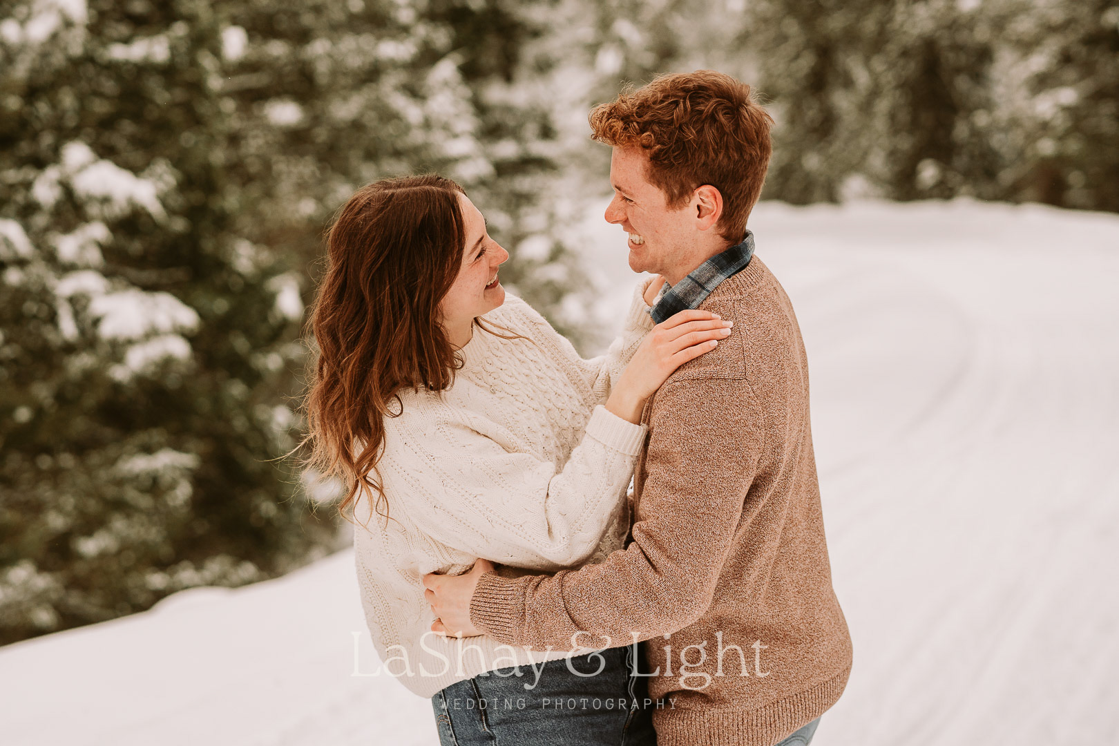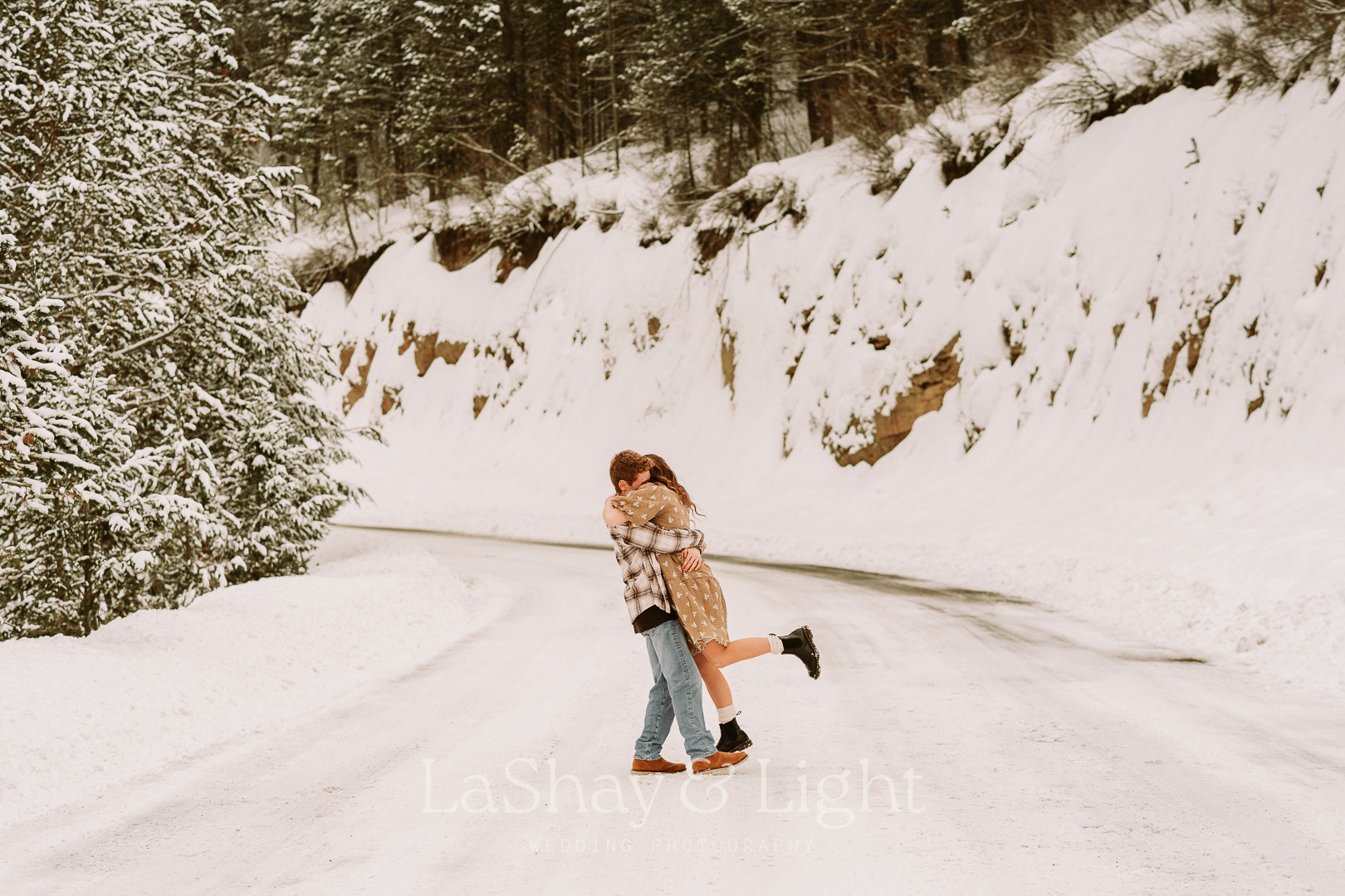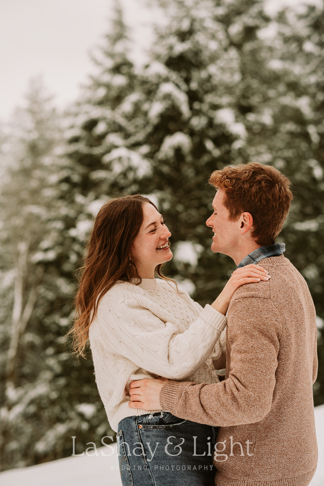 We took these photos right after a big snow storm! The result: dreamy engagement photos with lots of snow!