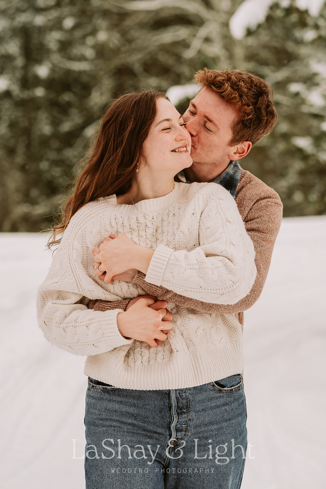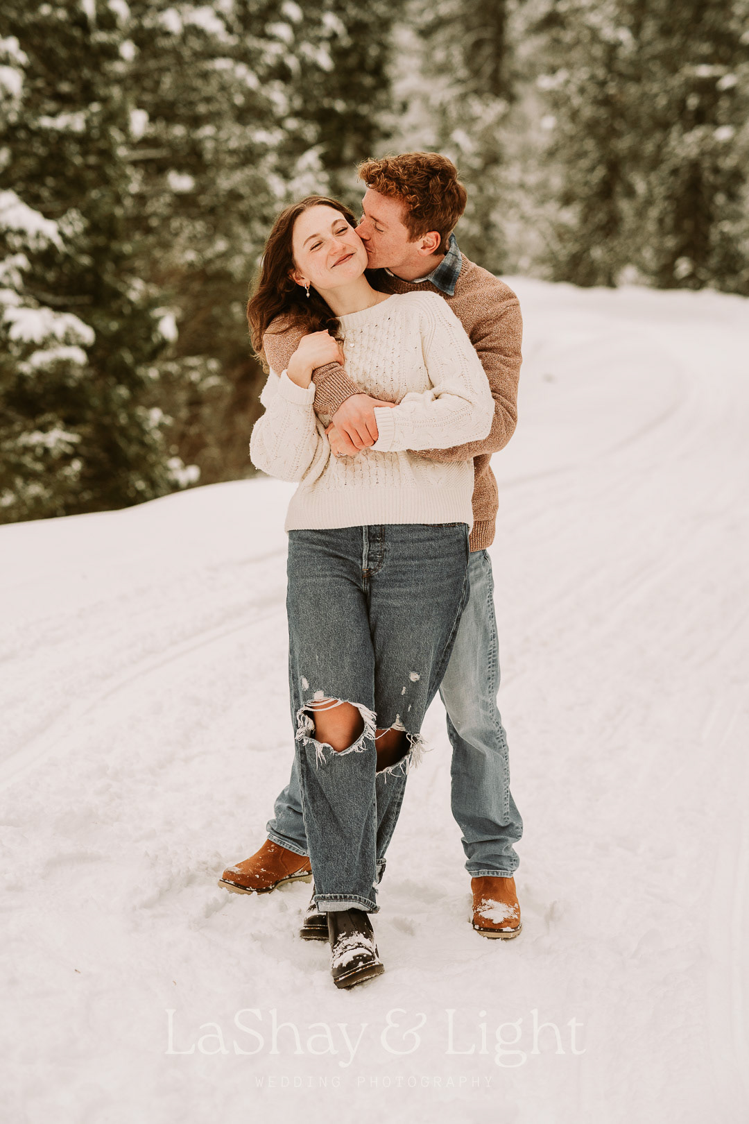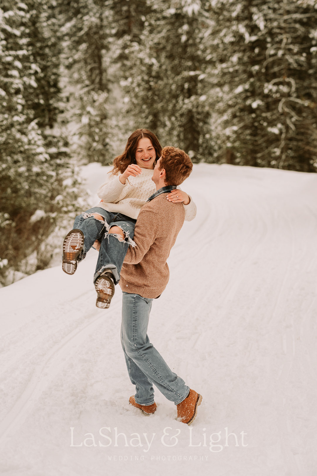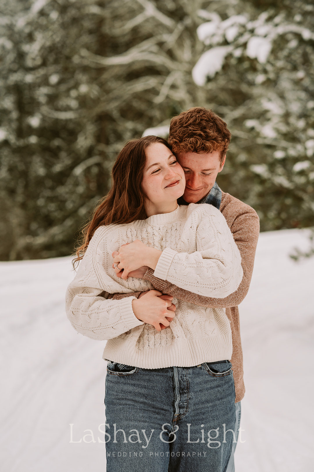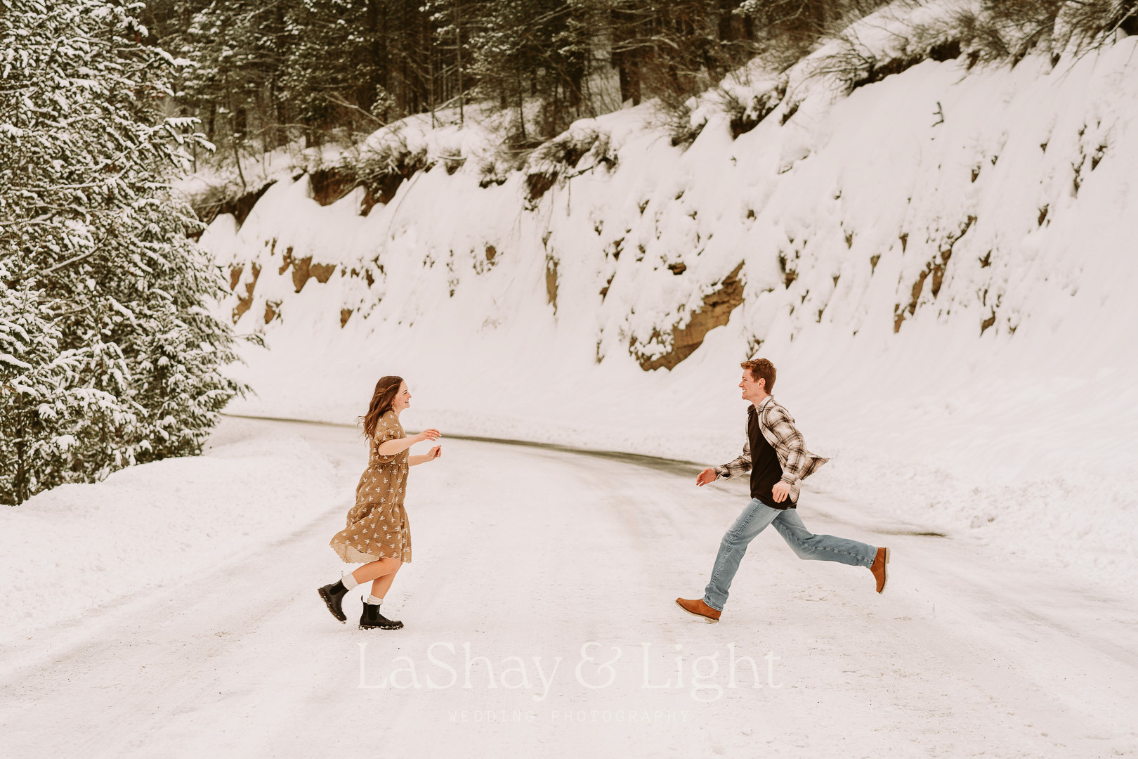 We took these photos right after a big snow storm! The result: dreamy engagement photos with lots of snow!
