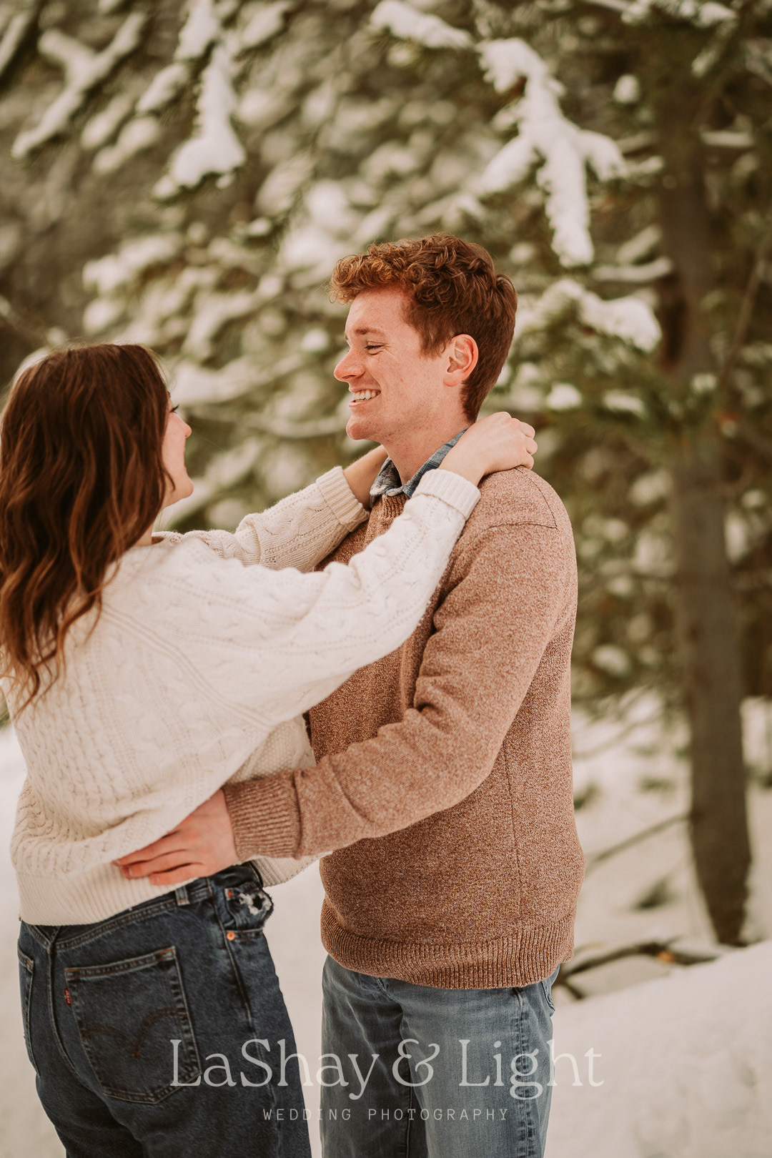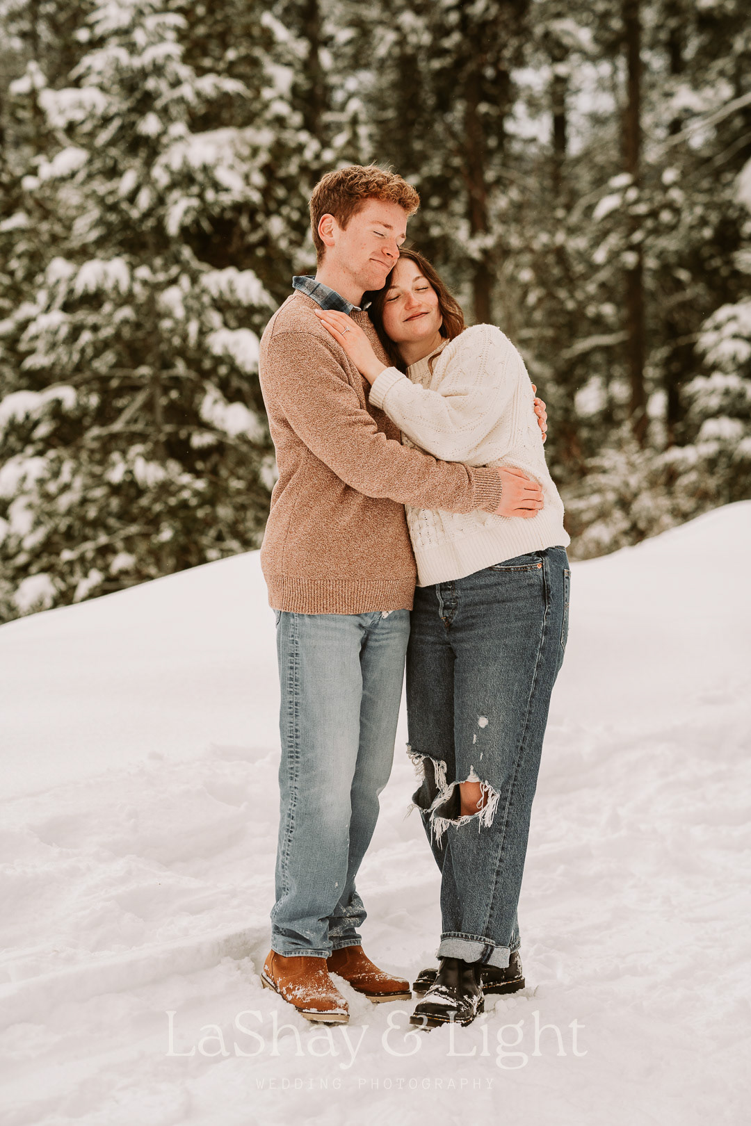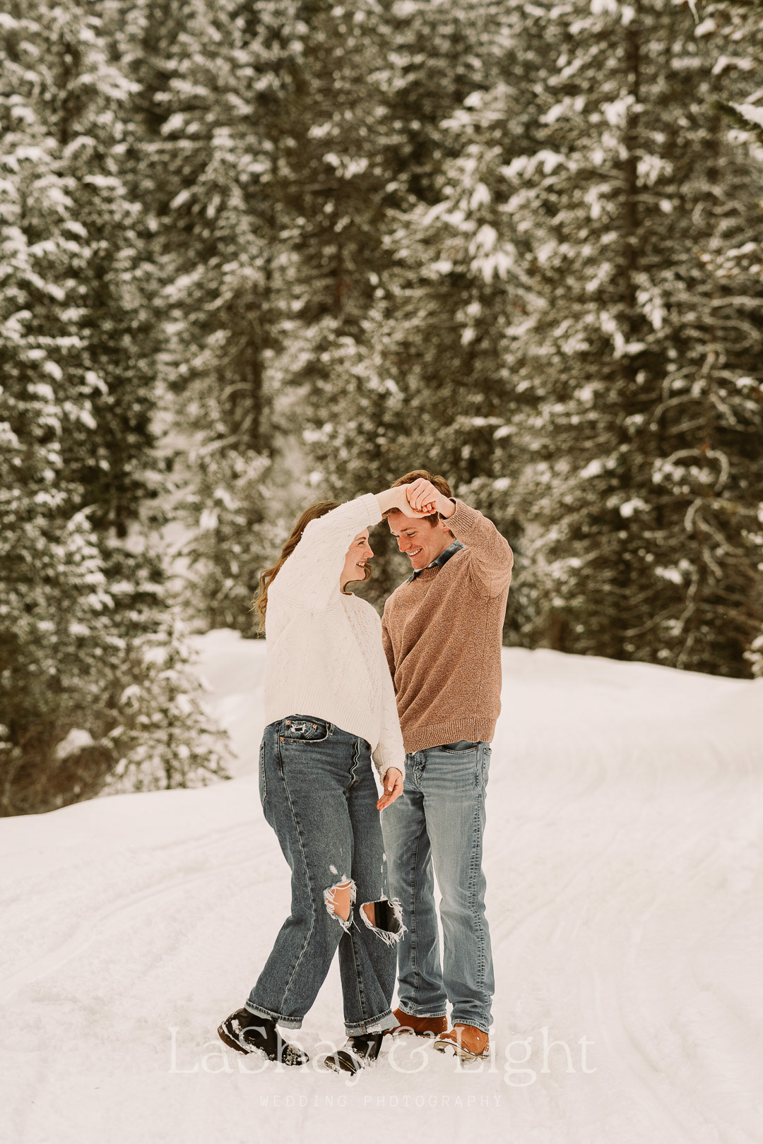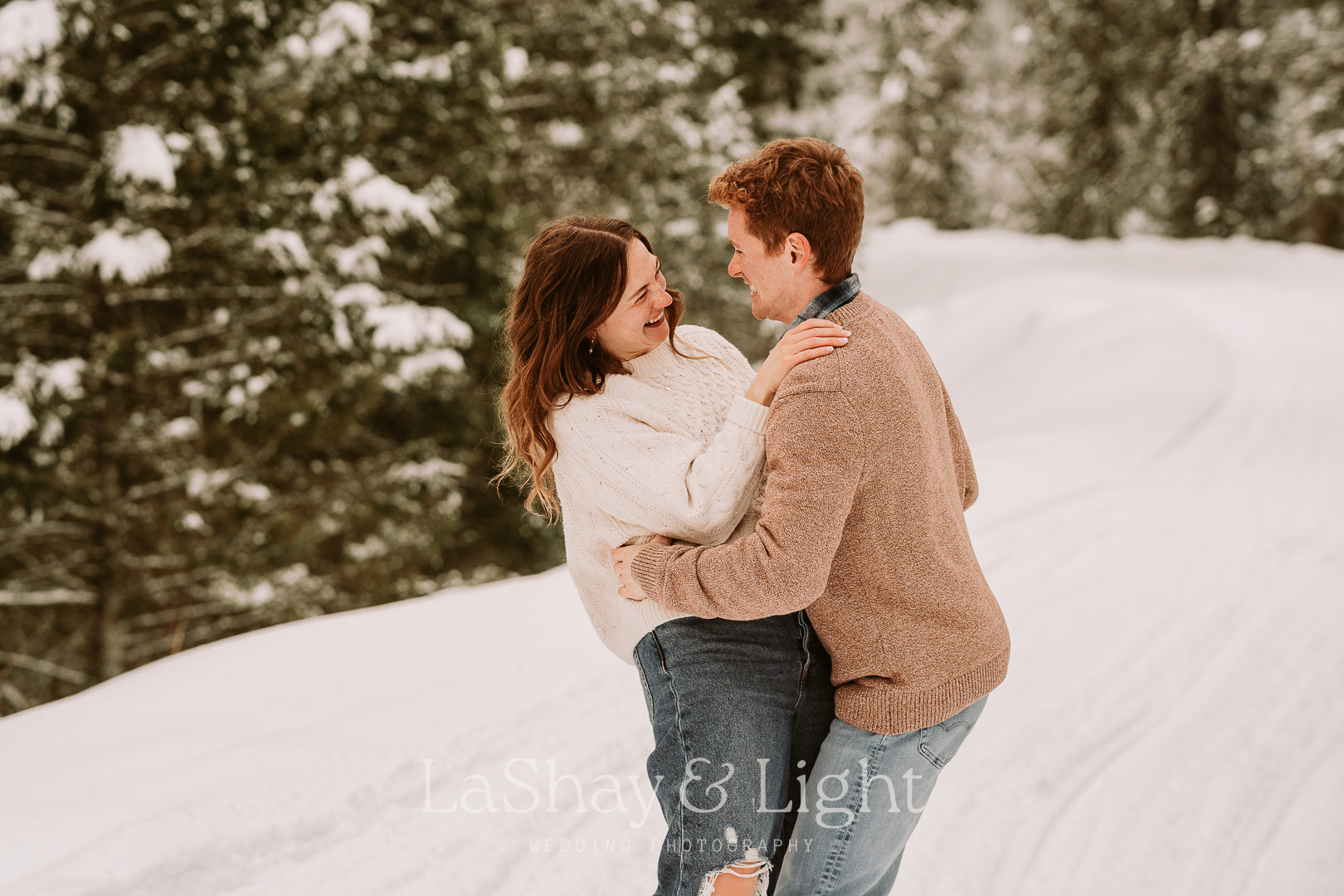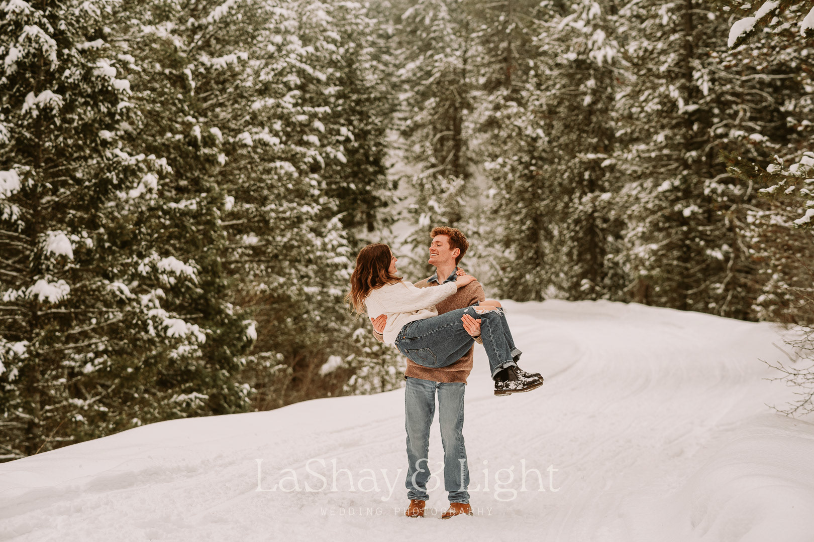 We took these photos right after a big snow storm! The result: dreamy engagement photos with lots of snow!