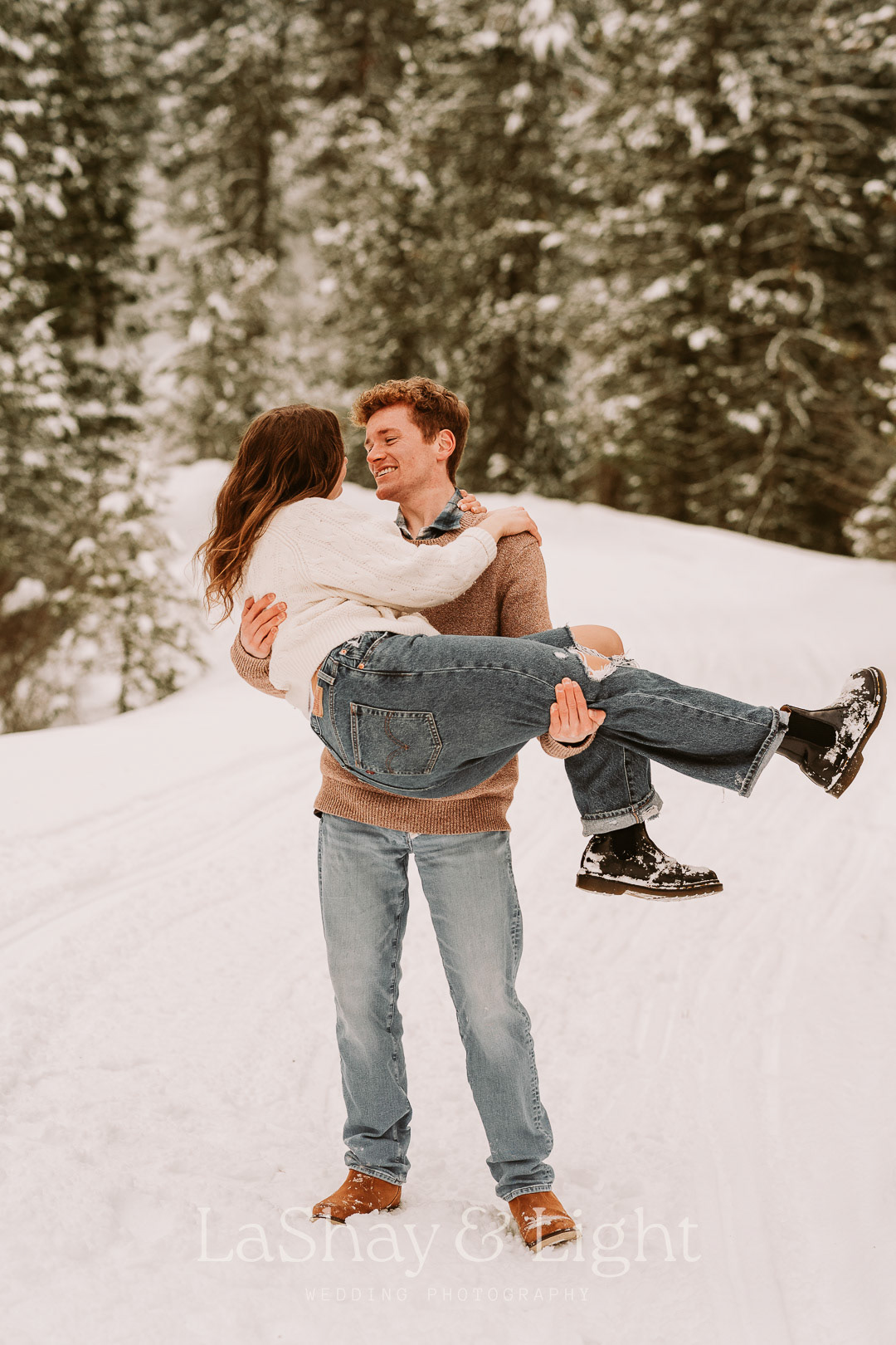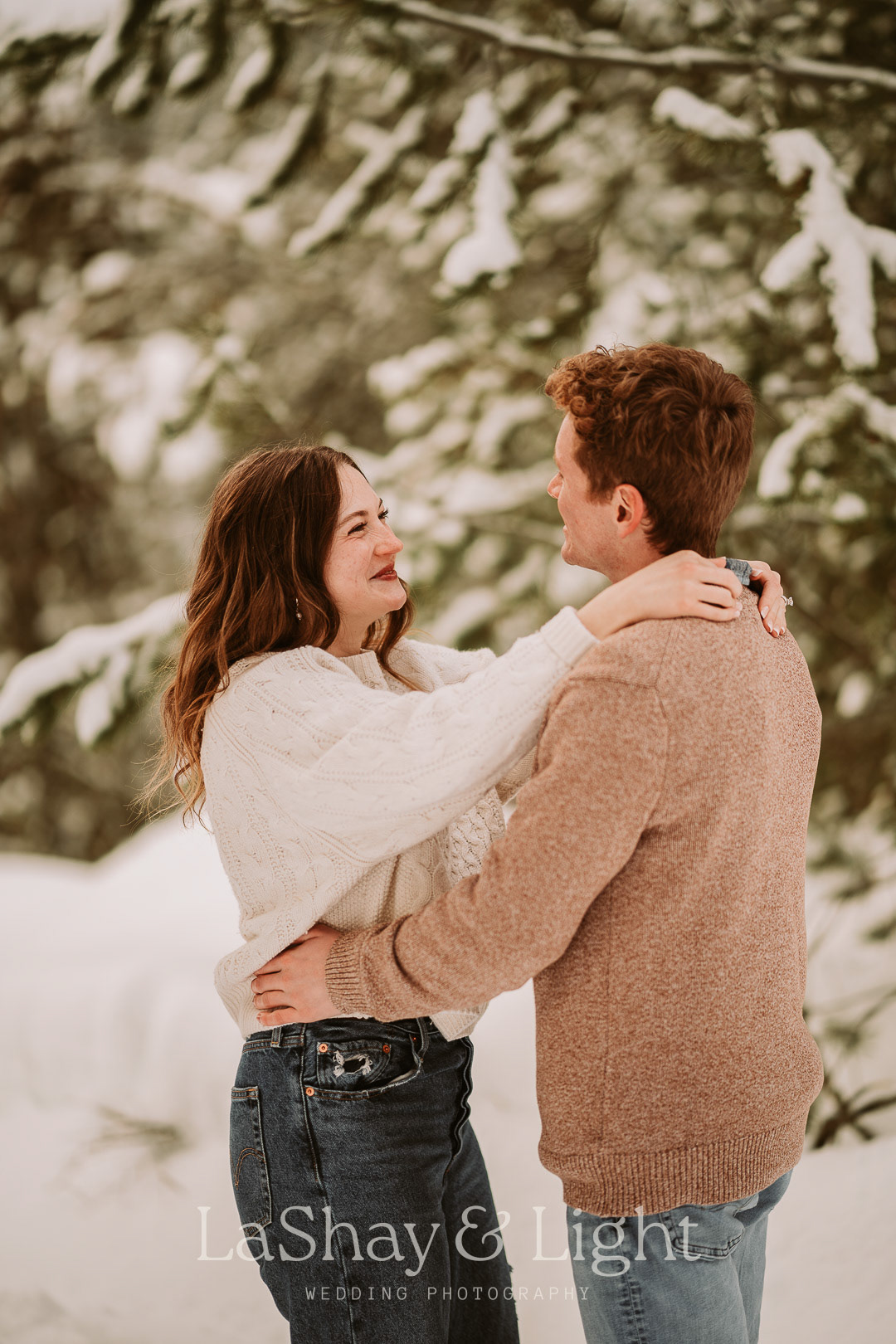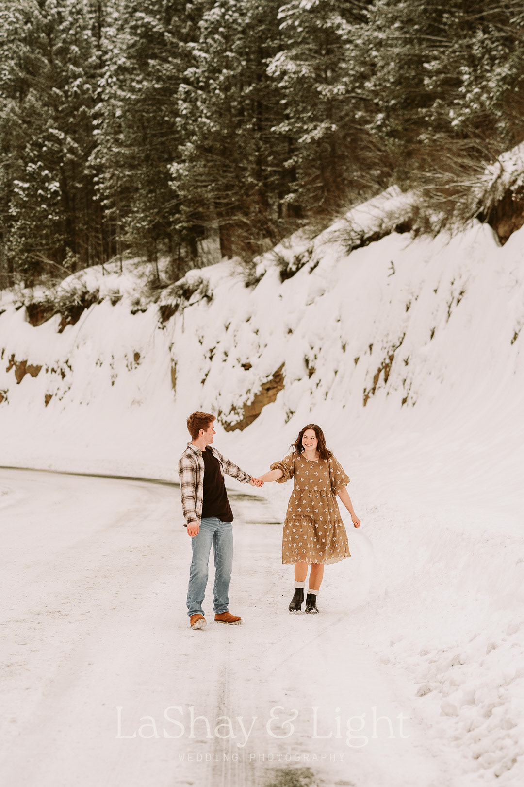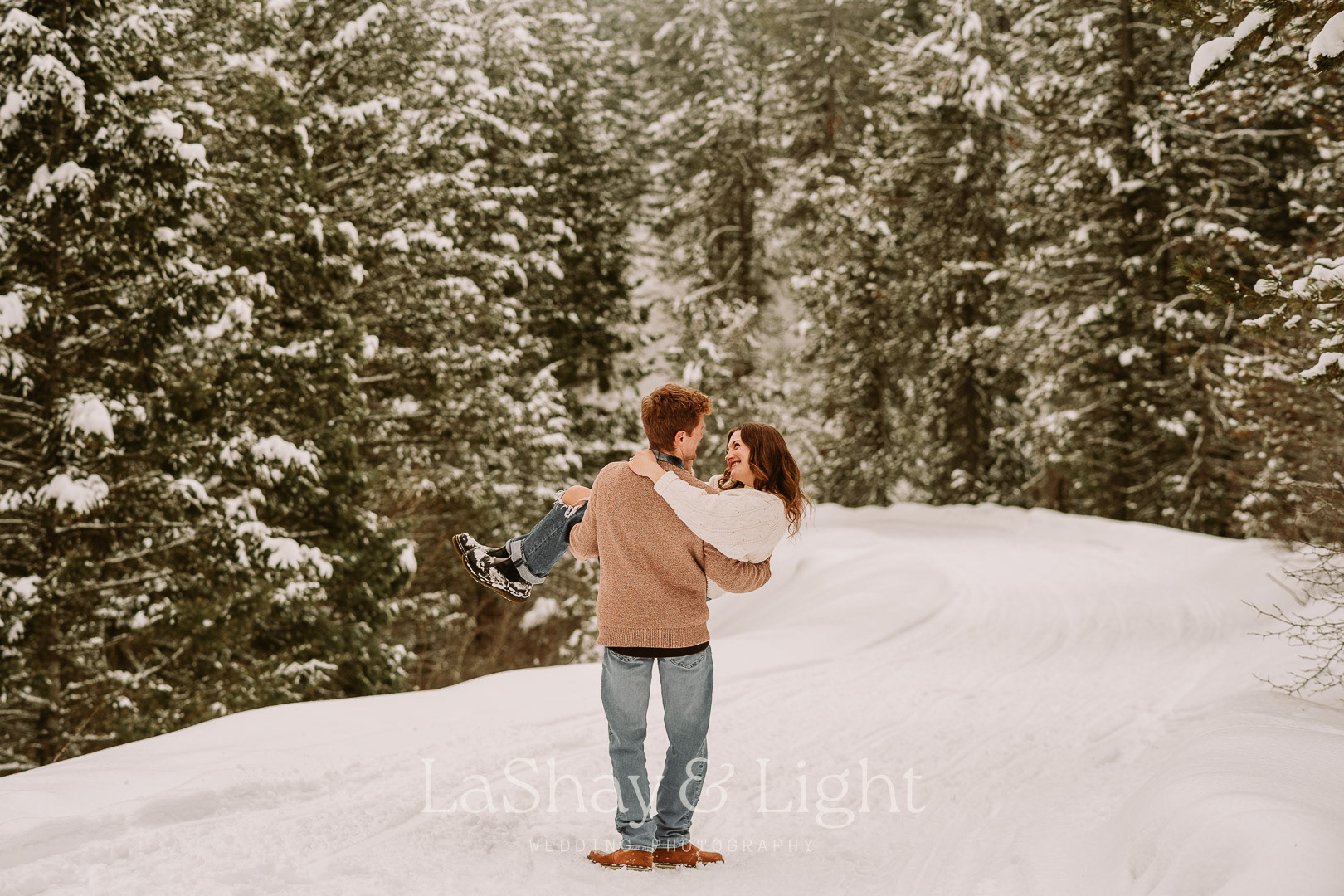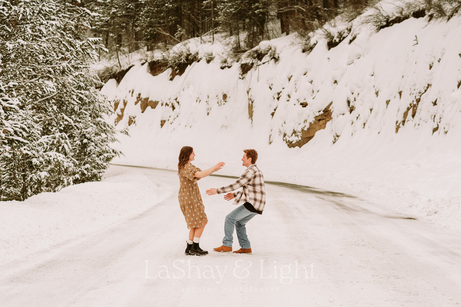 We took these photos right after a big snow storm! The result: dreamy engagement photos with lots of snow!