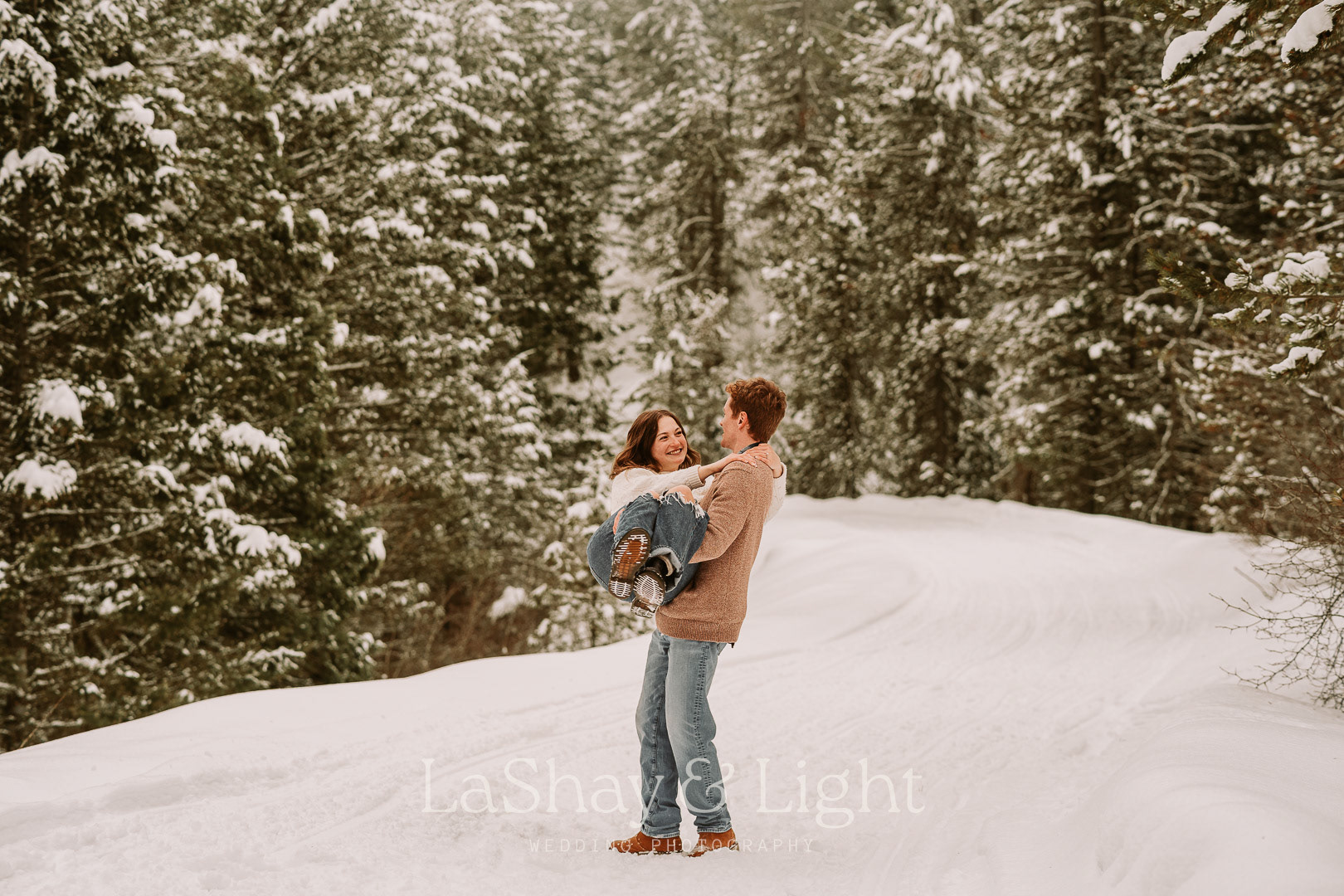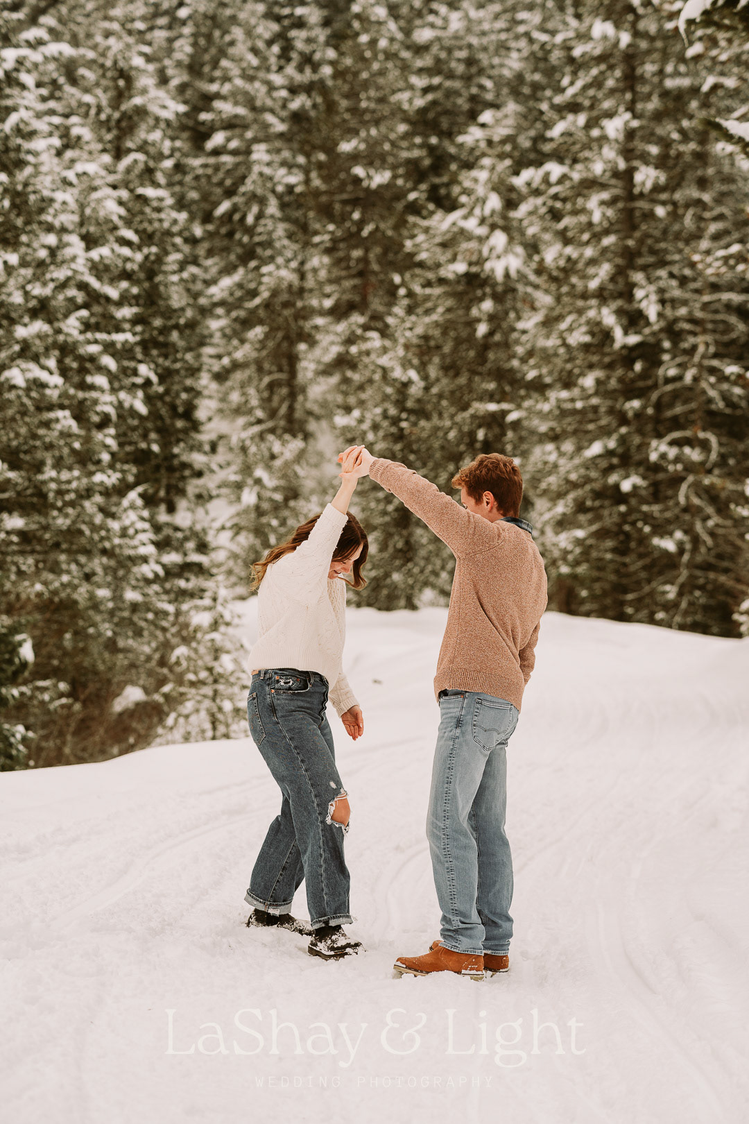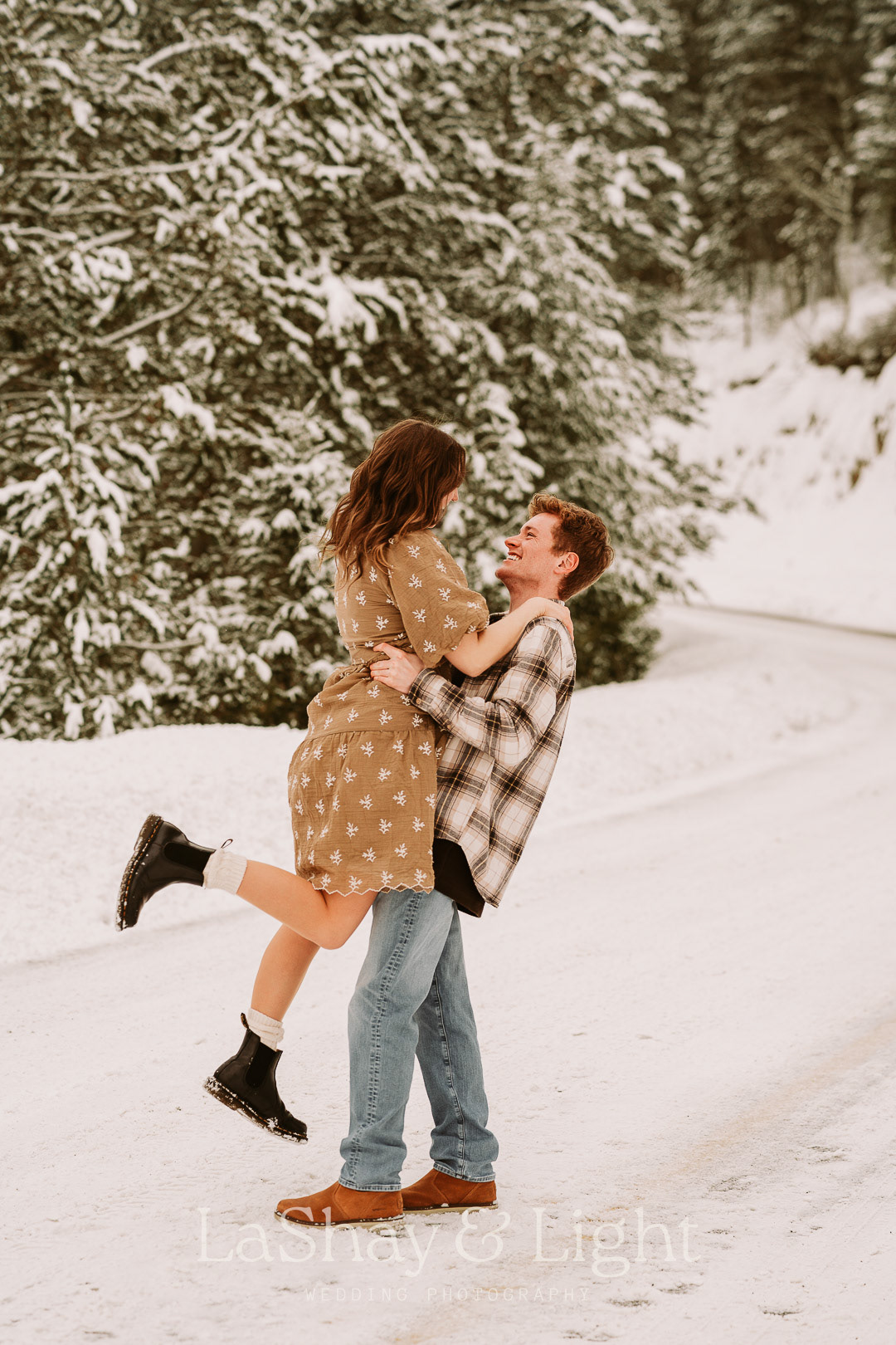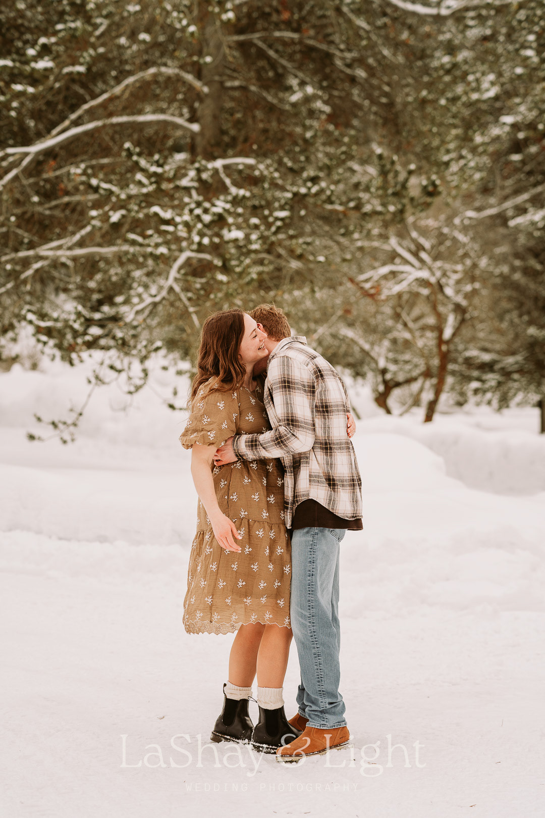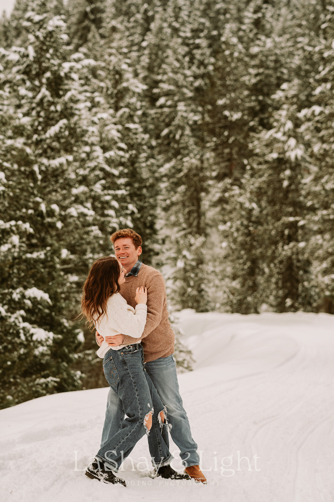 We took these photos right after a big snow storm! The result: dreamy engagement photos with lots of snow!