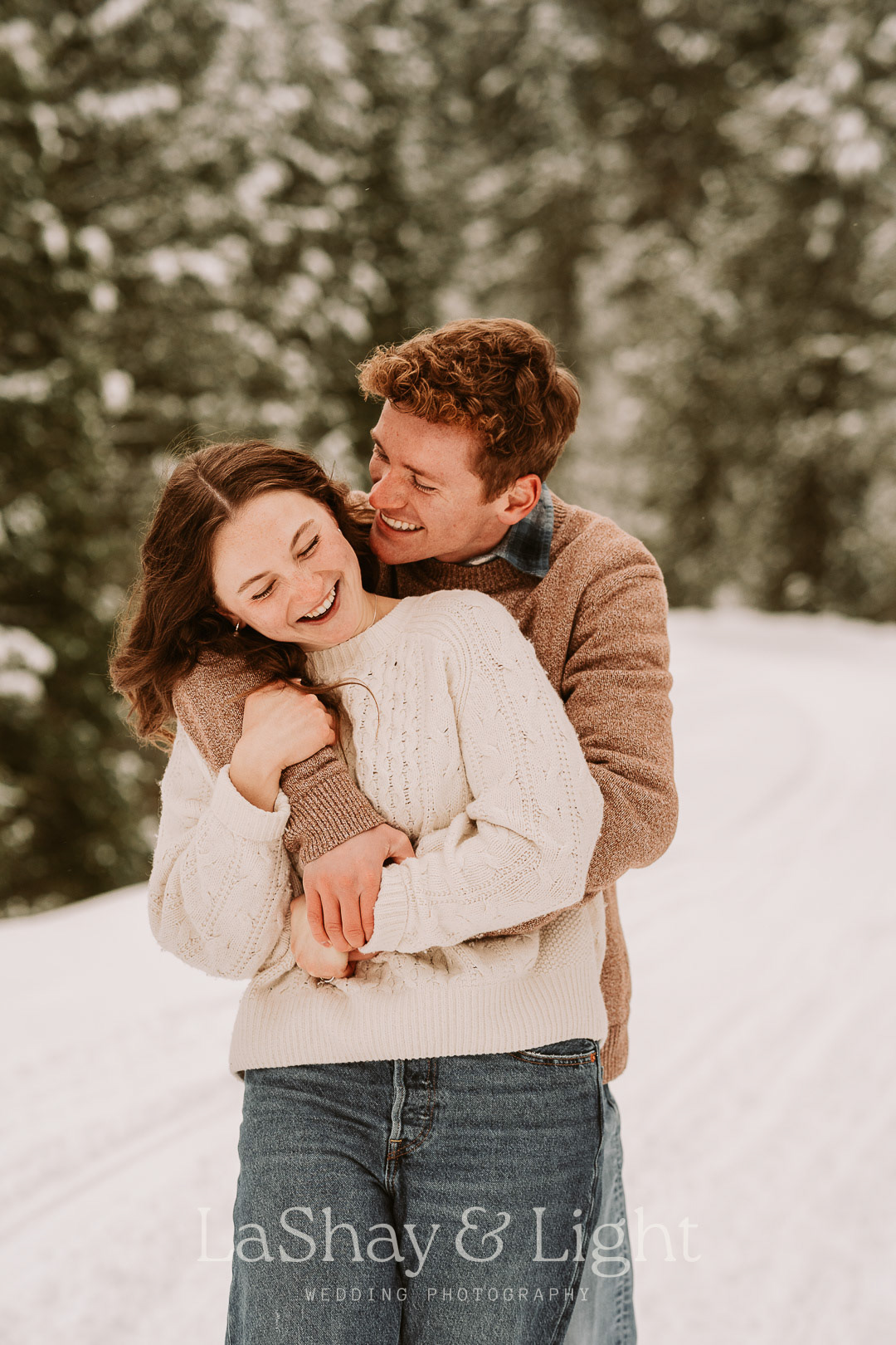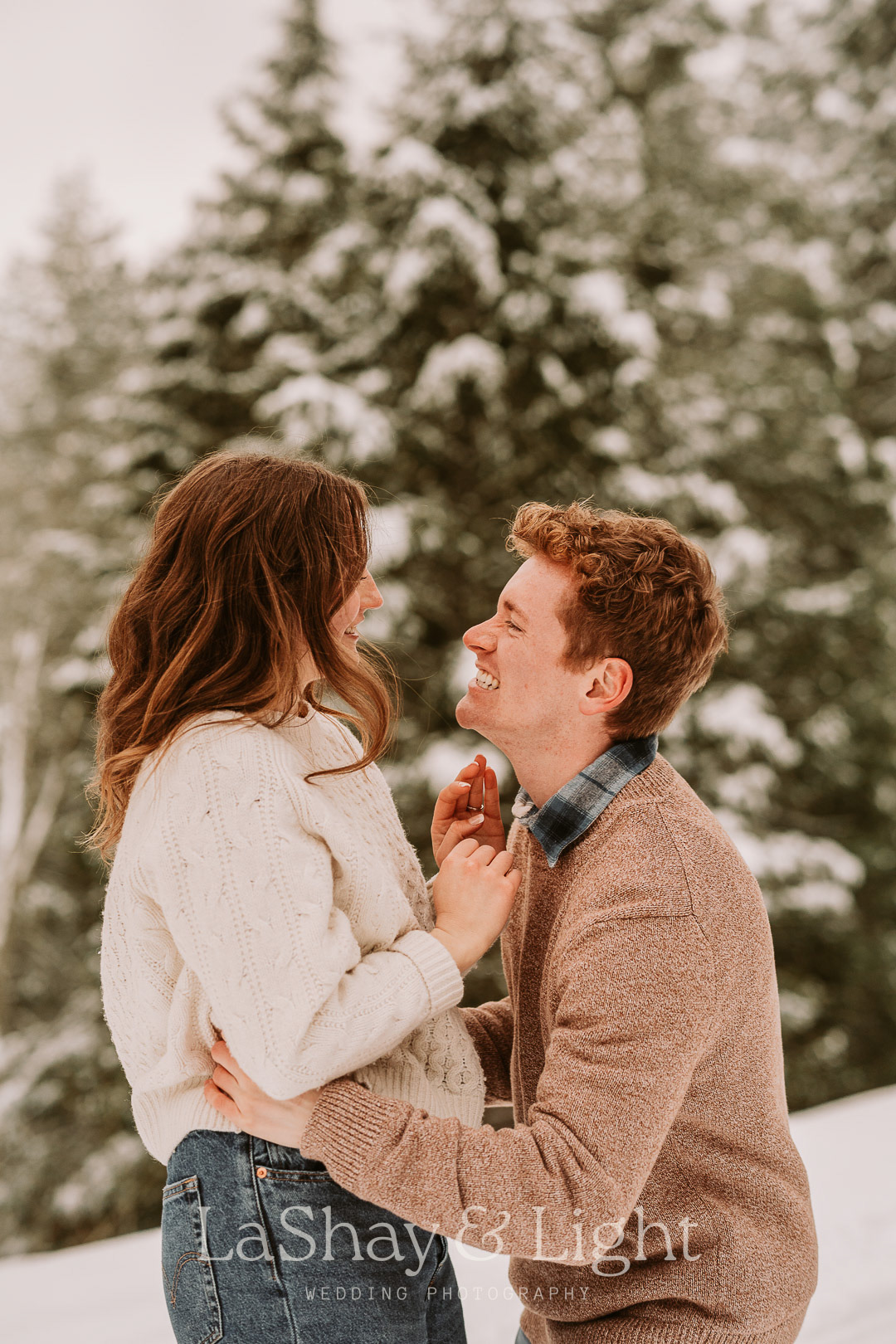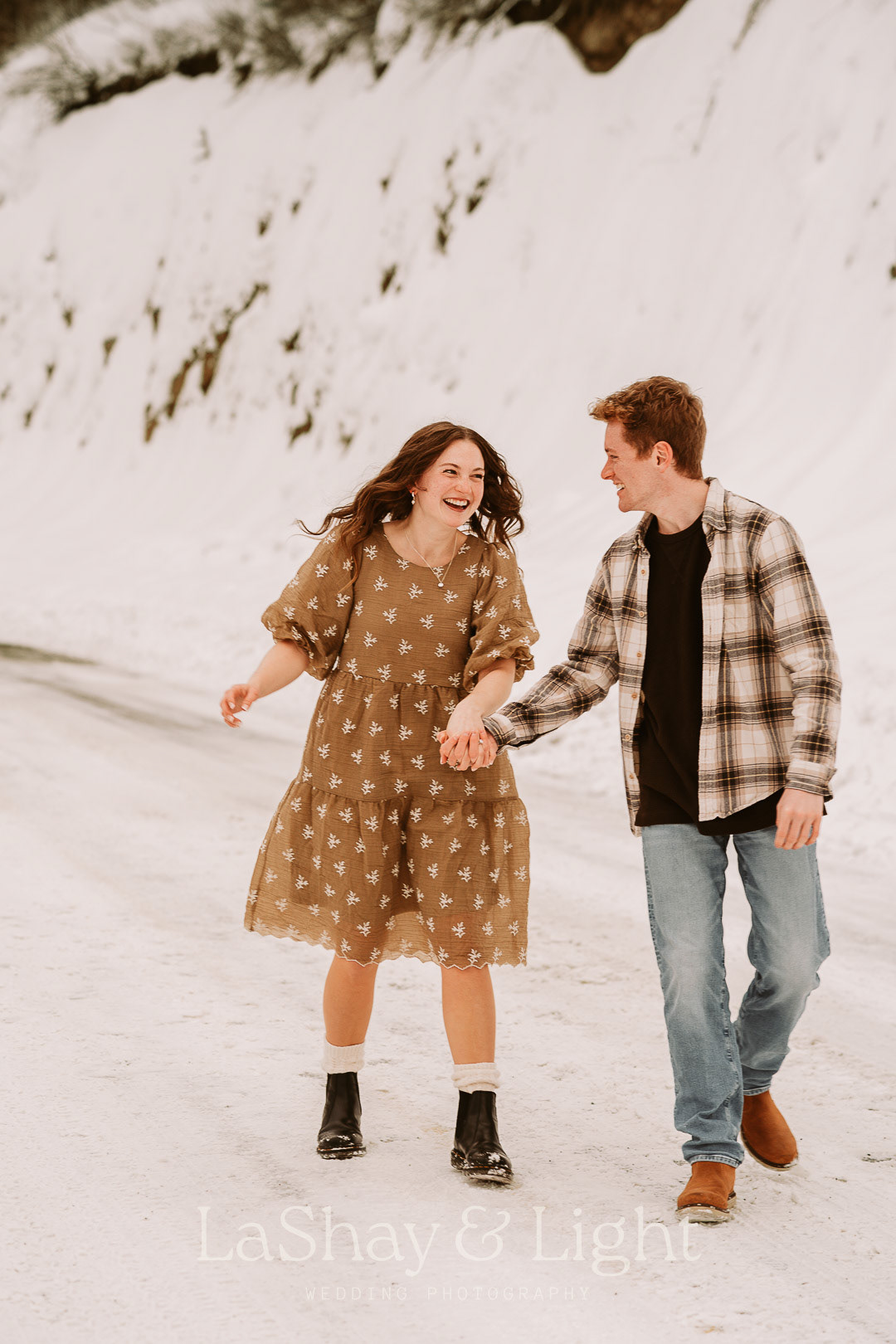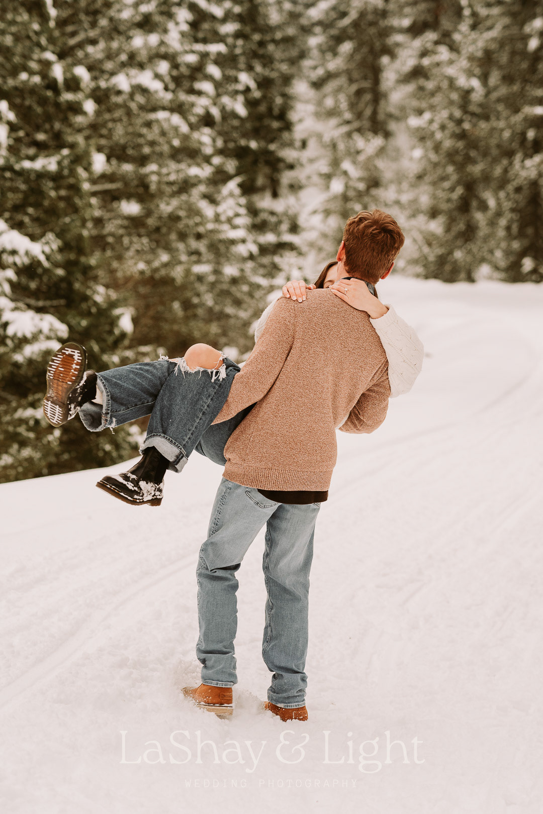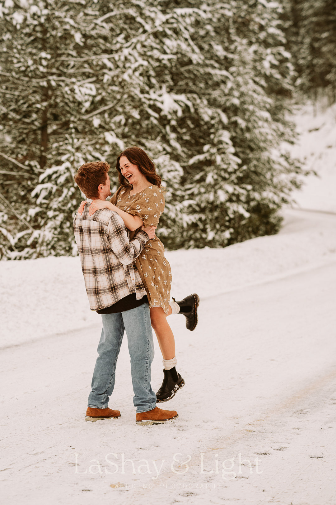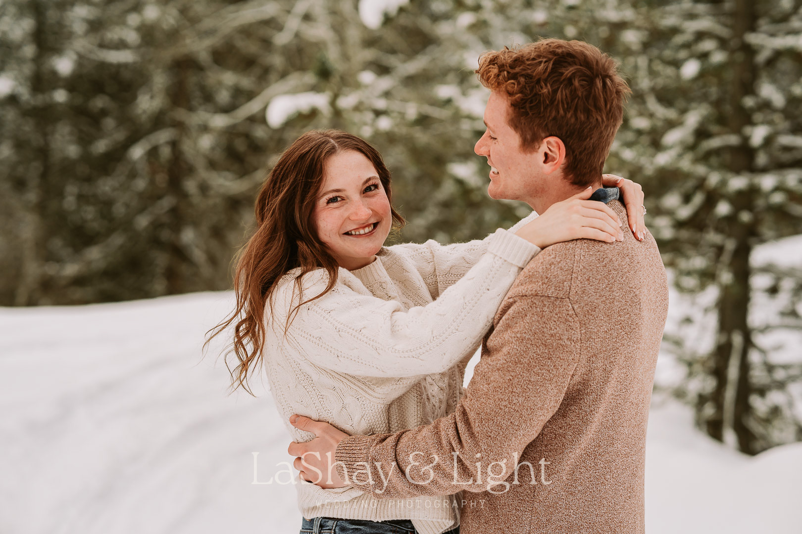 We took these photos right after a big snow storm! The result: dreamy engagement photos with lots of snow!