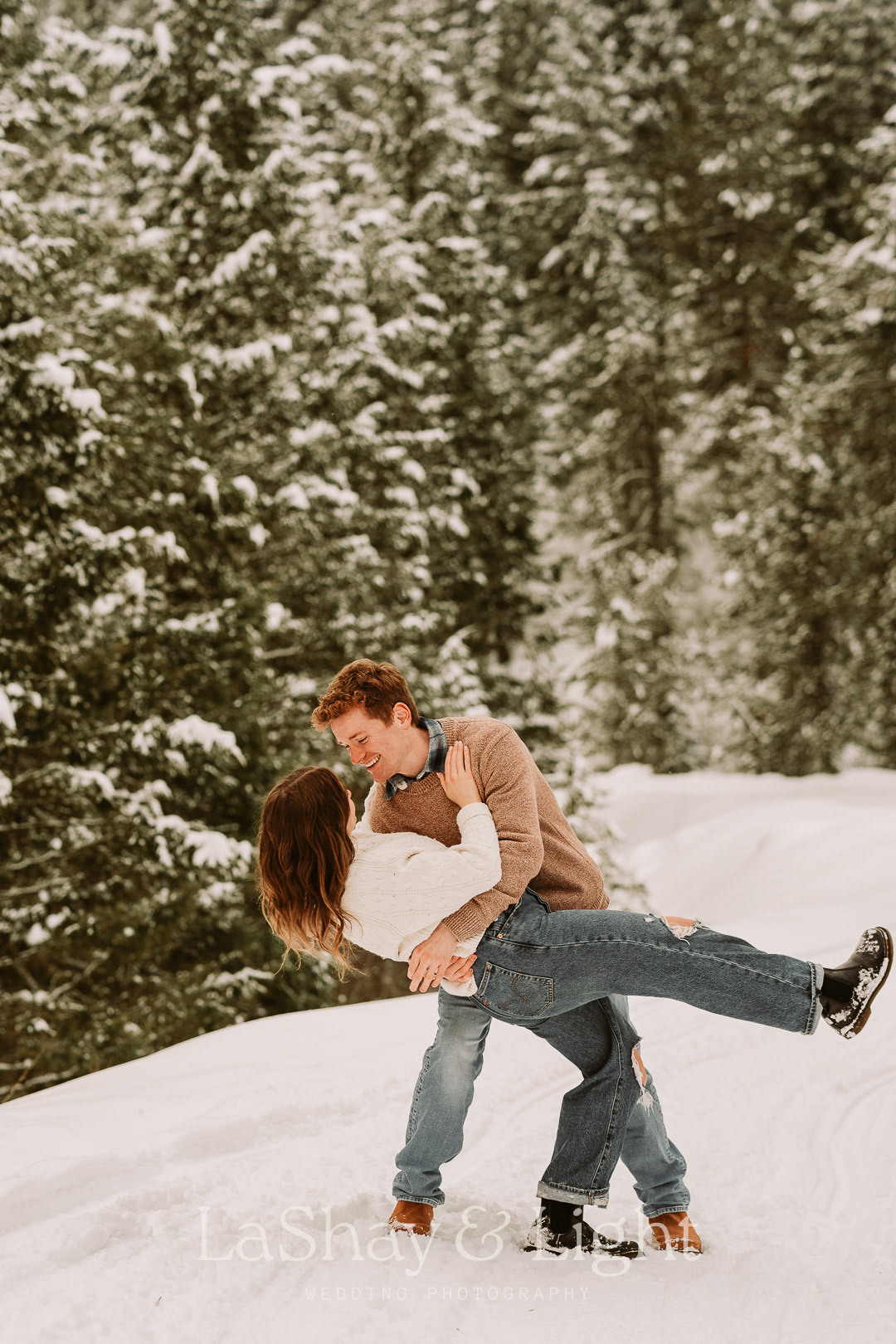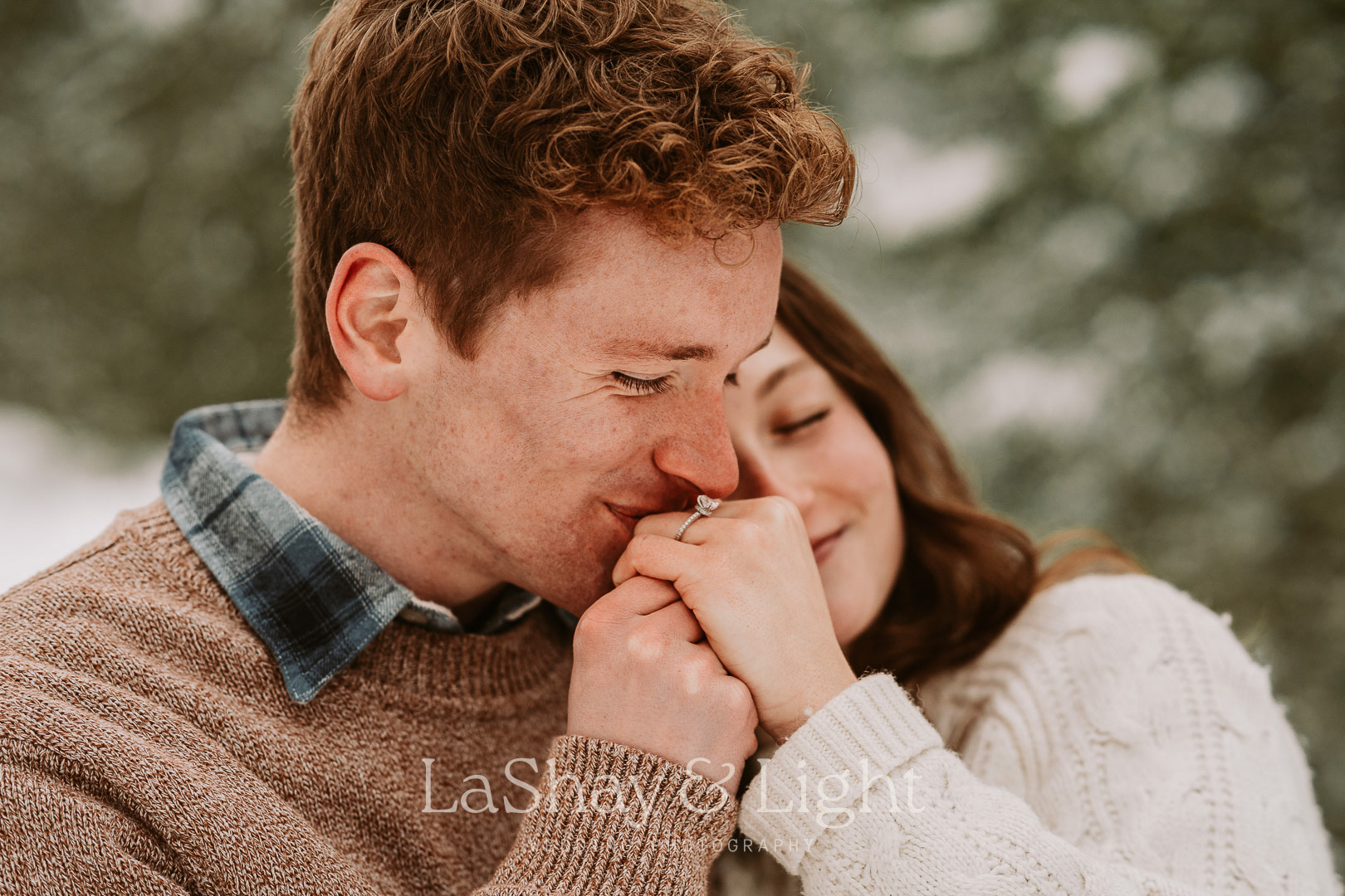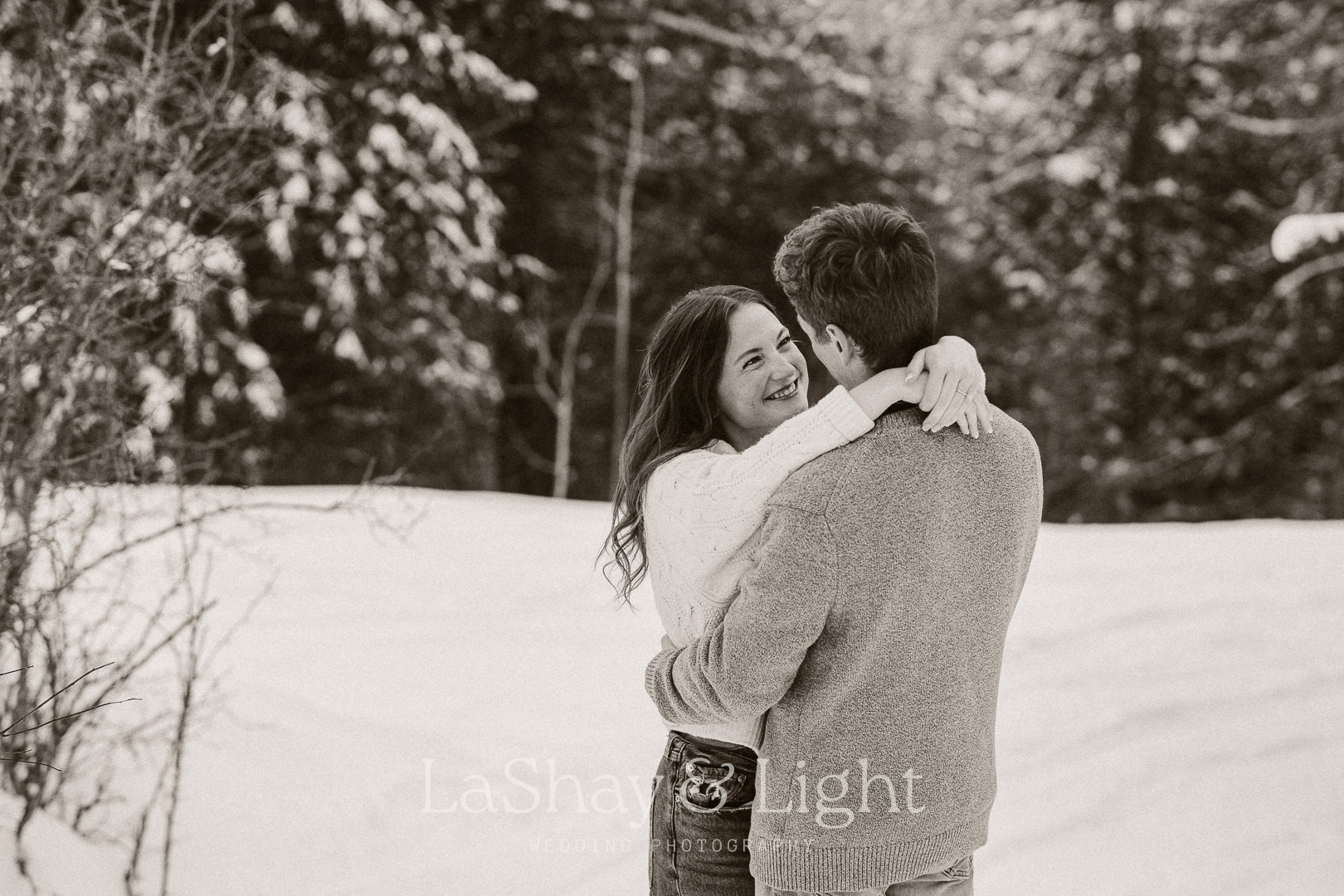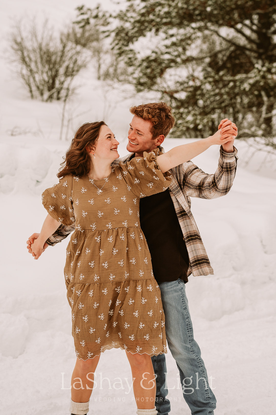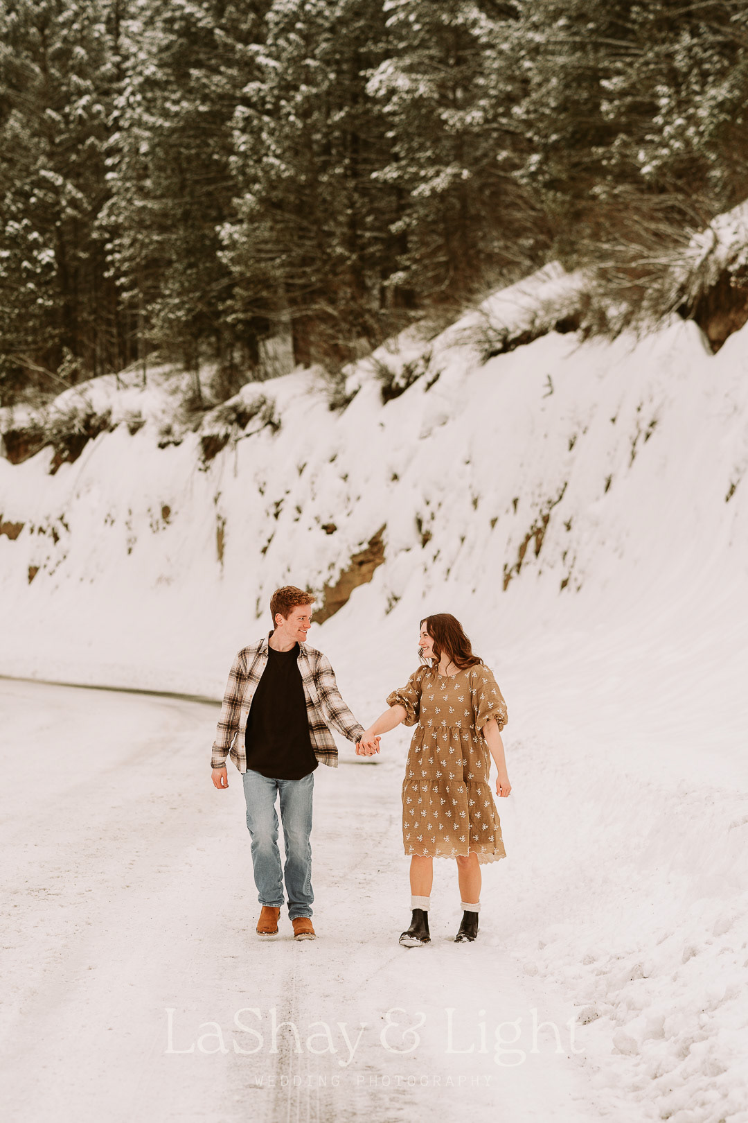 We took these photos right after a big snow storm! The result: dreamy engagement photos with lots of snow!