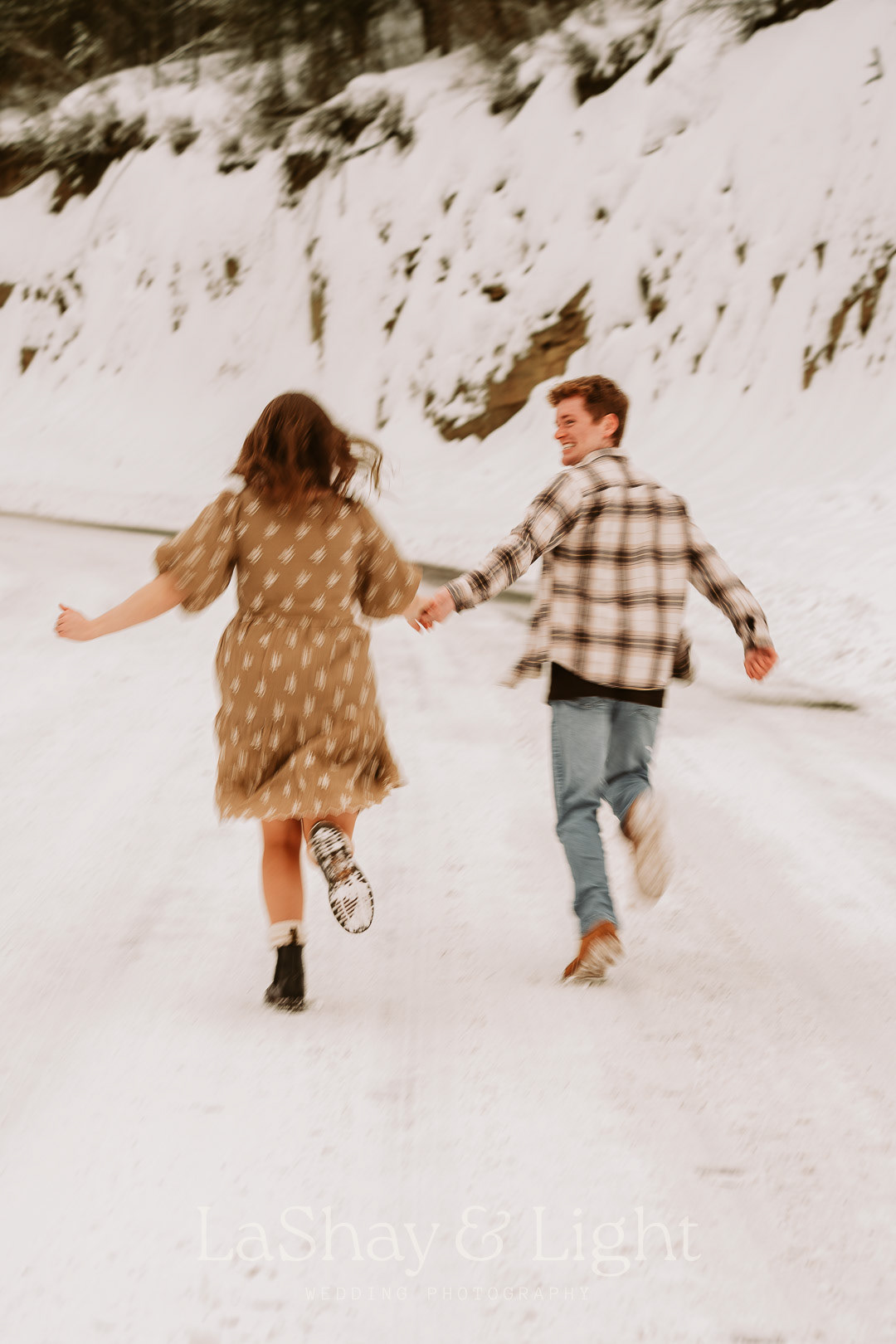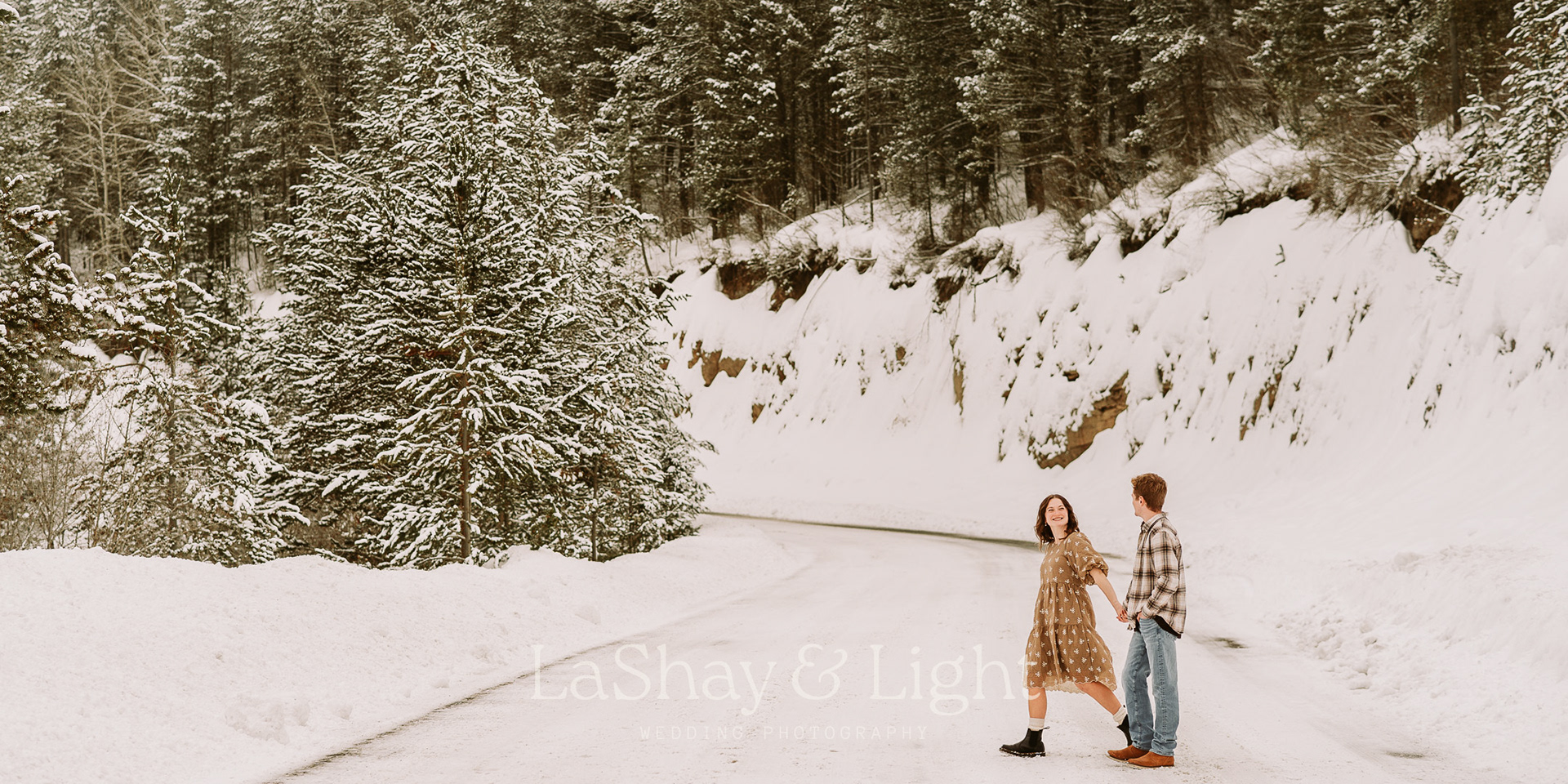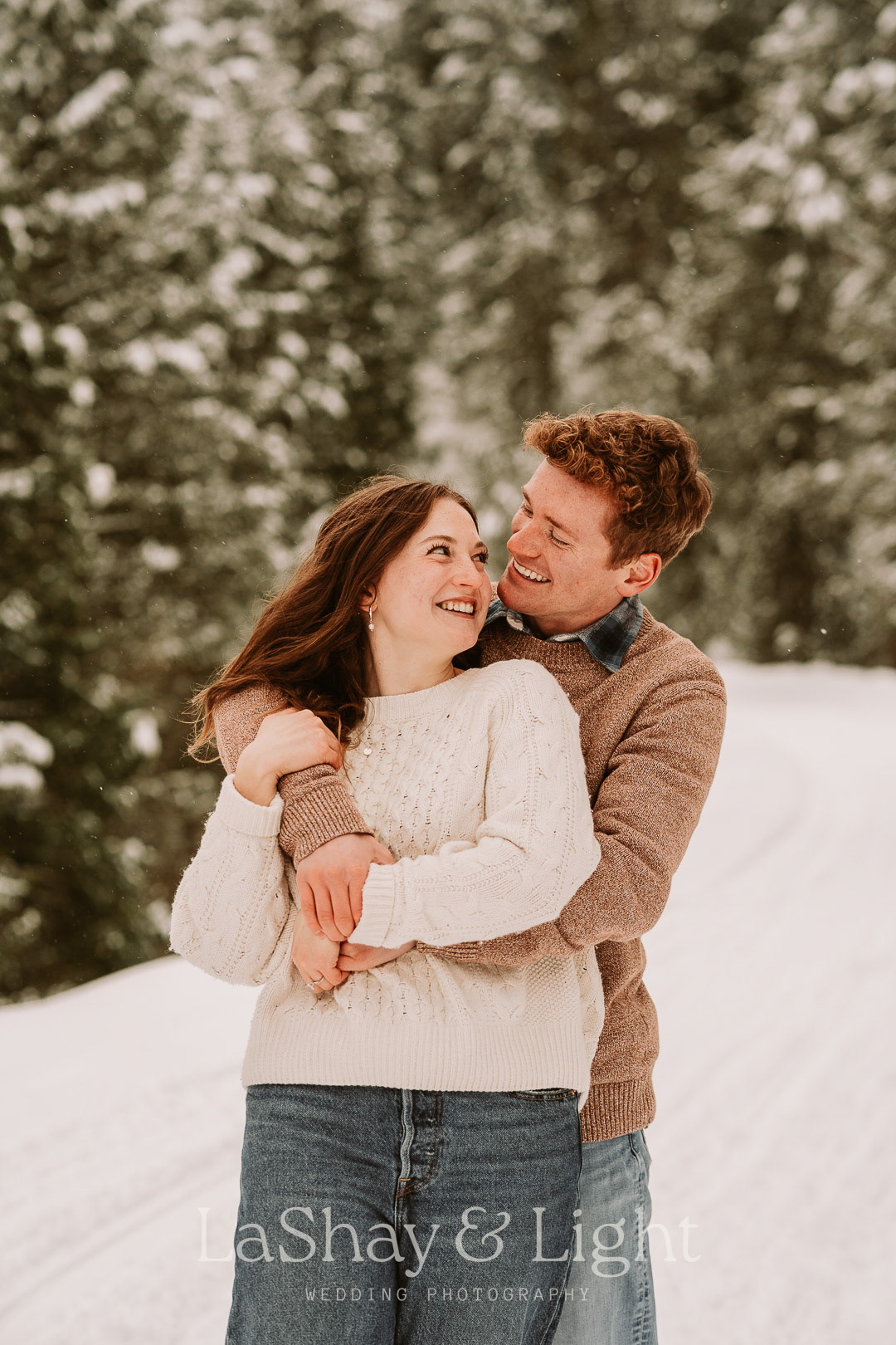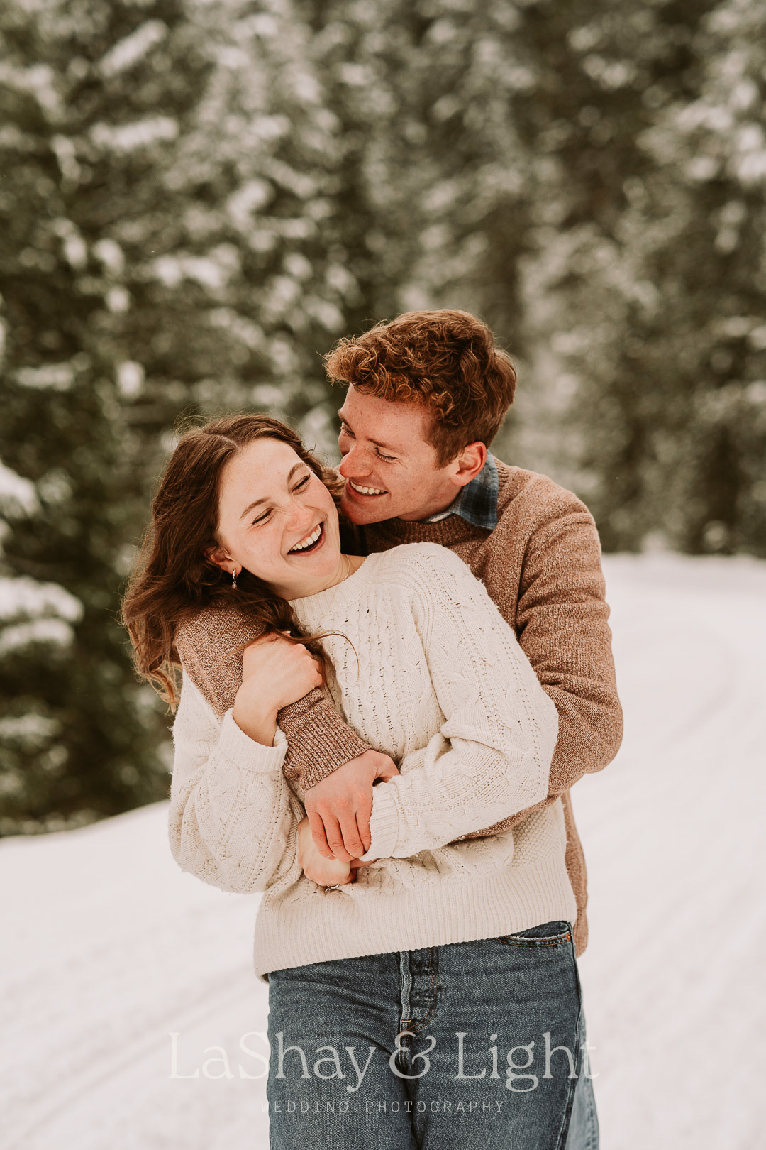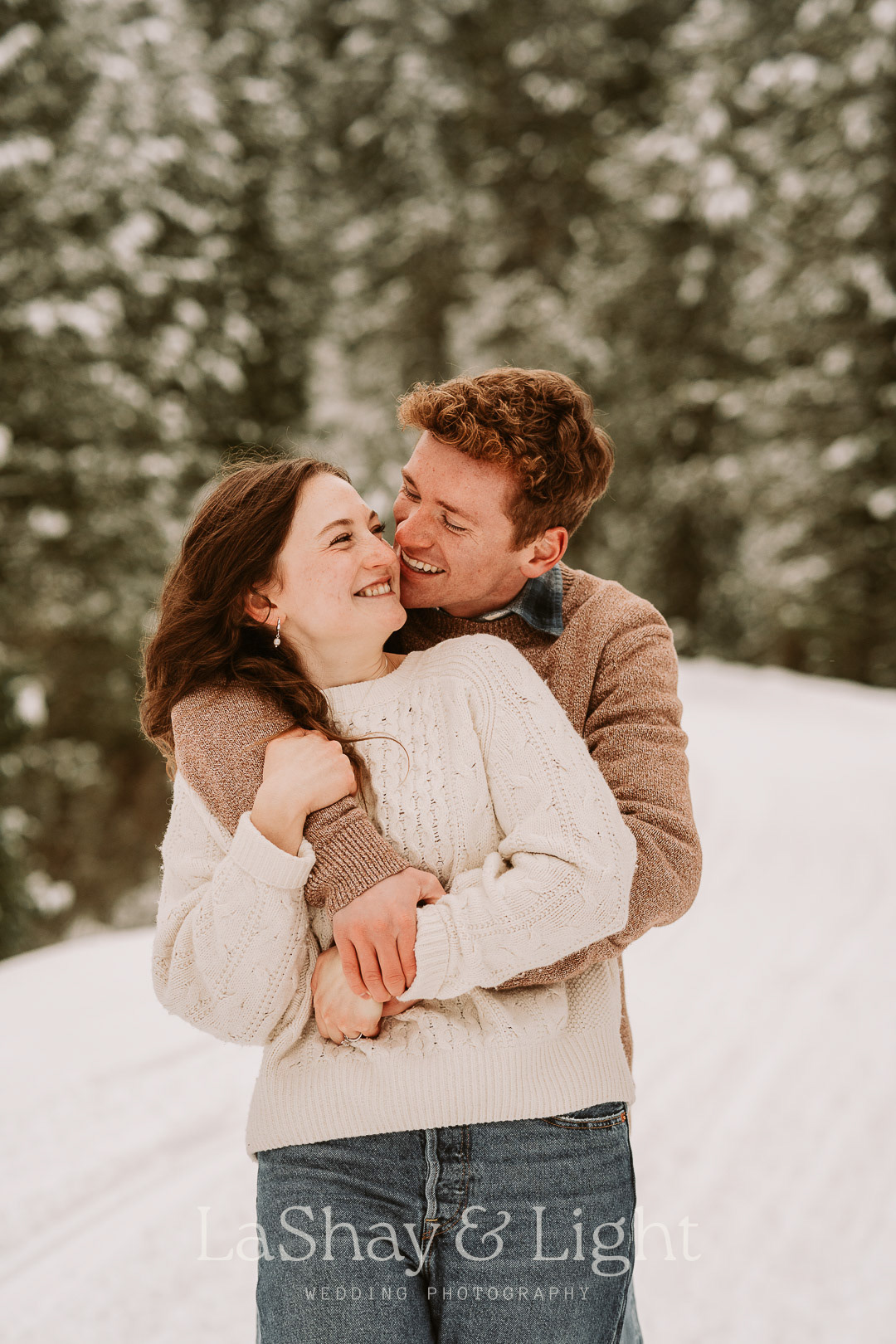 We took these photos right after a big snow storm! The result: dreamy engagement photos with lots of snow!