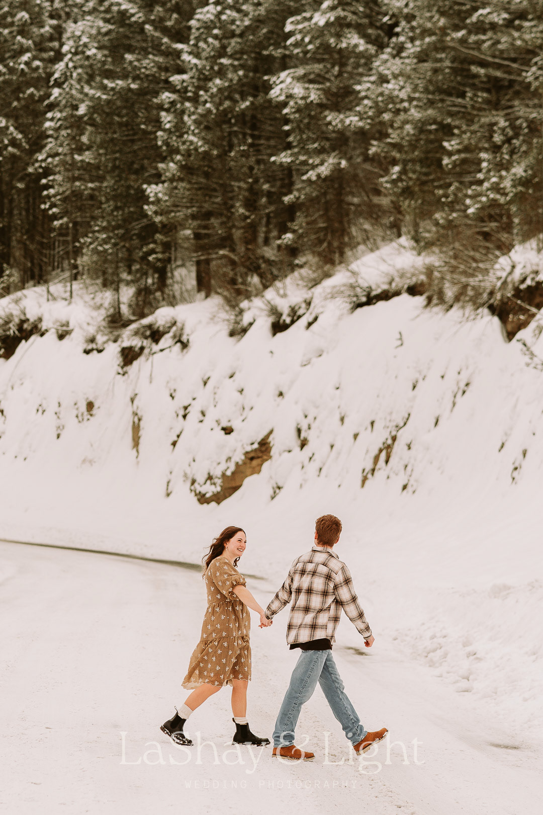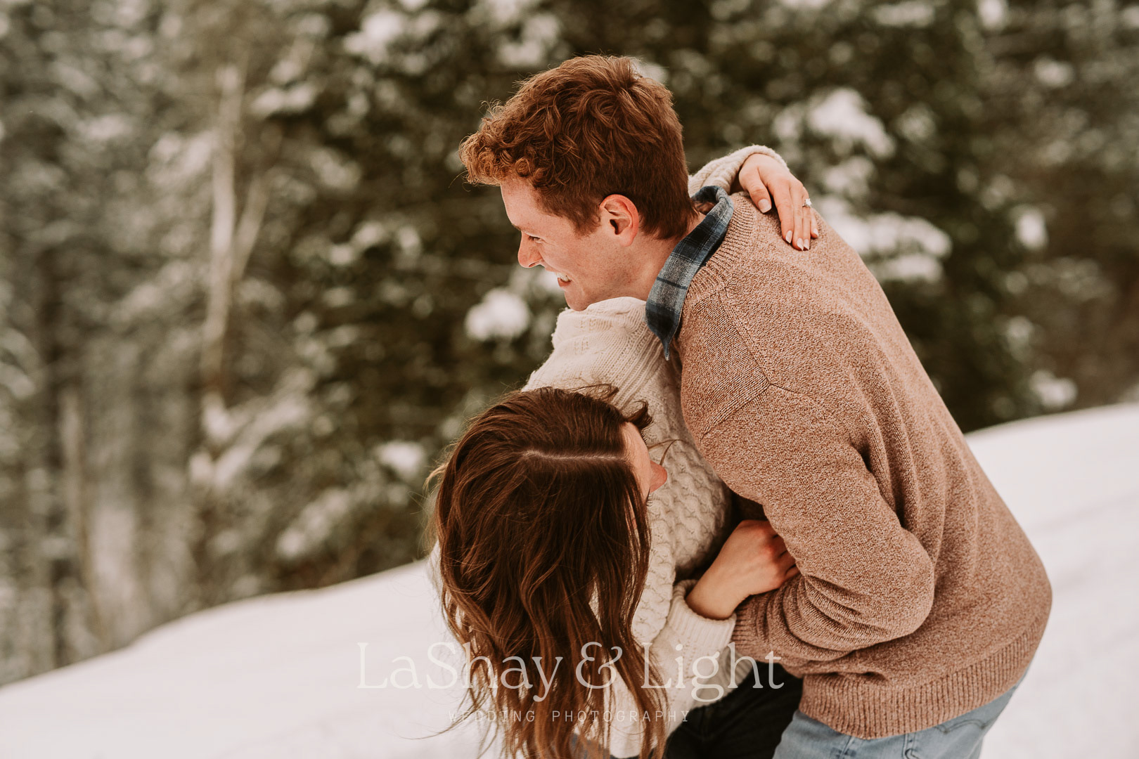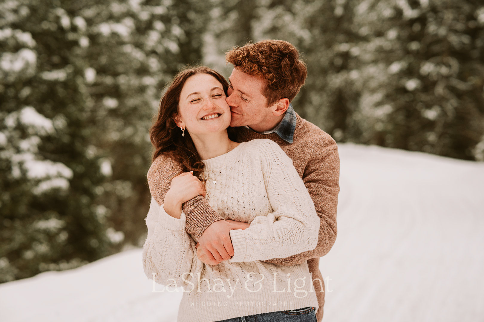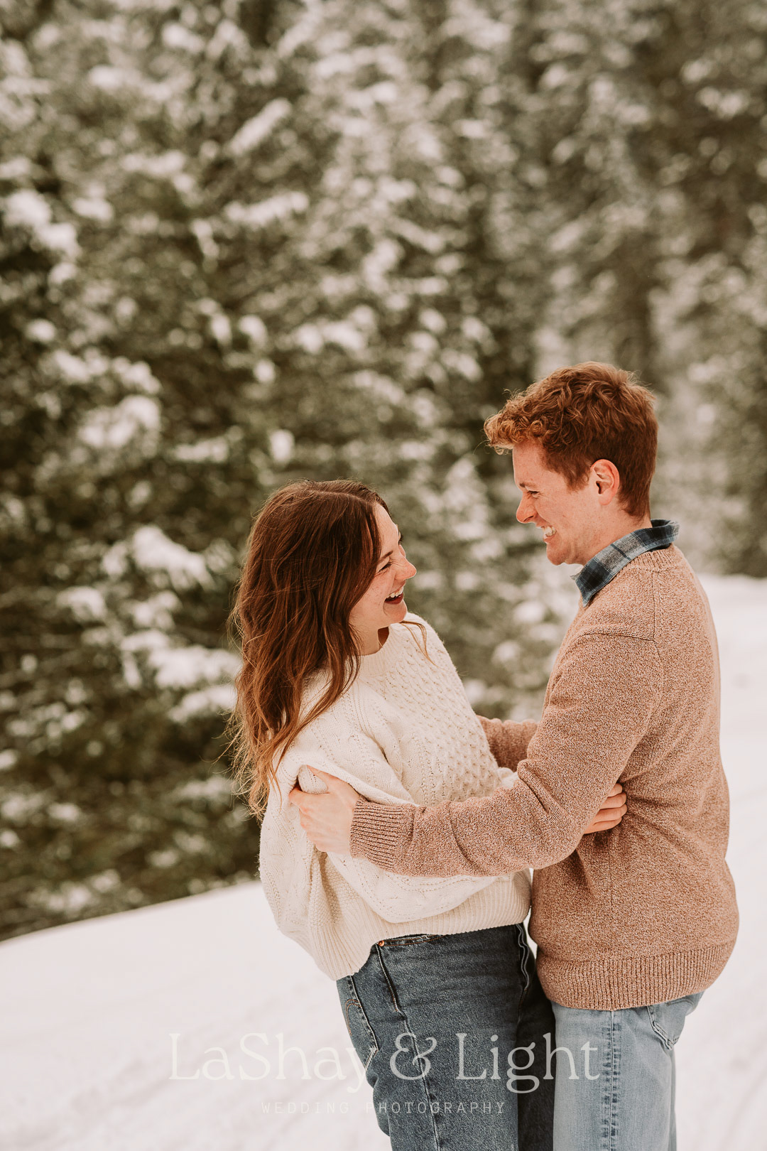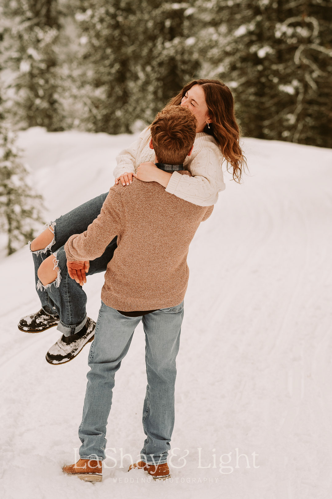 We took these photos right after a big snow storm! The result: dreamy engagement photos with lots of snow!