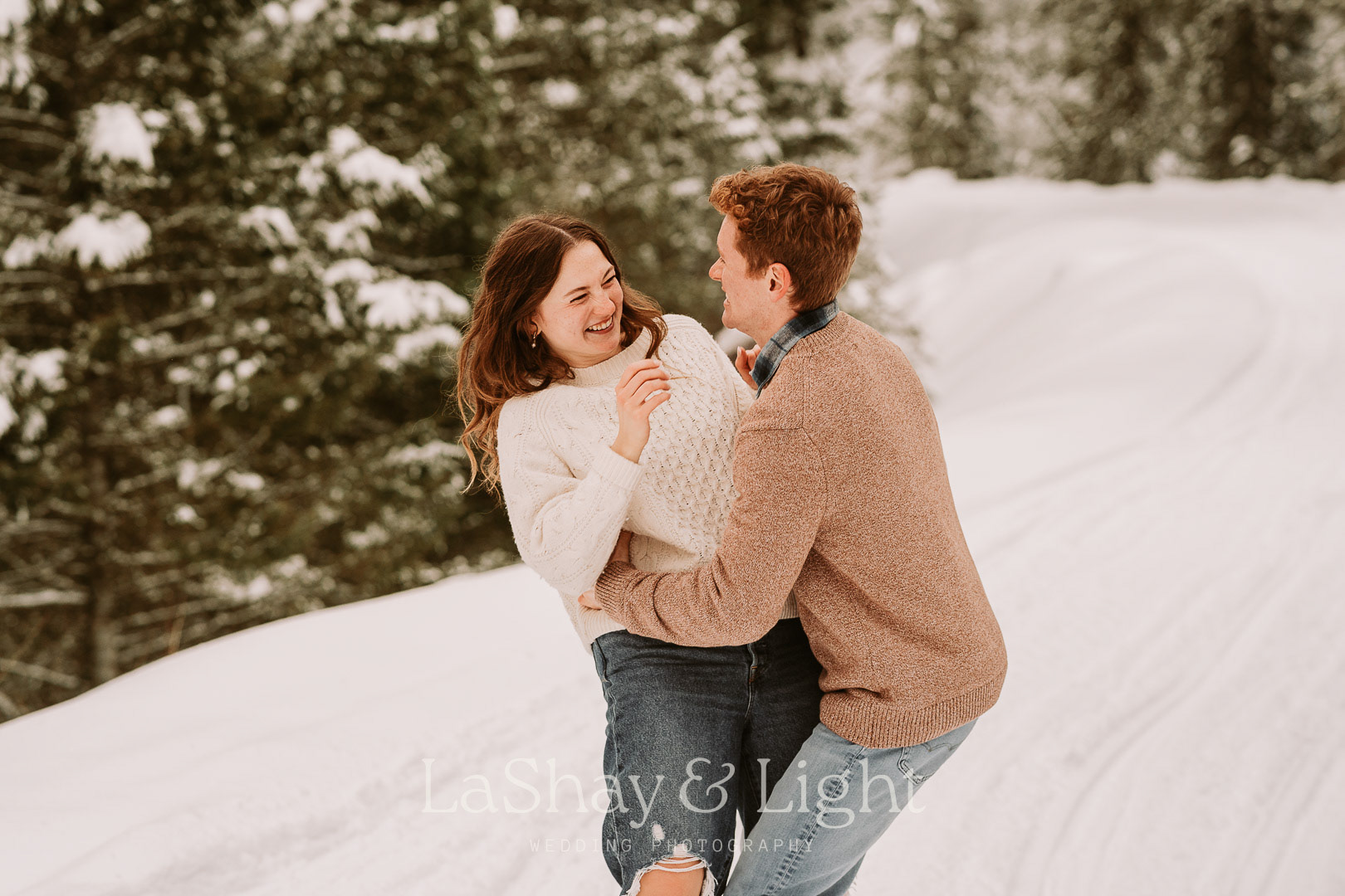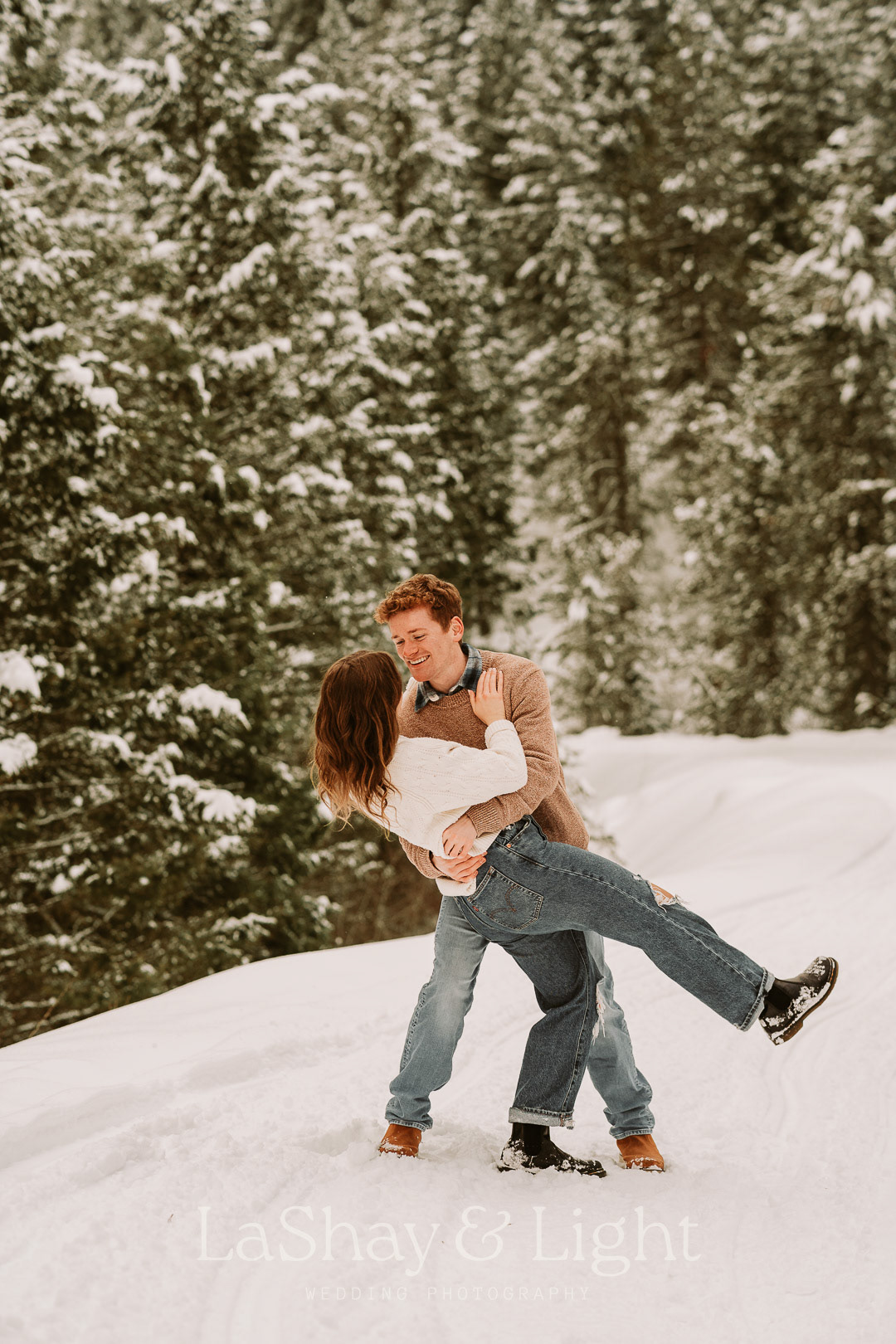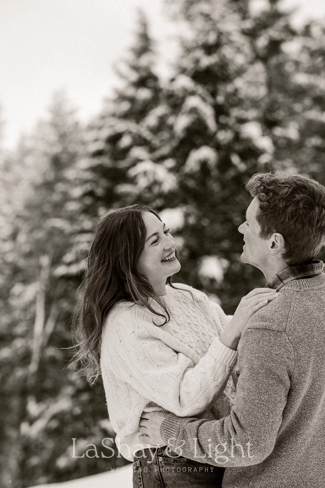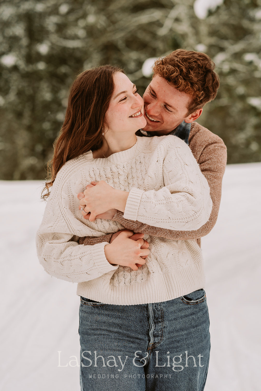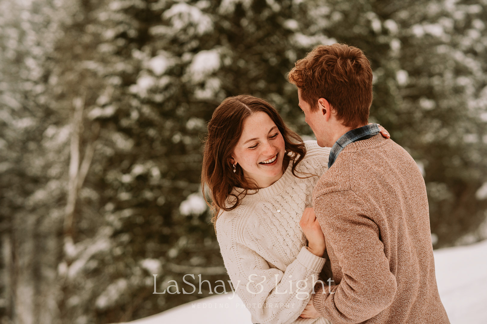 We took these photos right after a big snow storm! The result: dreamy engagement photos with lots of snow!