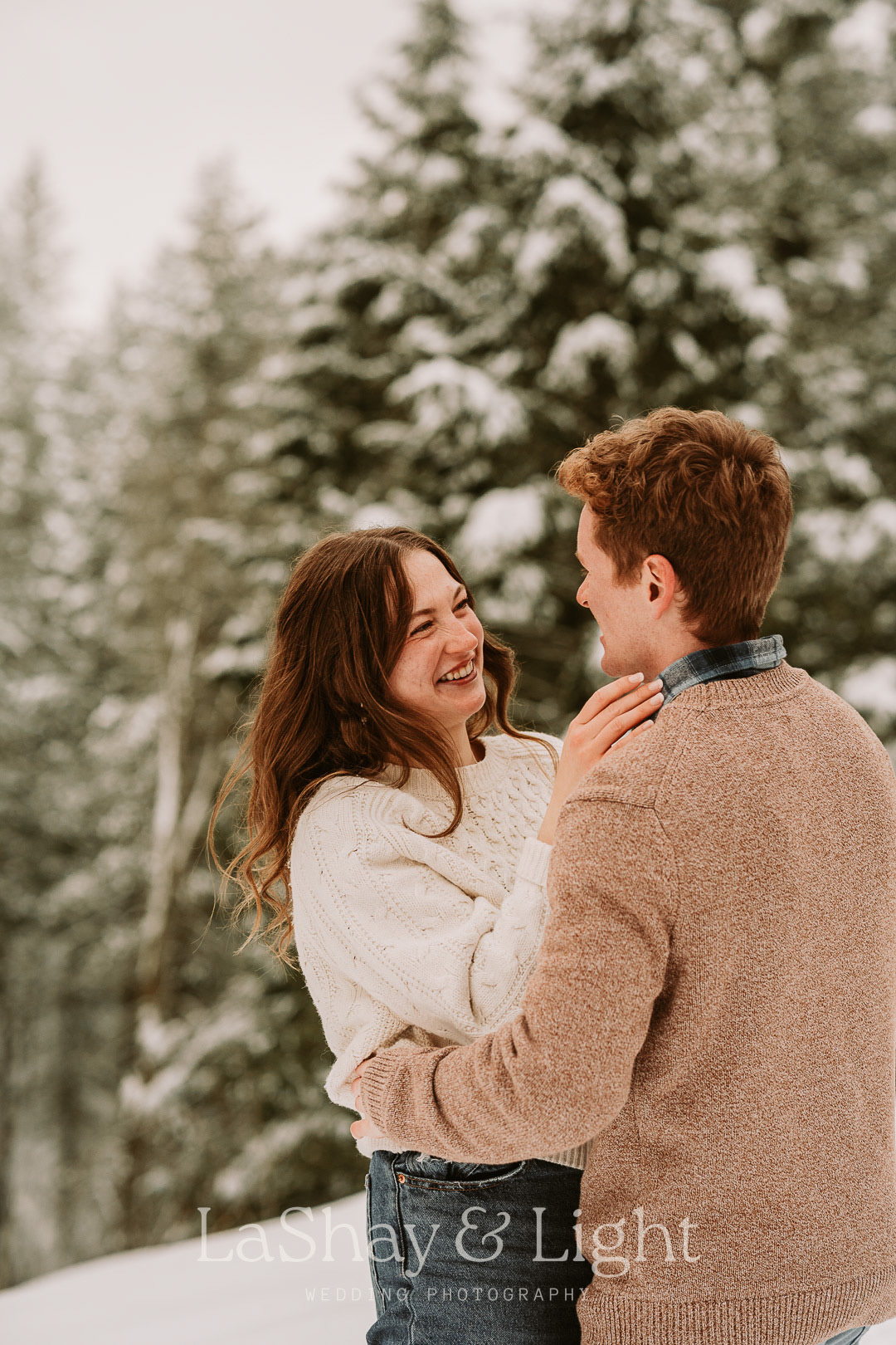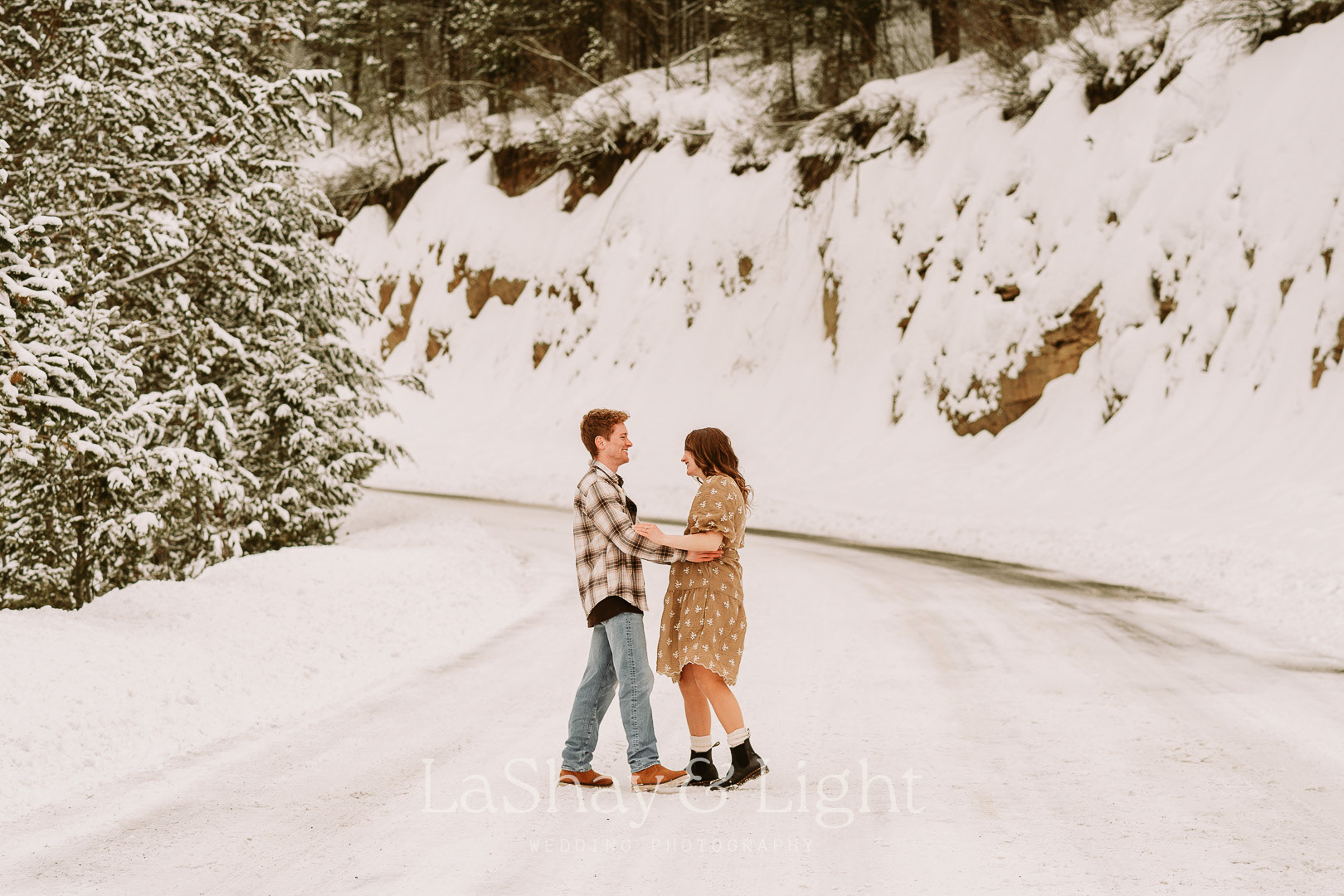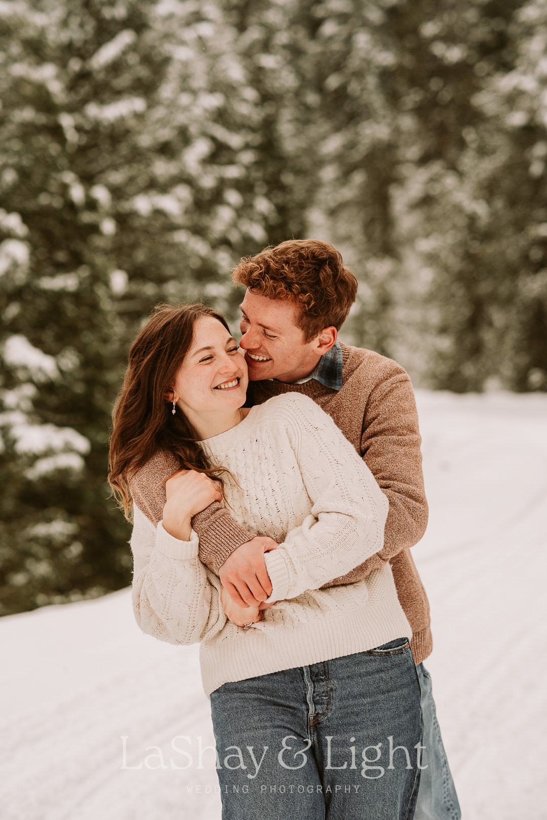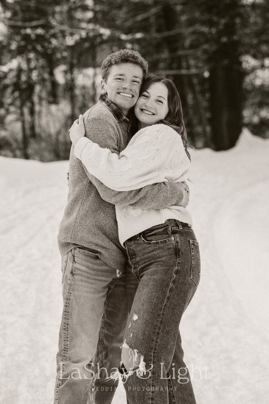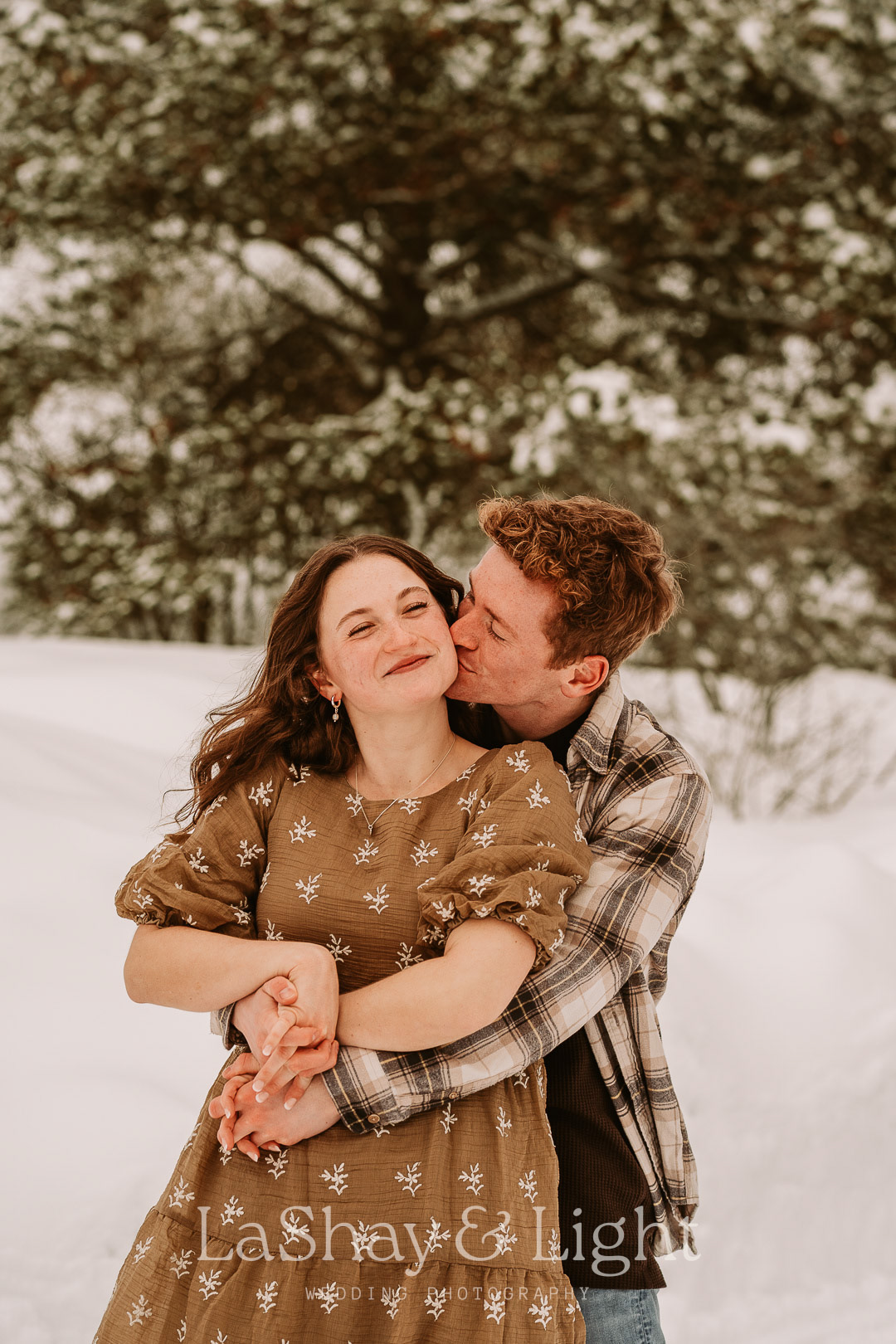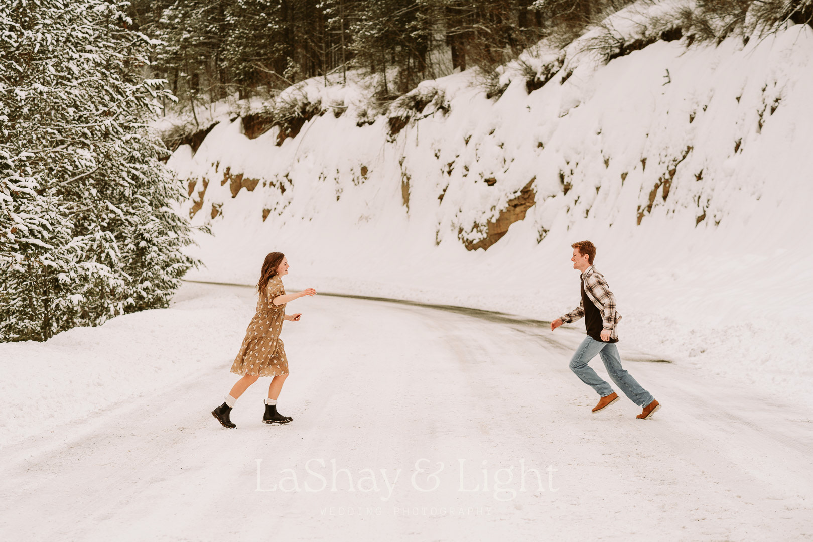 We took these photos right after a big snow storm! The result: dreamy engagement photos with lots of snow!