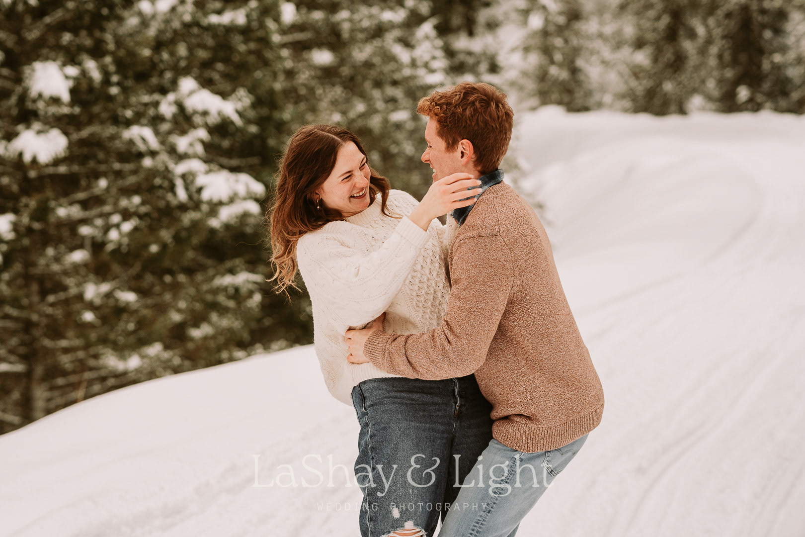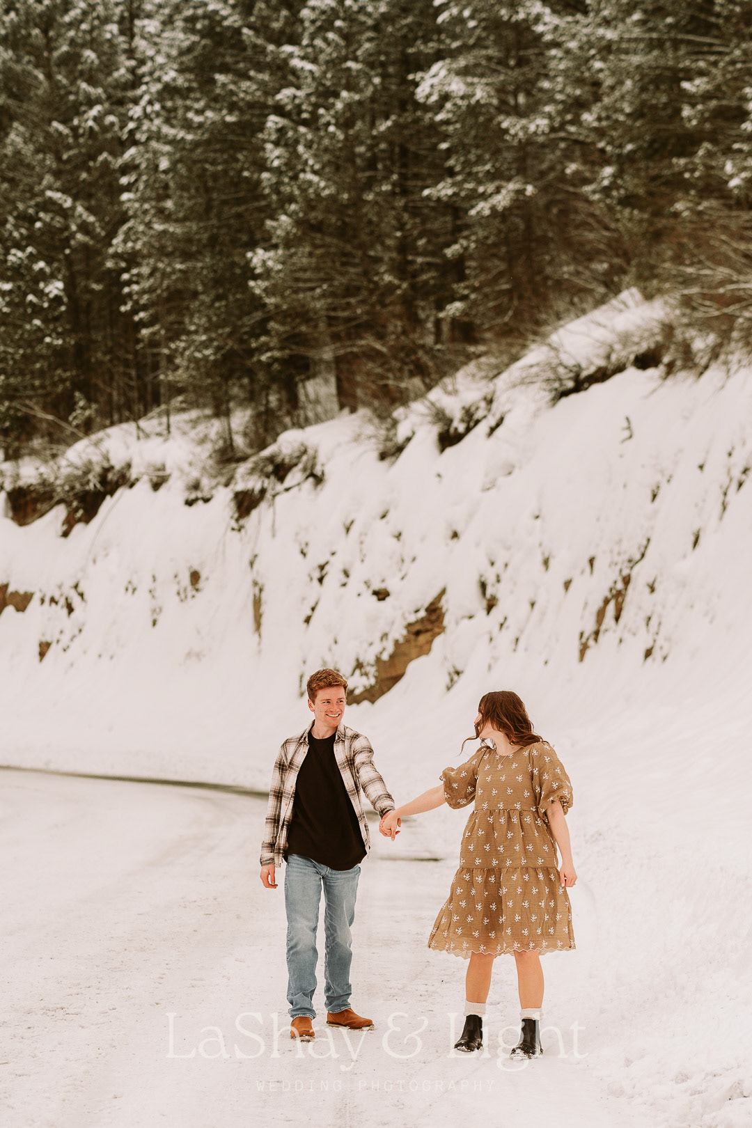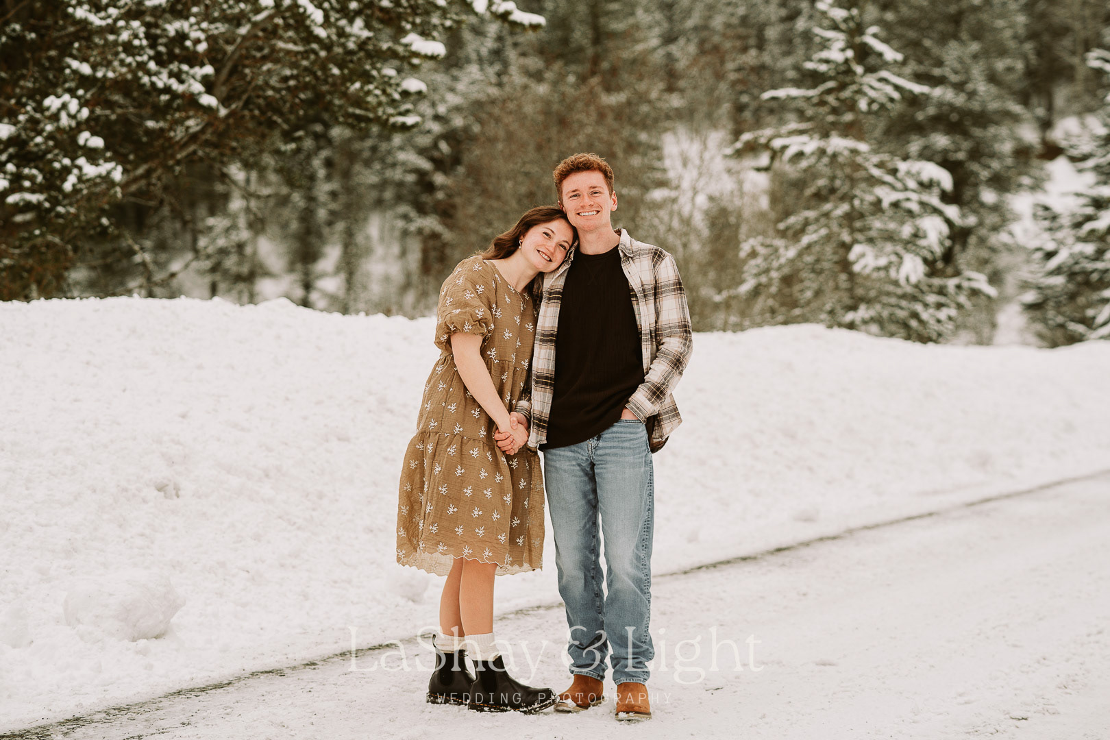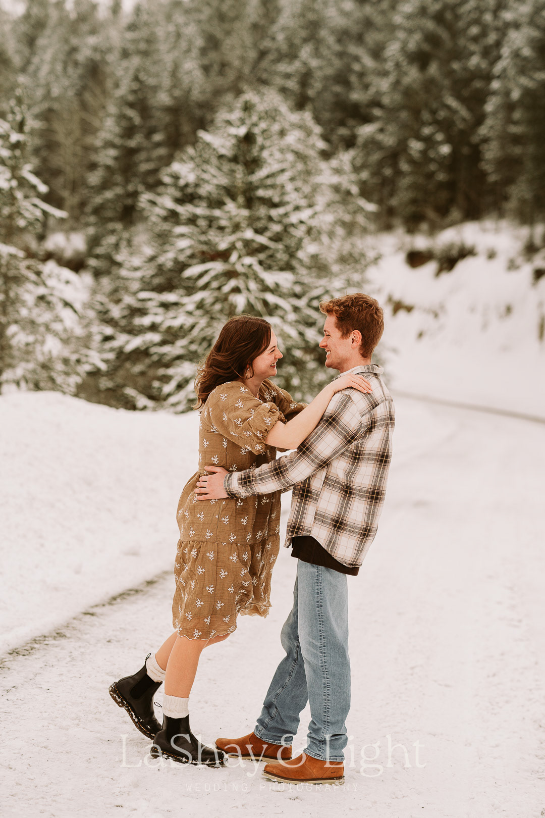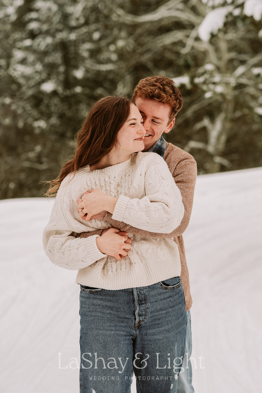 We took these photos right after a big snow storm! The result: dreamy engagement photos with lots of snow!