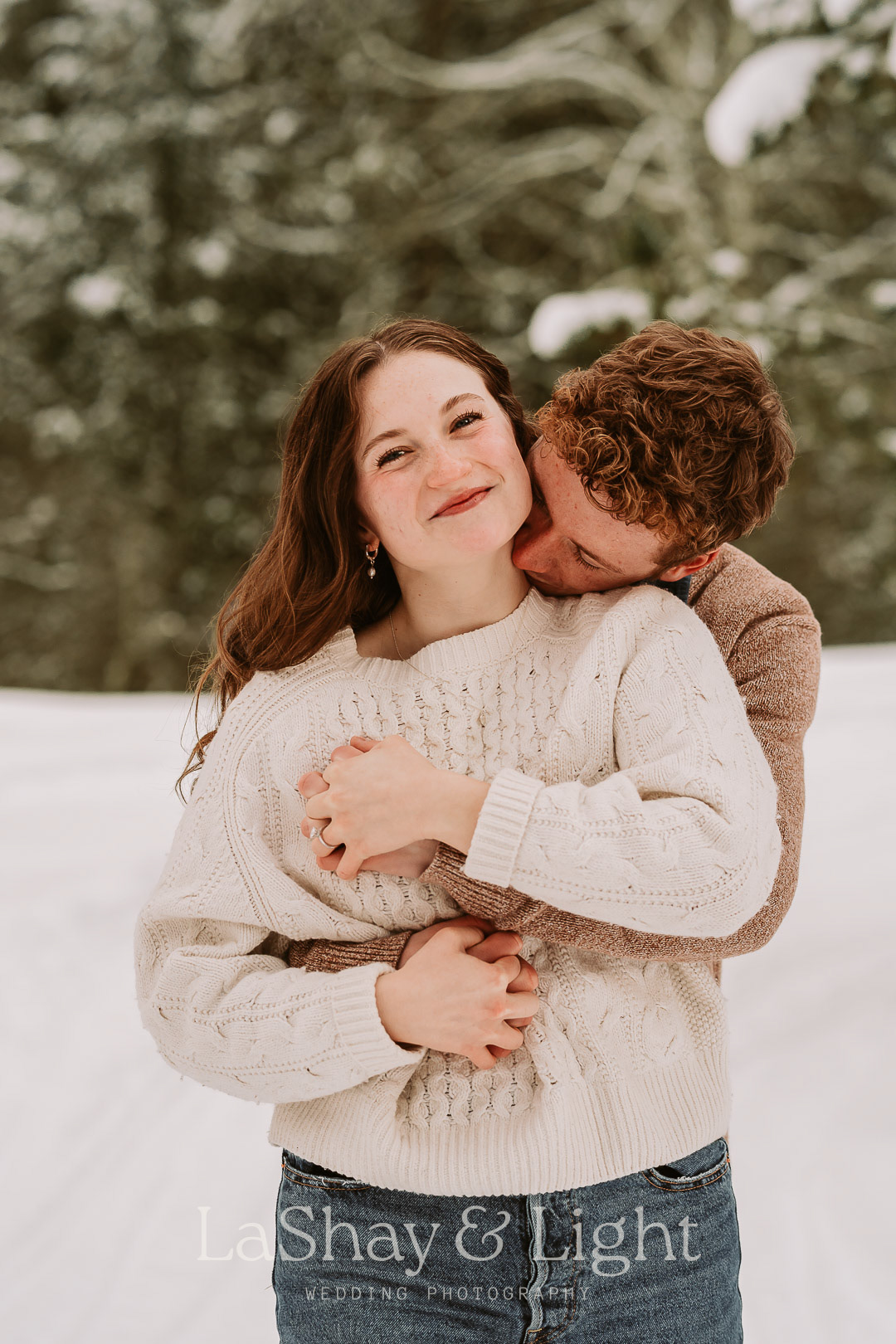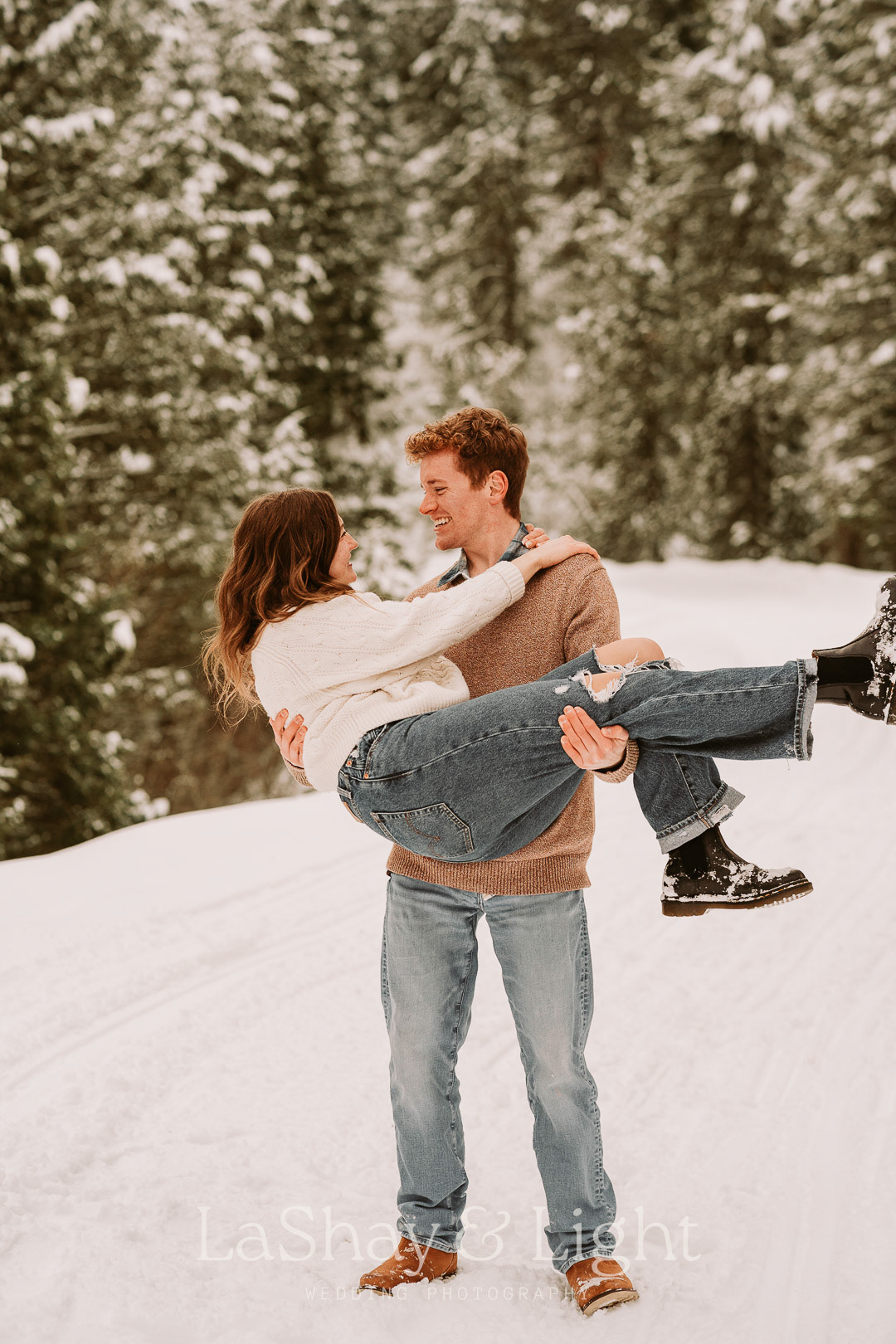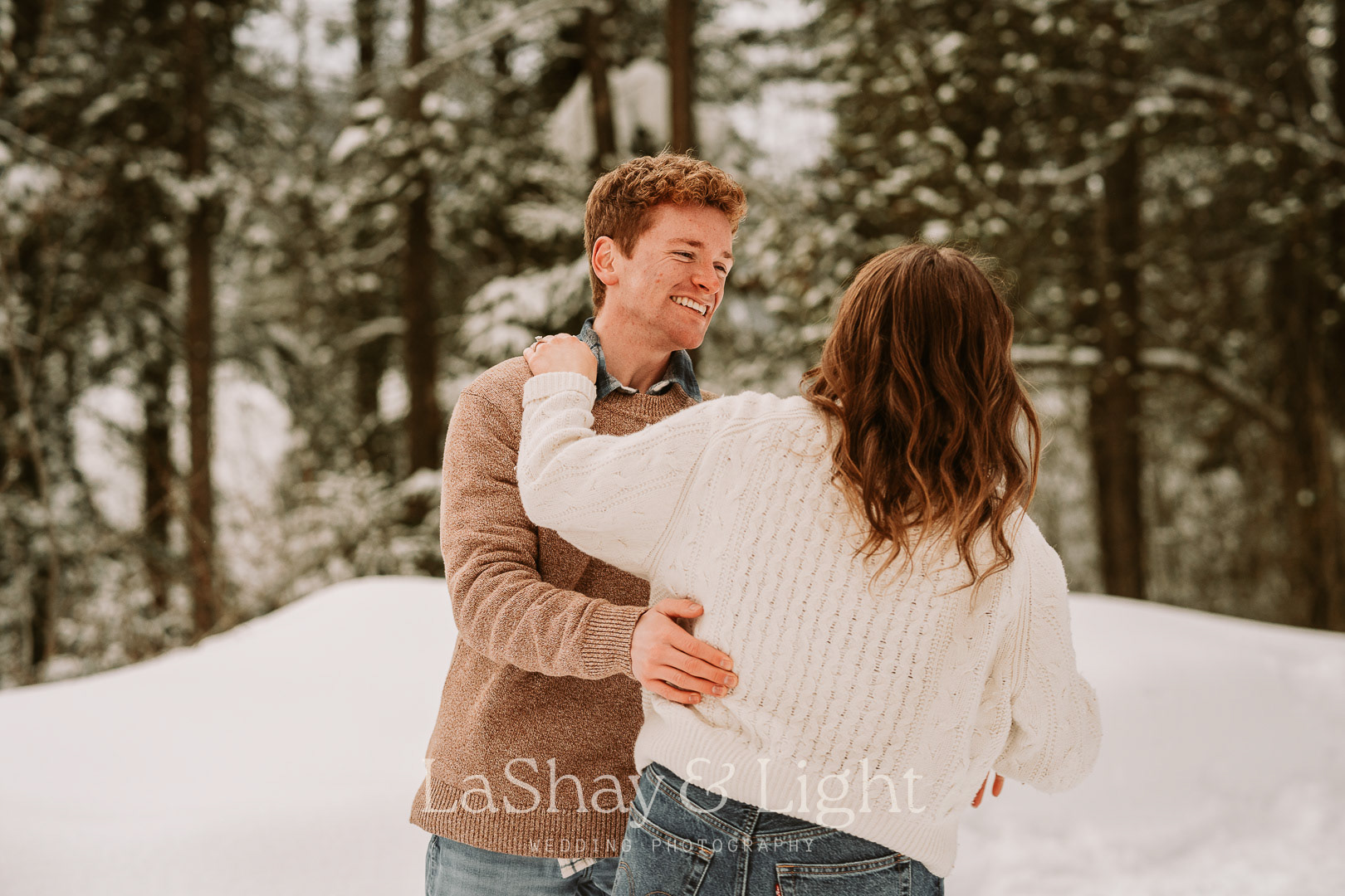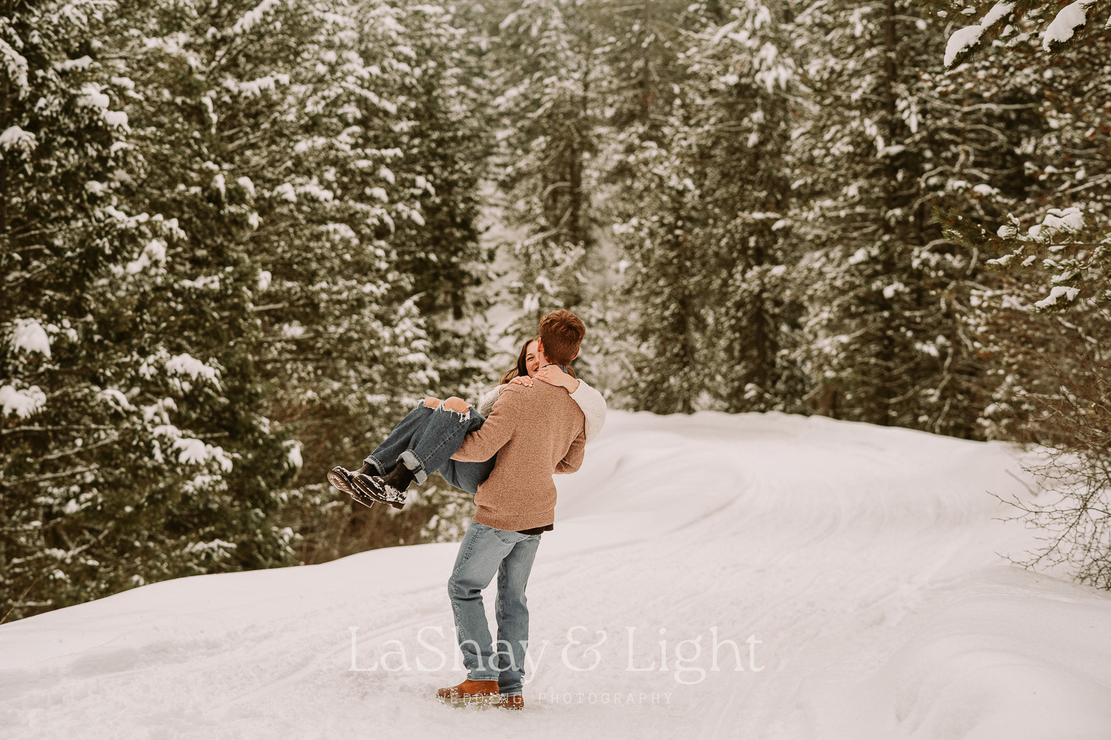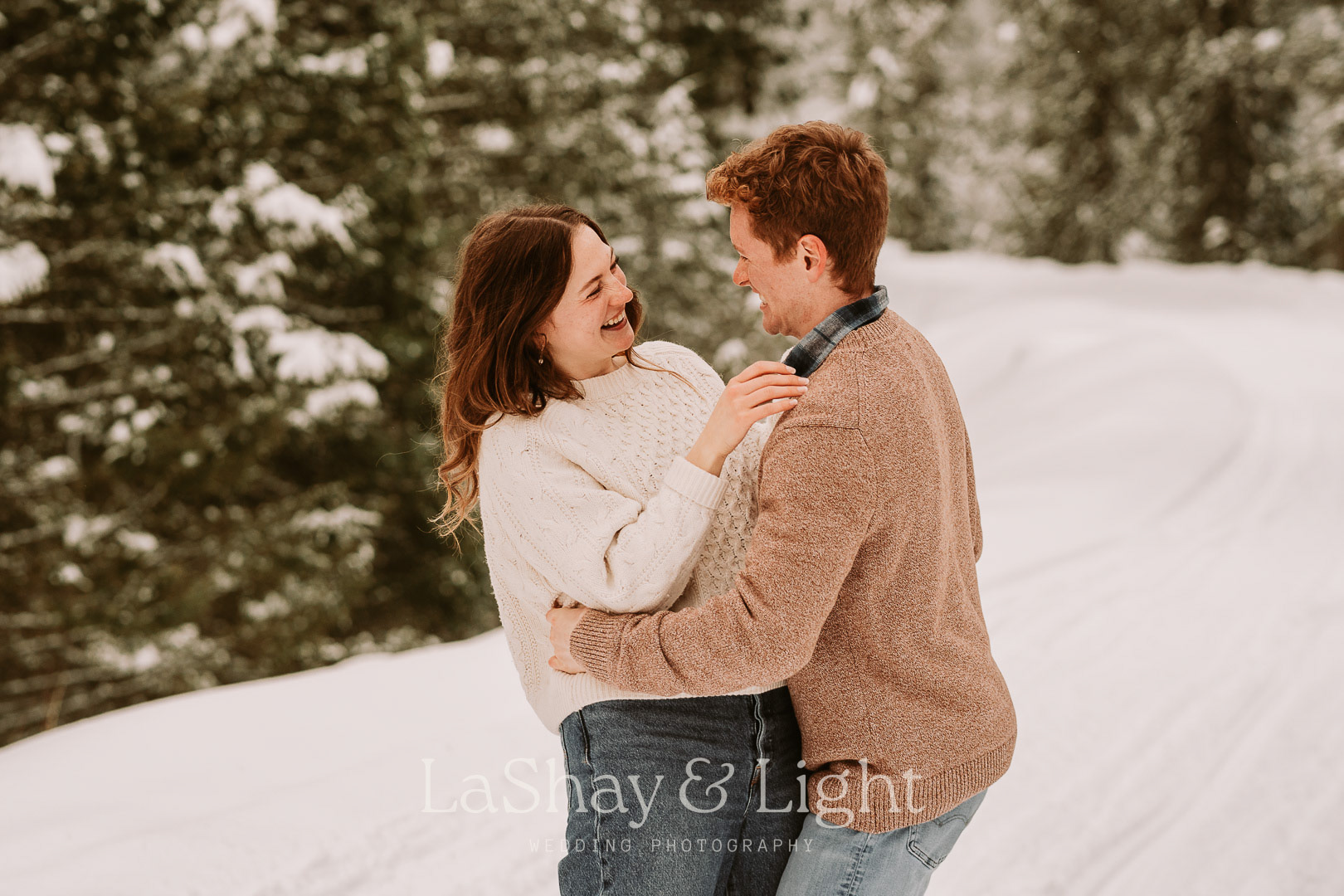 We took these photos right after a big snow storm! The result: dreamy engagement photos with lots of snow!