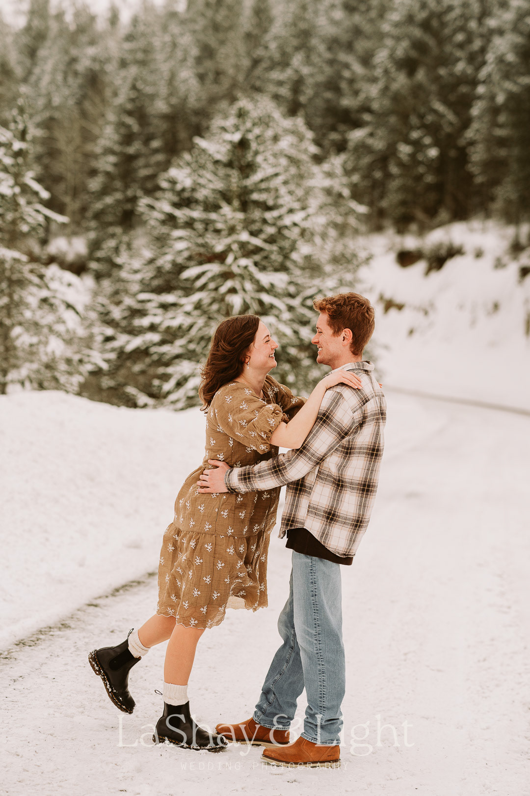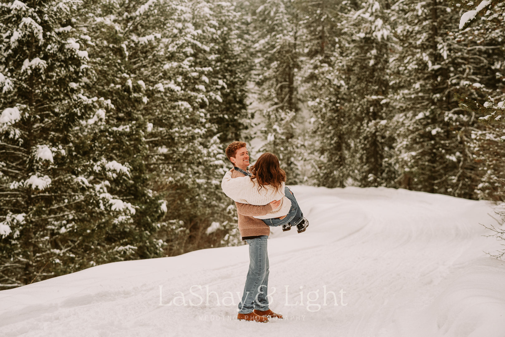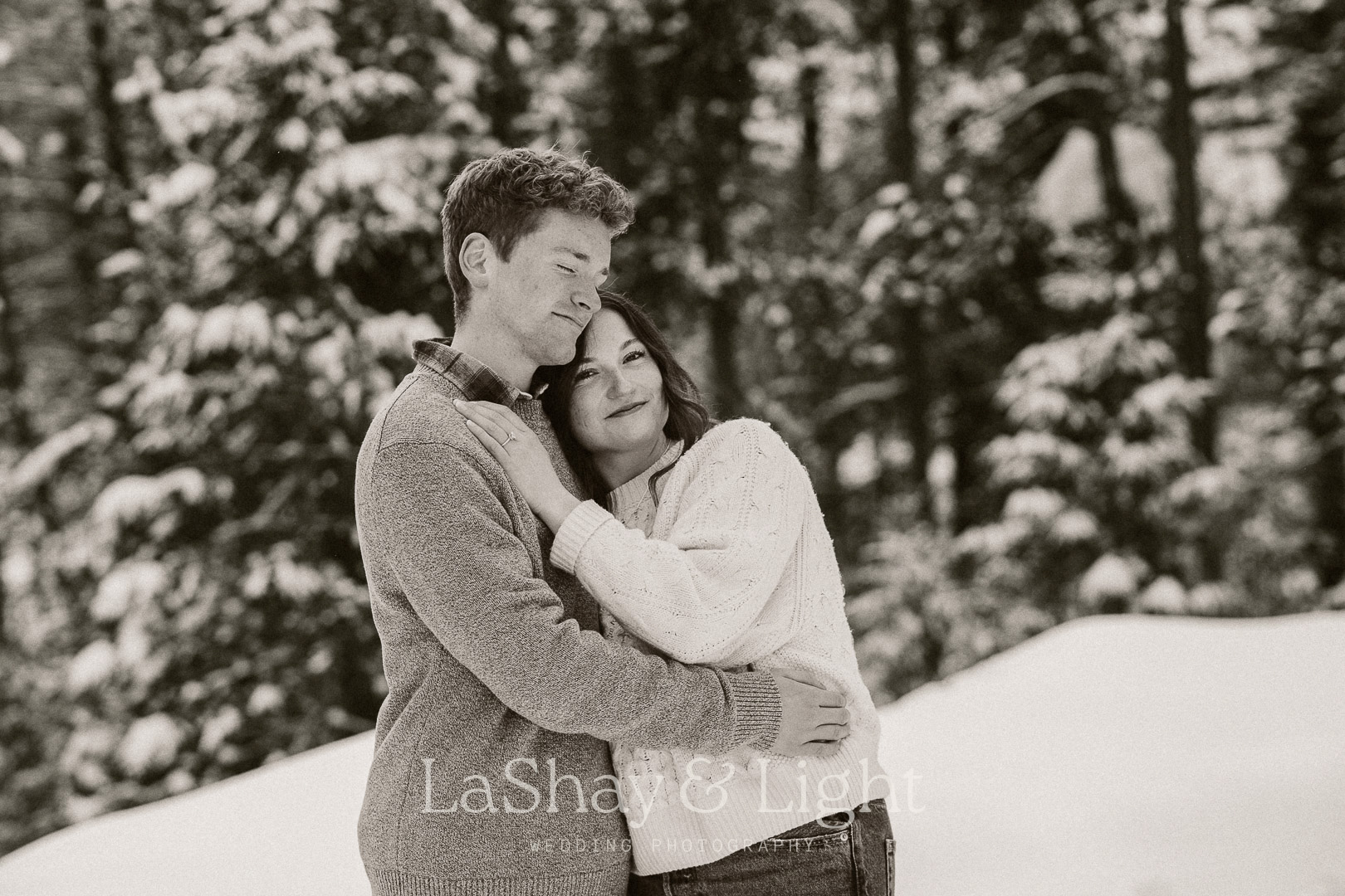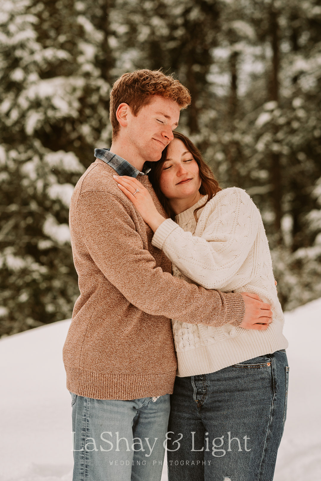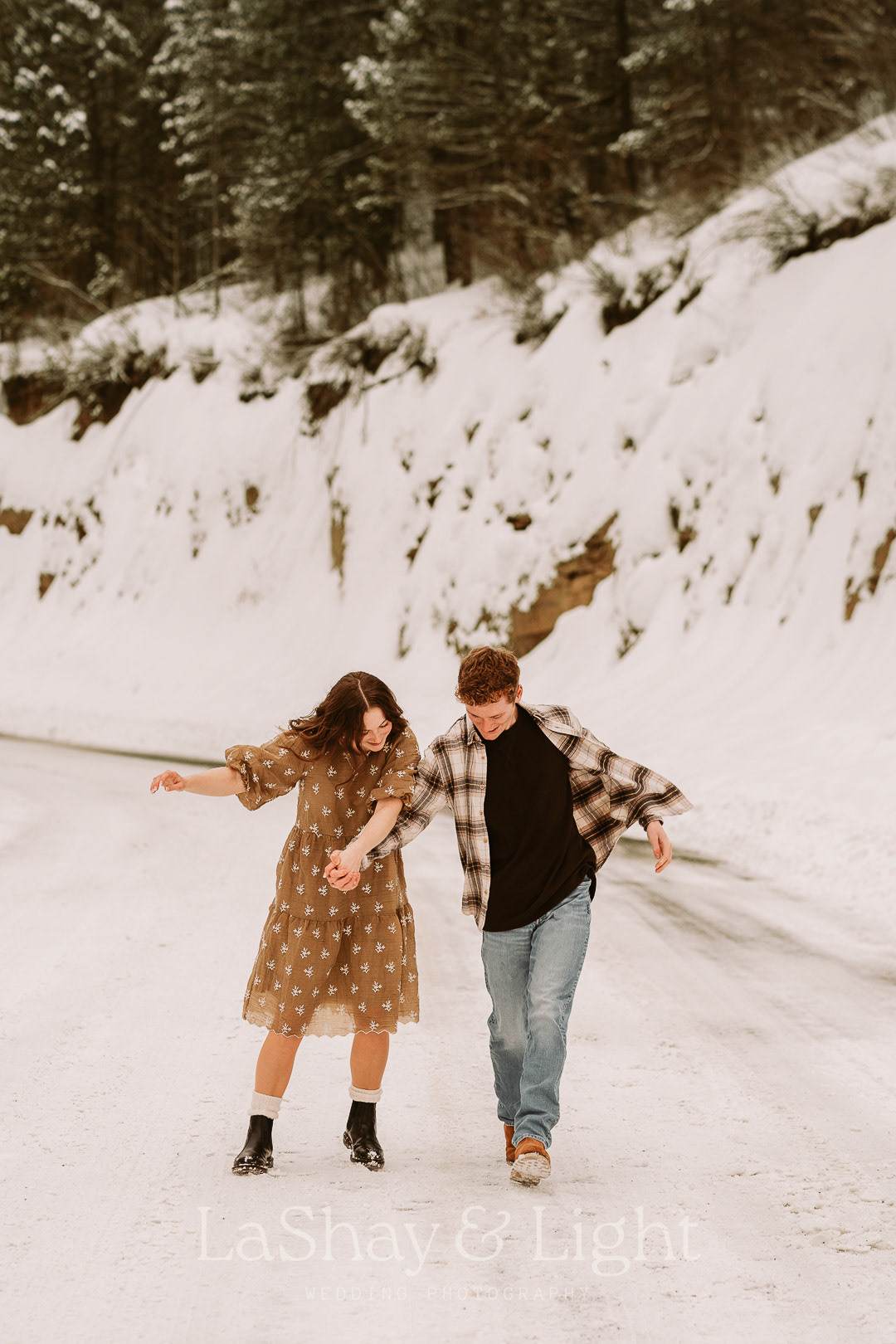 We took these photos right after a big snow storm! The result: dreamy engagement photos with lots of snow!
