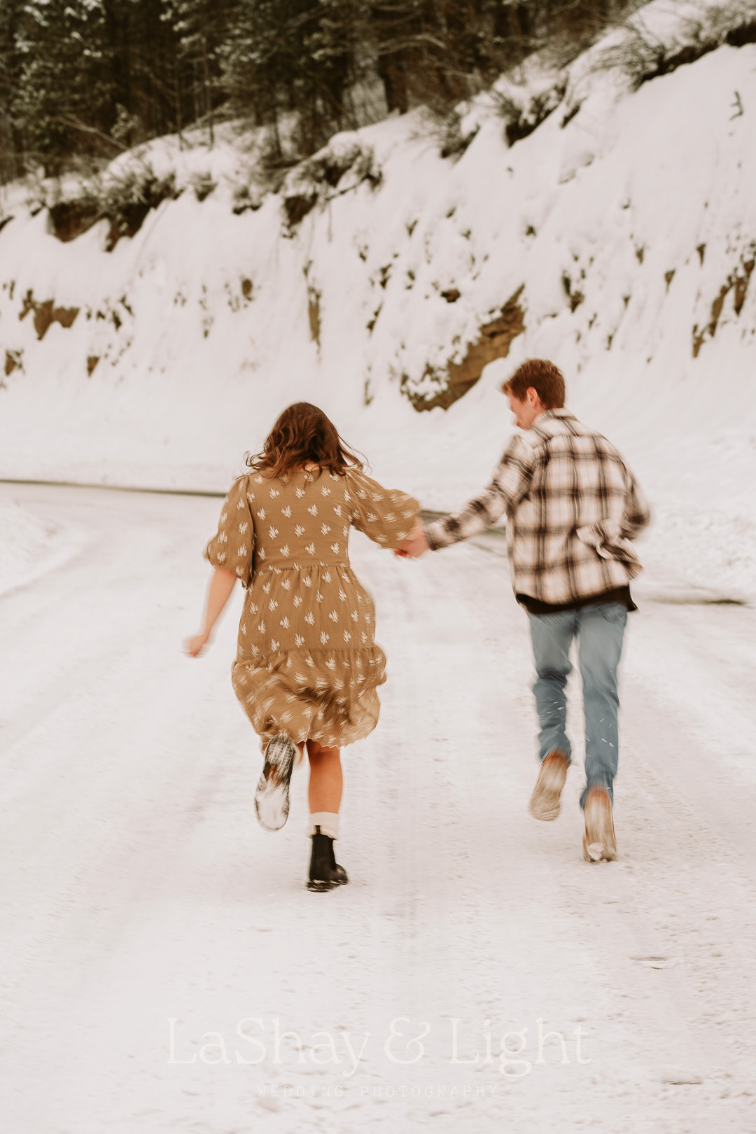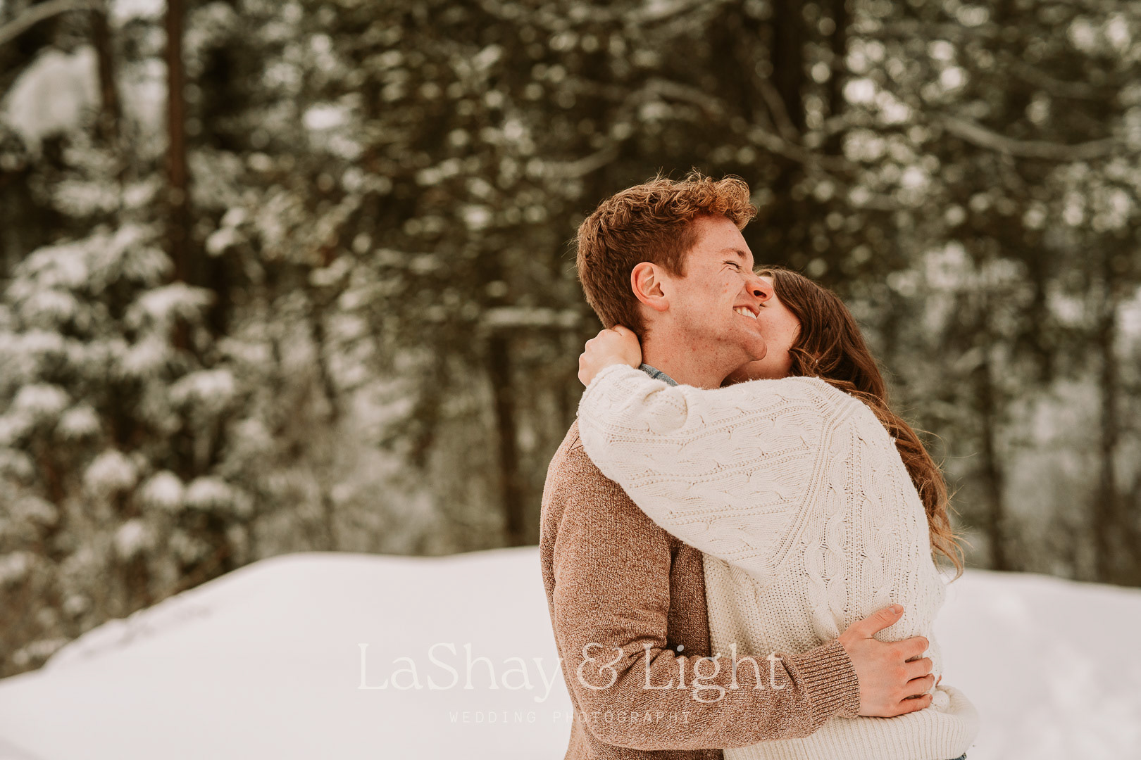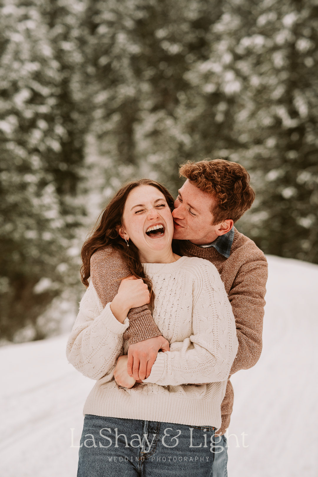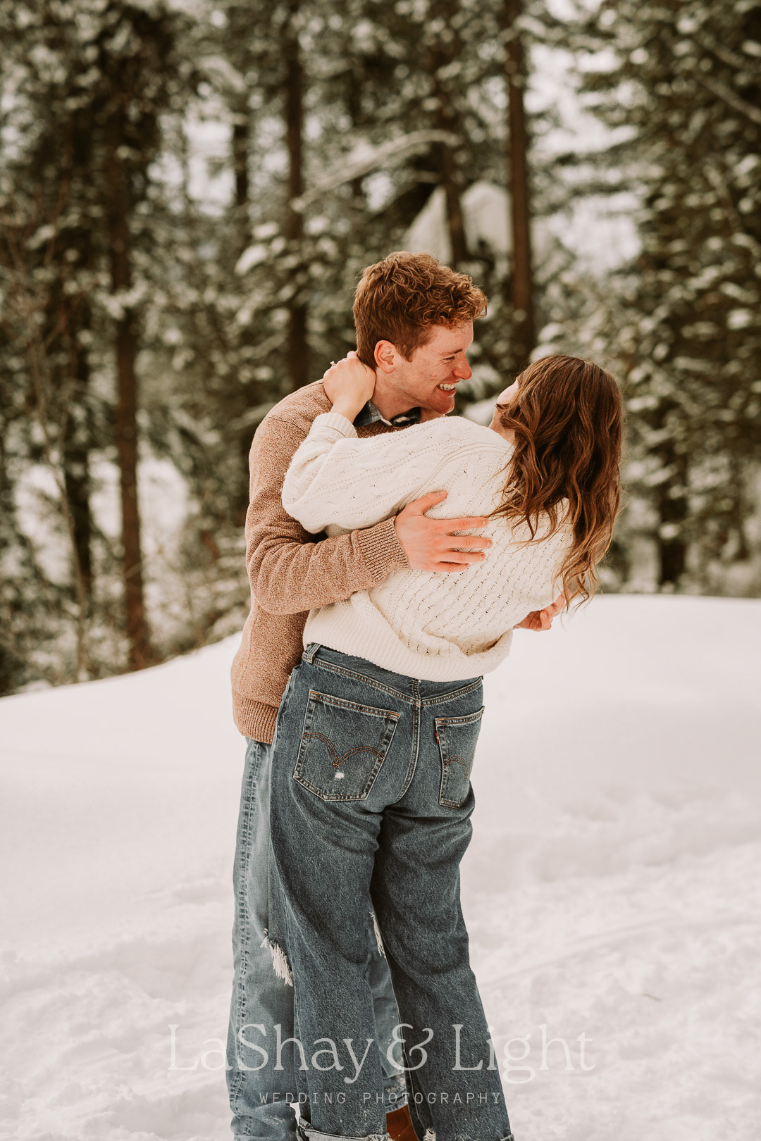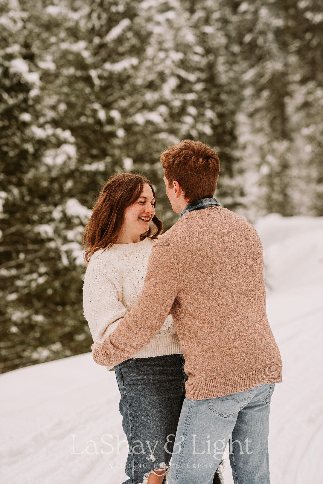 We took these photos right after a big snow storm! The result: dreamy engagement photos with lots of snow!