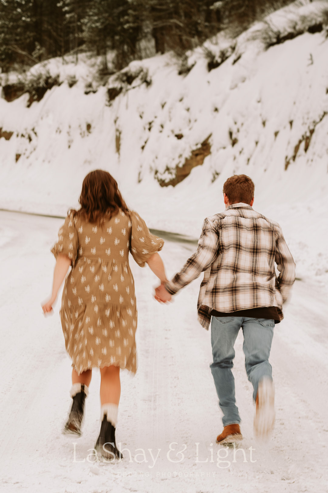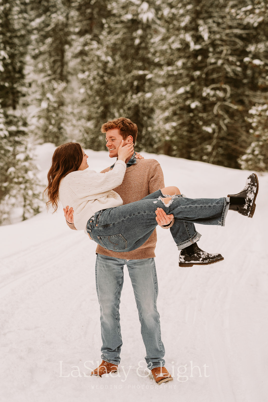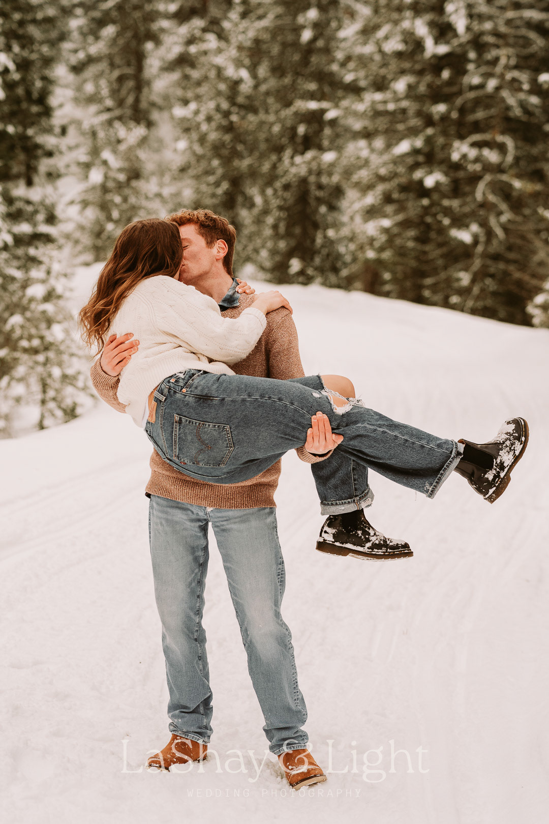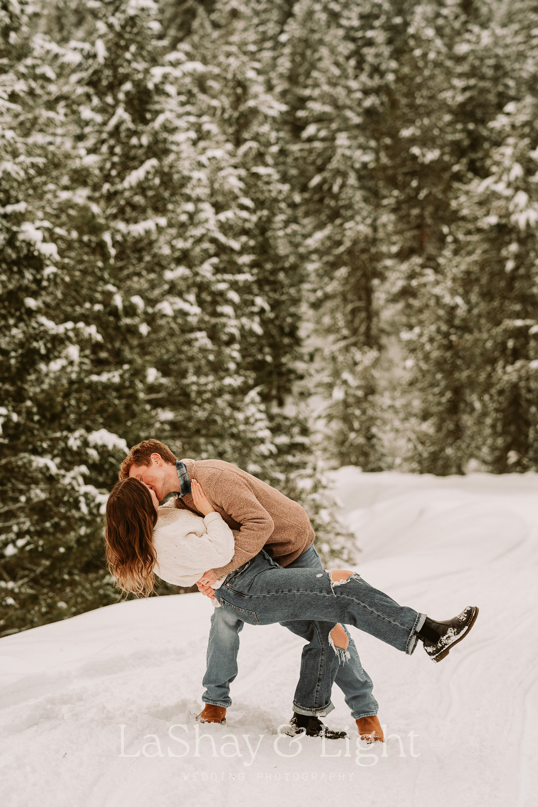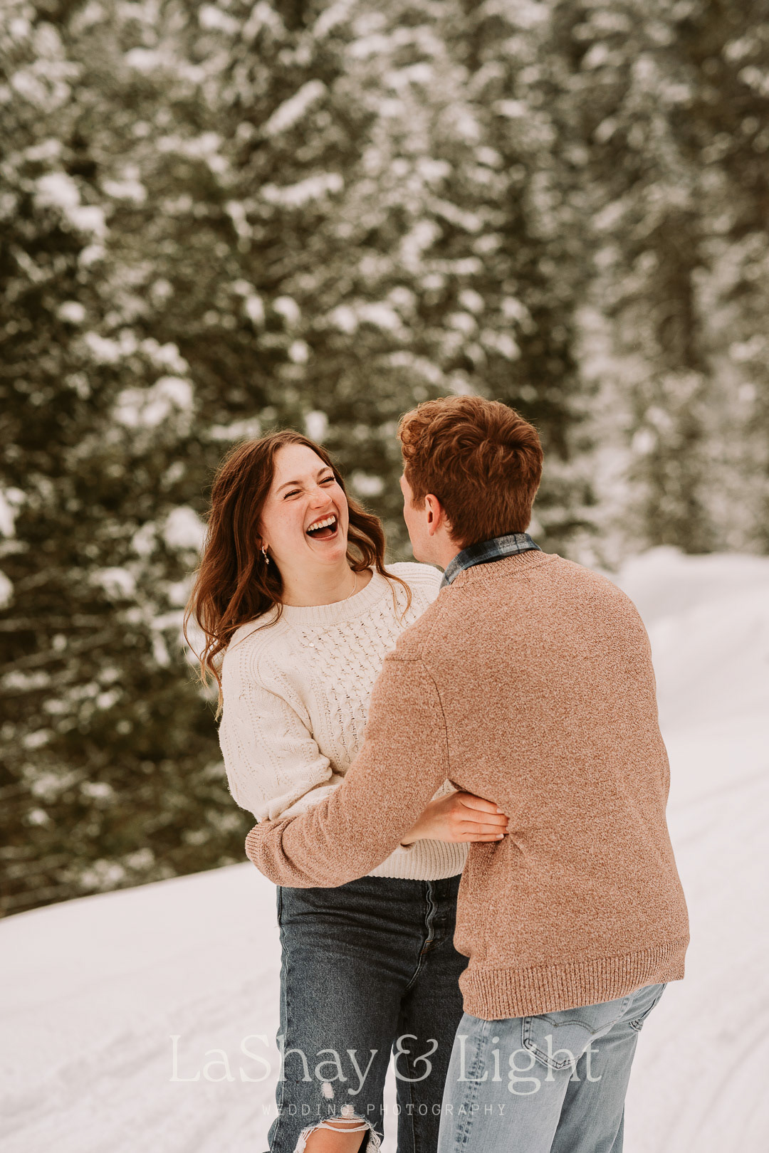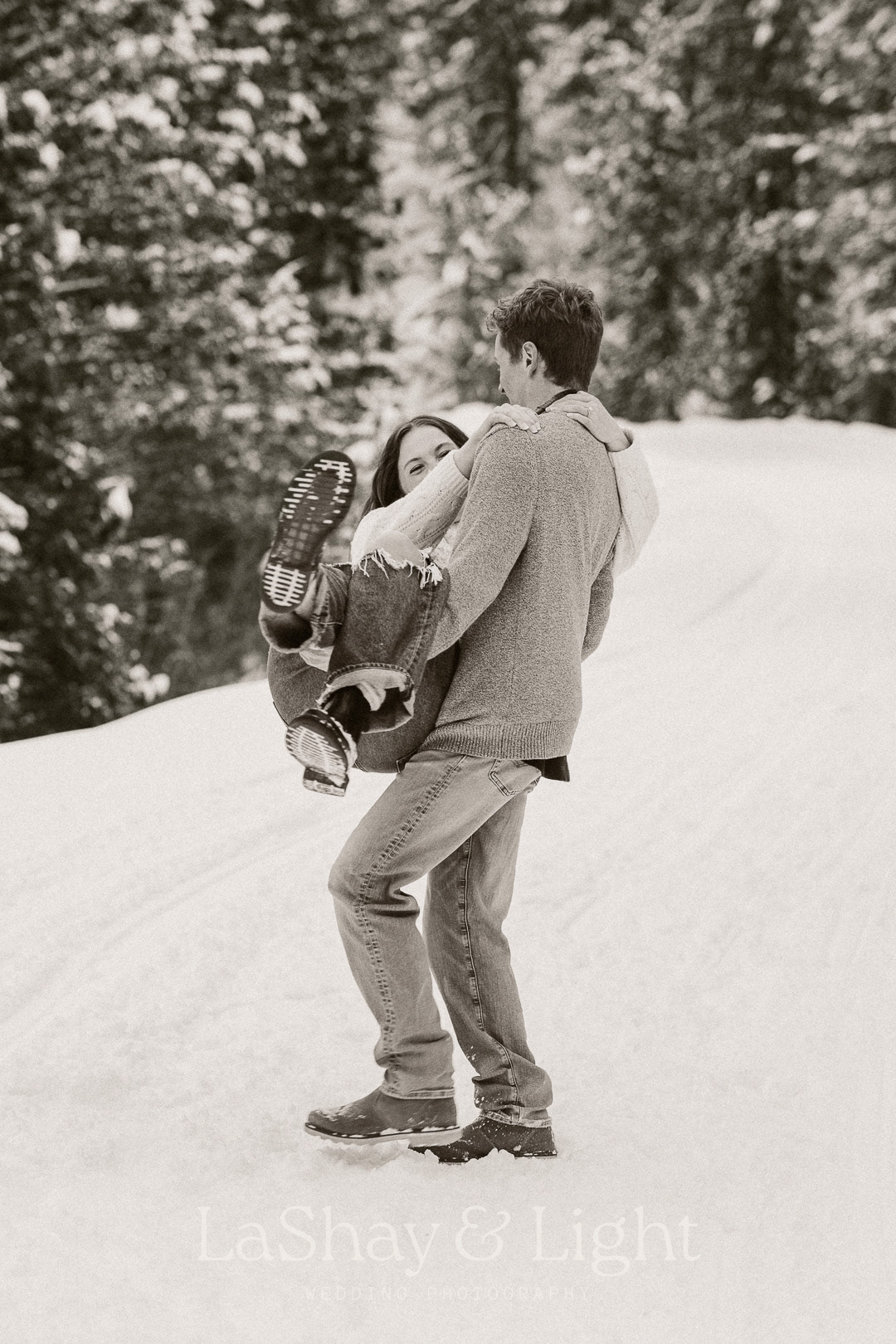 We took these photos right after a big snow storm! The result: dreamy engagement photos with lots of snow!