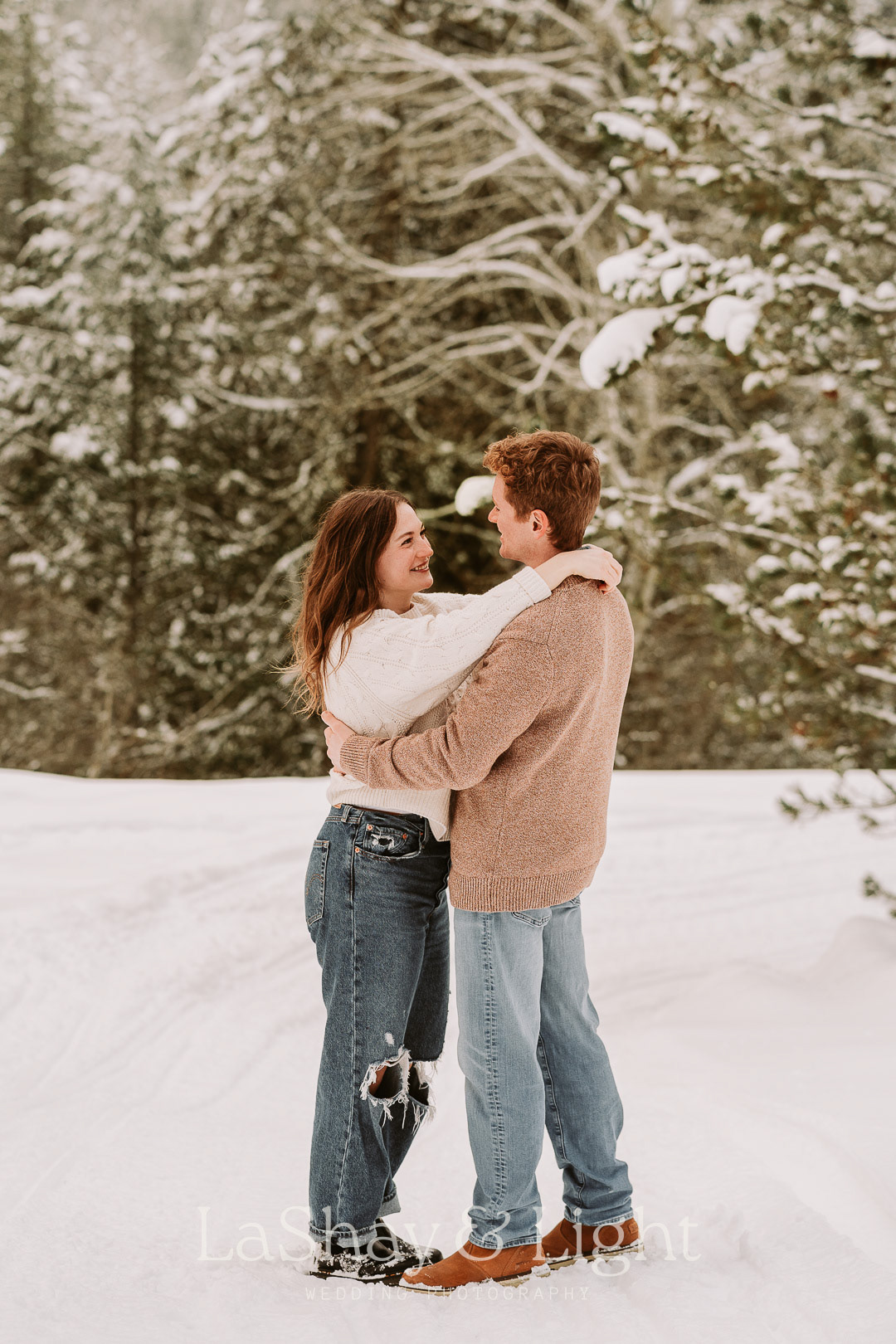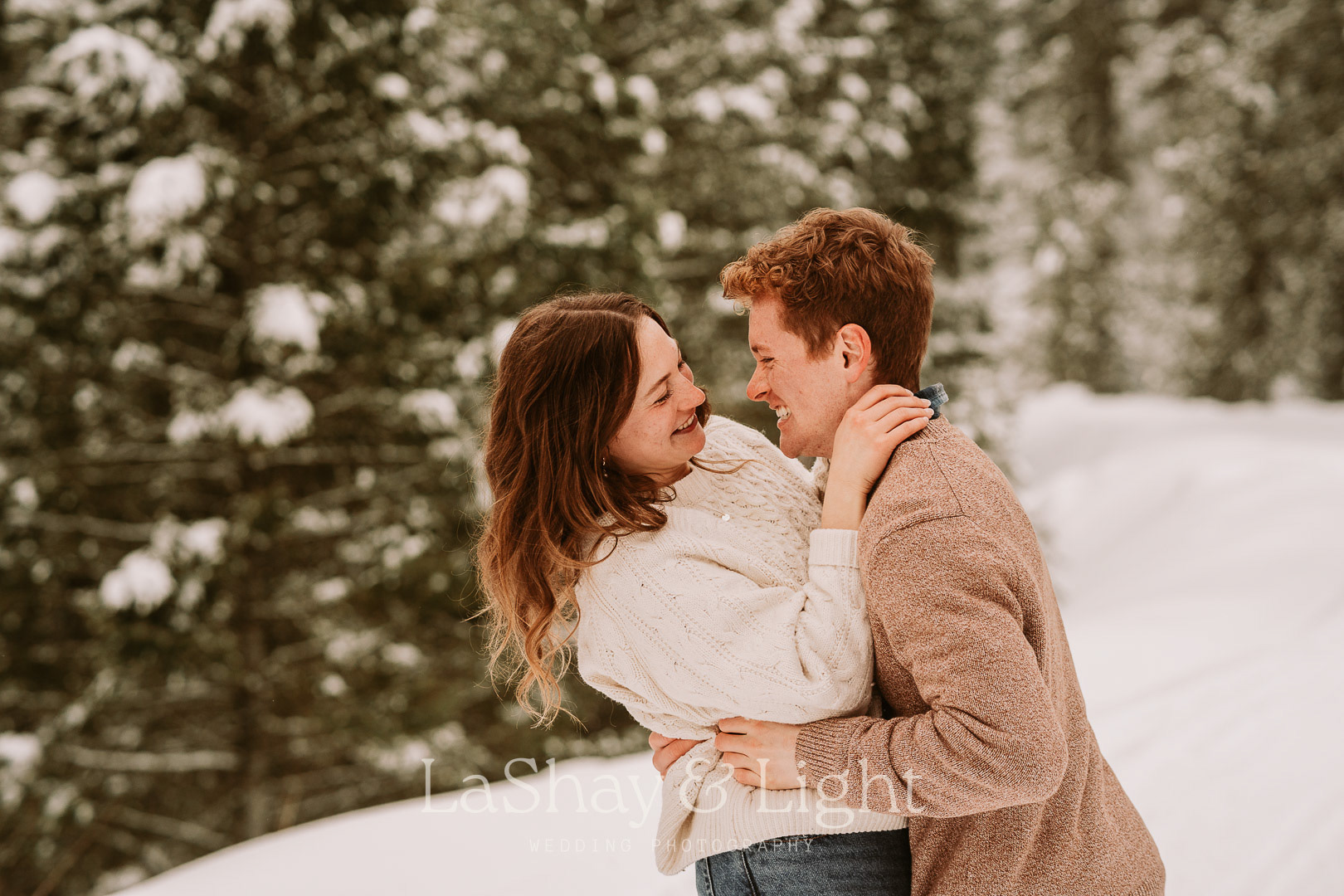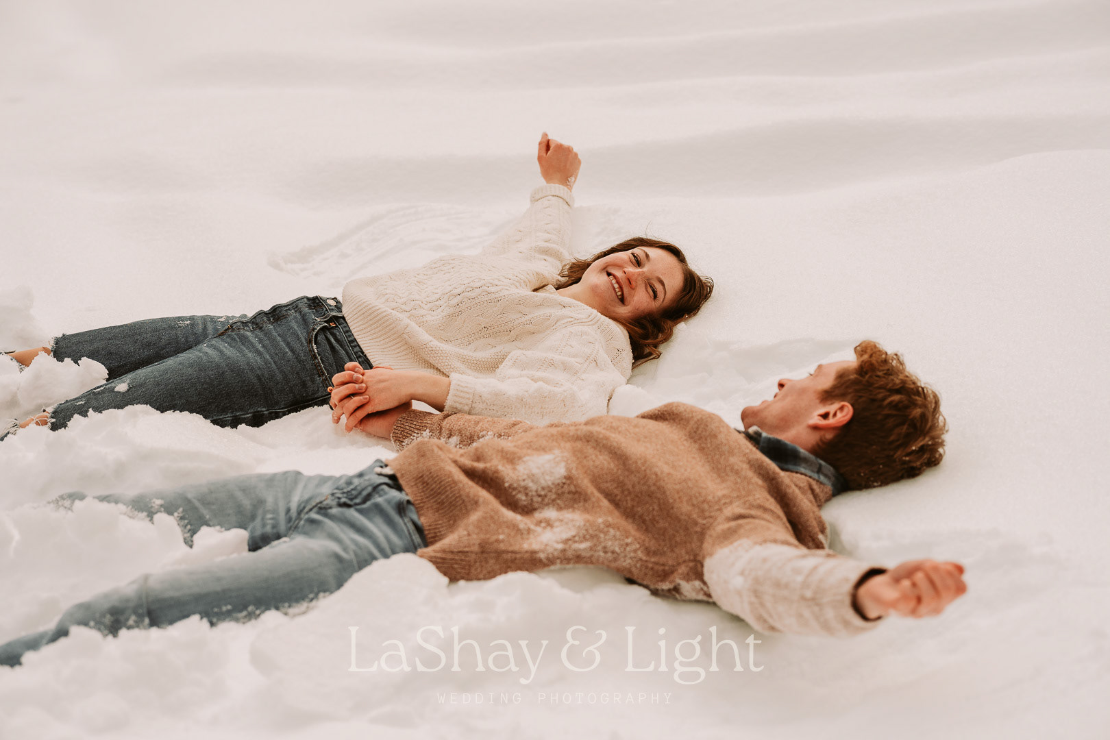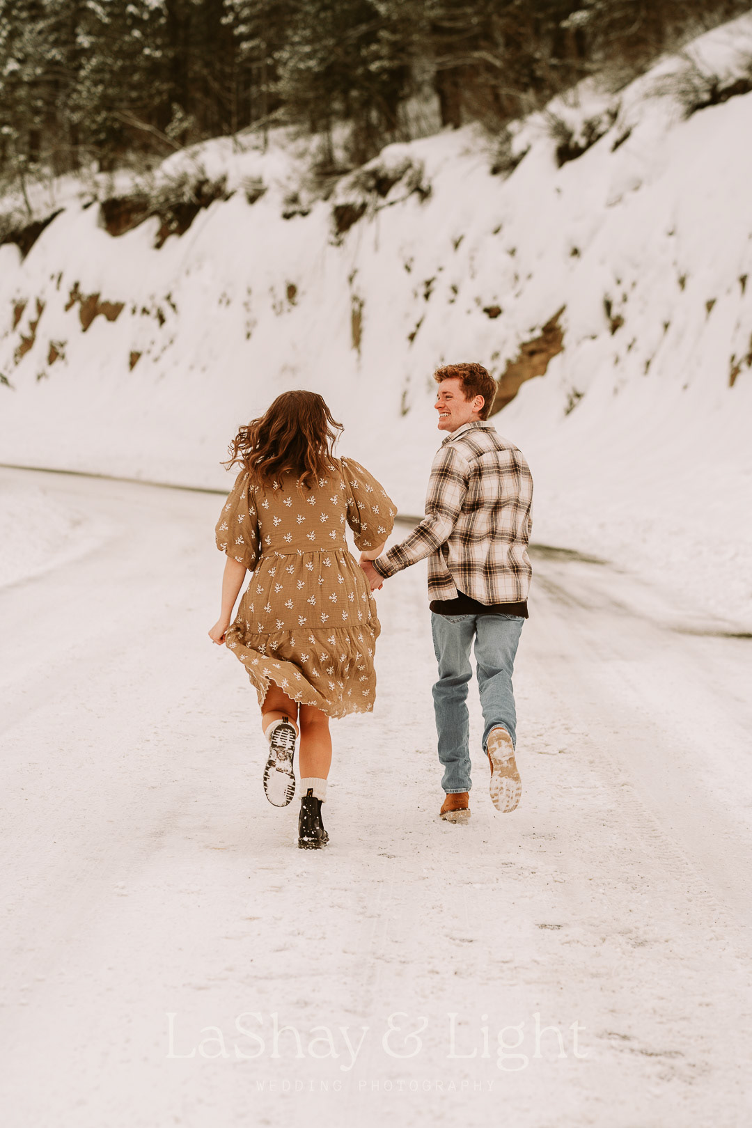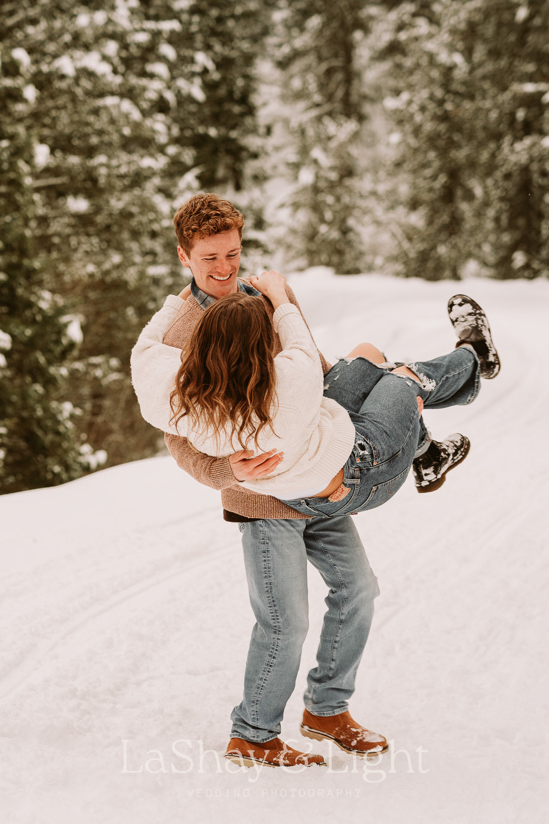 We took these photos right after a big snow storm! The result: dreamy engagement photos with lots of snow!