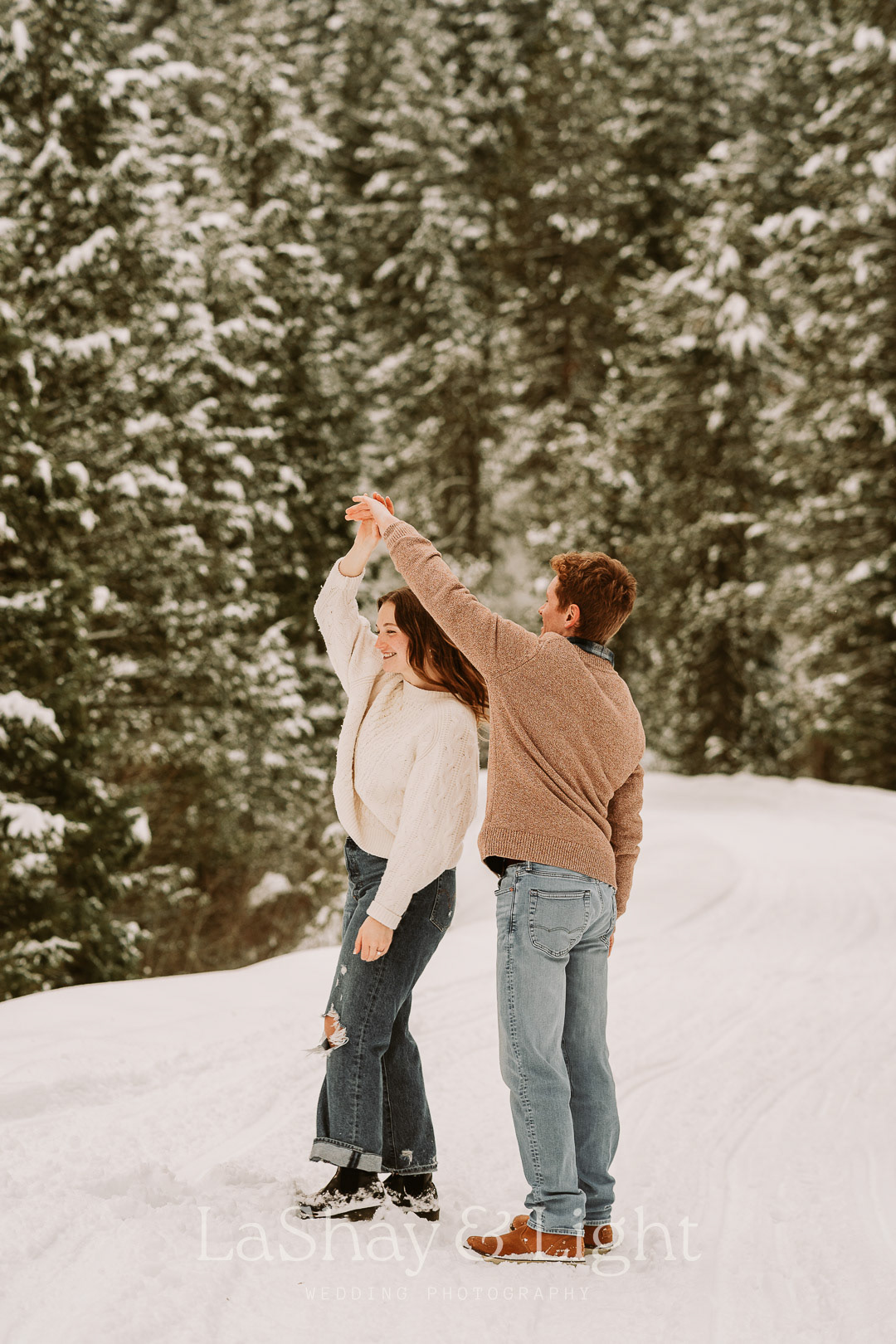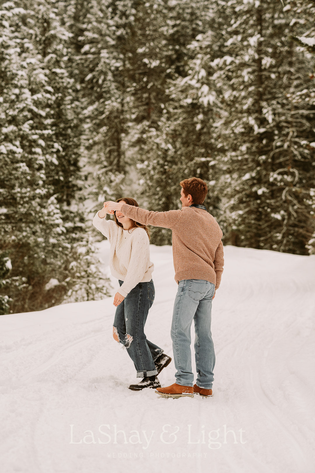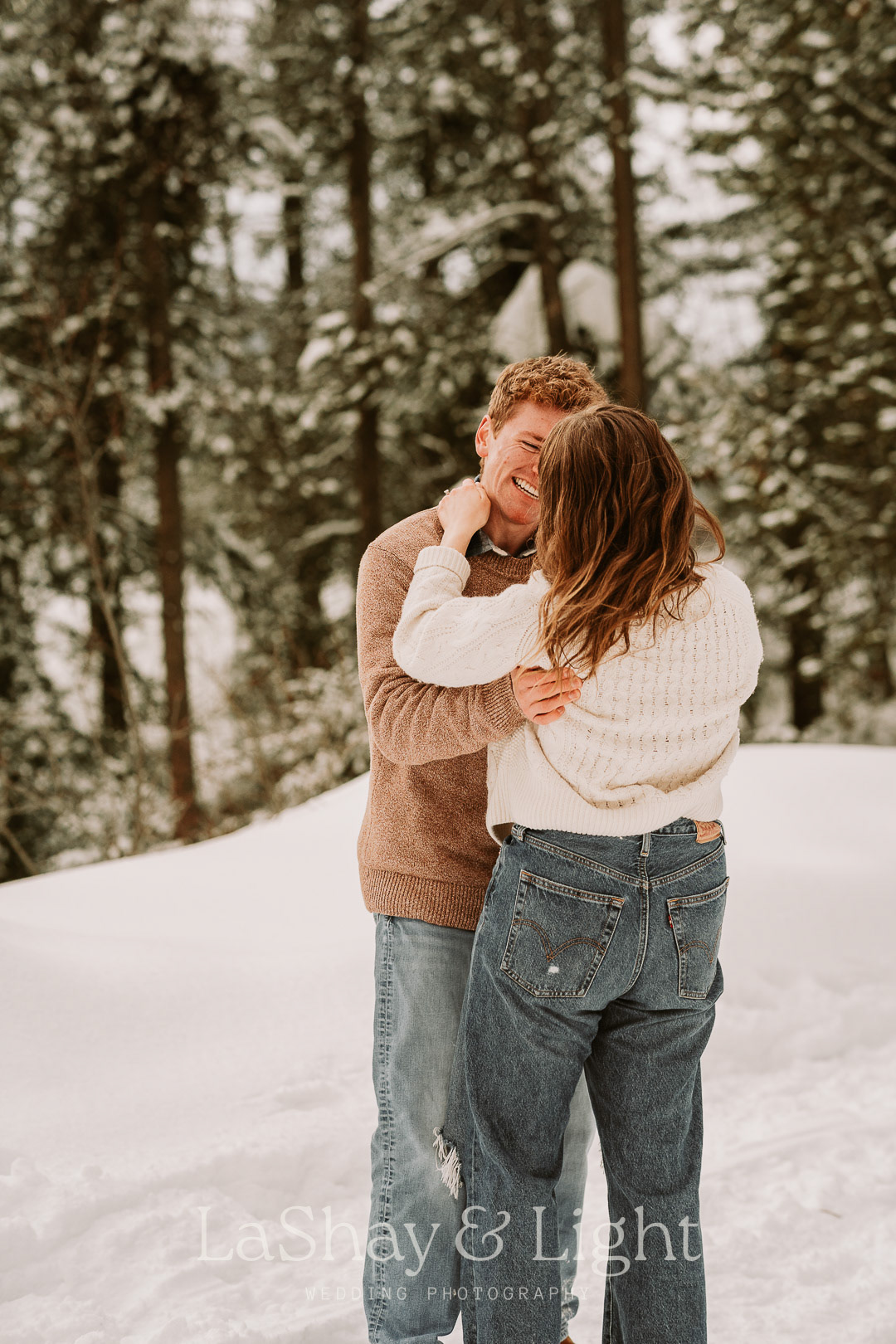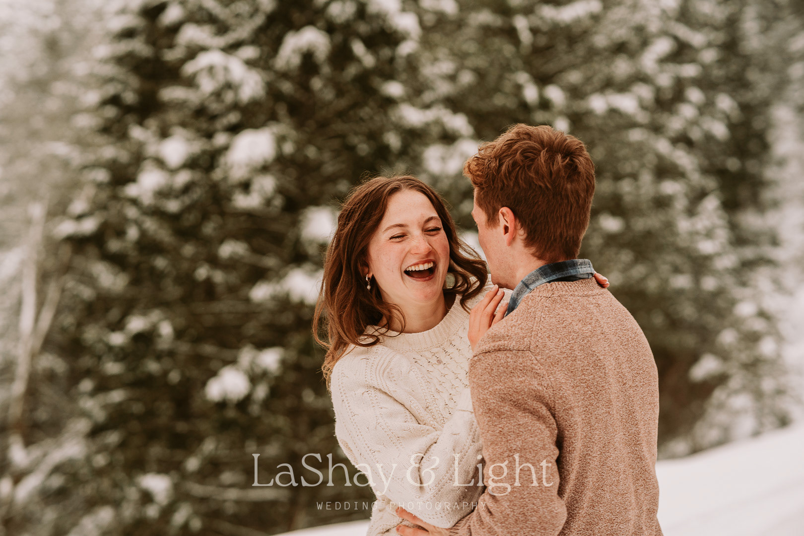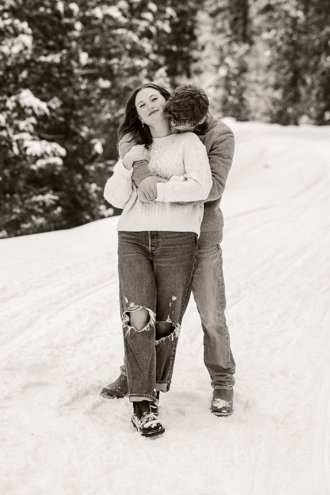 We took these photos right after a big snow storm! The result: dreamy engagement photos with lots of snow!