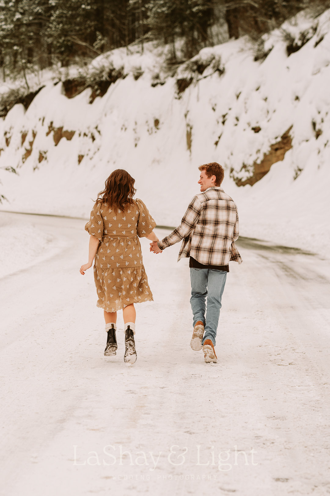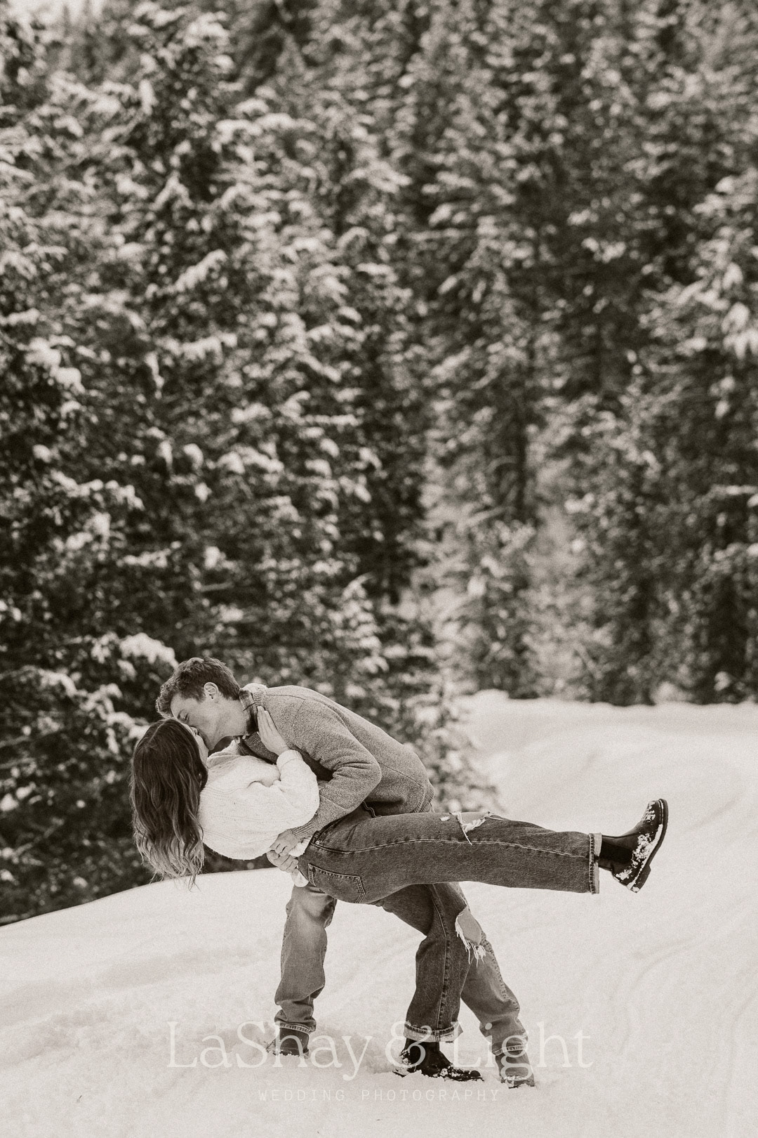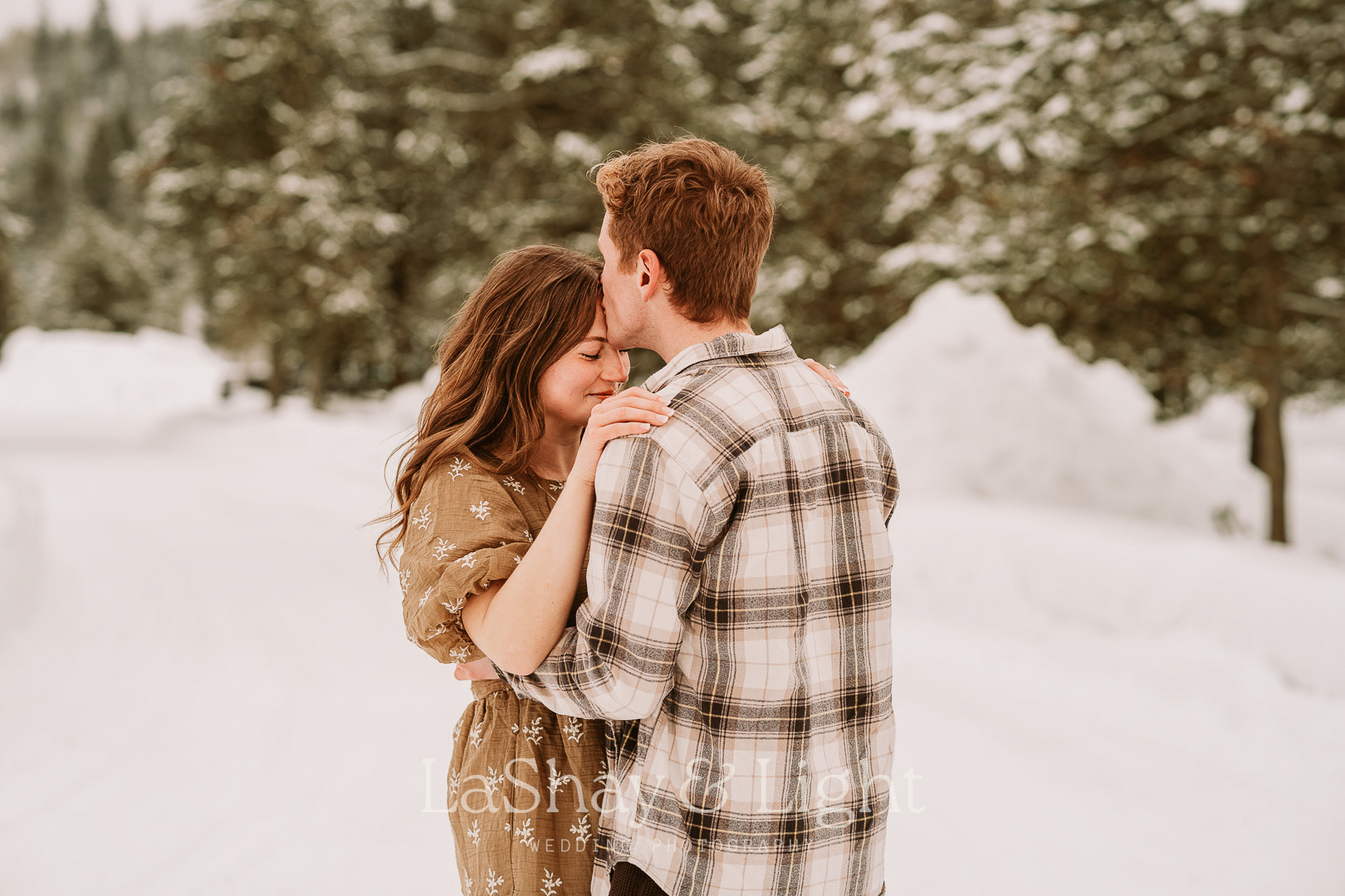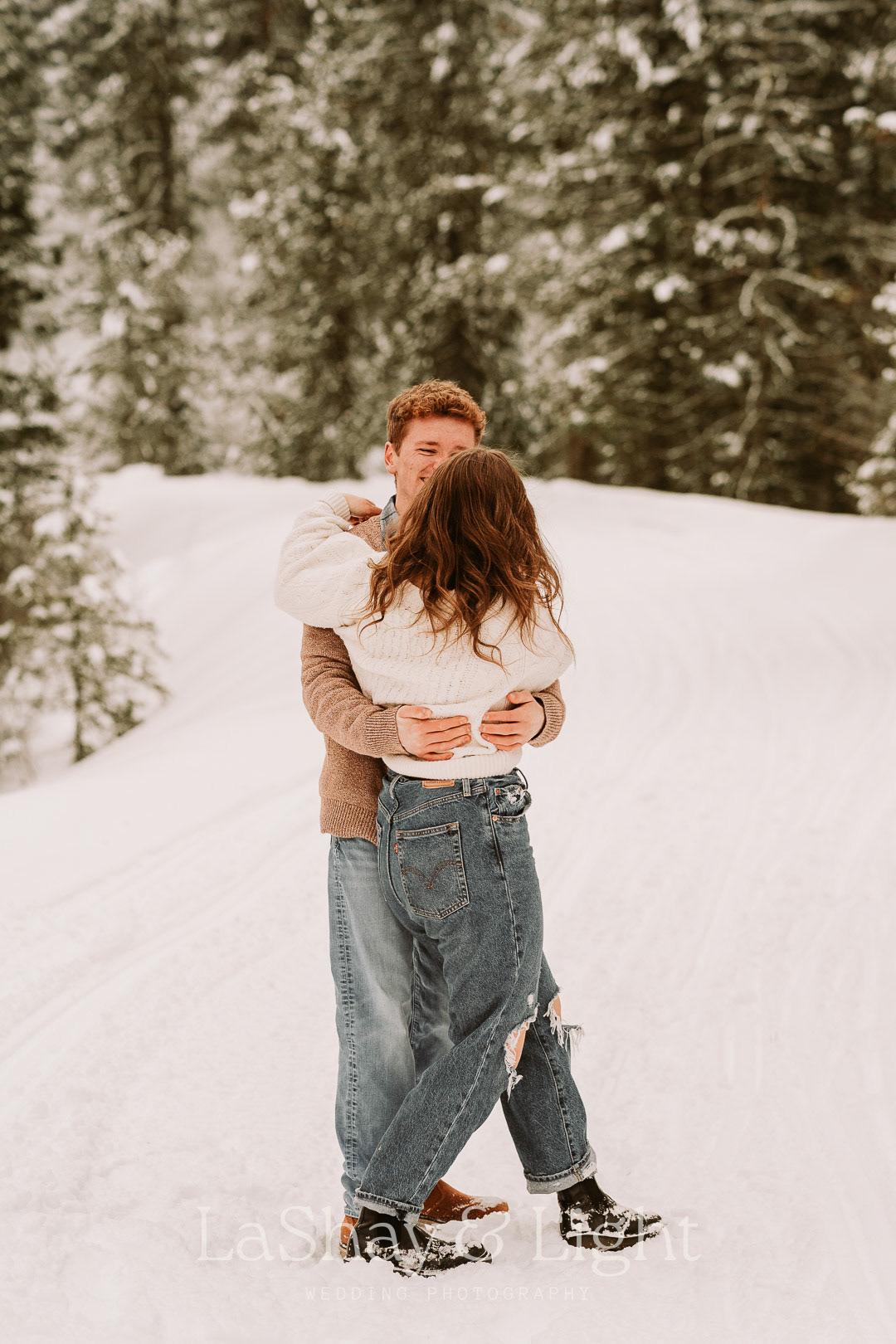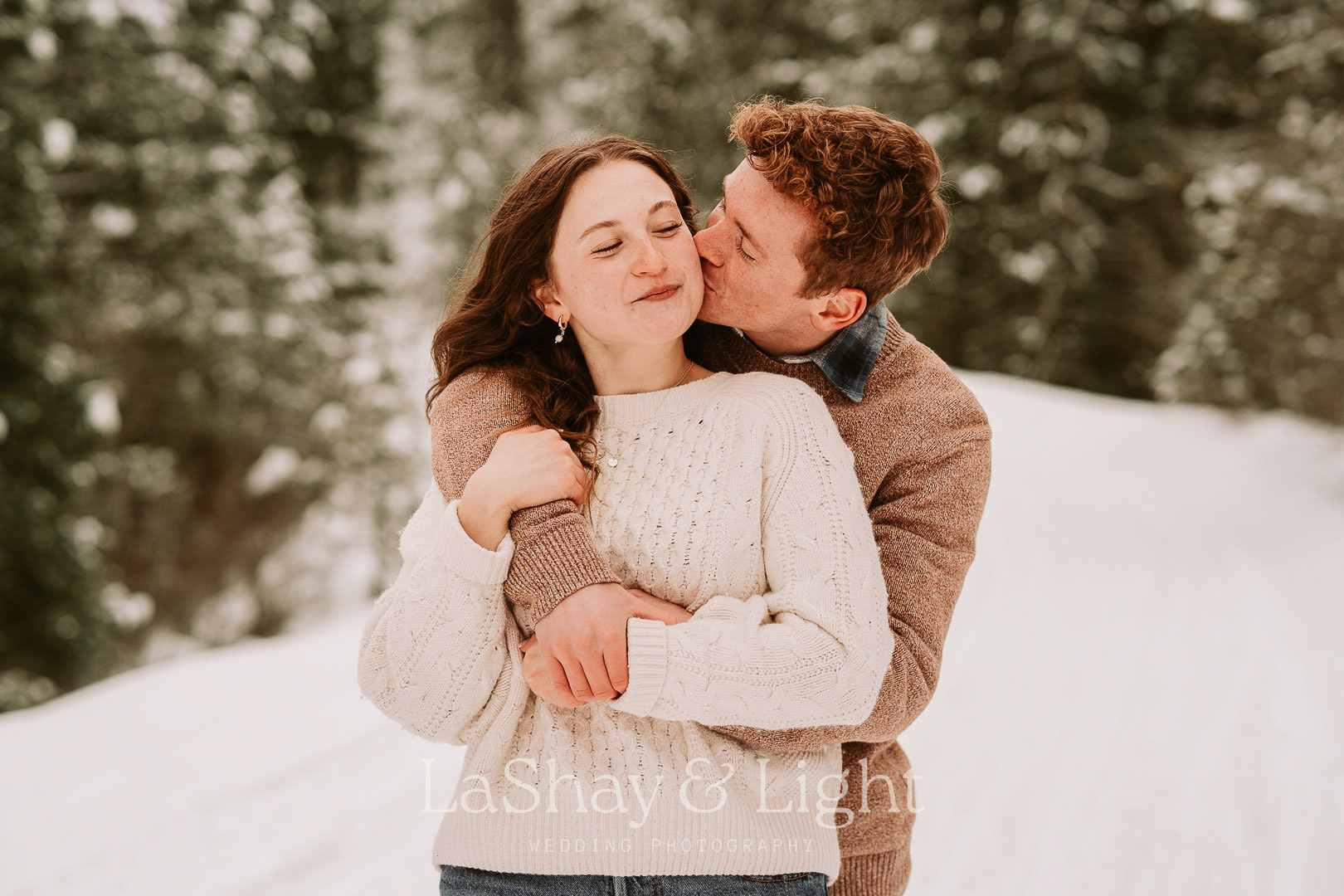 We took these photos right after a big snow storm! The result: dreamy engagement photos with lots of snow!