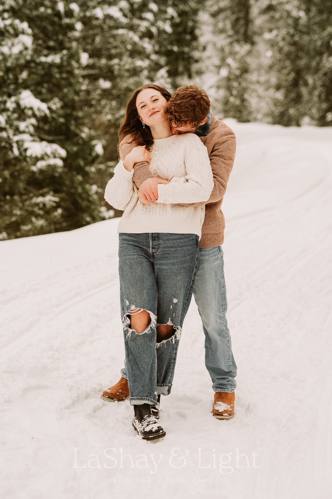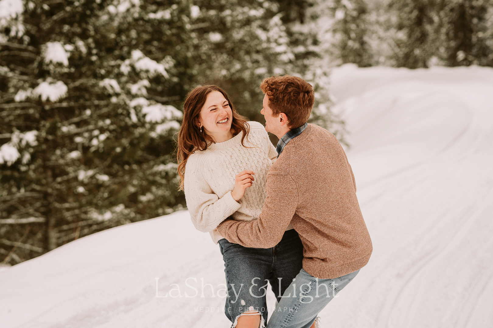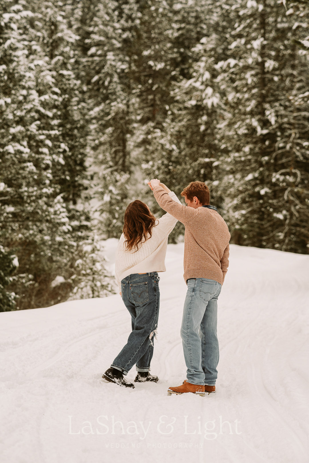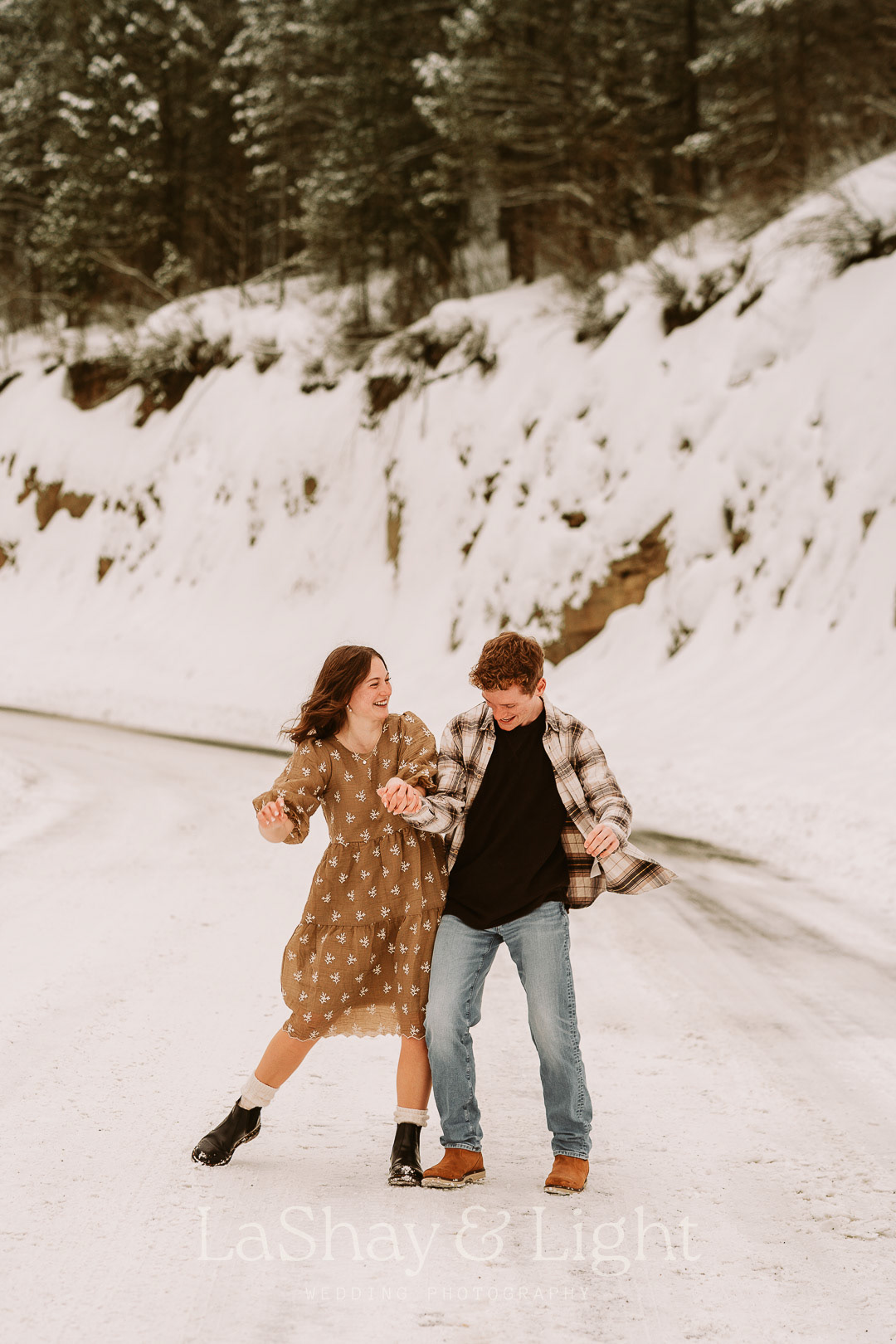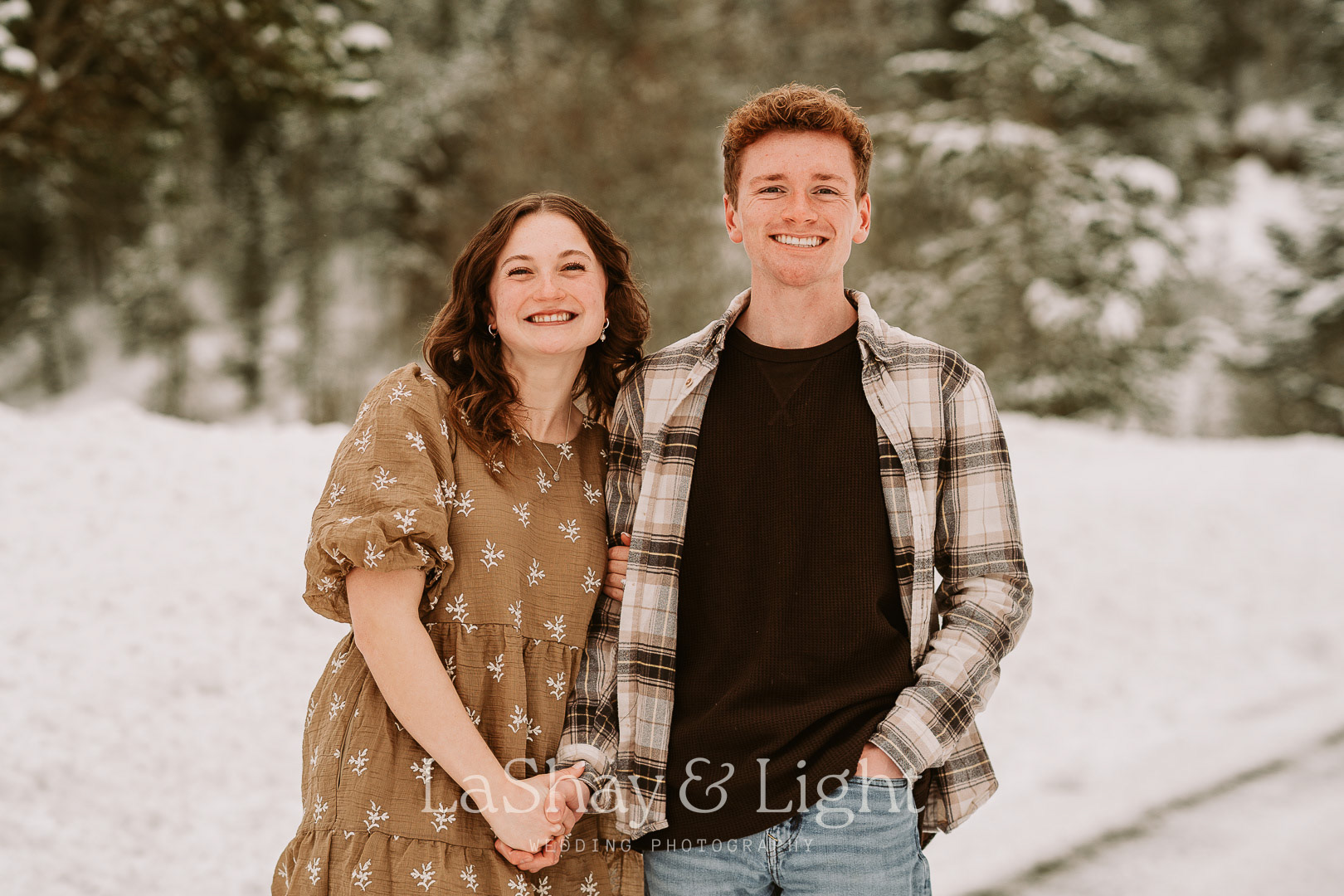 We took these photos right after a big snow storm! The result: dreamy engagement photos with lots of snow!