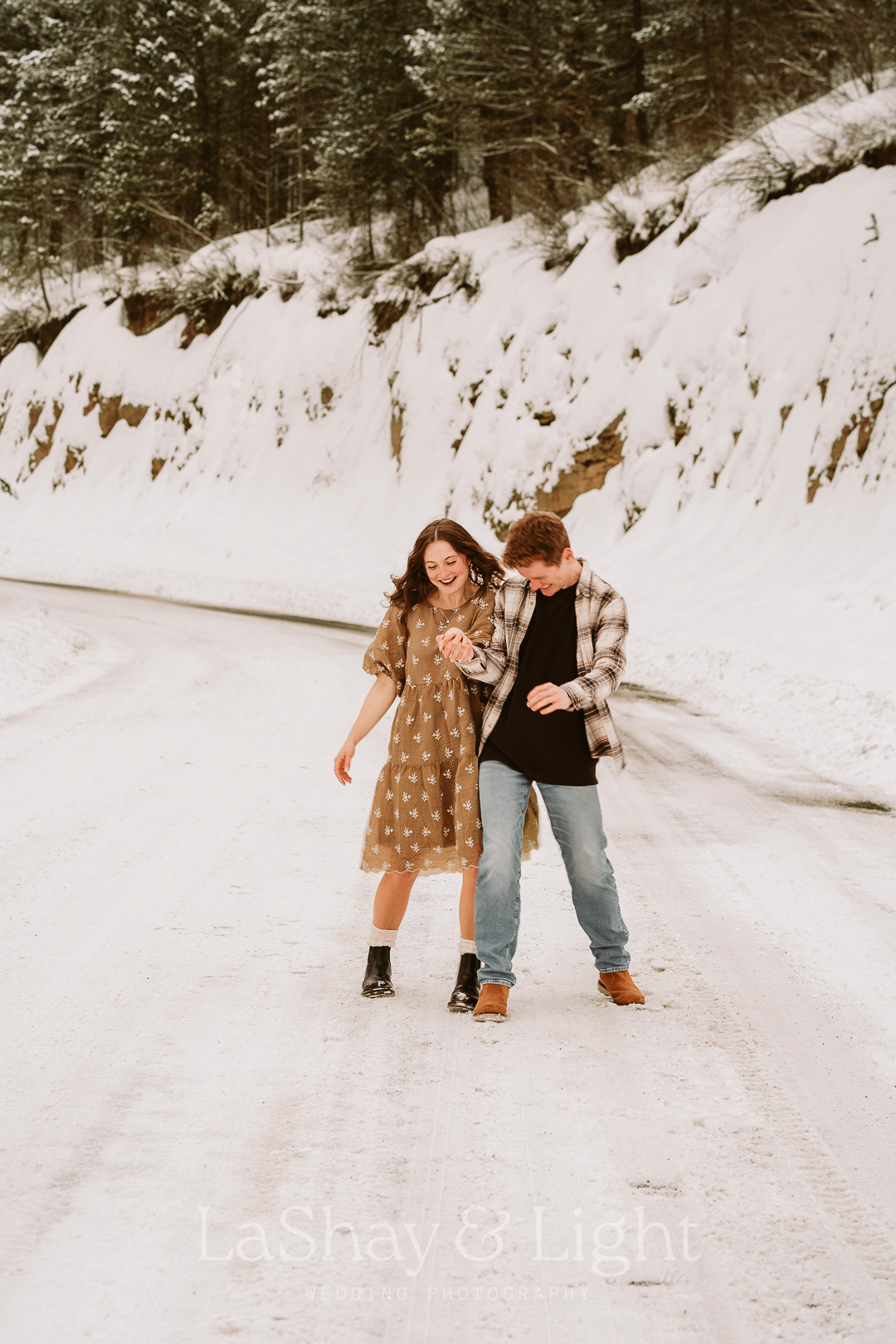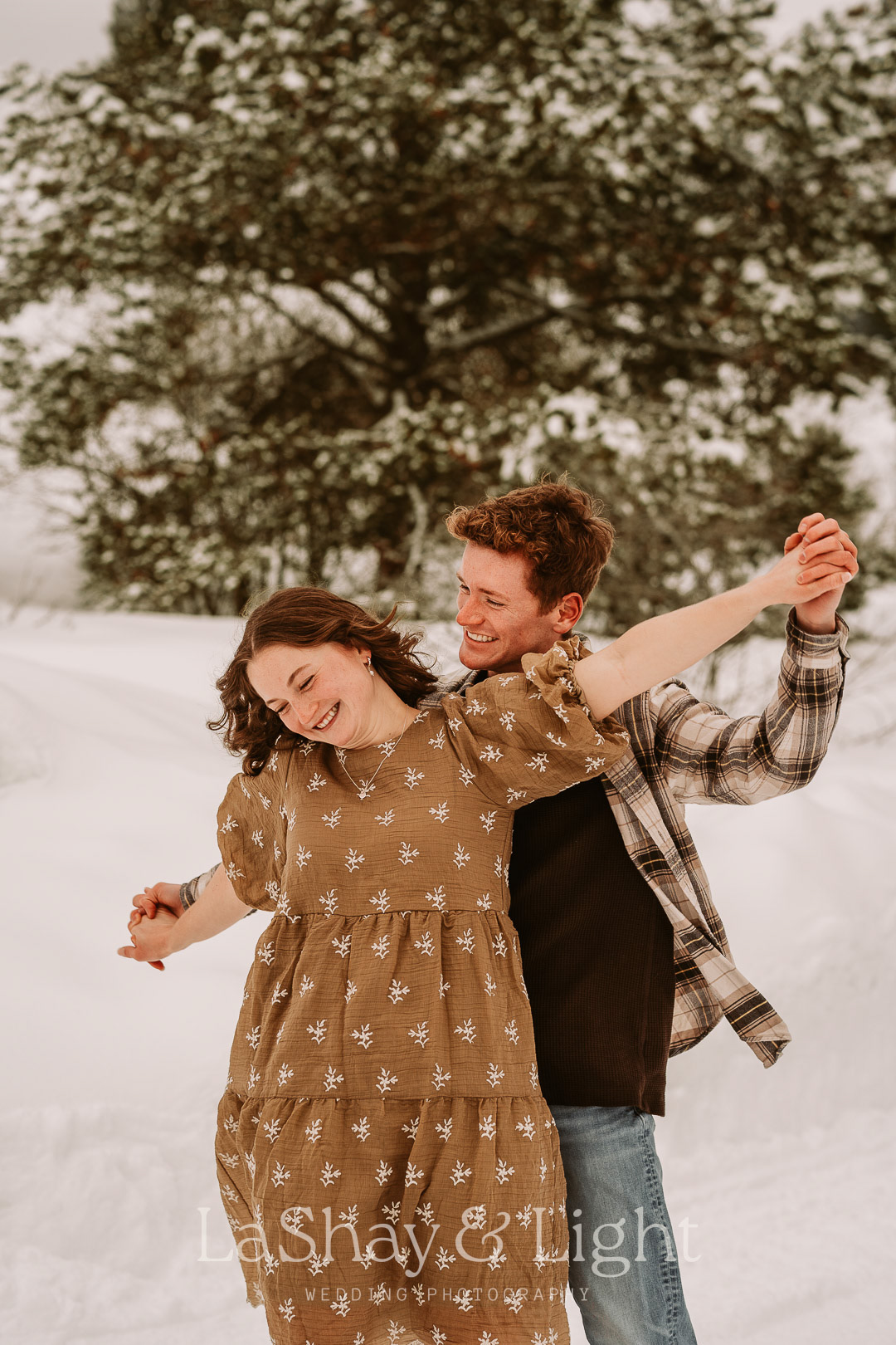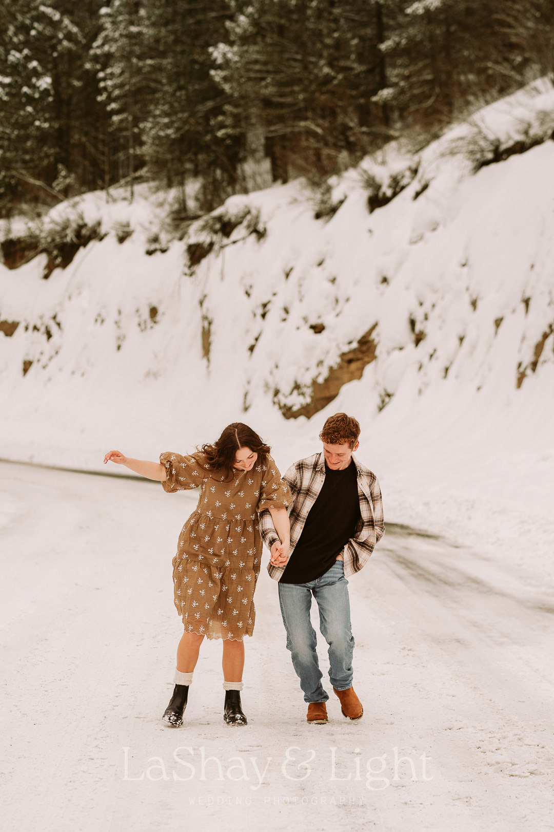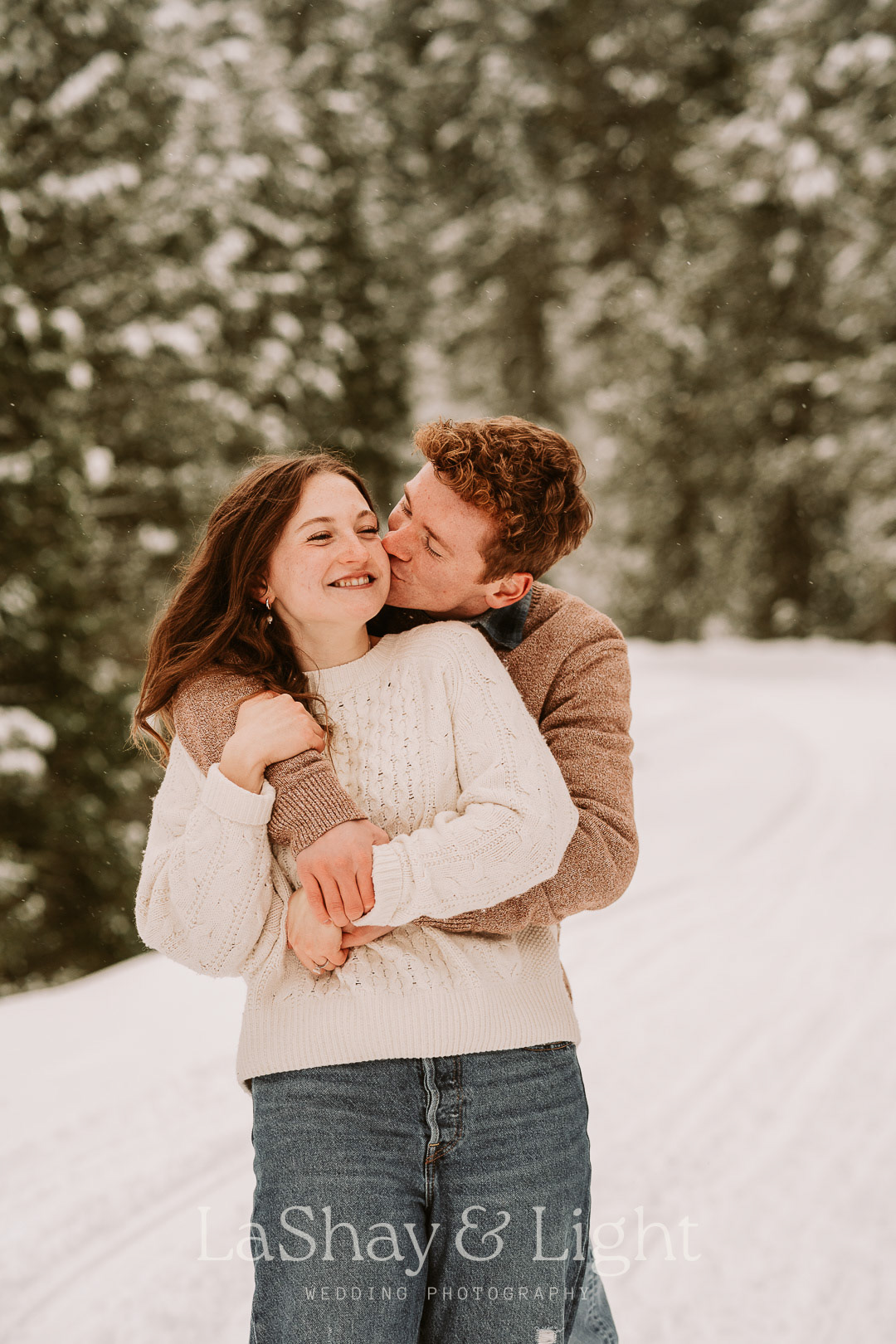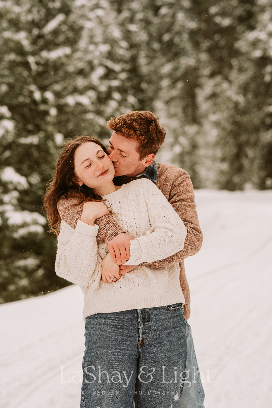 We took these photos right after a big snow storm! The result: dreamy engagement photos with lots of snow!