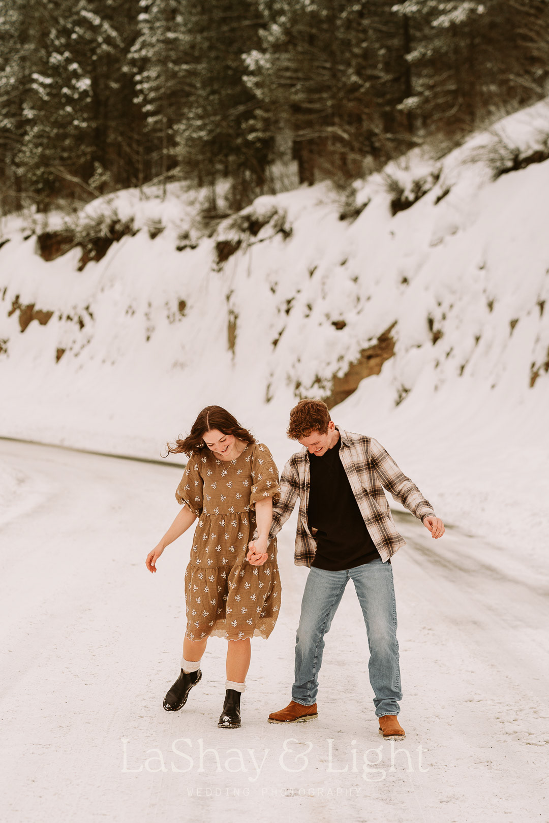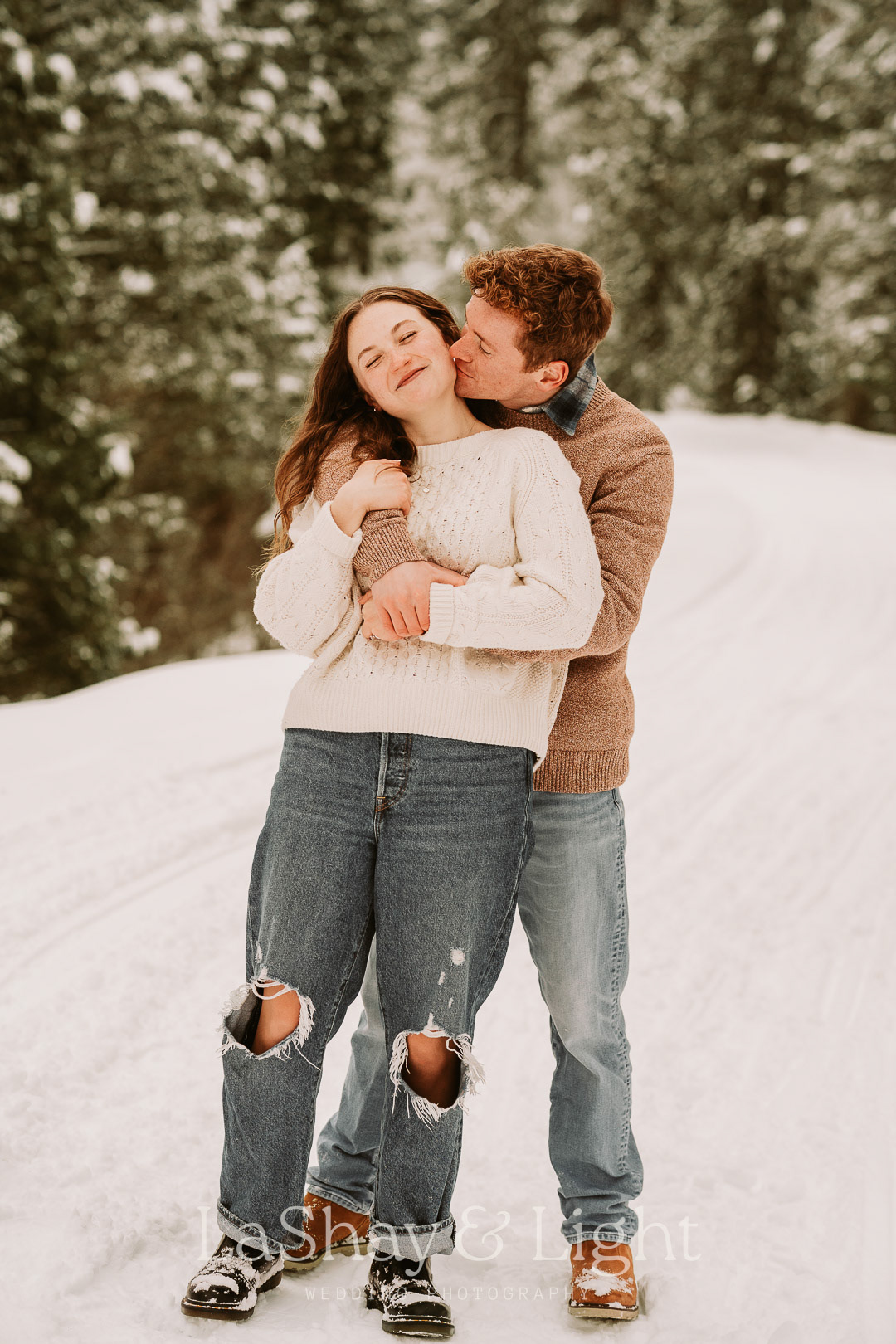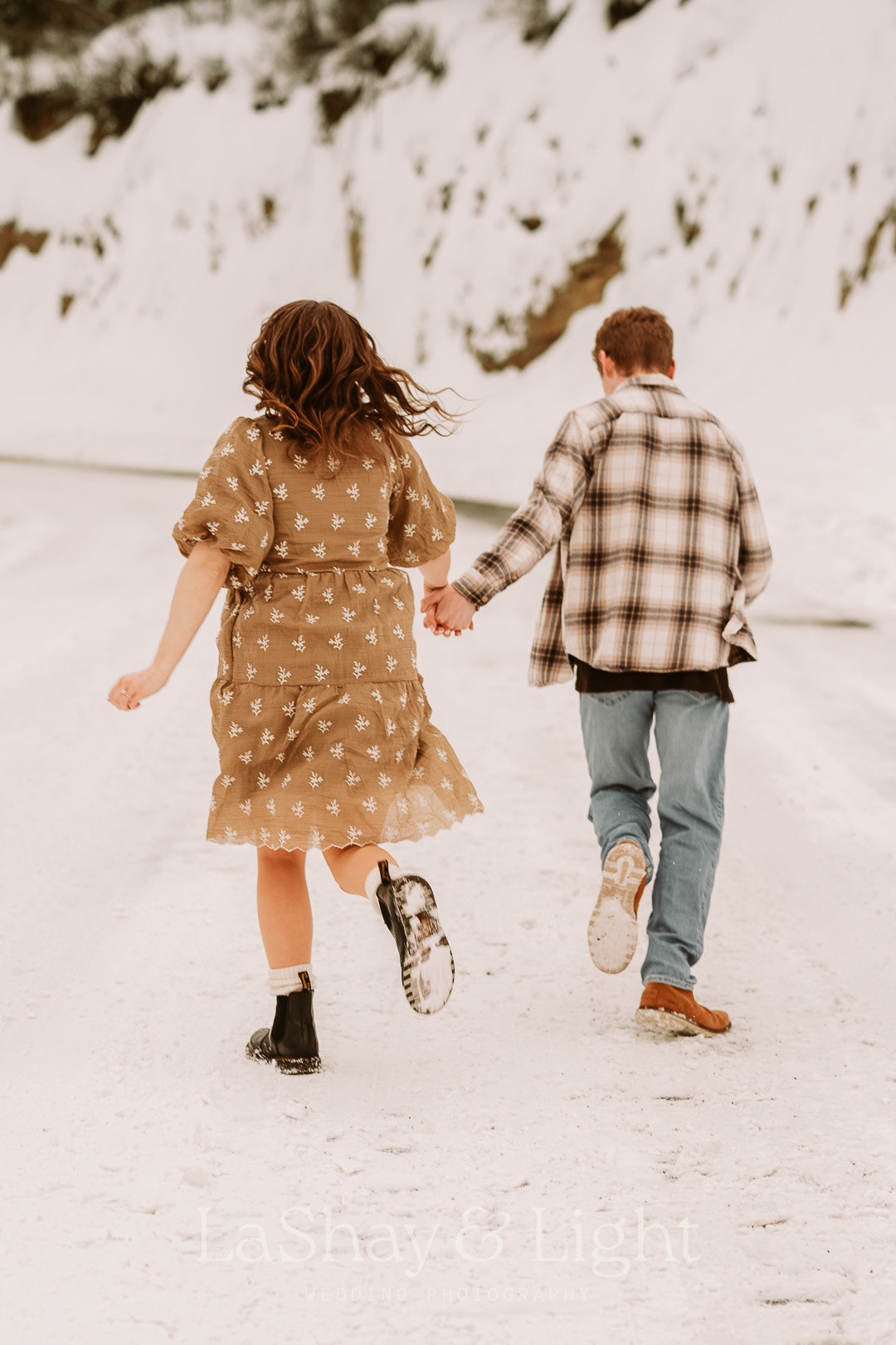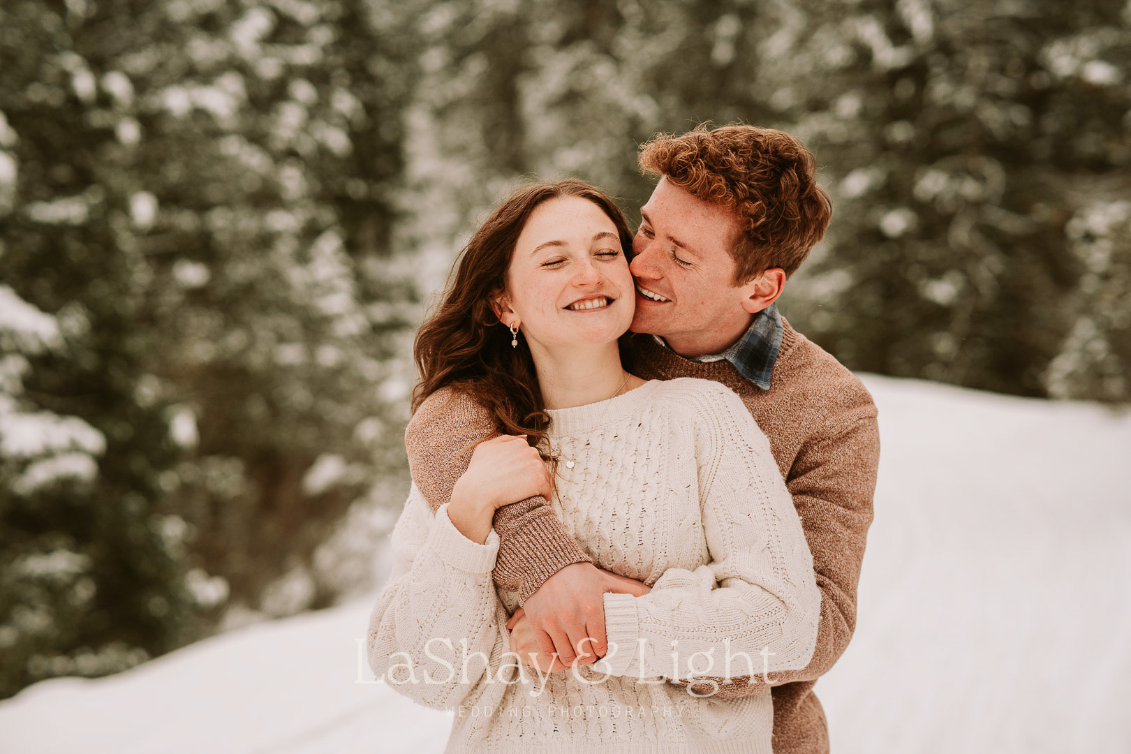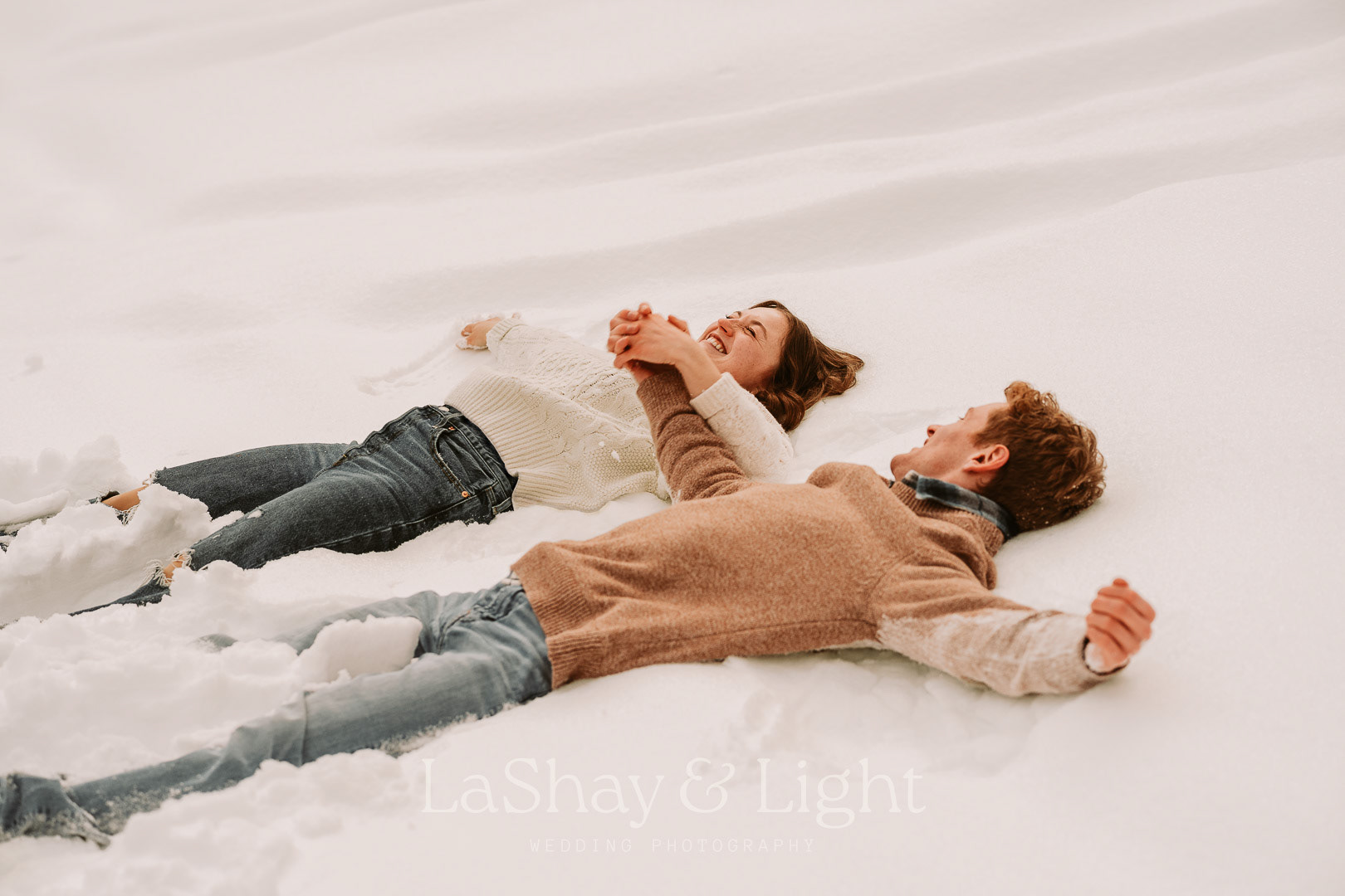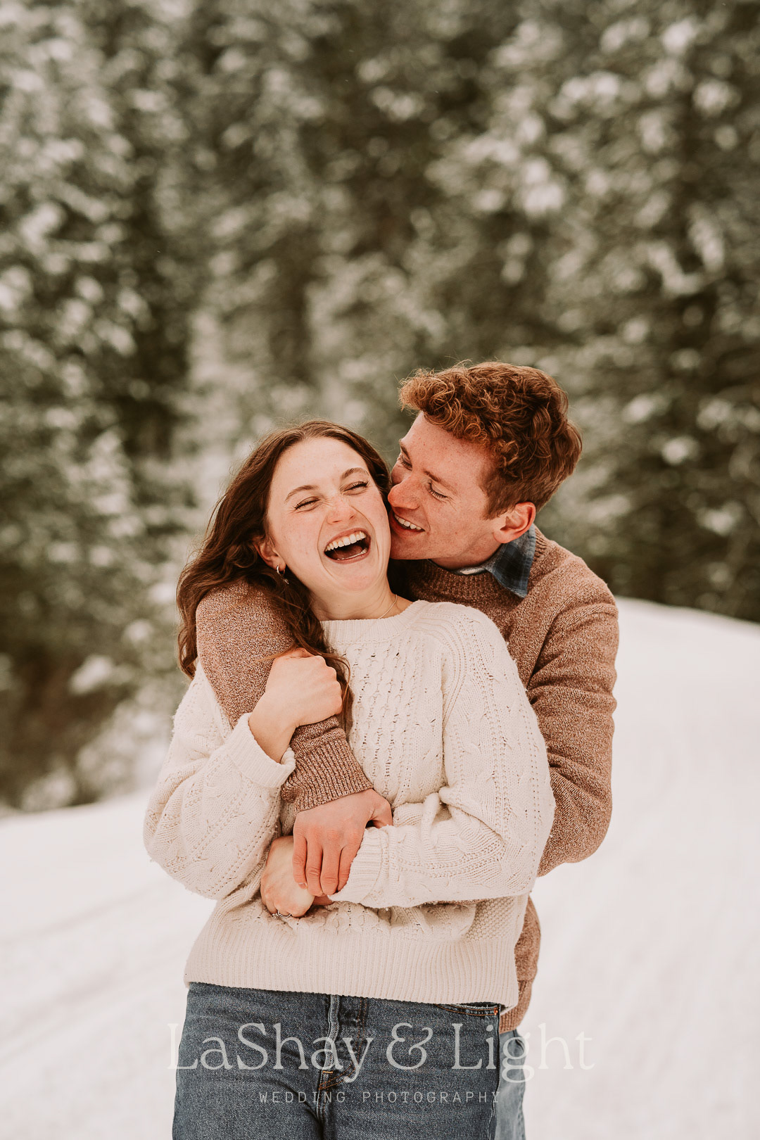 We took these photos right after a big snow storm! The result: dreamy engagement photos with lots of snow!
