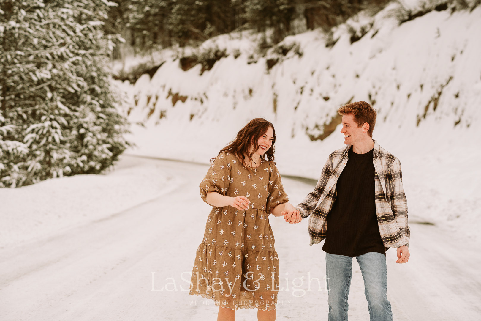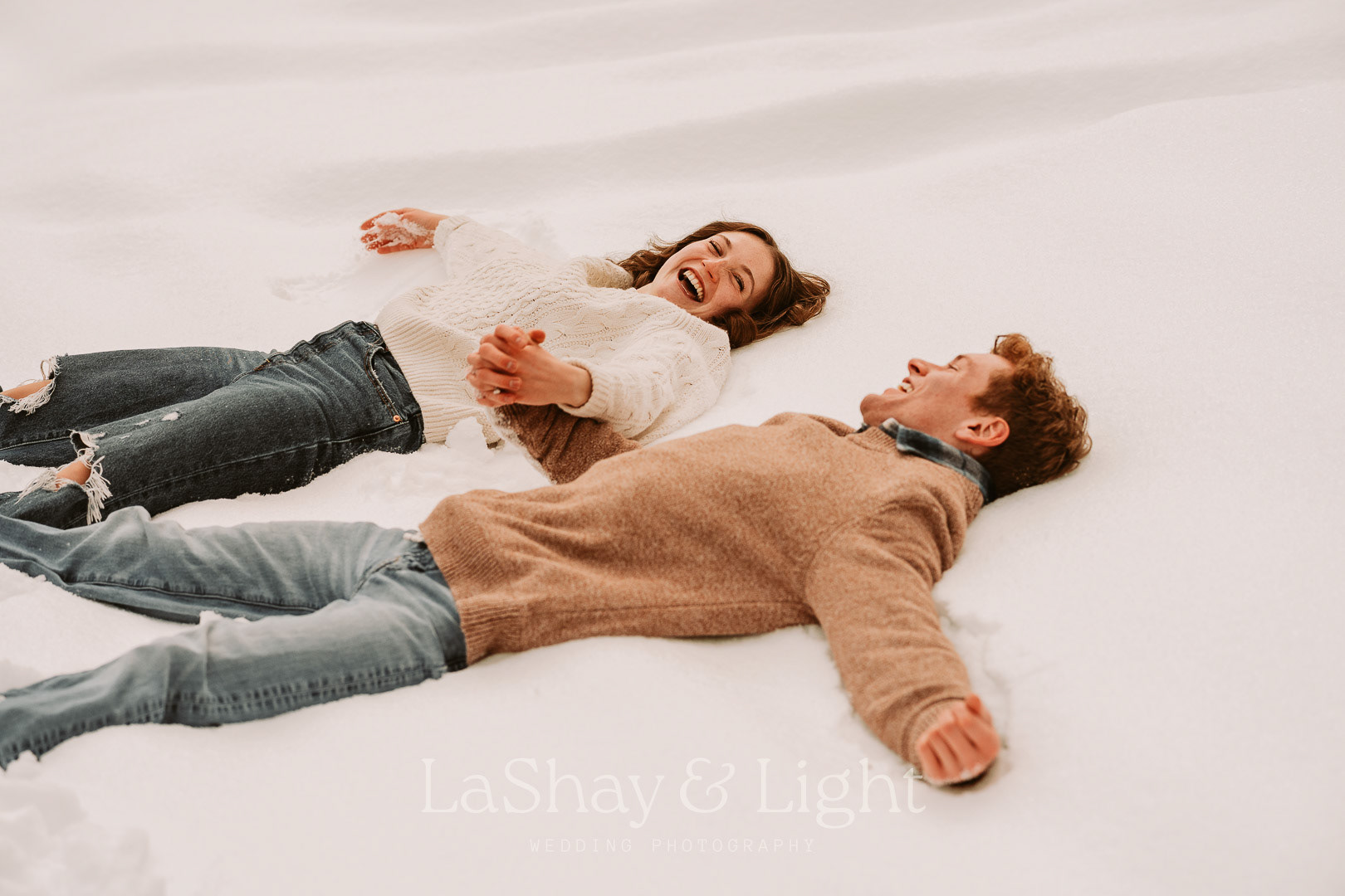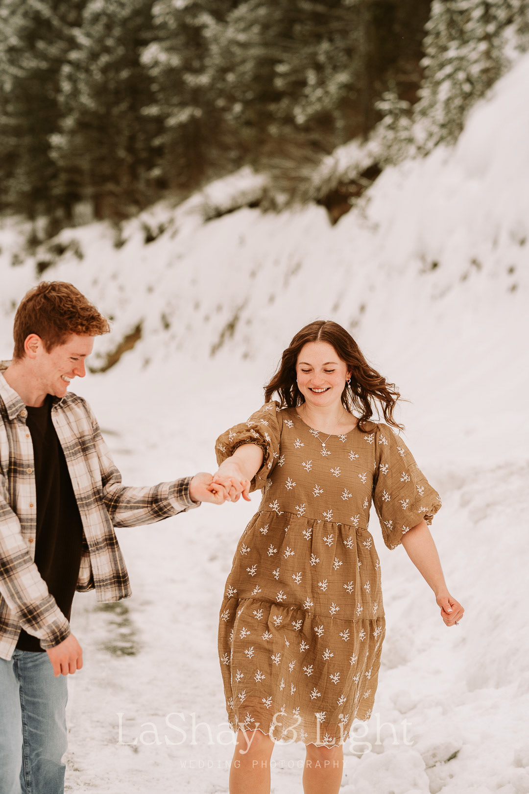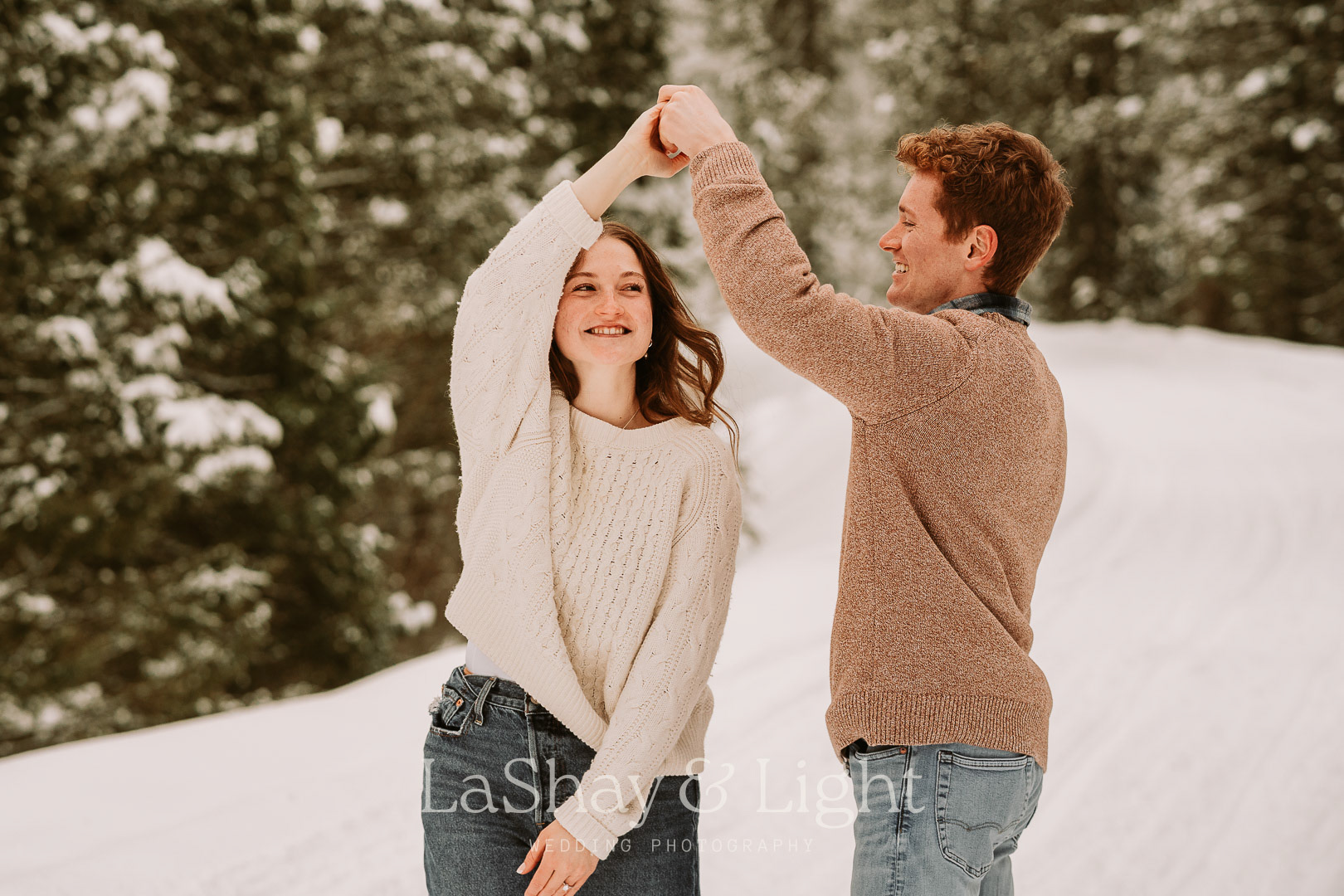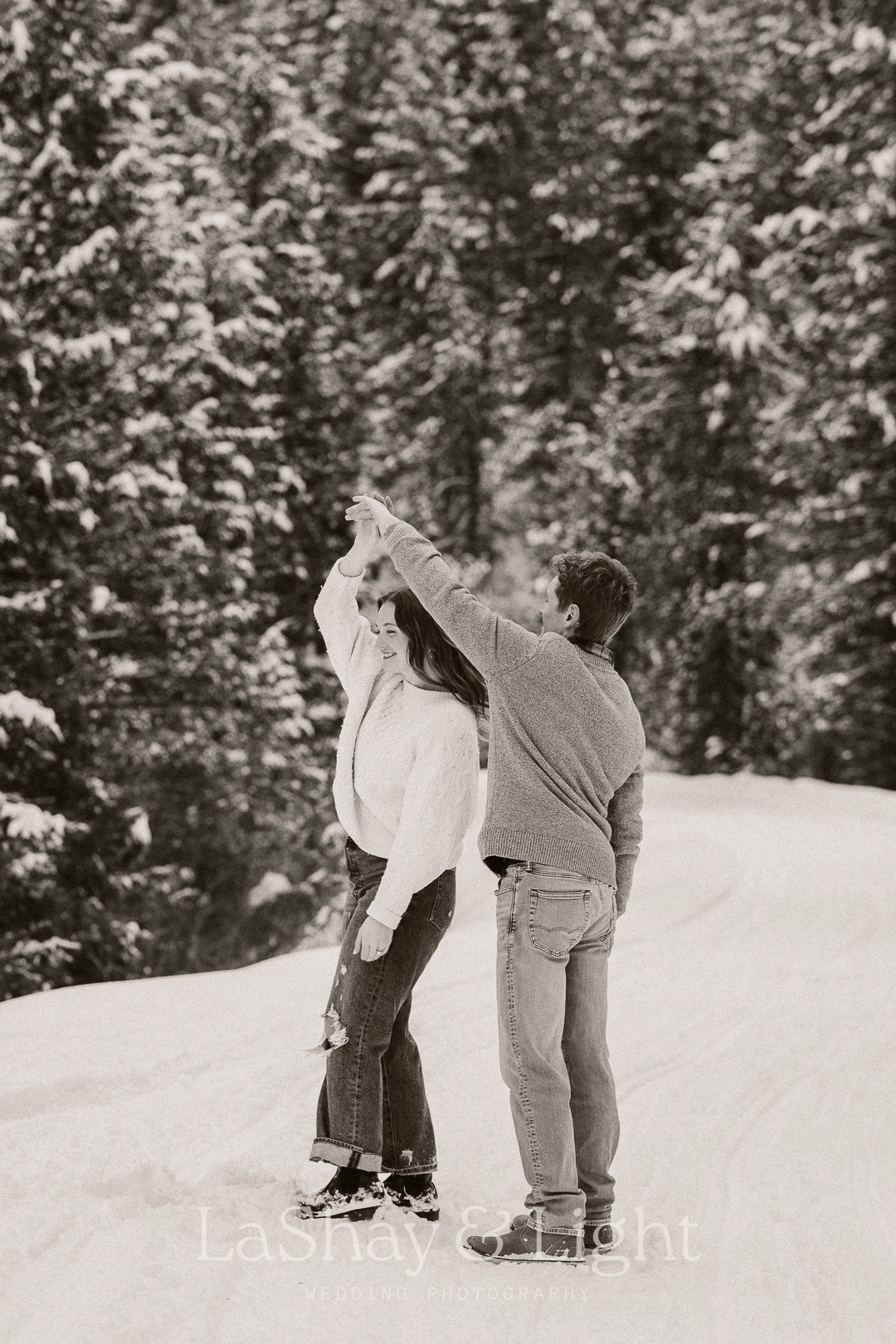 We took these photos right after a big snow storm! The result: dreamy engagement photos with lots of snow!