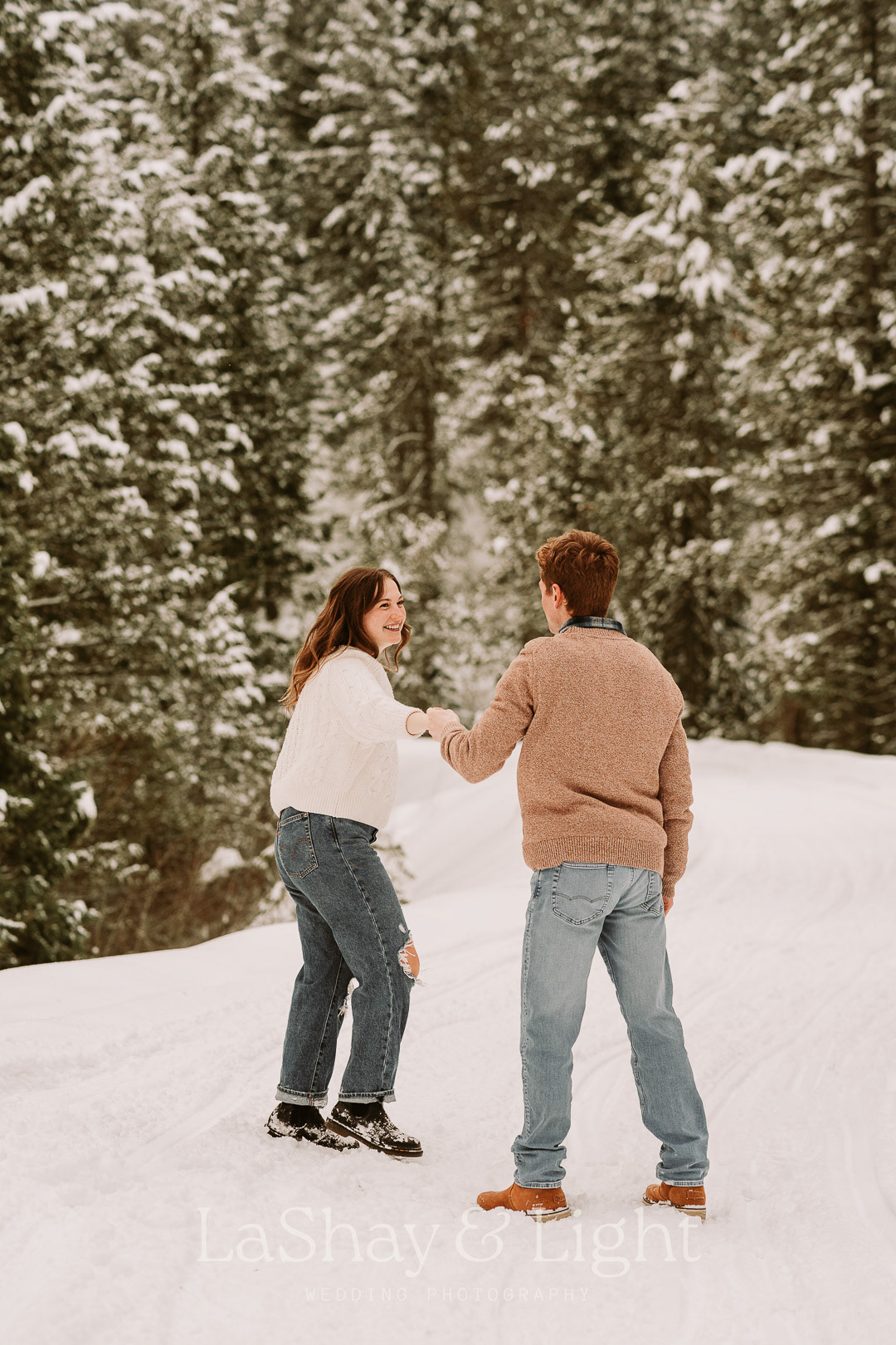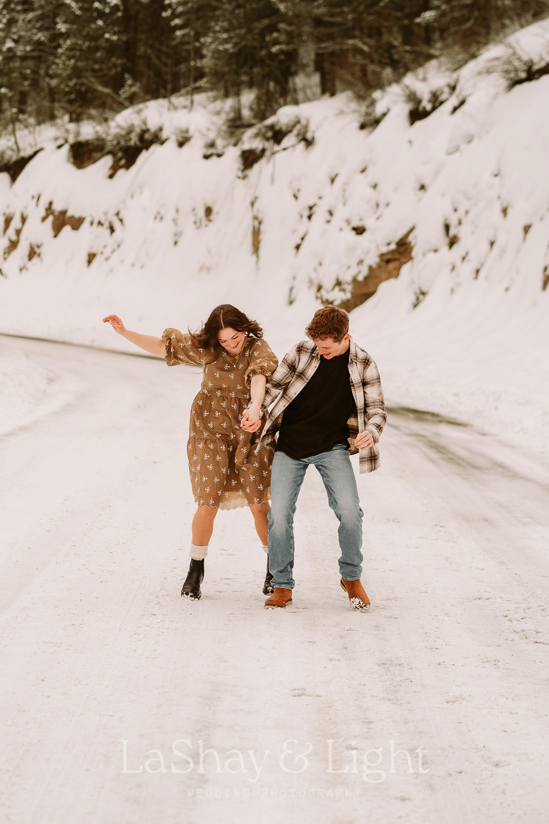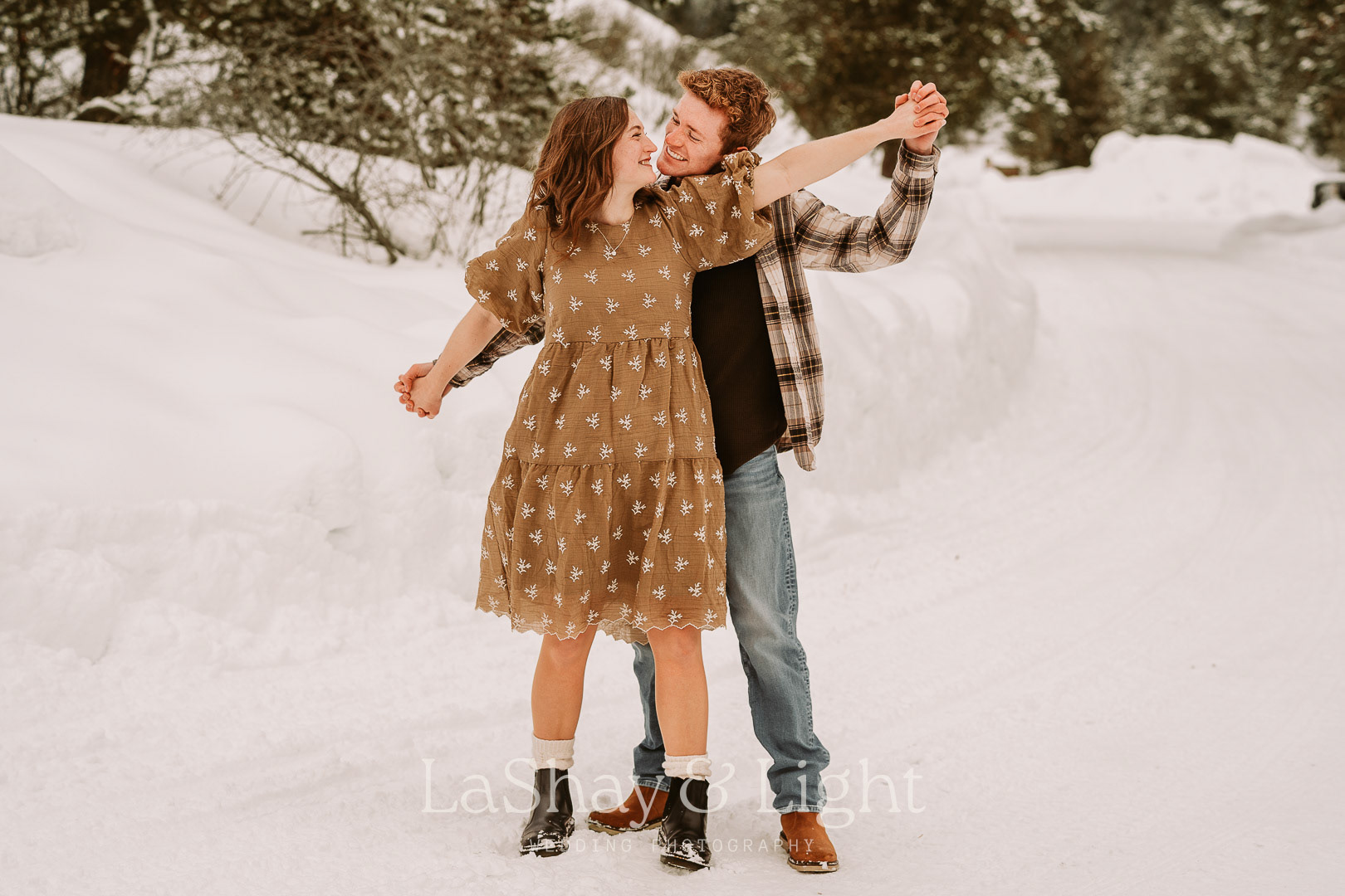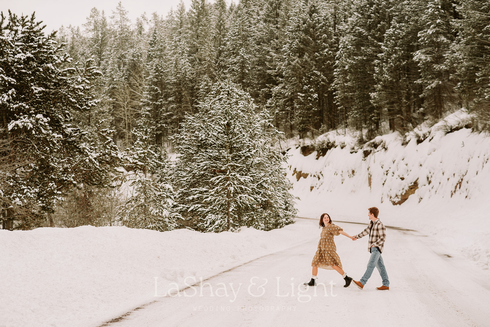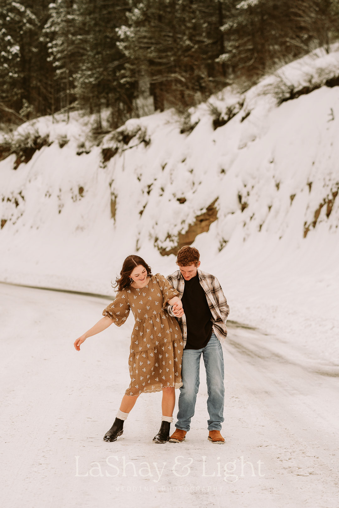 We took these photos right after a big snow storm! The result: dreamy engagement photos with lots of snow!