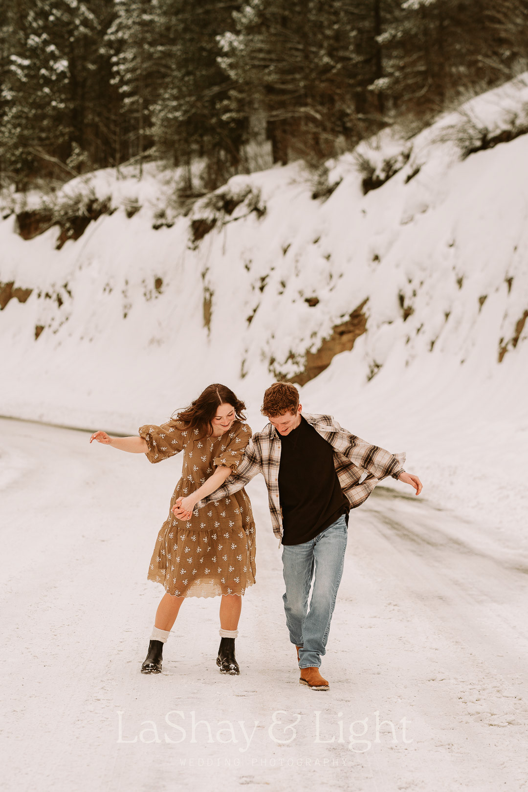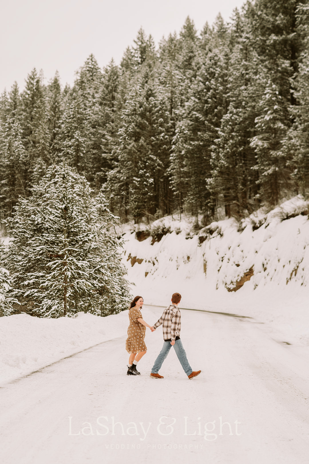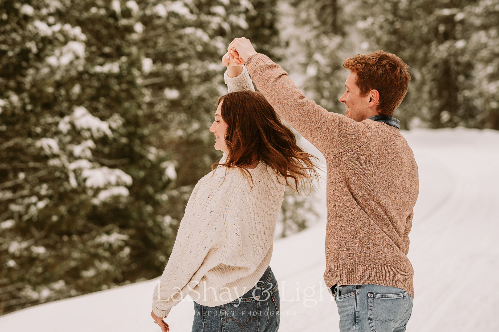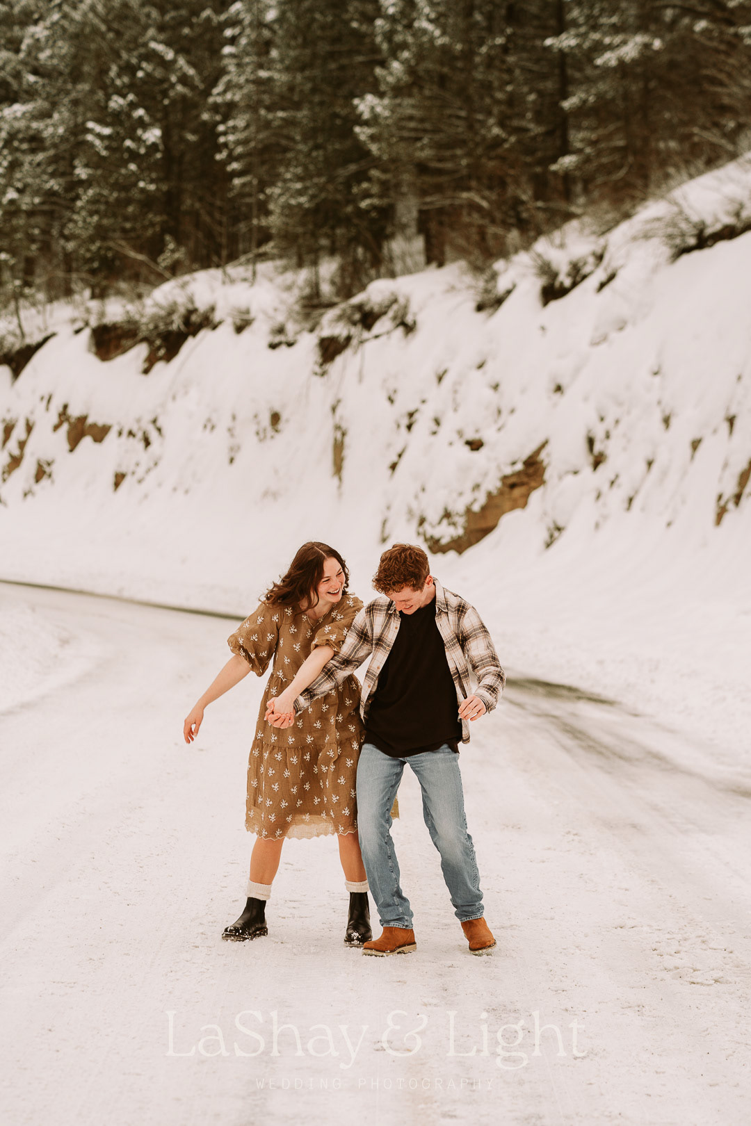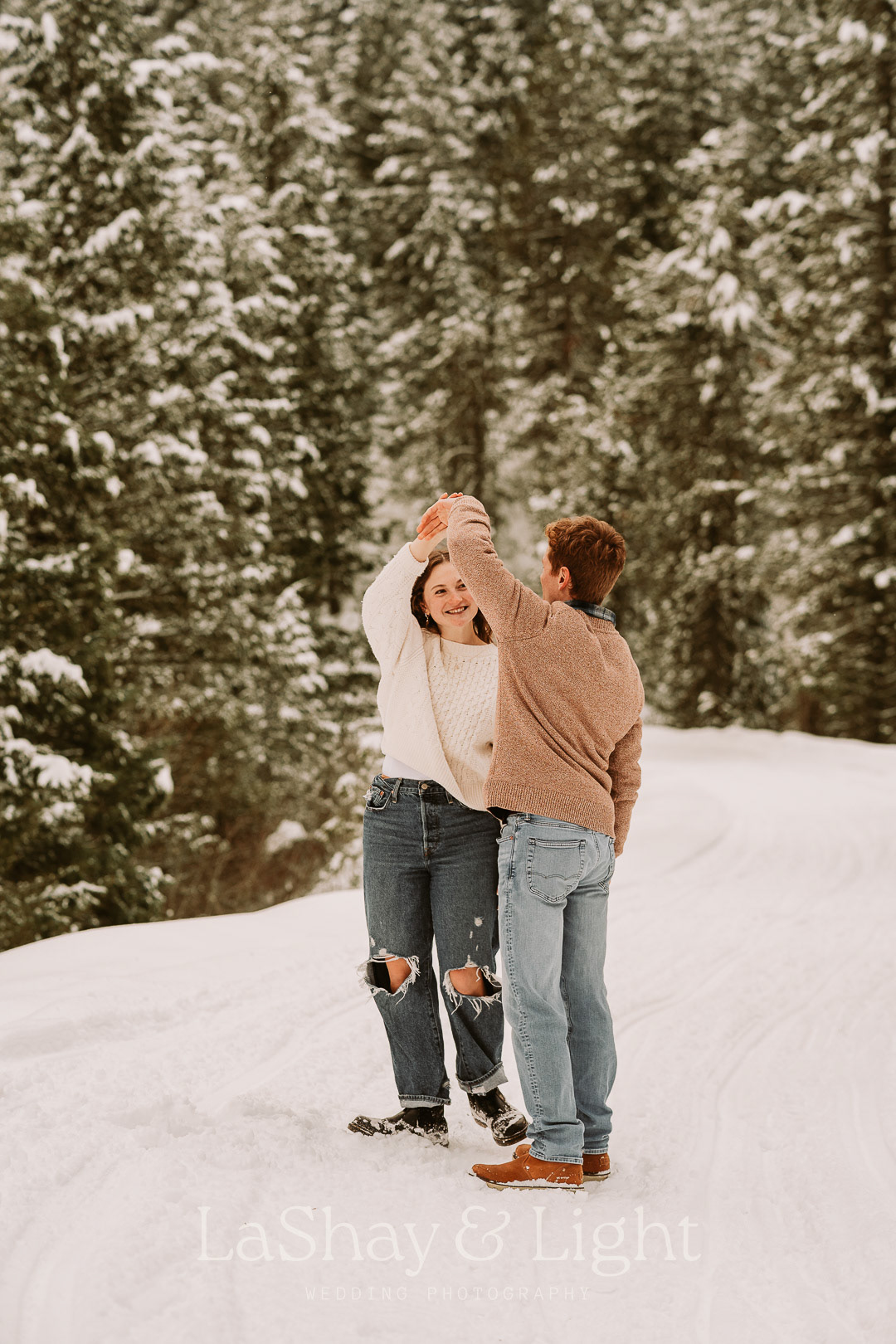 We took these photos right after a big snow storm! The result: dreamy engagement photos with lots of snow!