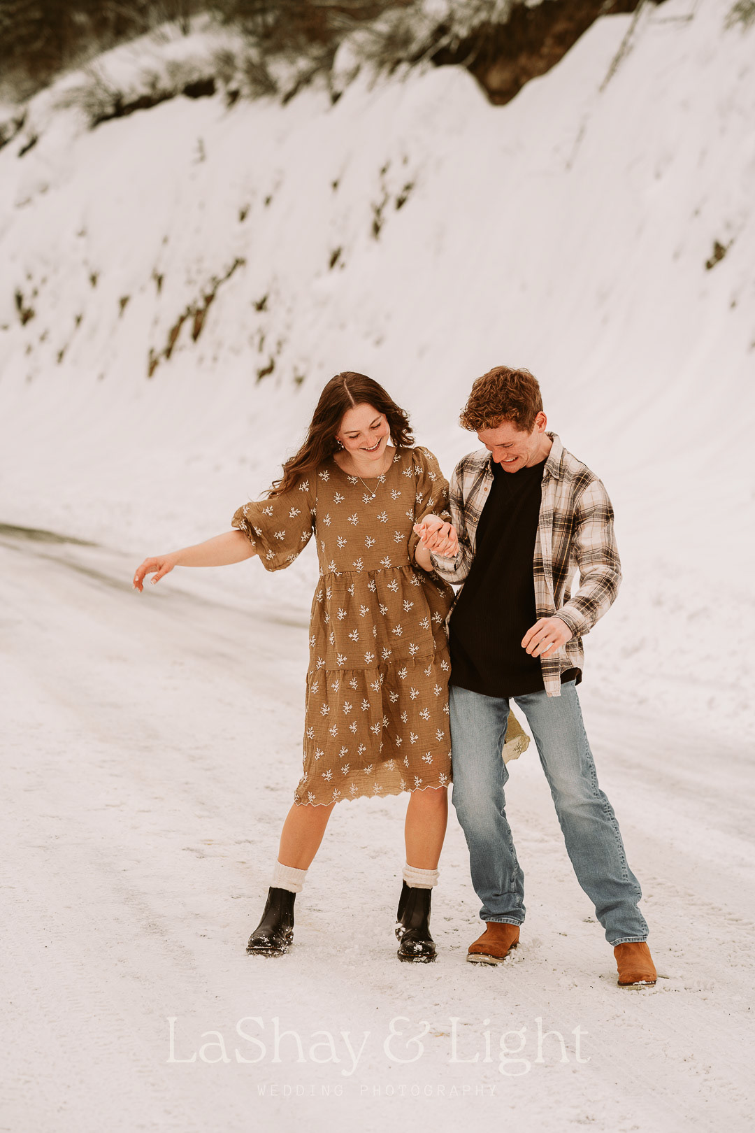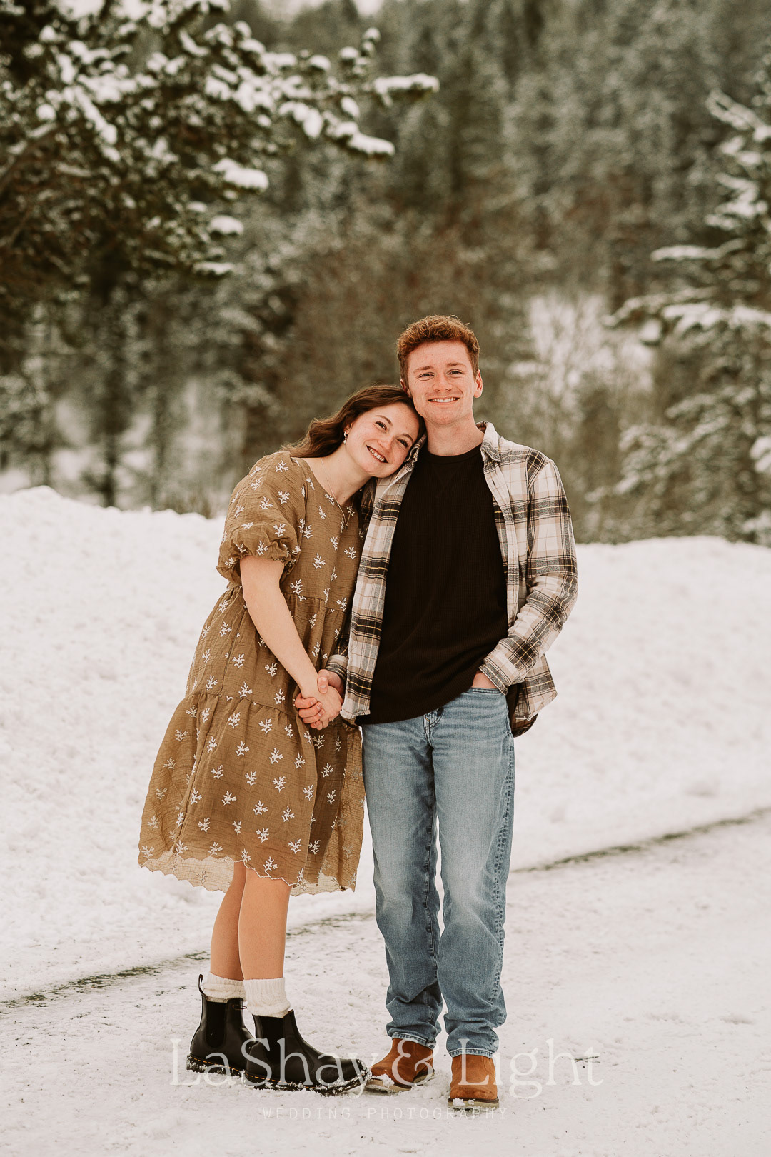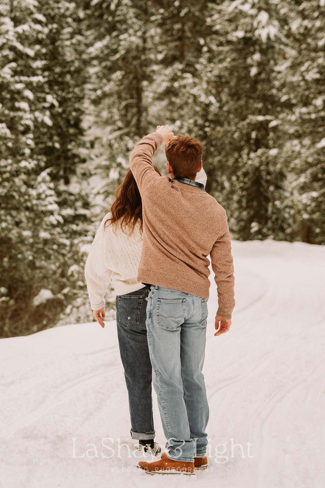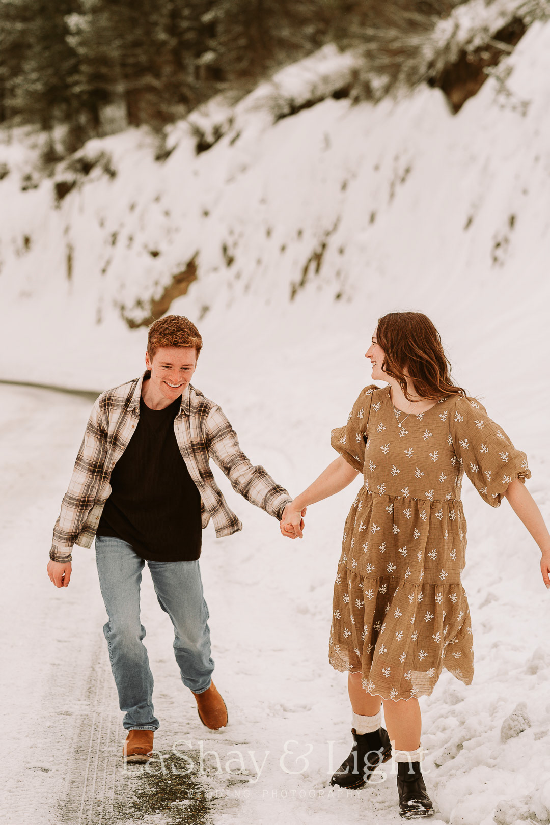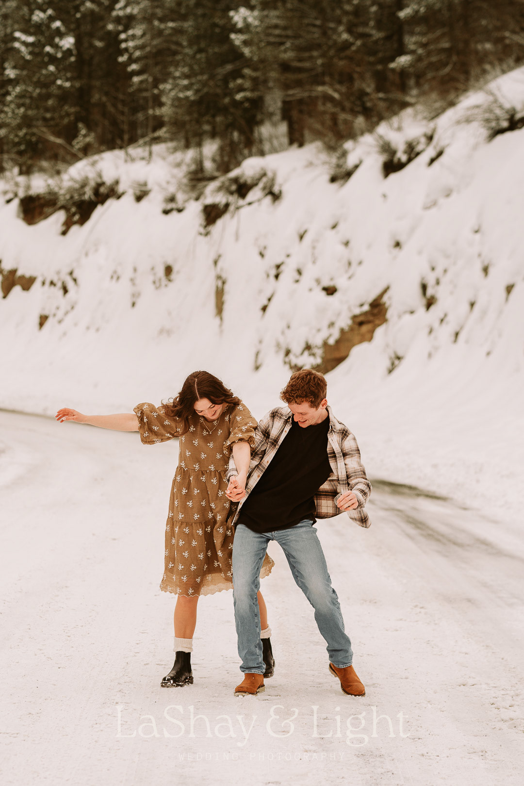 We took these photos right after a big snow storm! The result: dreamy engagement photos with lots of snow!