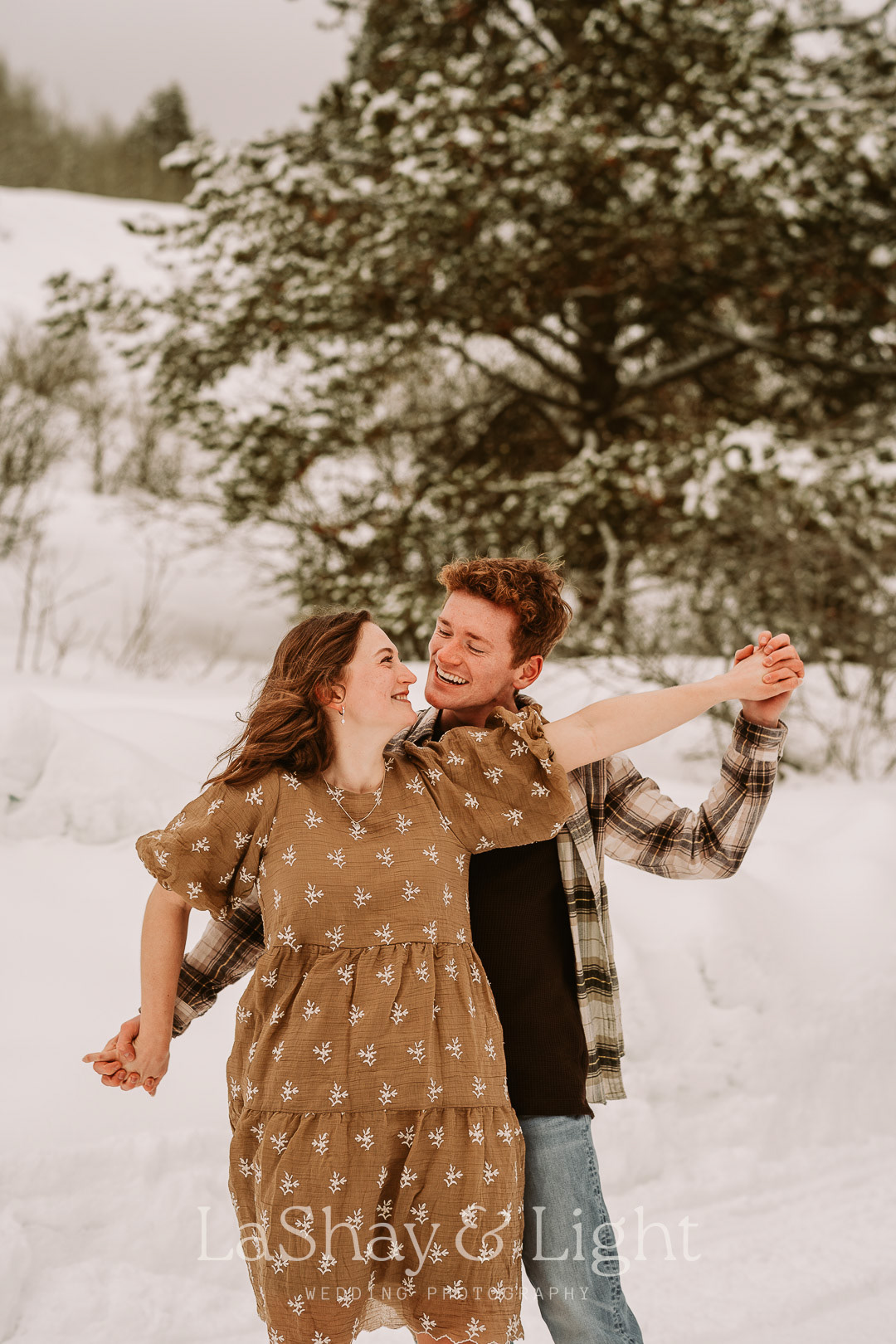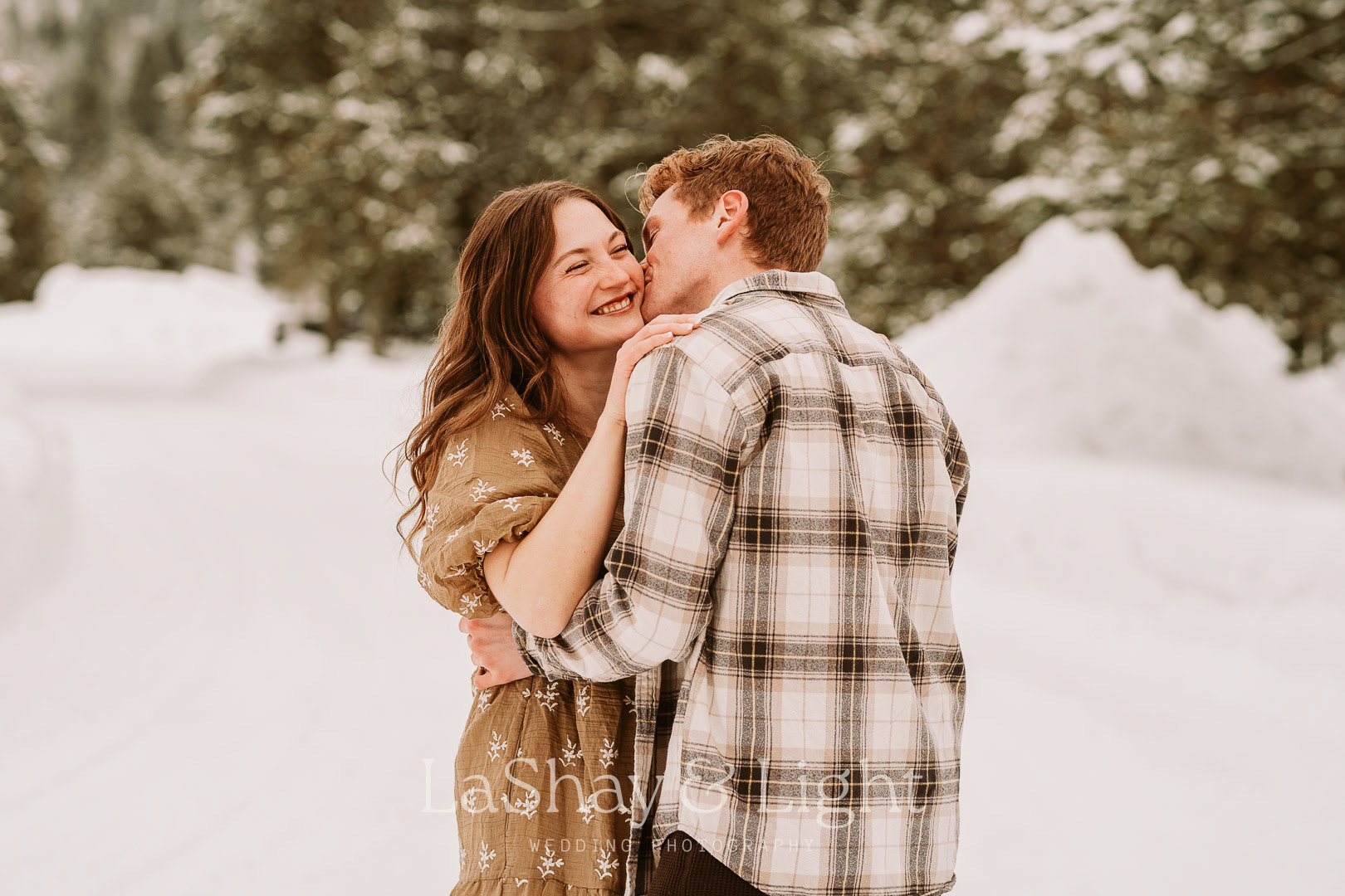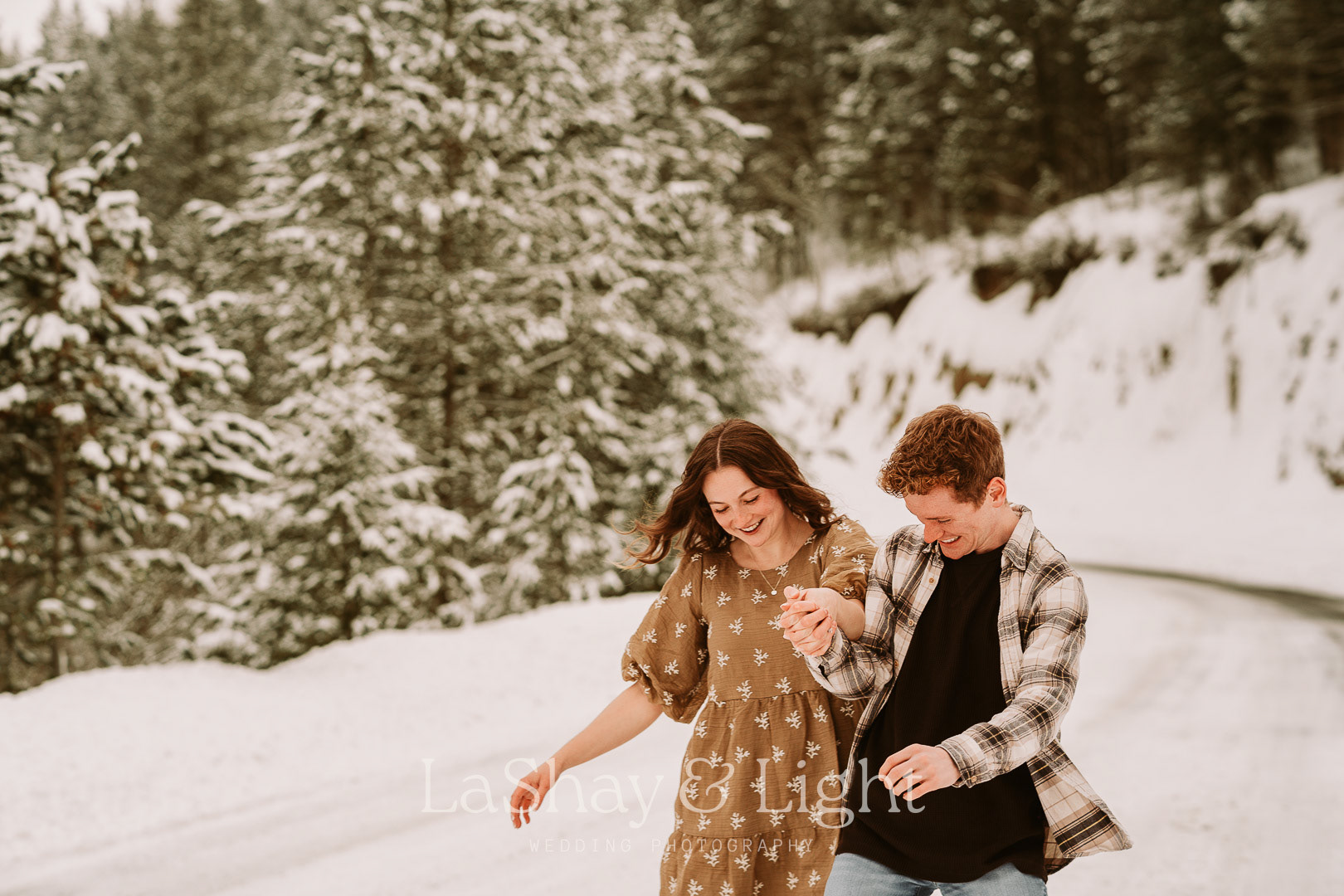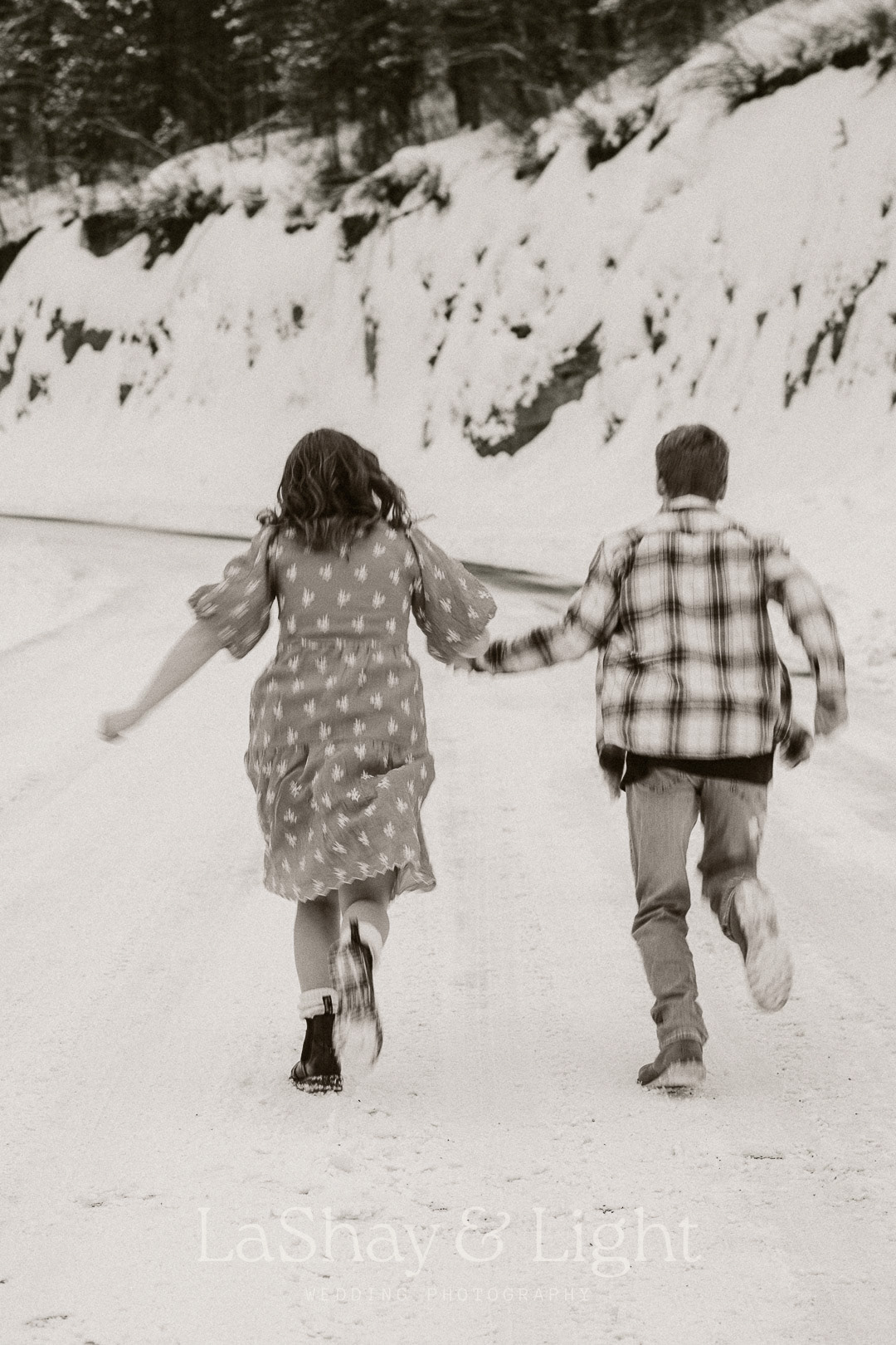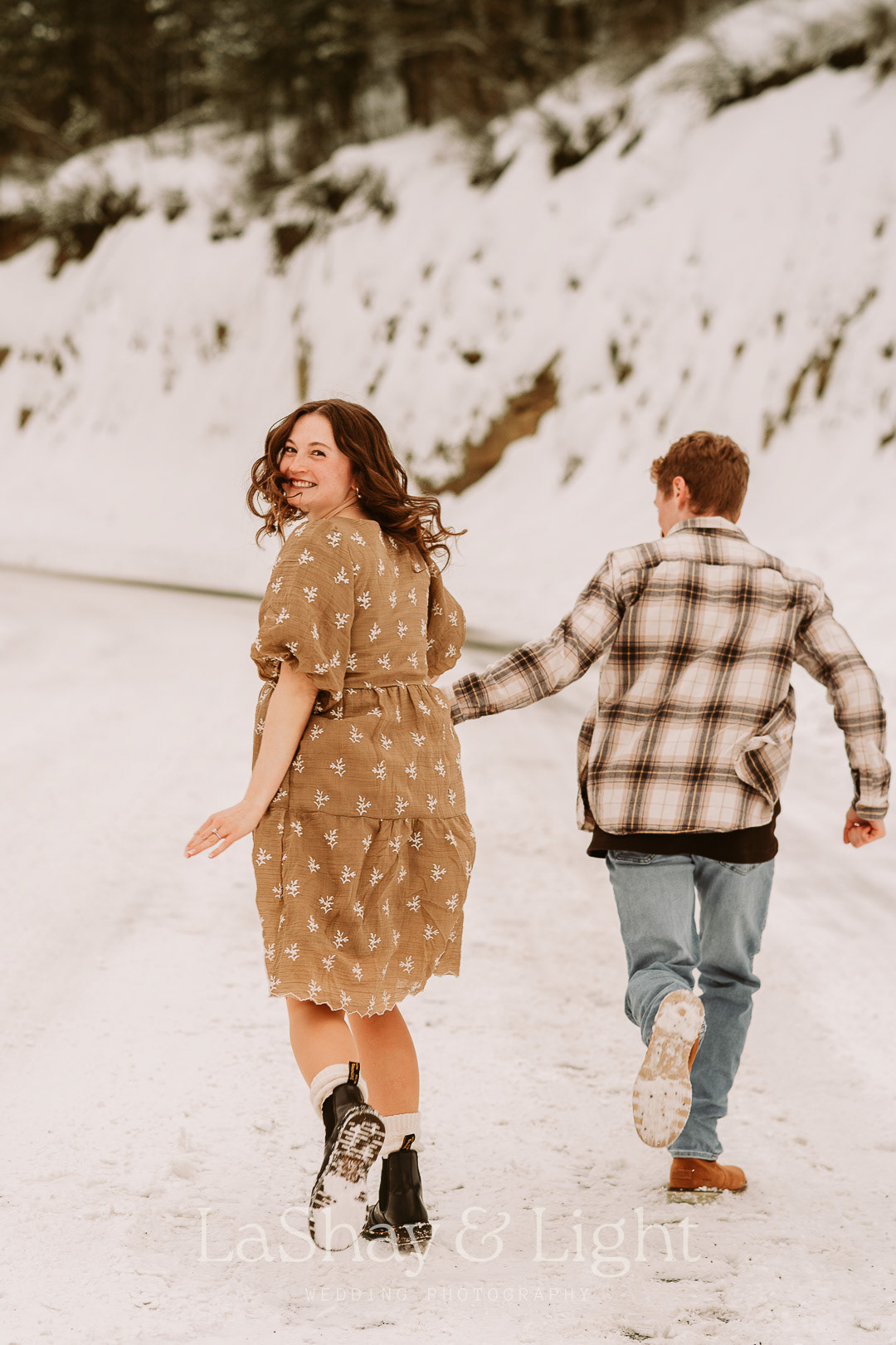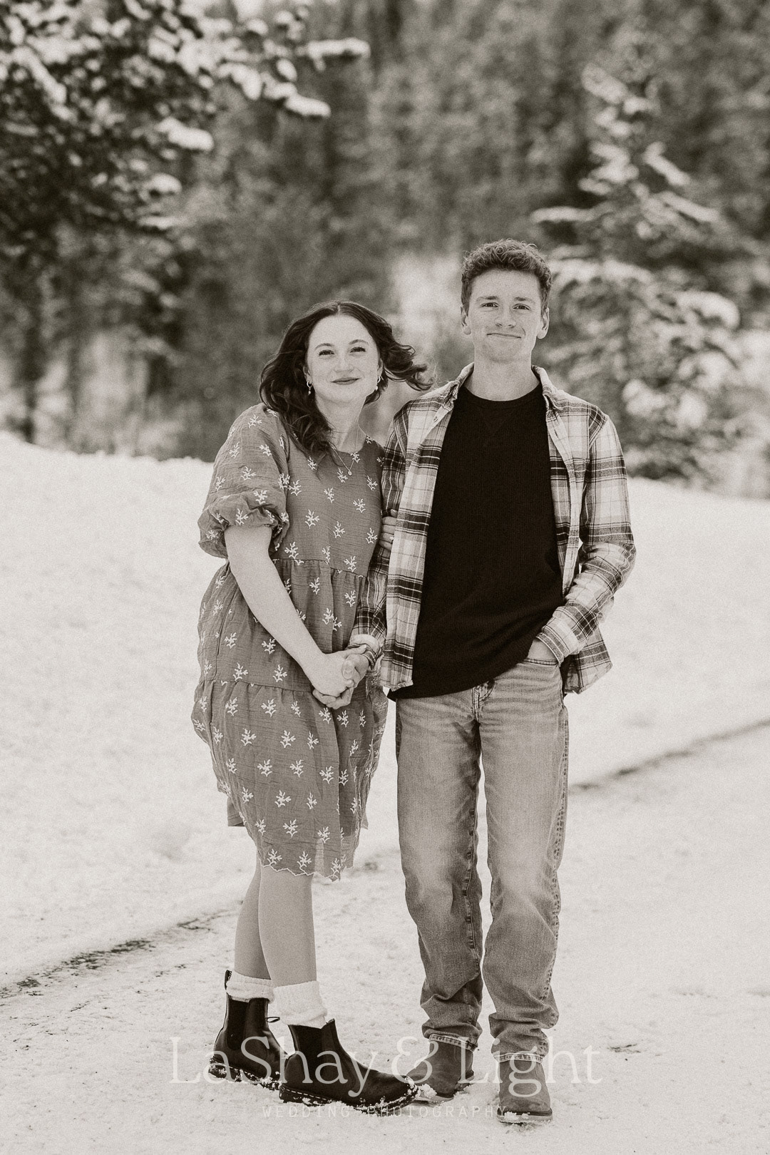 We took these photos right after a big snow storm! The result: dreamy engagement photos with lots of snow!