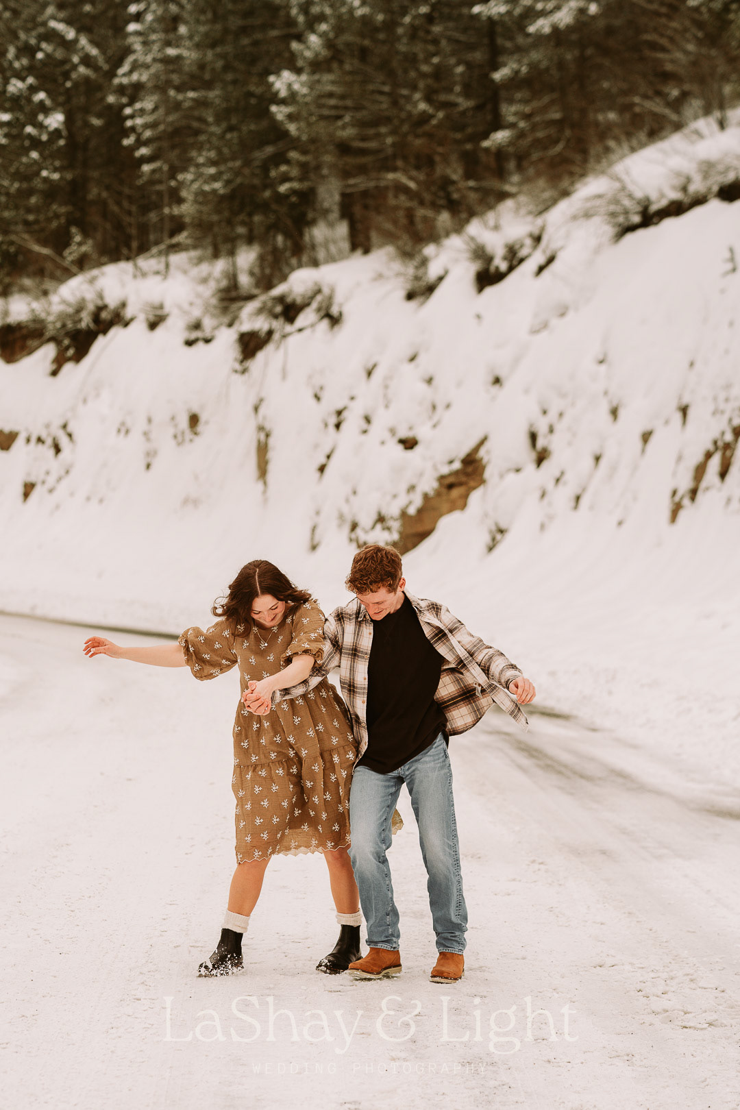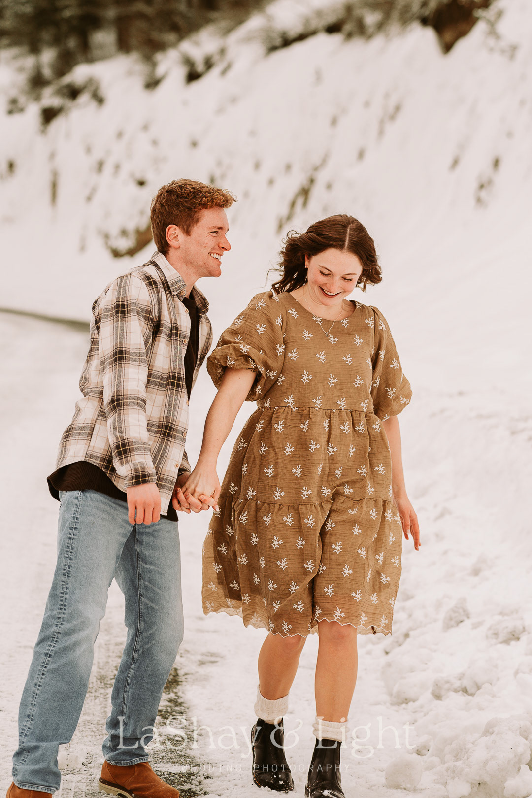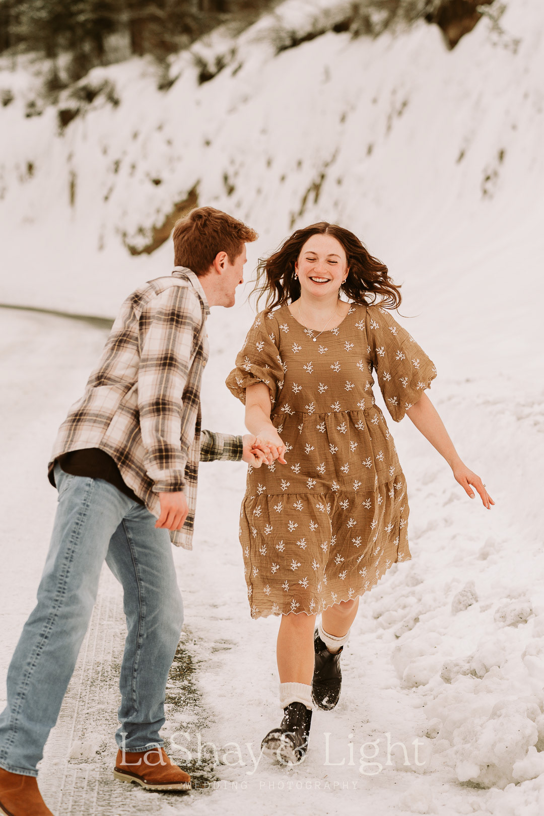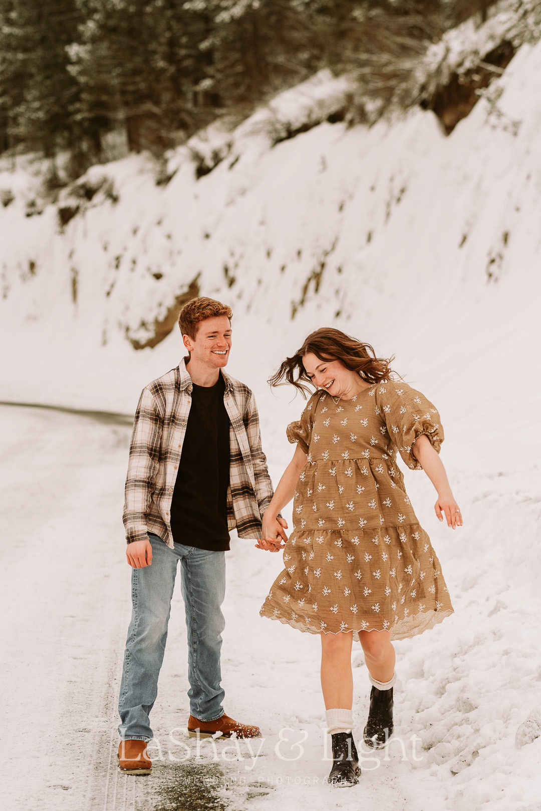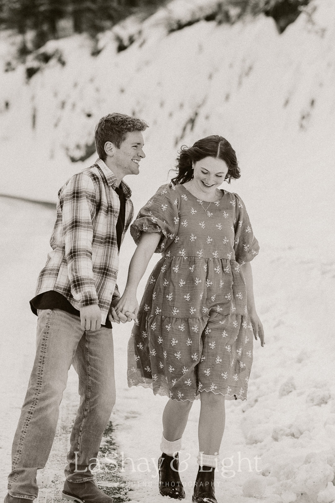 We took these photos right after a big snow storm! The result: dreamy engagement photos with lots of snow!