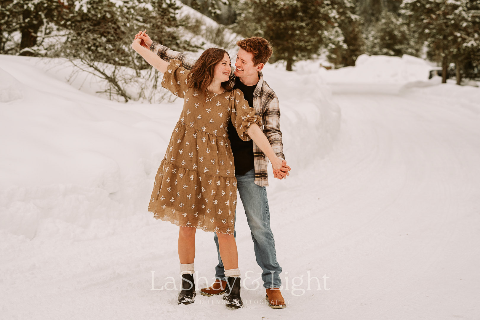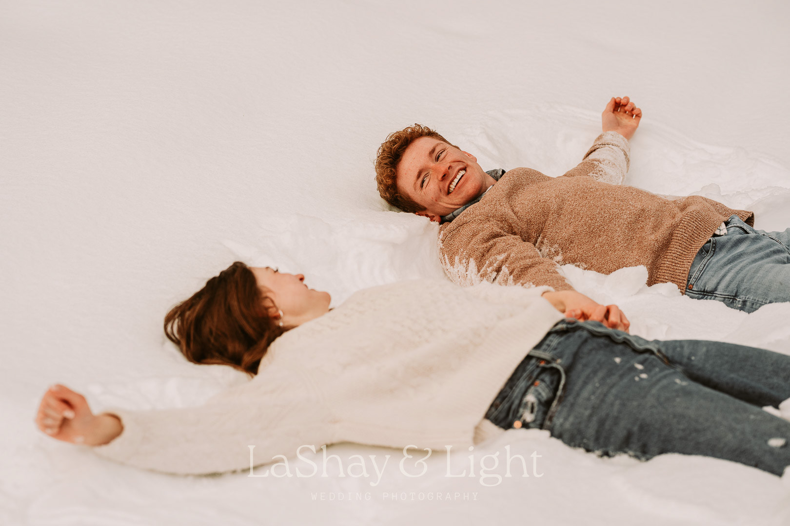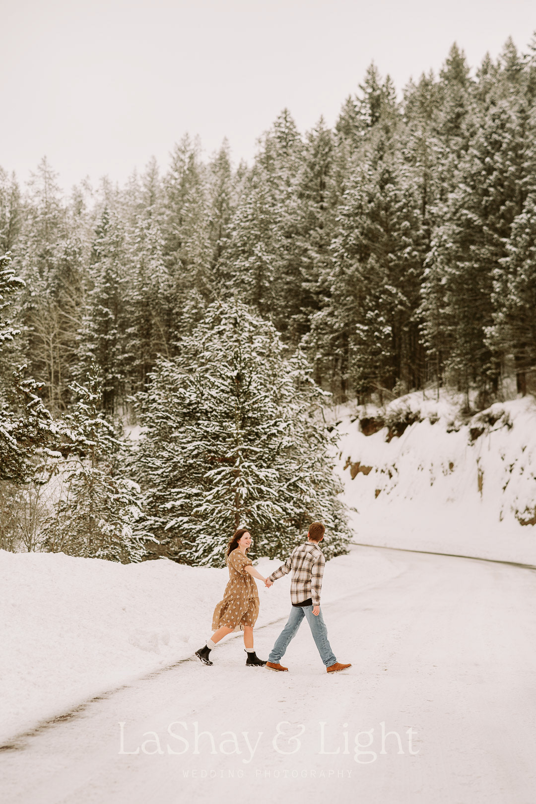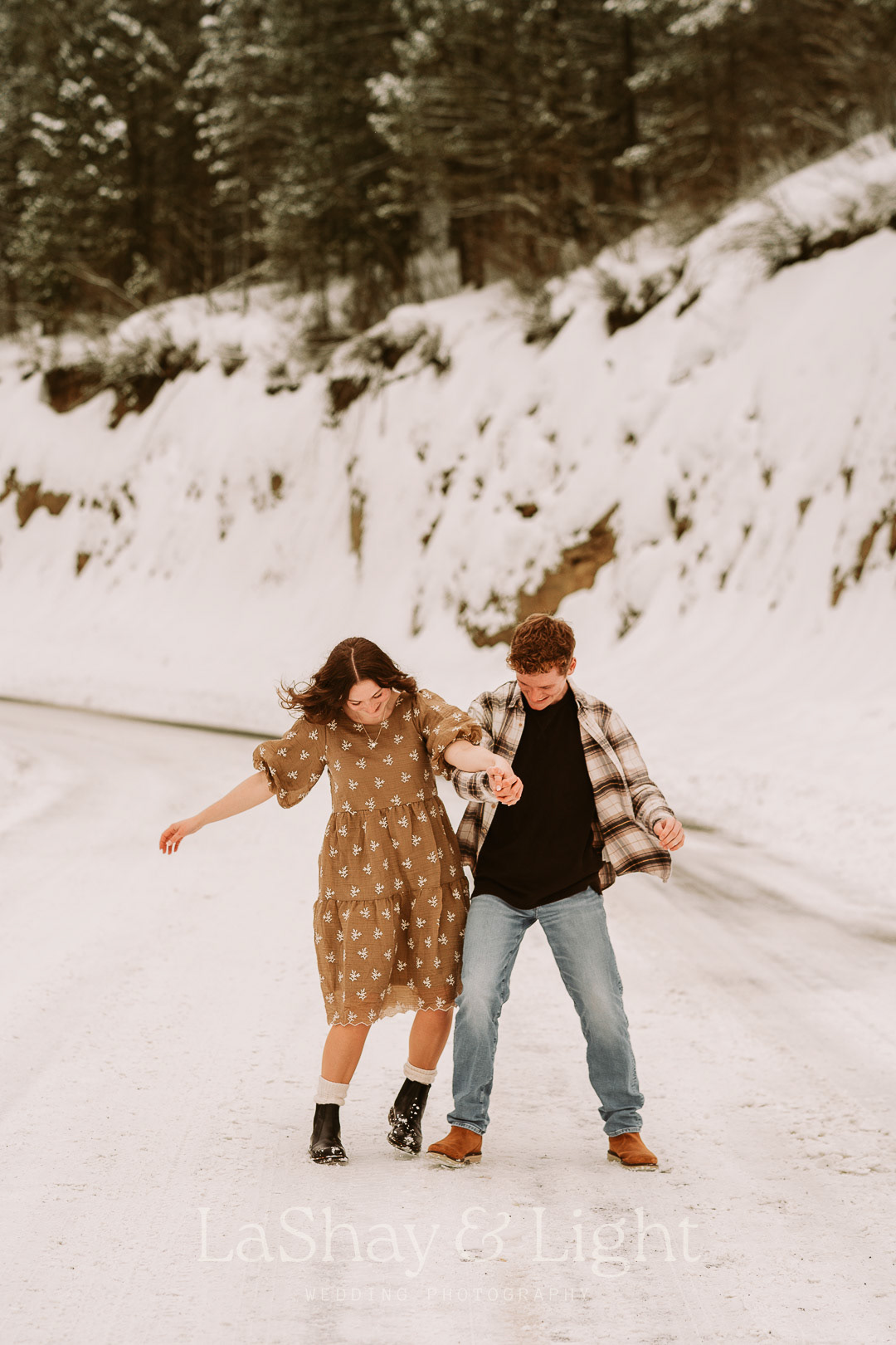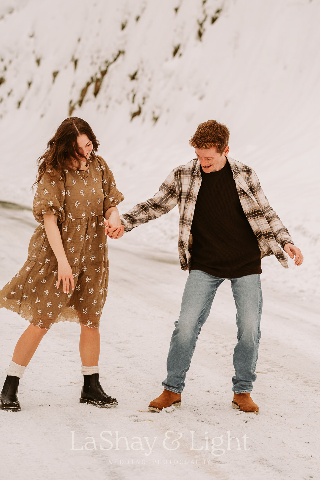 We took these photos right after a big snow storm! The result: dreamy engagement photos with lots of snow!